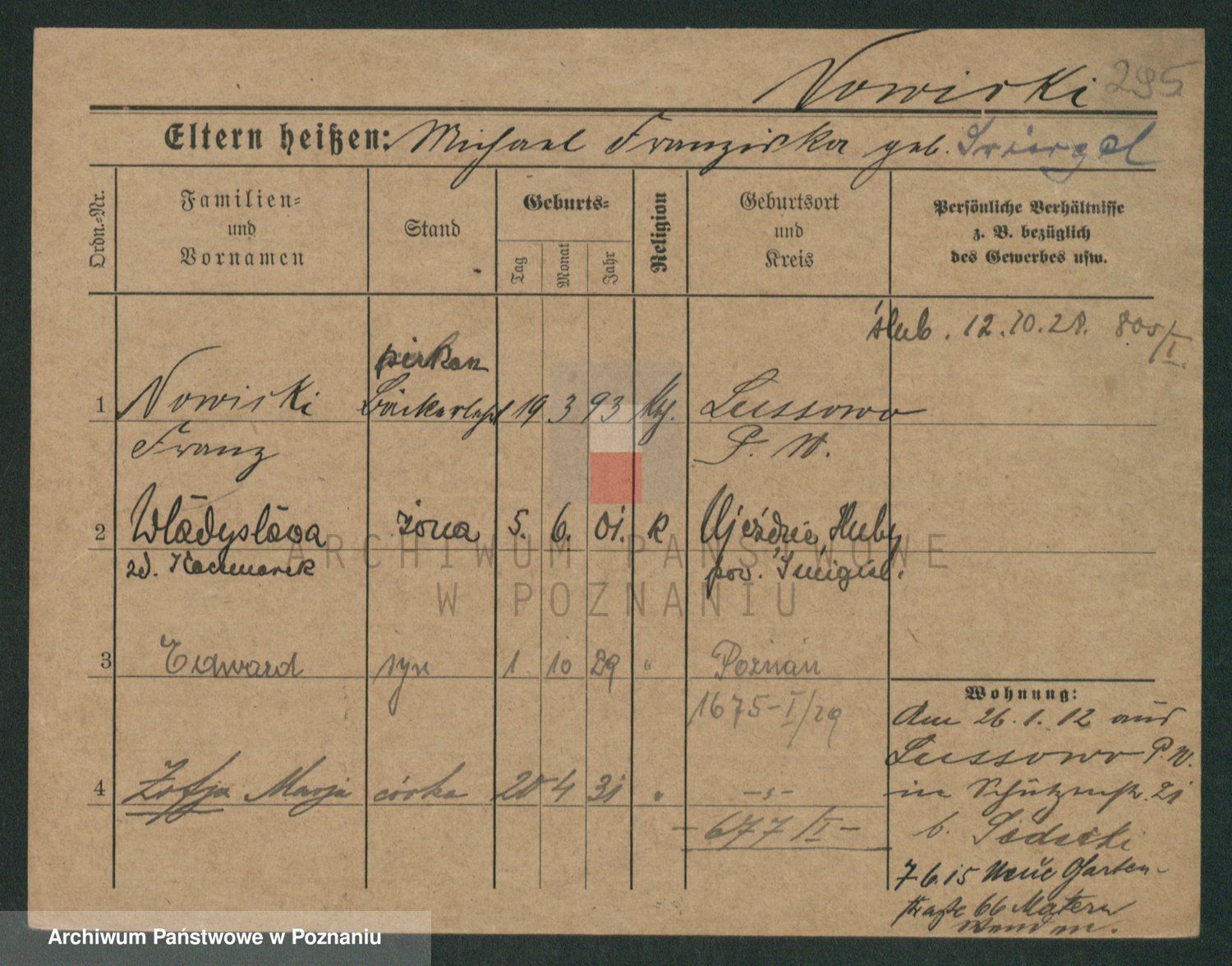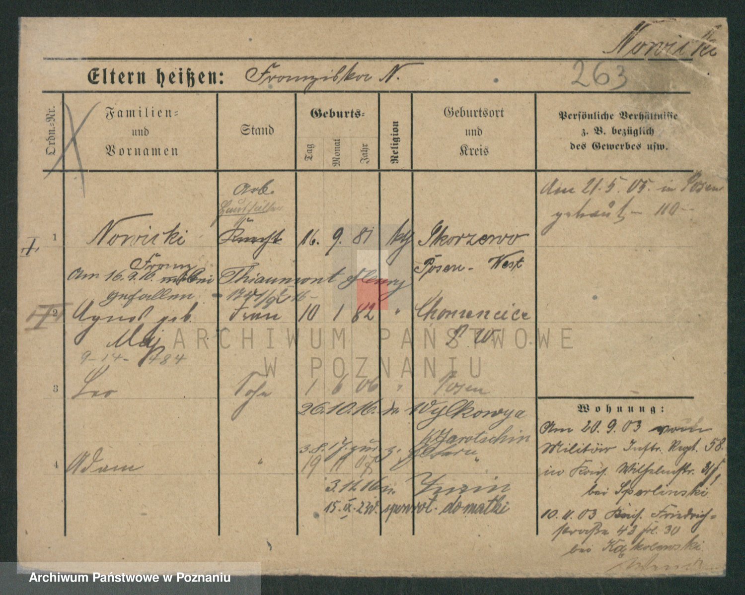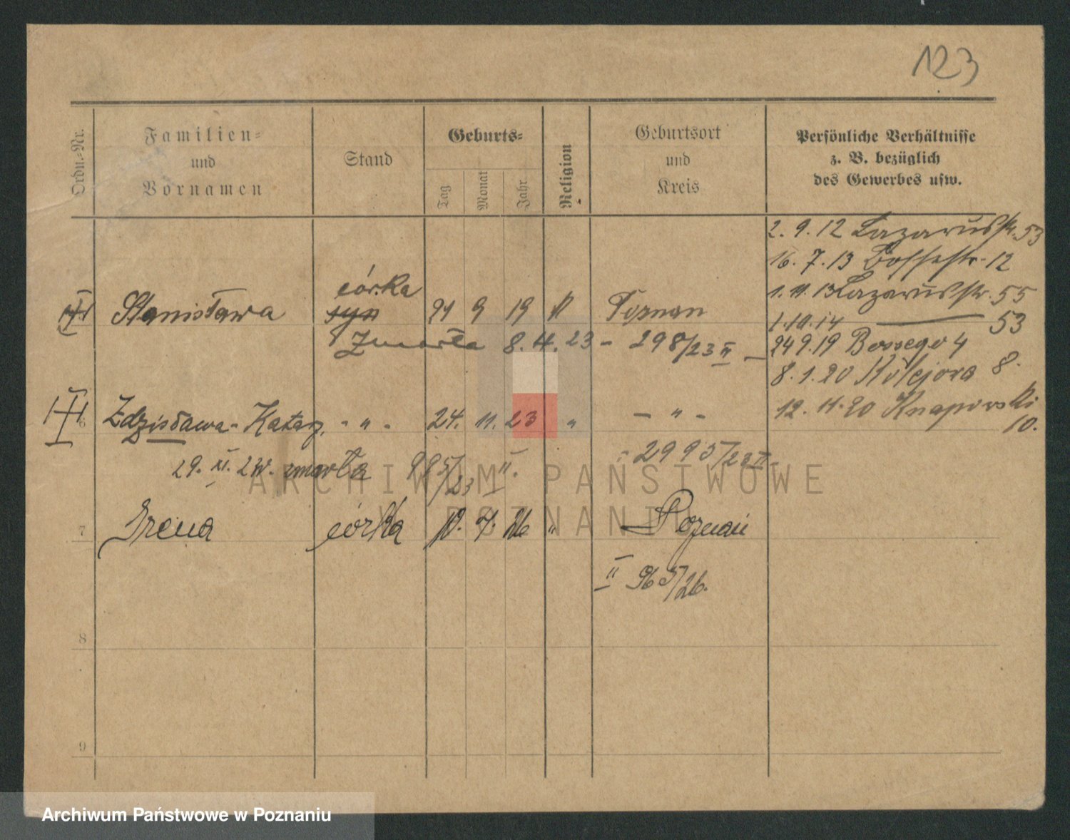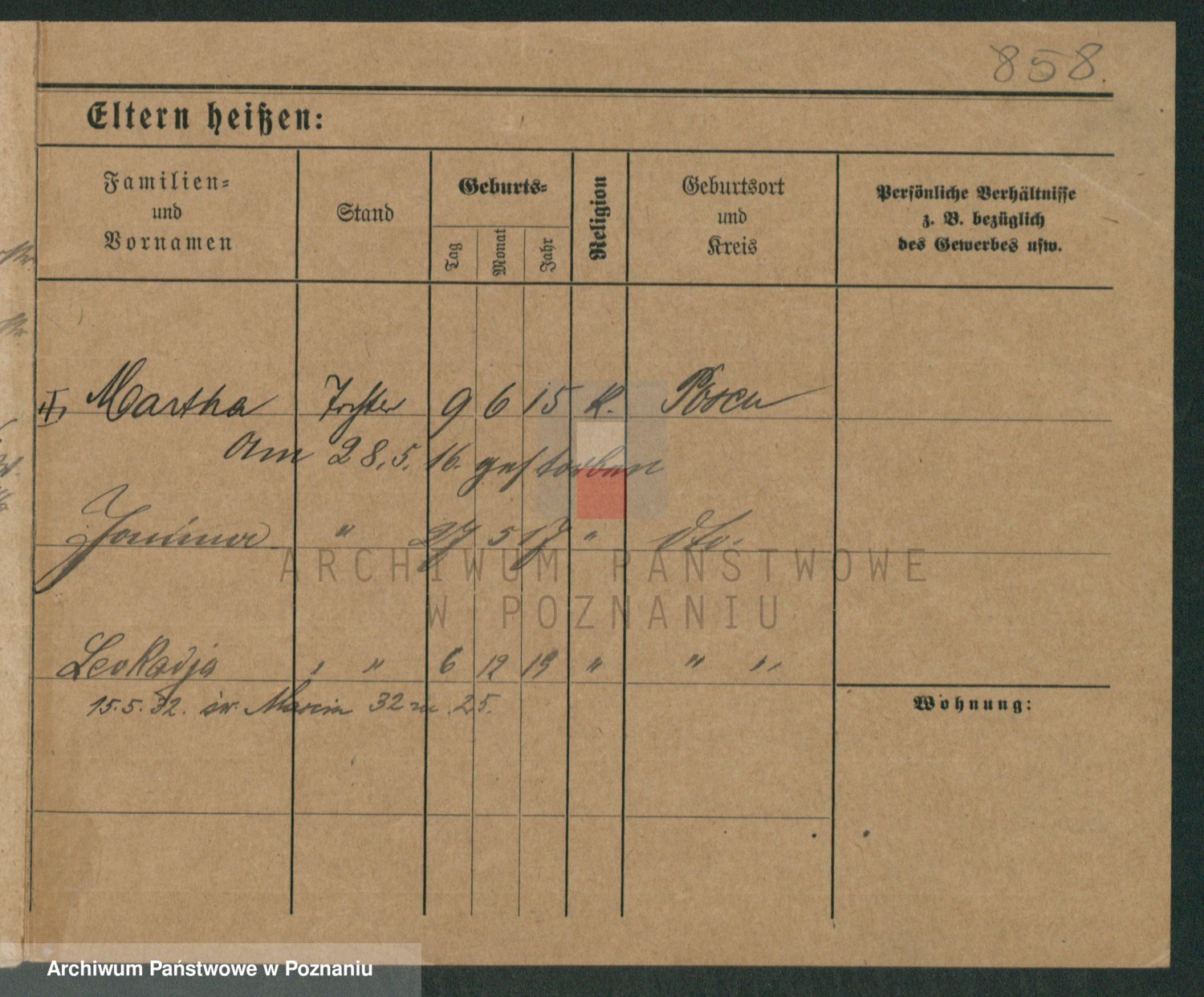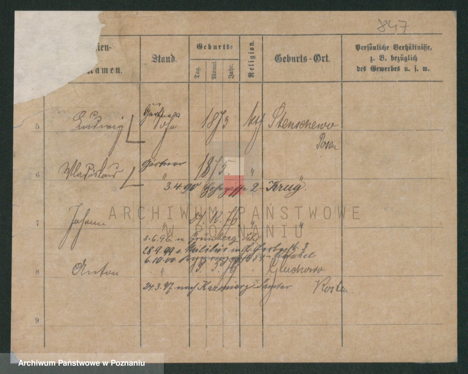 Podgląd karty osobowej dostępny jest po kliknięciu na nazwisko lub ikonkę karty. Można dokonywać powiększenia (ikony na górze) lub przechodzić między kolejnymi skanami (strzałki po bokach).