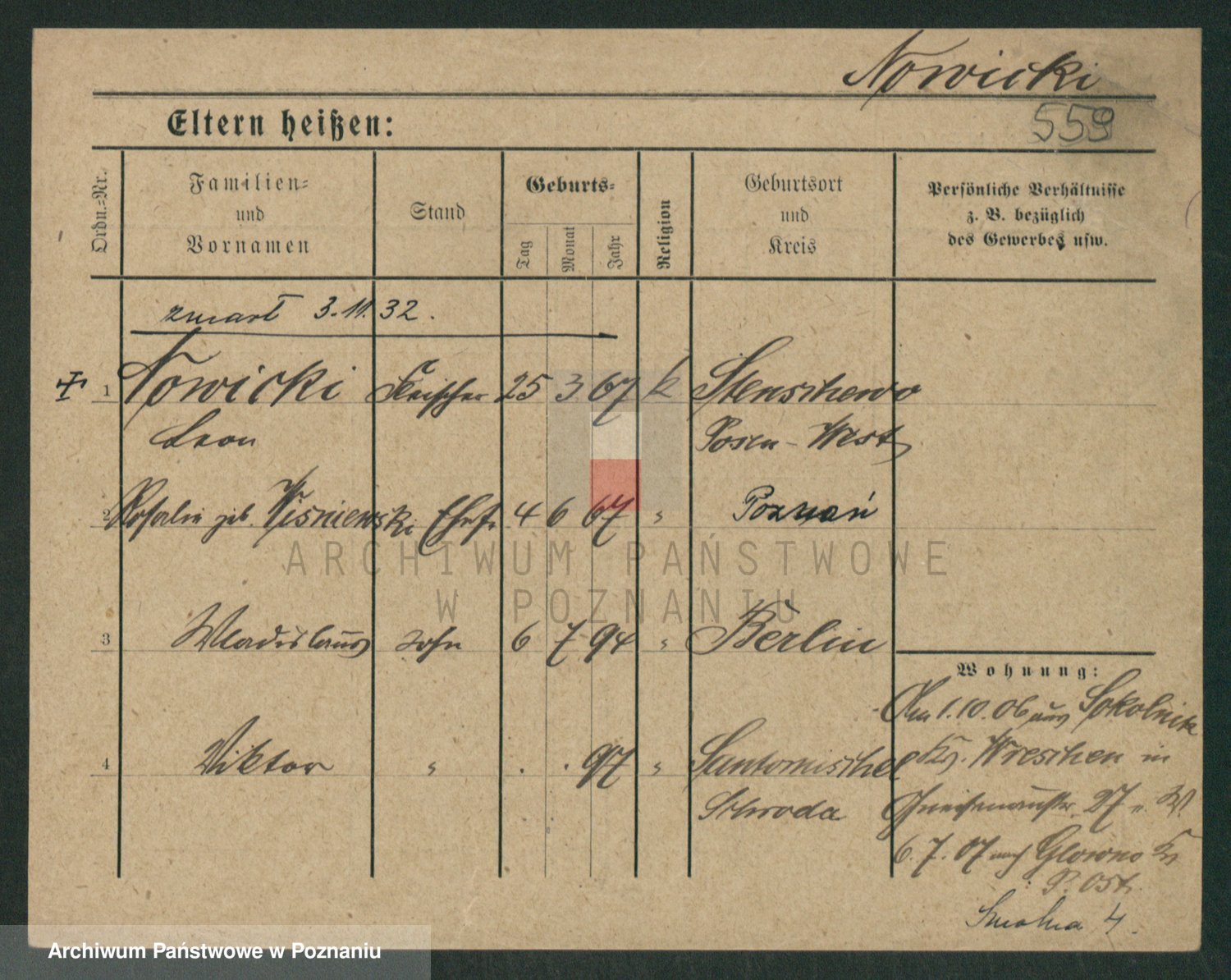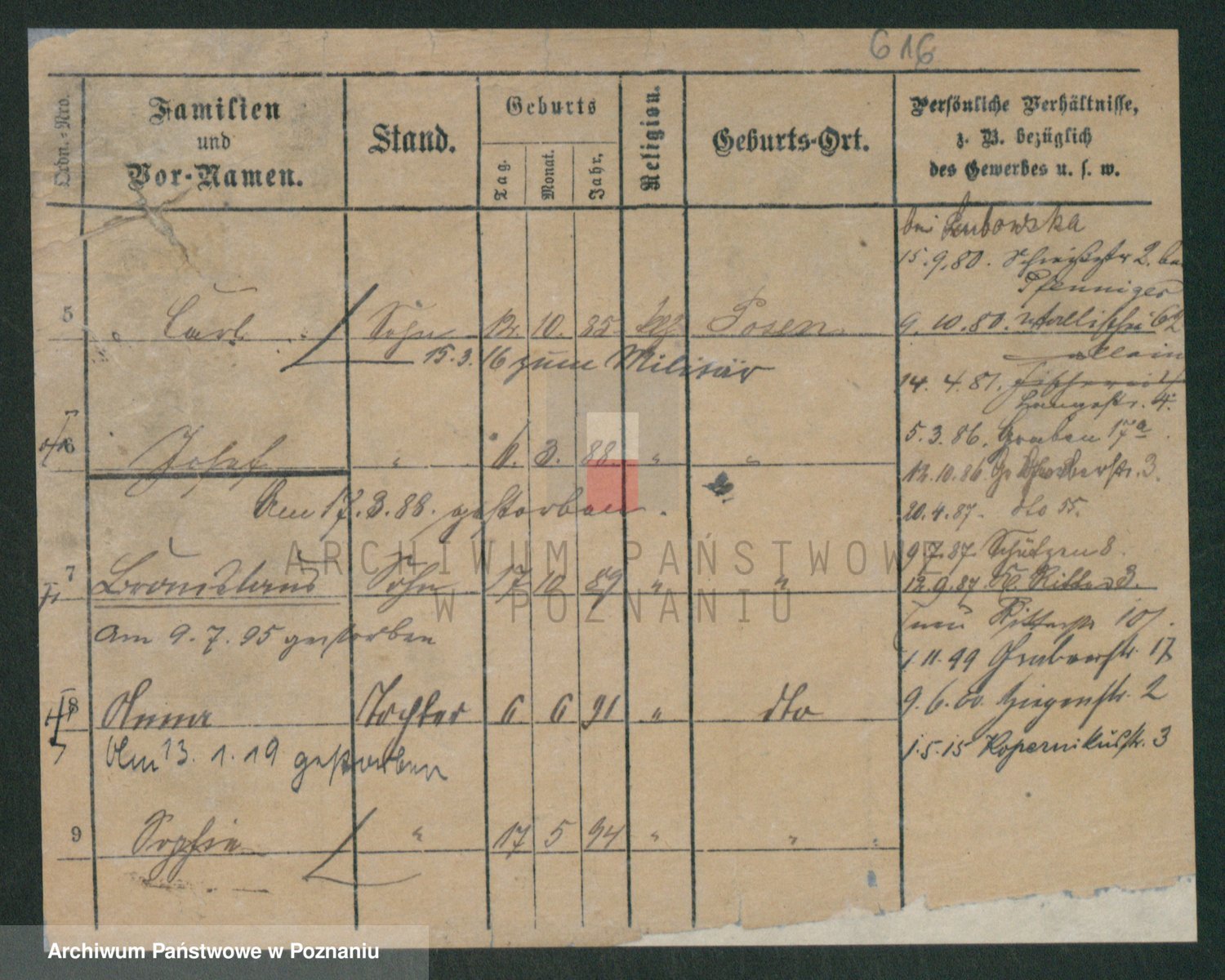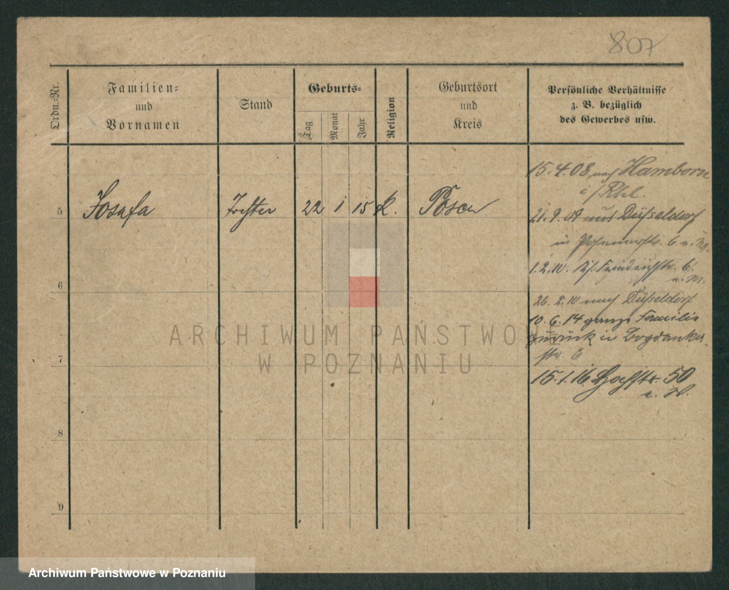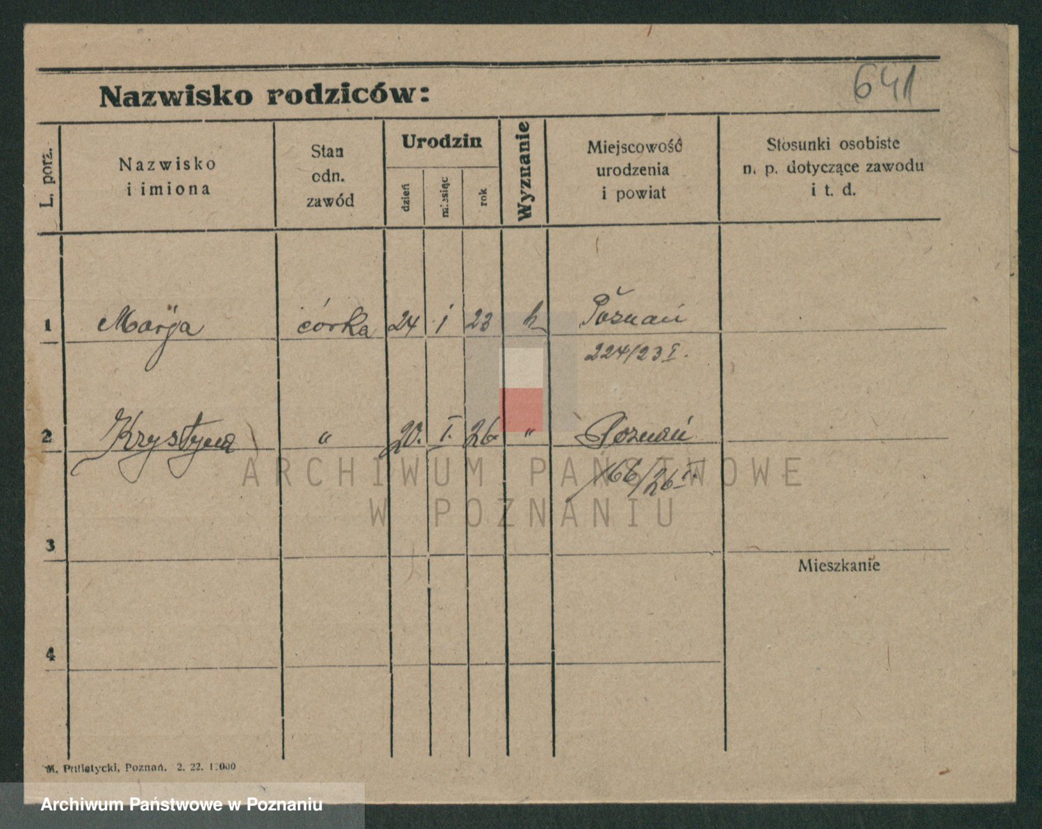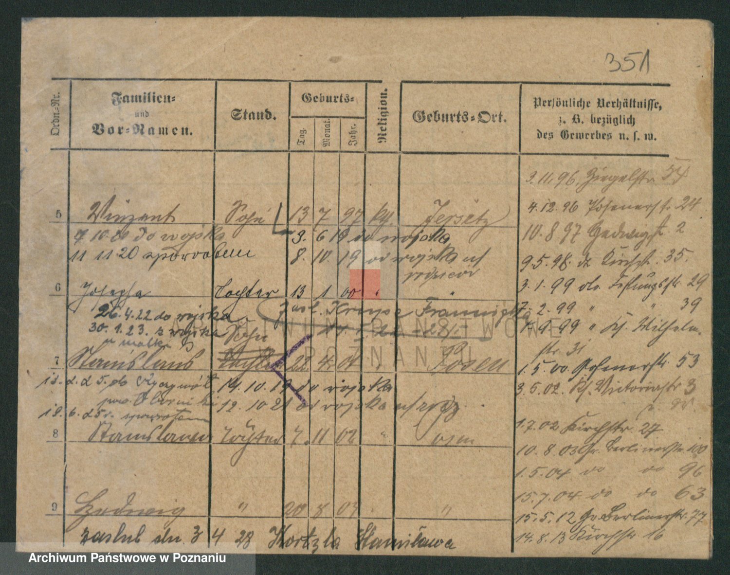 Podgląd karty osobowej dostępny jest po kliknięciu na nazwisko lub ikonkę karty. Można dokonywać powiększenia (ikony na górze) lub przechodzić między kolejnymi skanami (strzałki po bokach).