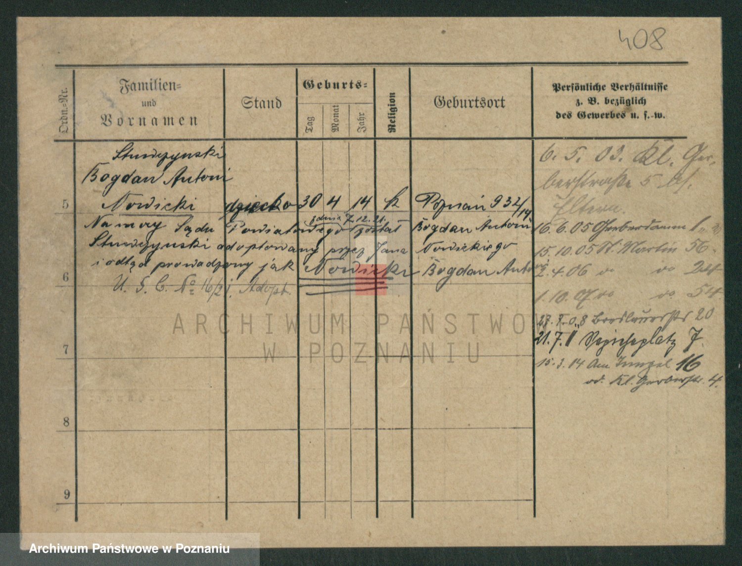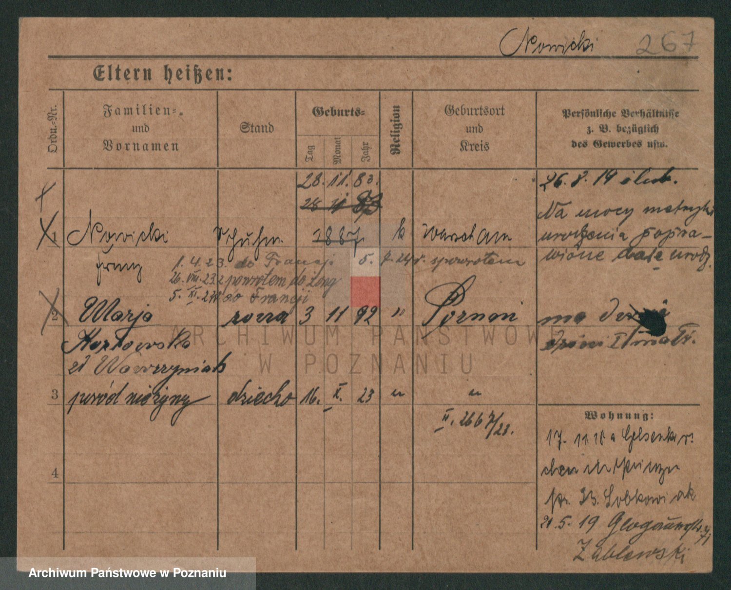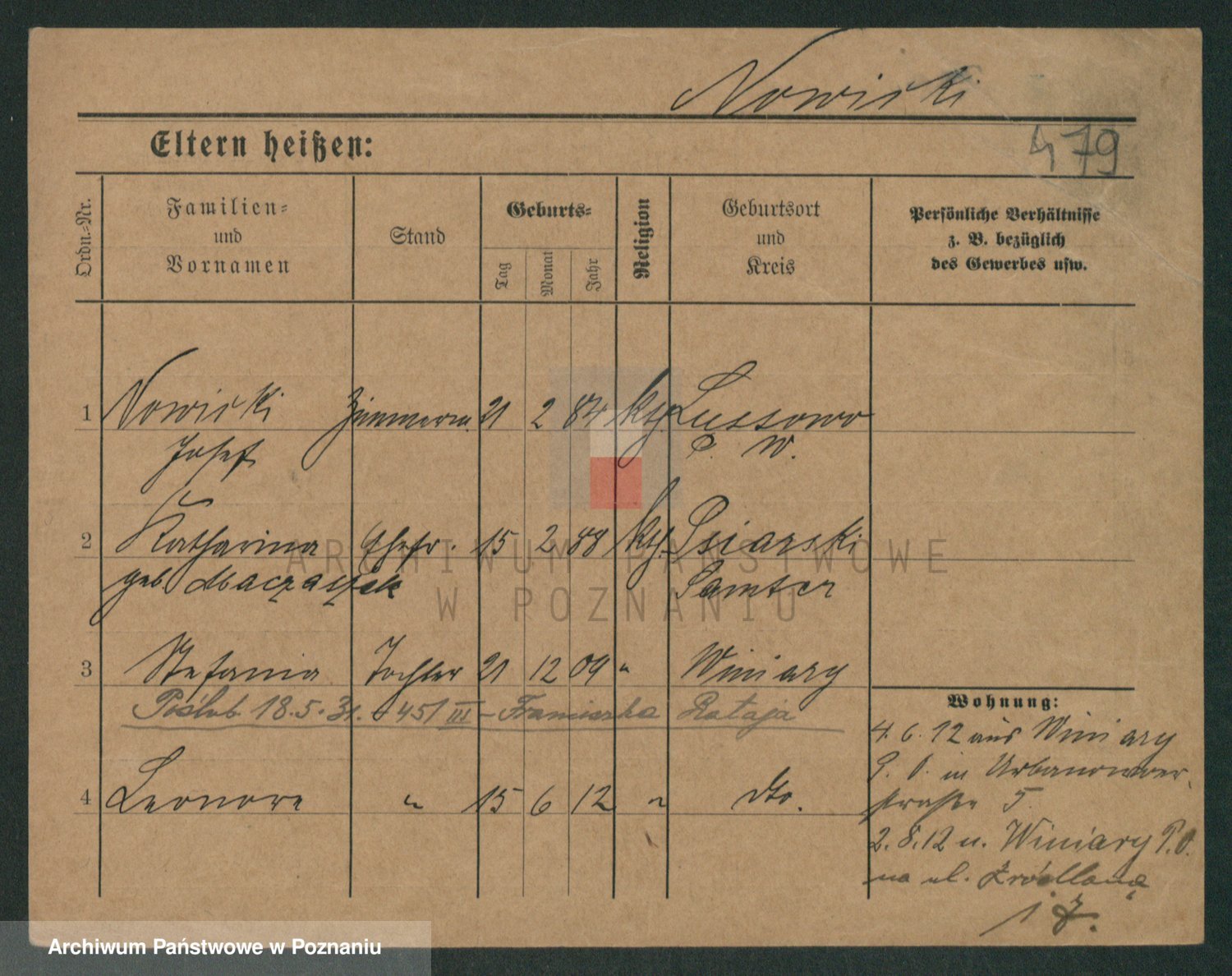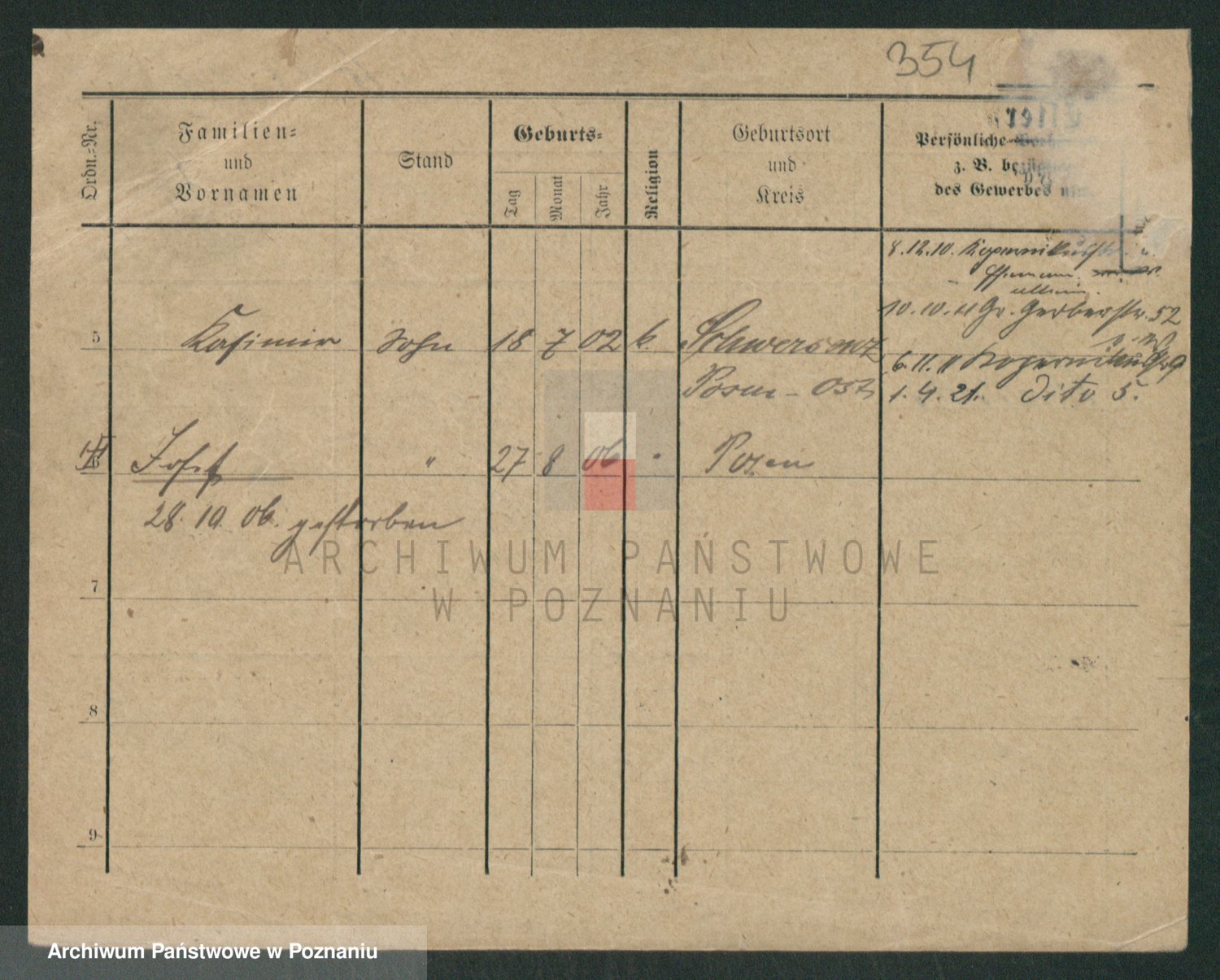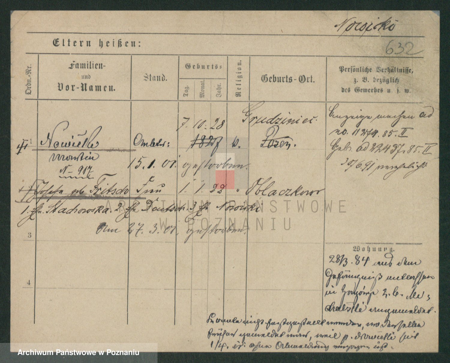 Podgląd karty osobowej dostępny jest po kliknięciu na nazwisko lub ikonkę karty. Można dokonywać powiększenia (ikony na górze) lub przechodzić między kolejnymi skanami (strzałki po bokach).