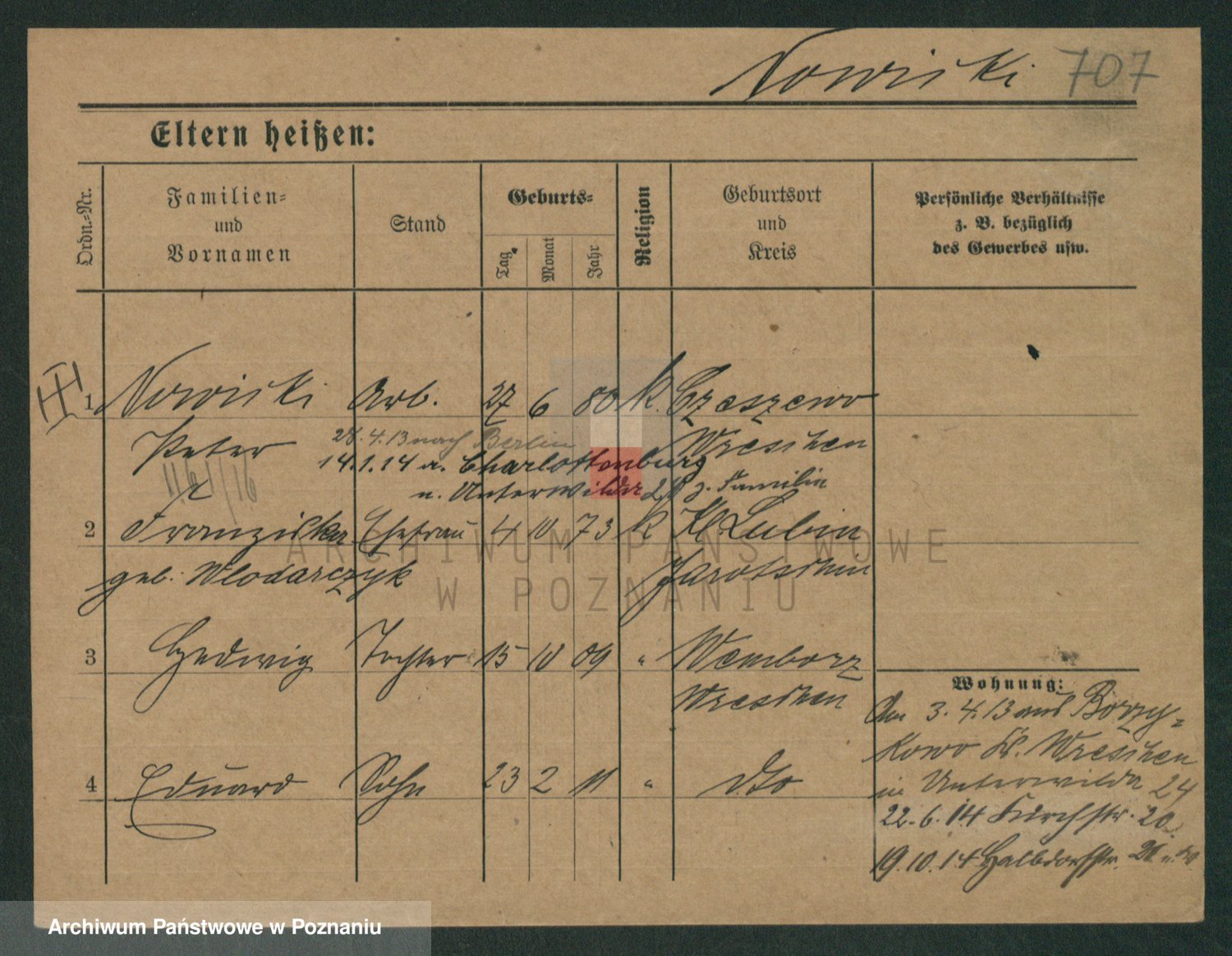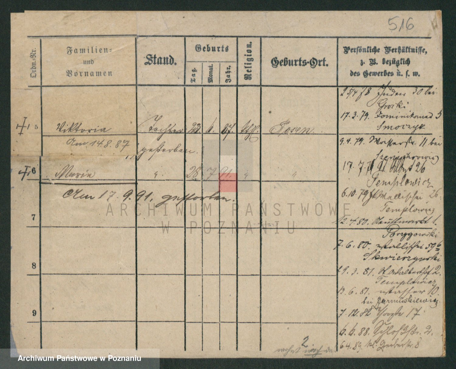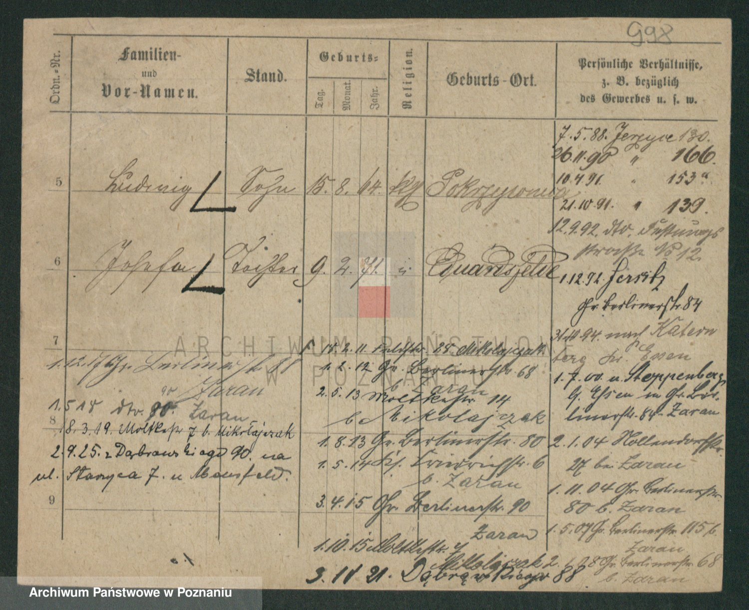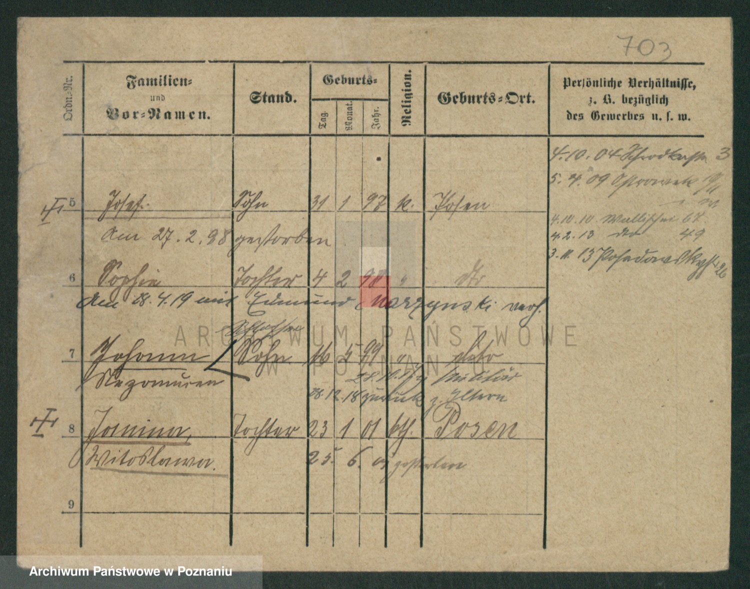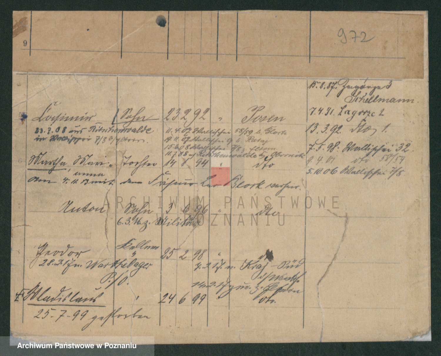 Podgląd karty osobowej dostępny jest po kliknięciu na nazwisko lub ikonkę karty. Można dokonywać powiększenia (ikony na górze) lub przechodzić między kolejnymi skanami (strzałki po bokach).