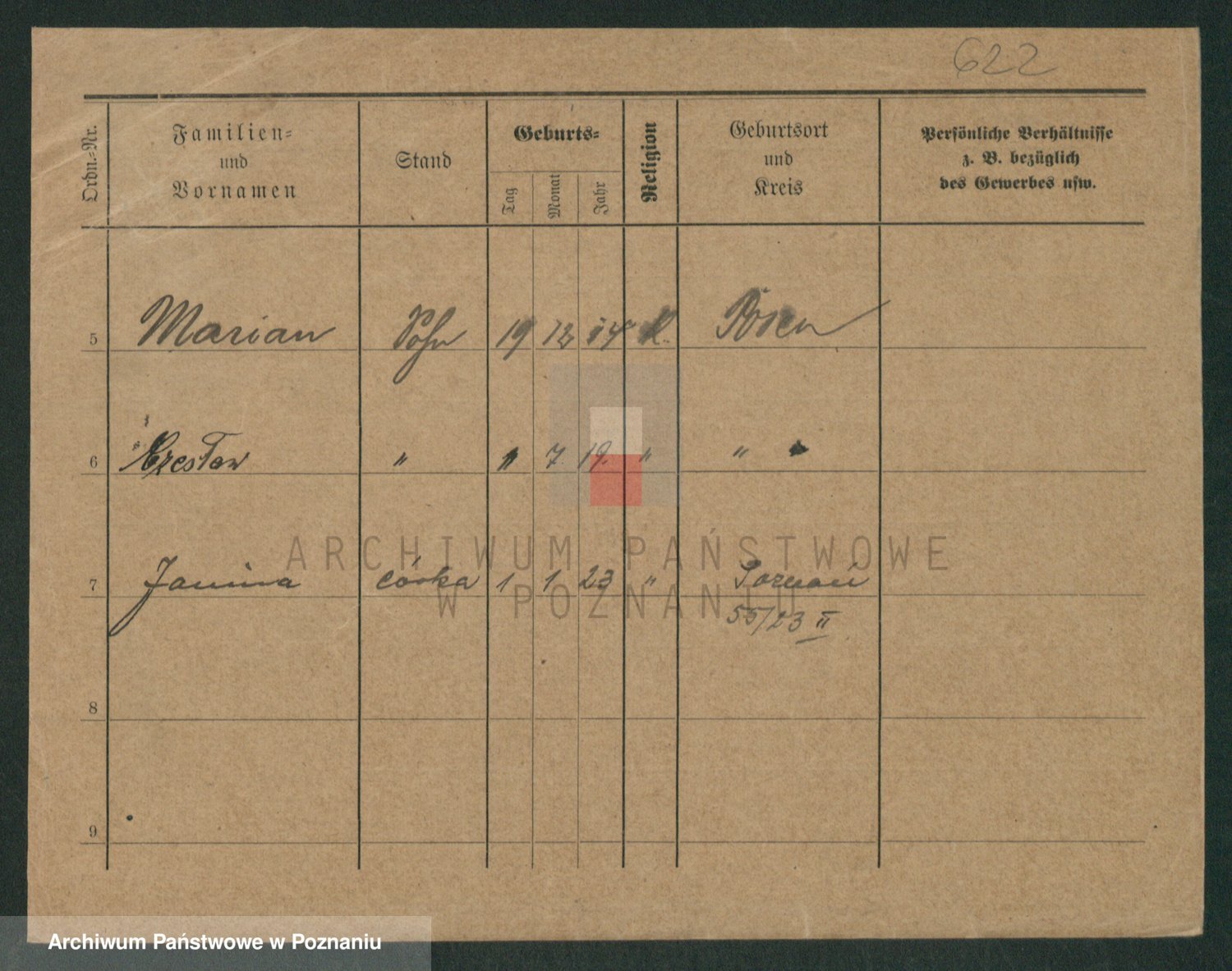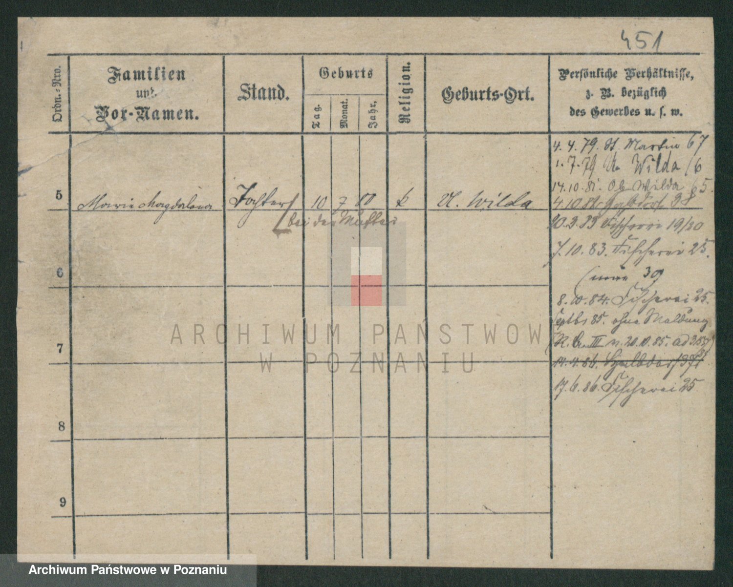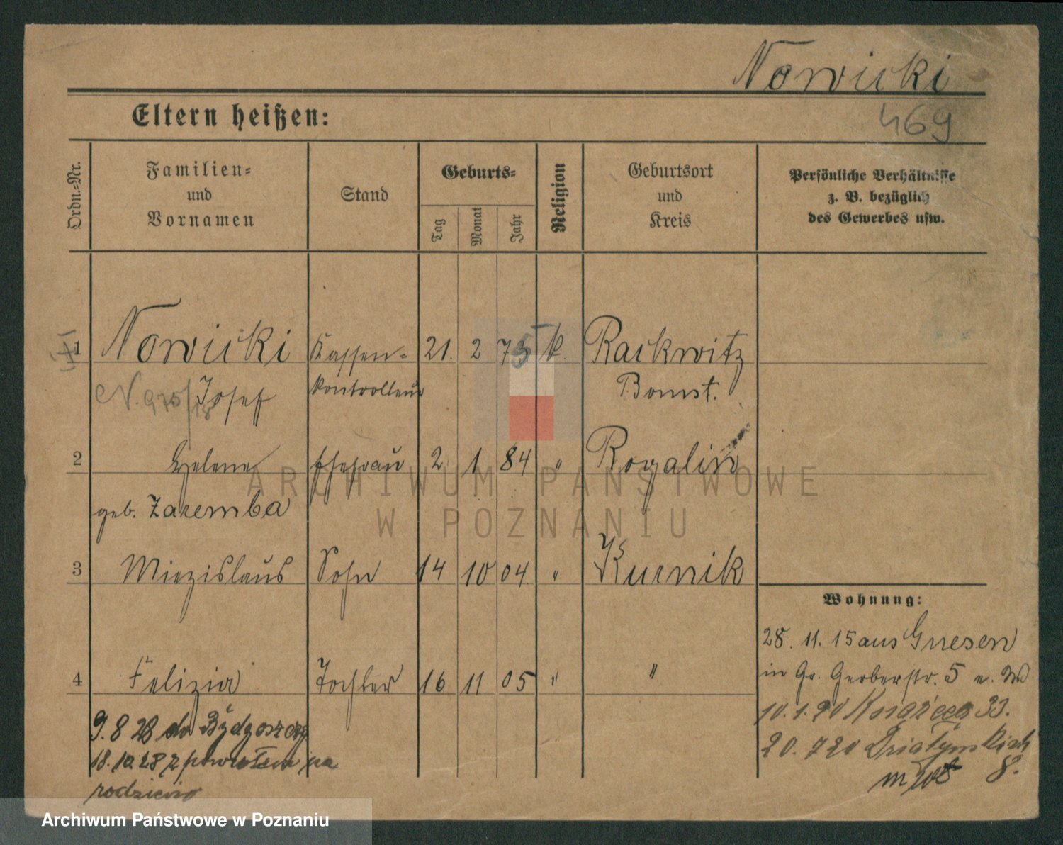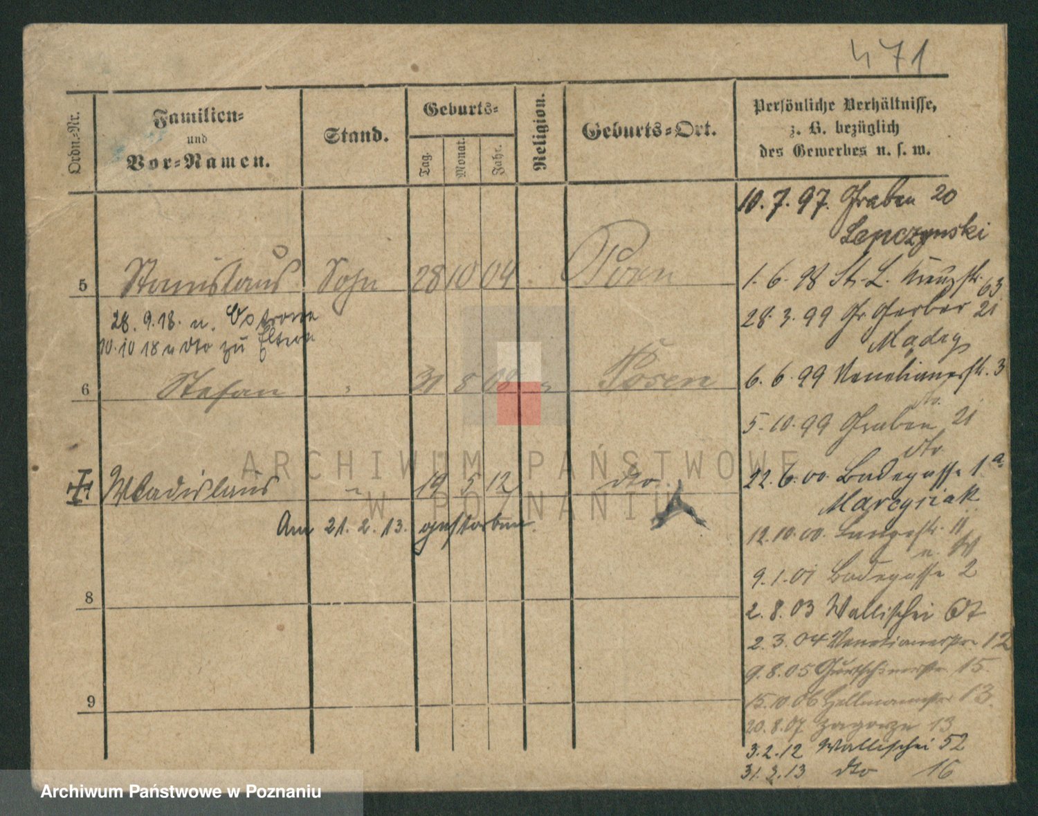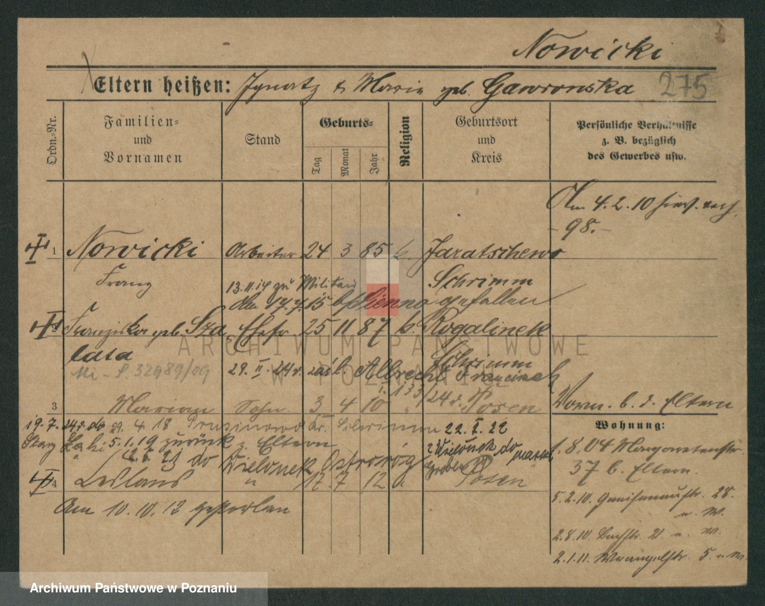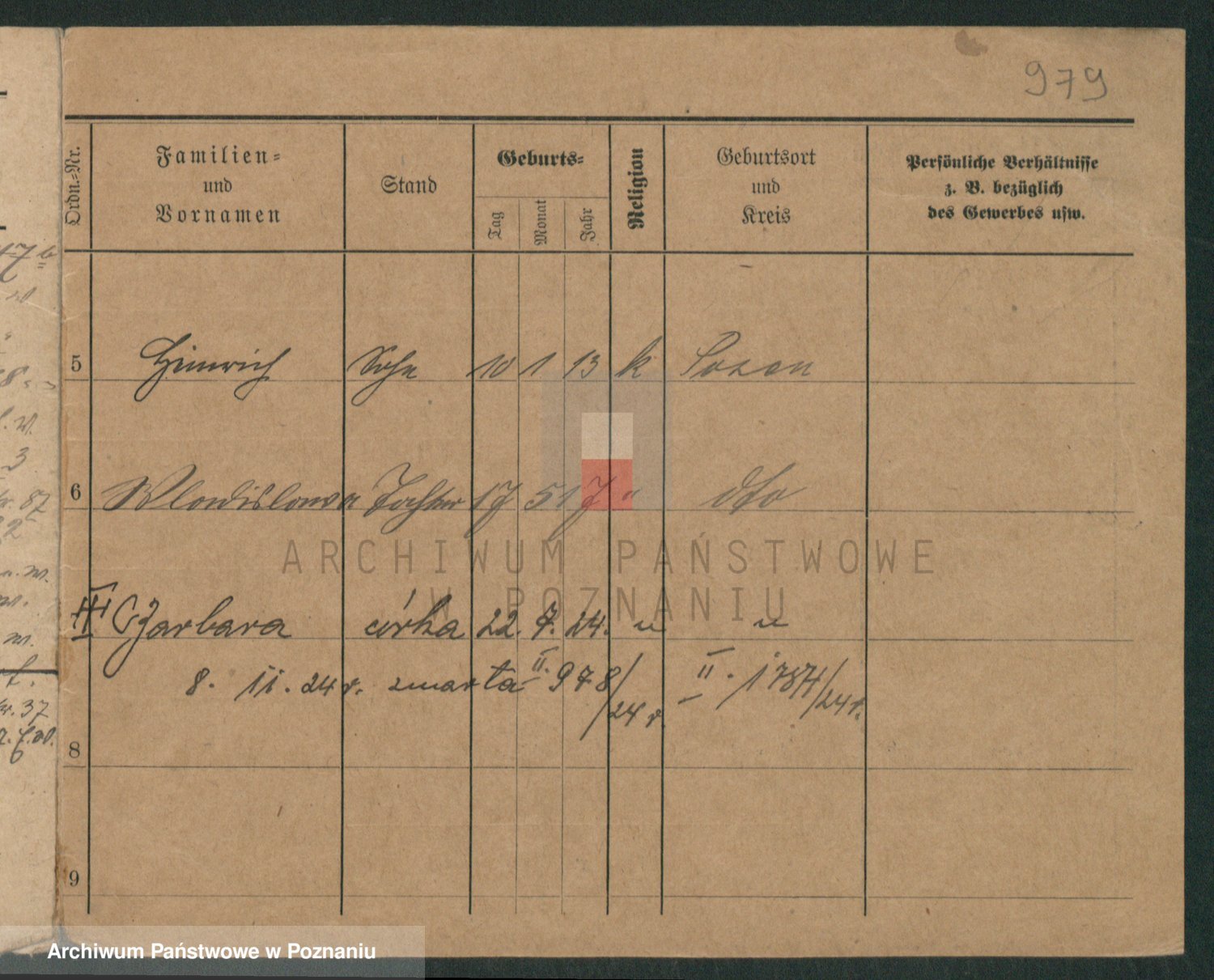 Podgląd karty osobowej dostępny jest po kliknięciu na nazwisko lub ikonkę karty. Można dokonywać powiększenia (ikony na górze) lub przechodzić między kolejnymi skanami (strzałki po bokach).