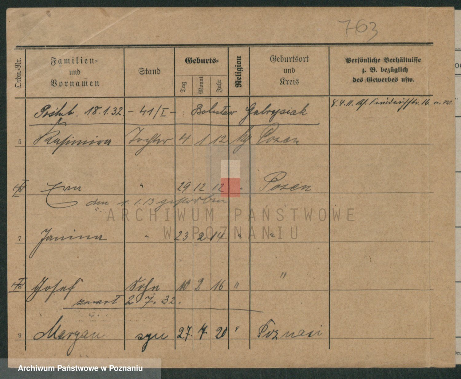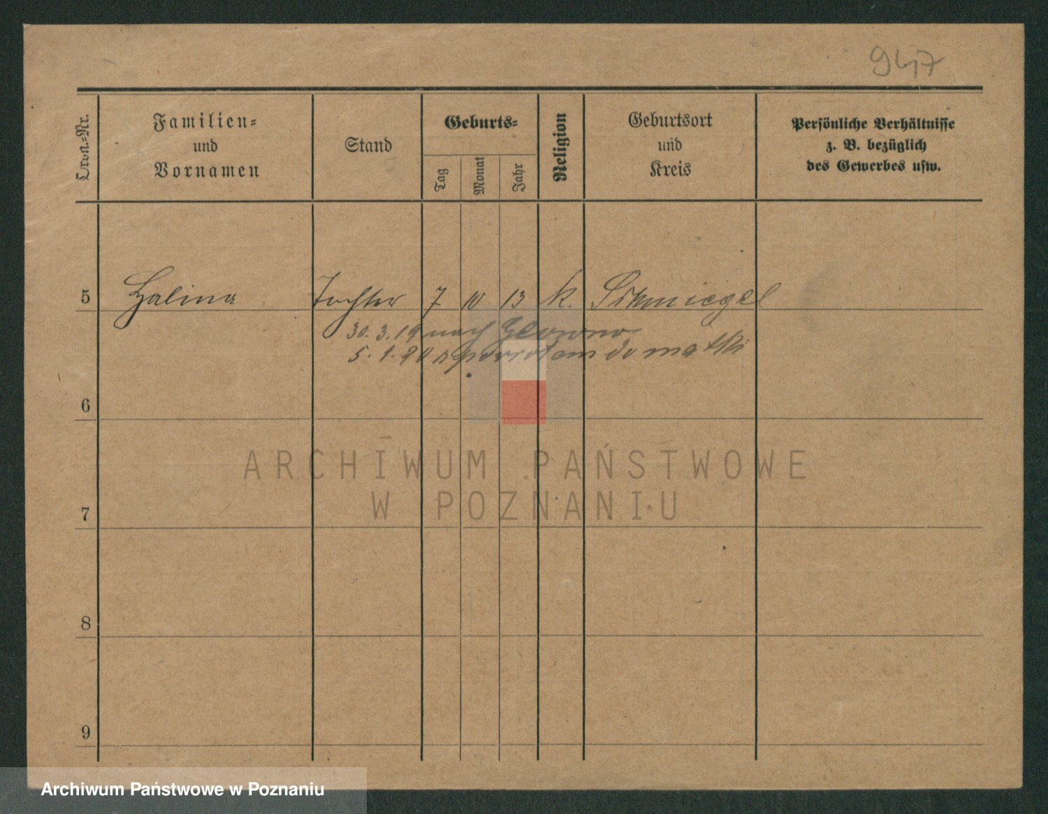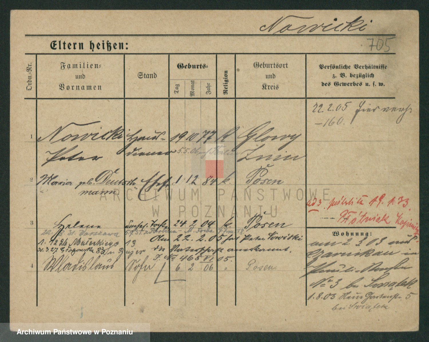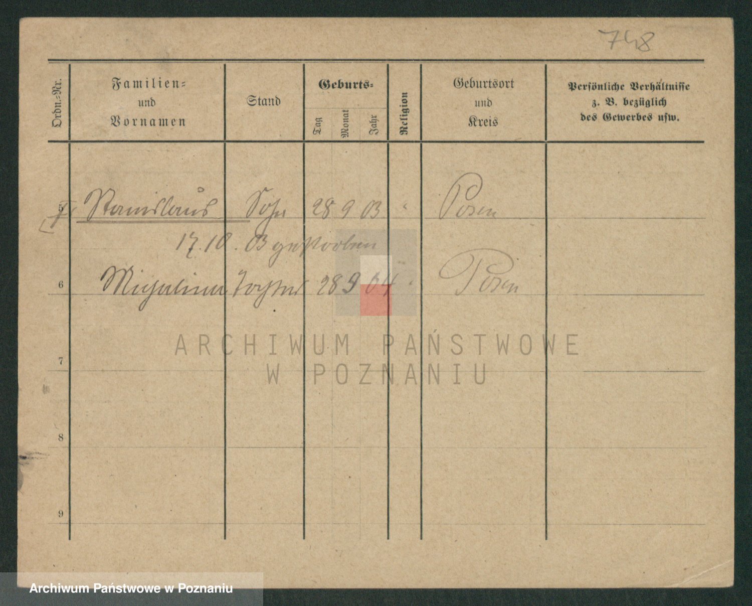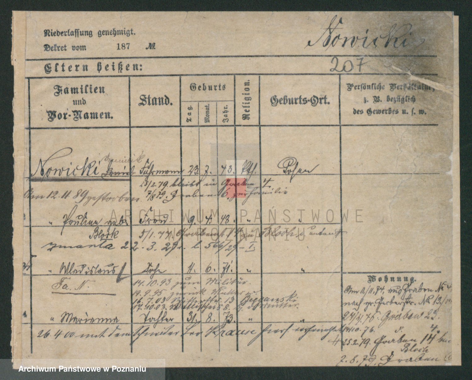 Podgląd karty osobowej dostępny jest po kliknięciu na nazwisko lub ikonkę karty. Można dokonywać powiększenia (ikony na górze) lub przechodzić między kolejnymi skanami (strzałki po bokach).