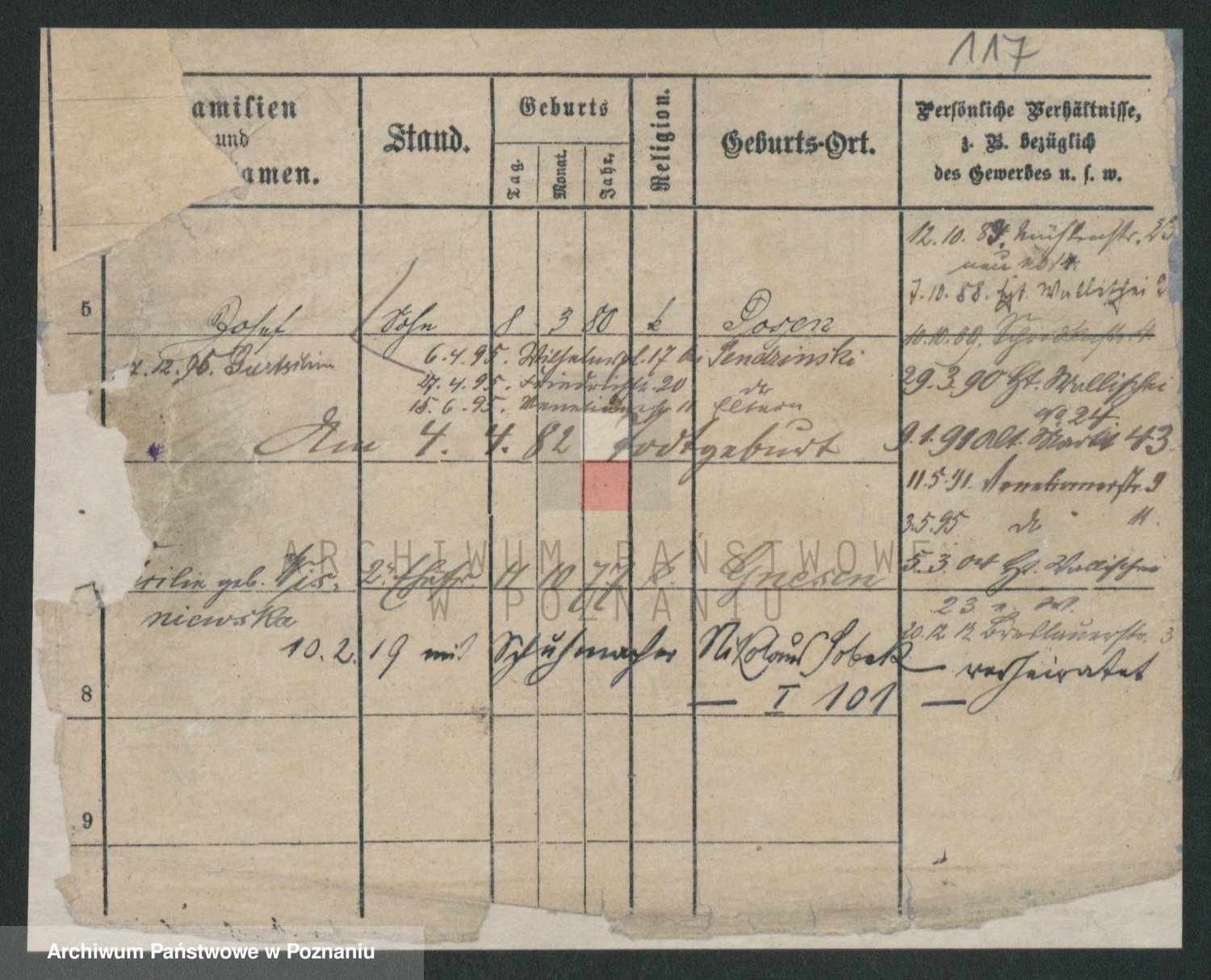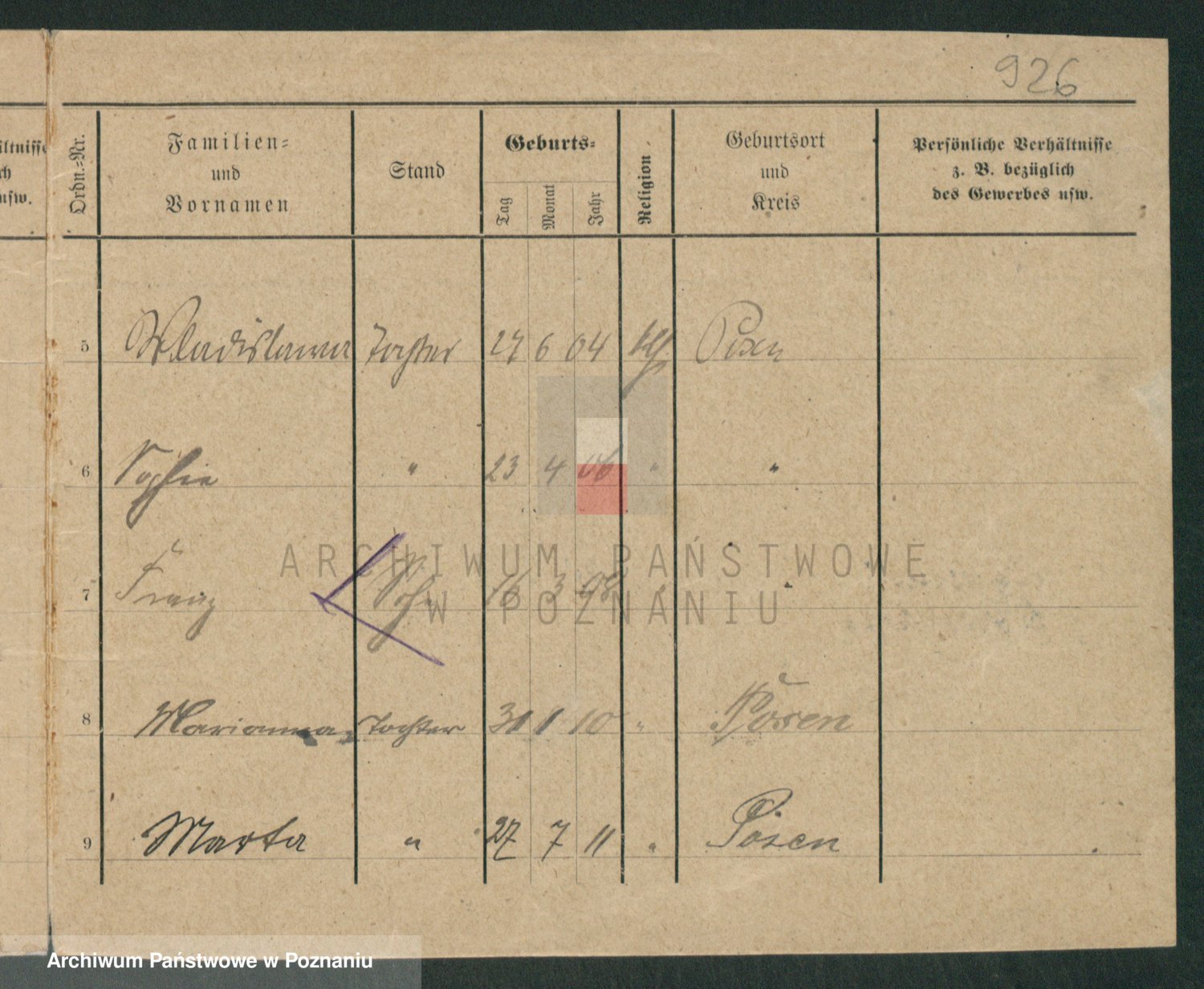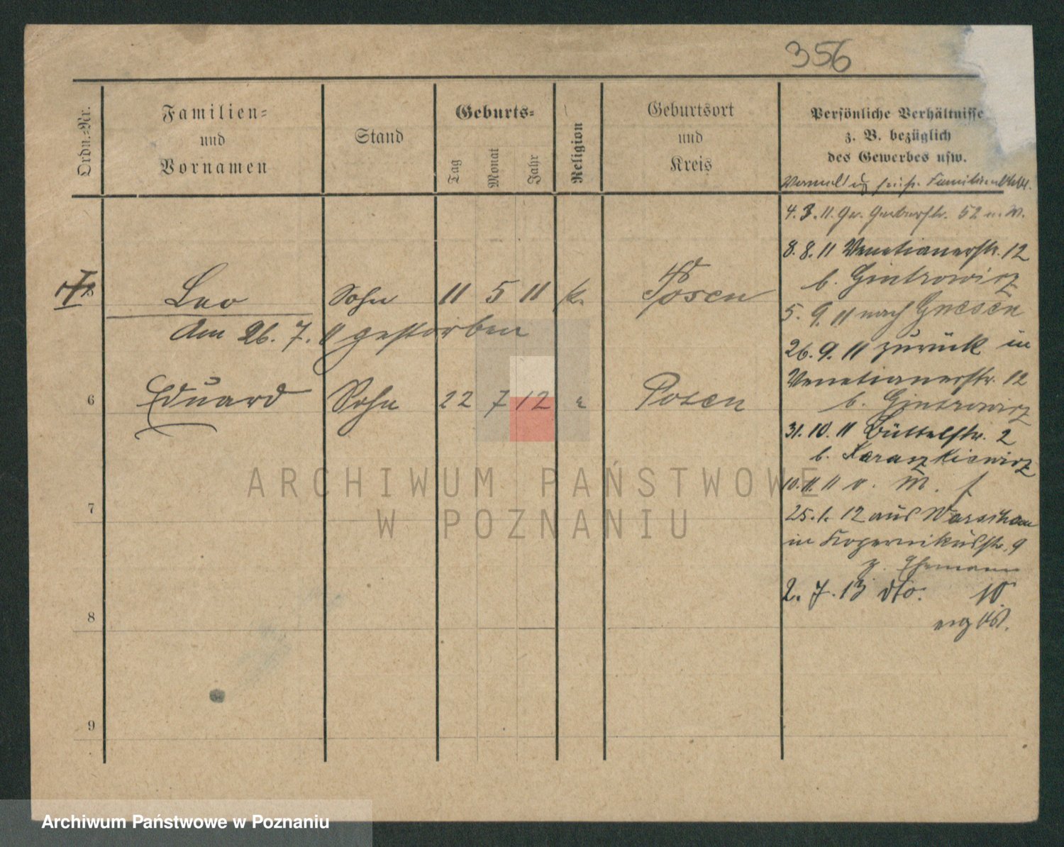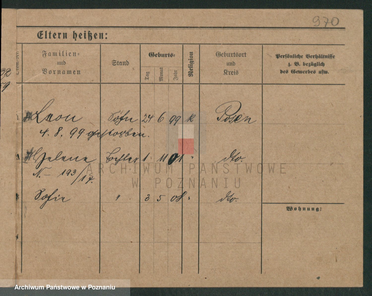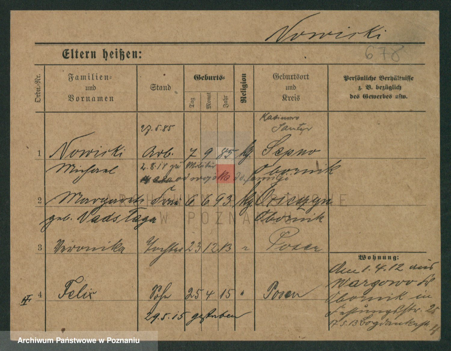 Podgląd karty osobowej dostępny jest po kliknięciu na nazwisko lub ikonkę karty. Można dokonywać powiększenia (ikony na górze) lub przechodzić między kolejnymi skanami (strzałki po bokach).