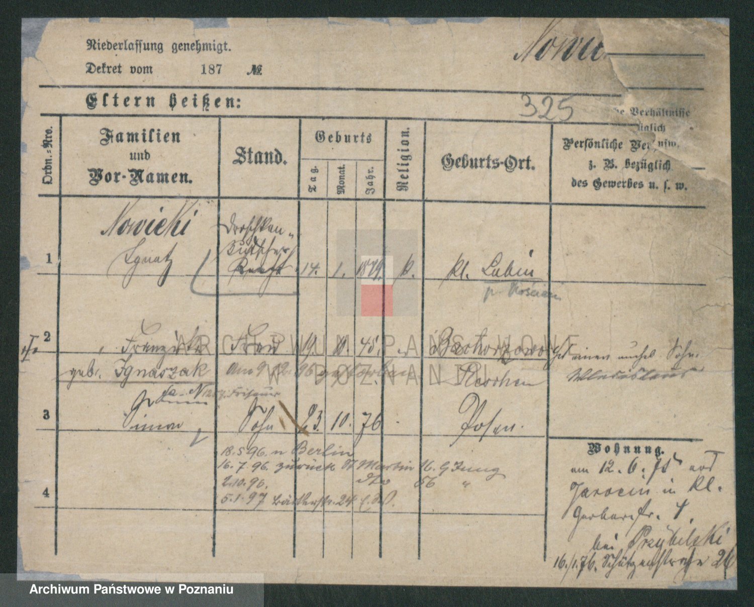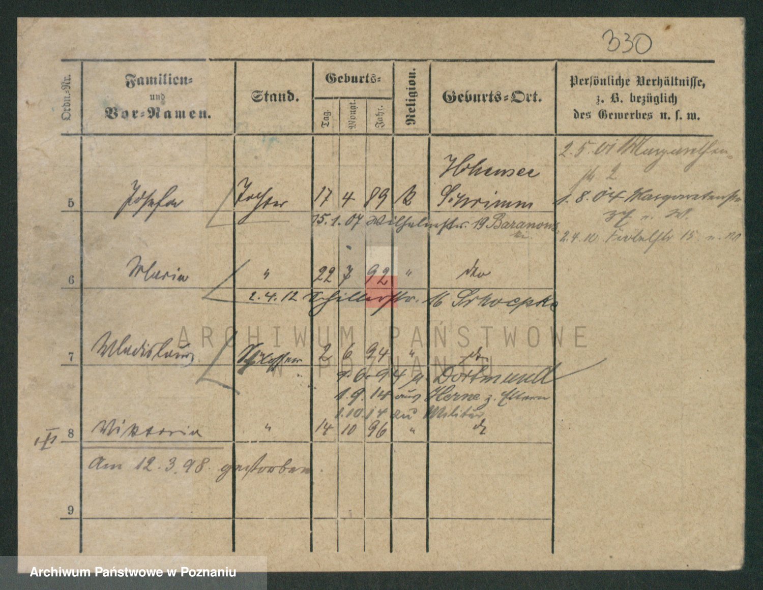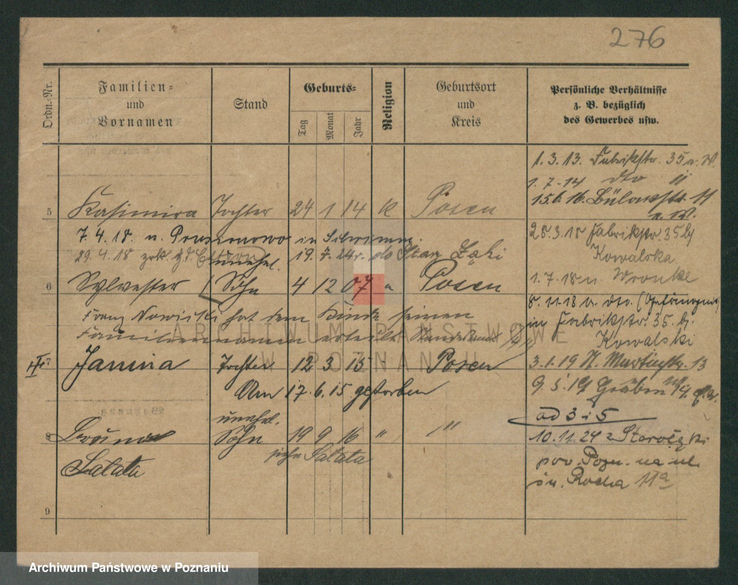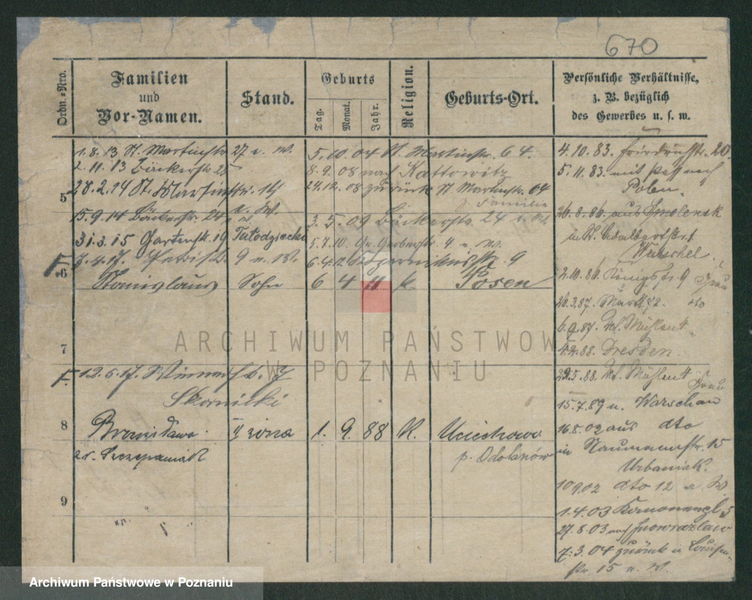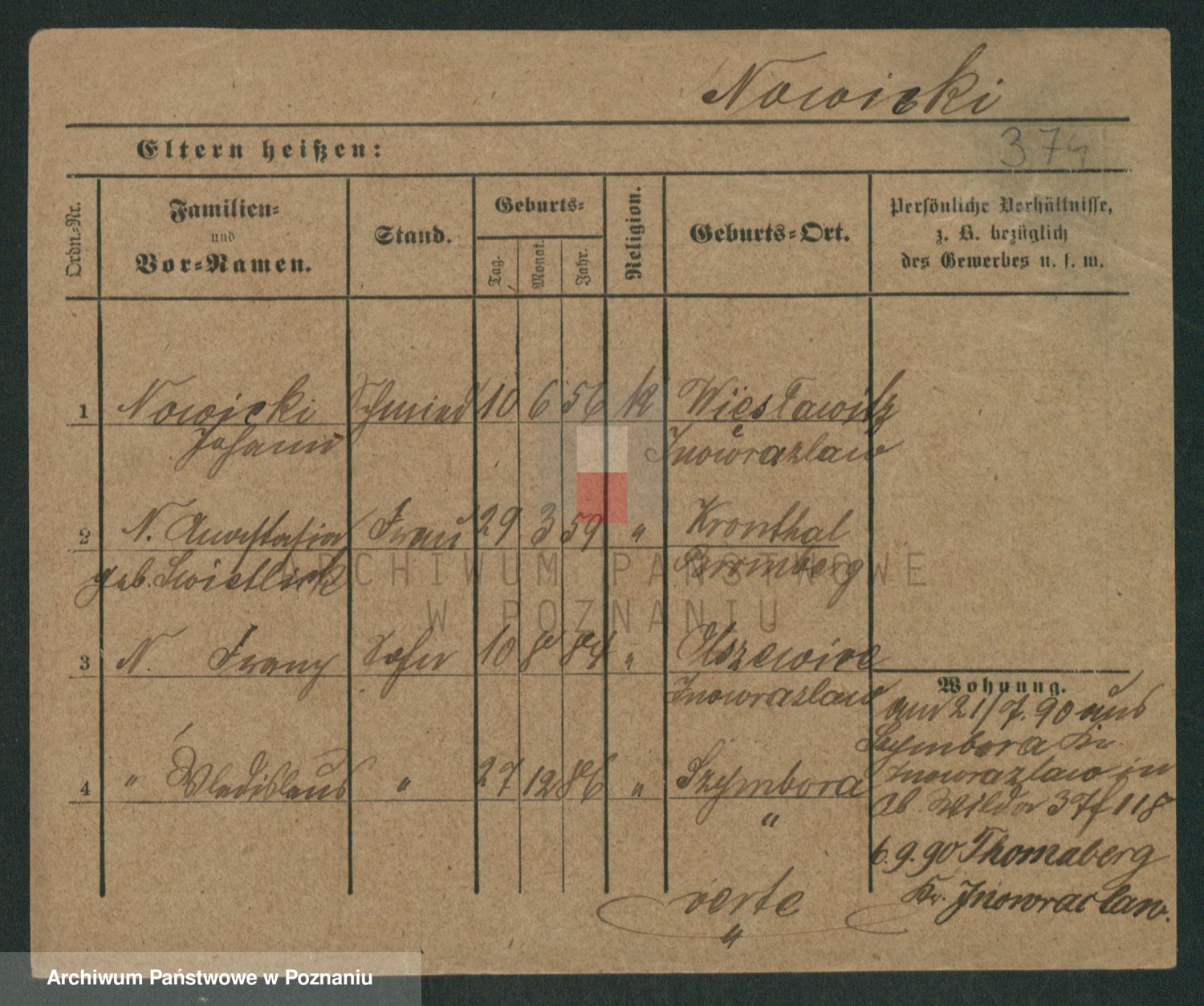 Podgląd karty osobowej dostępny jest po kliknięciu na nazwisko lub ikonkę karty. Można dokonywać powiększenia (ikony na górze) lub przechodzić między kolejnymi skanami (strzałki po bokach).