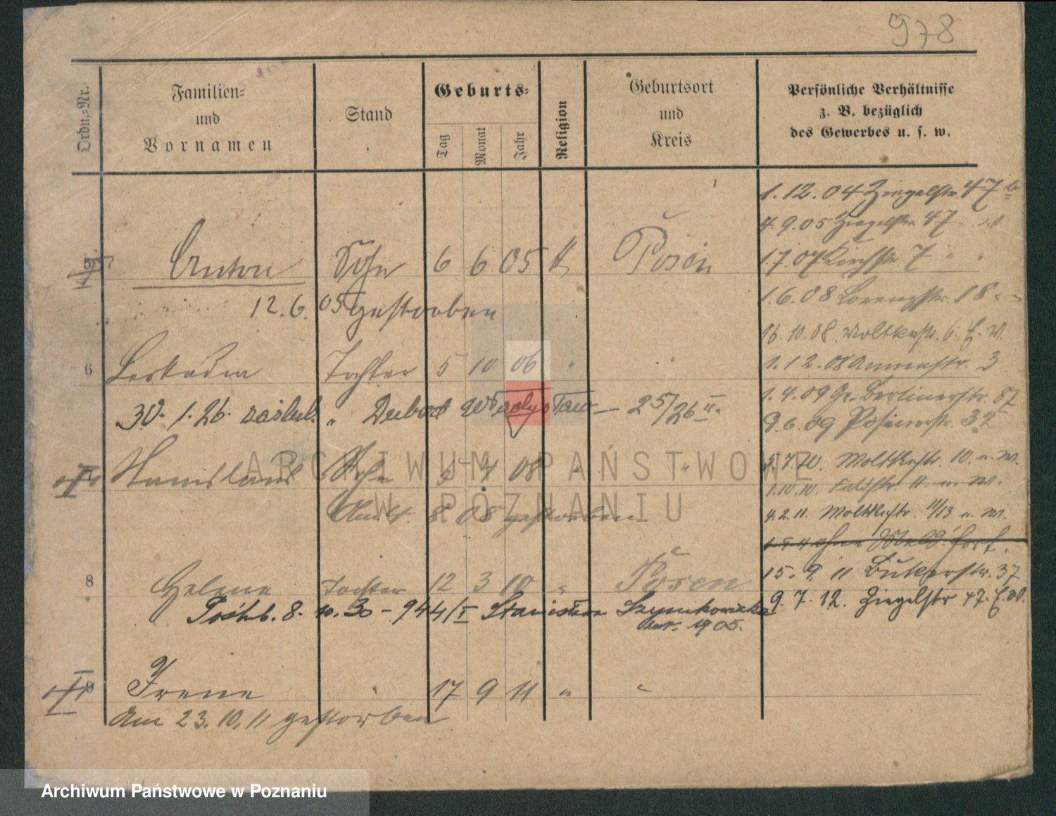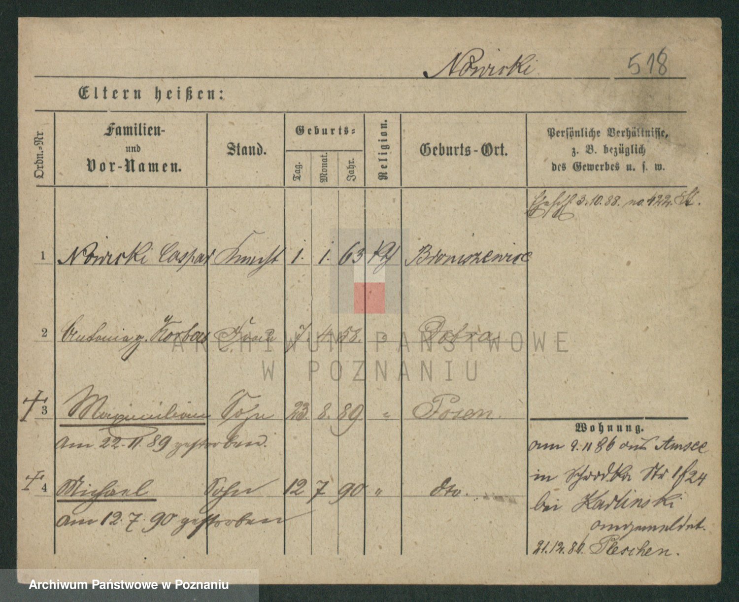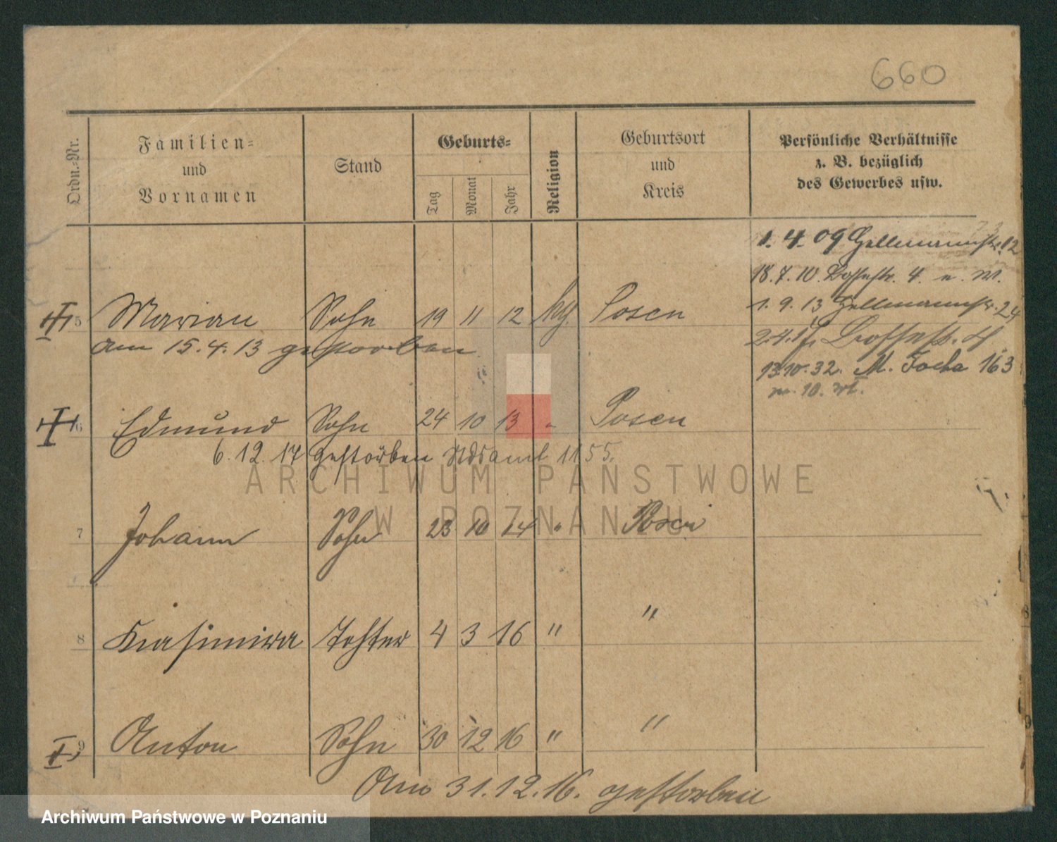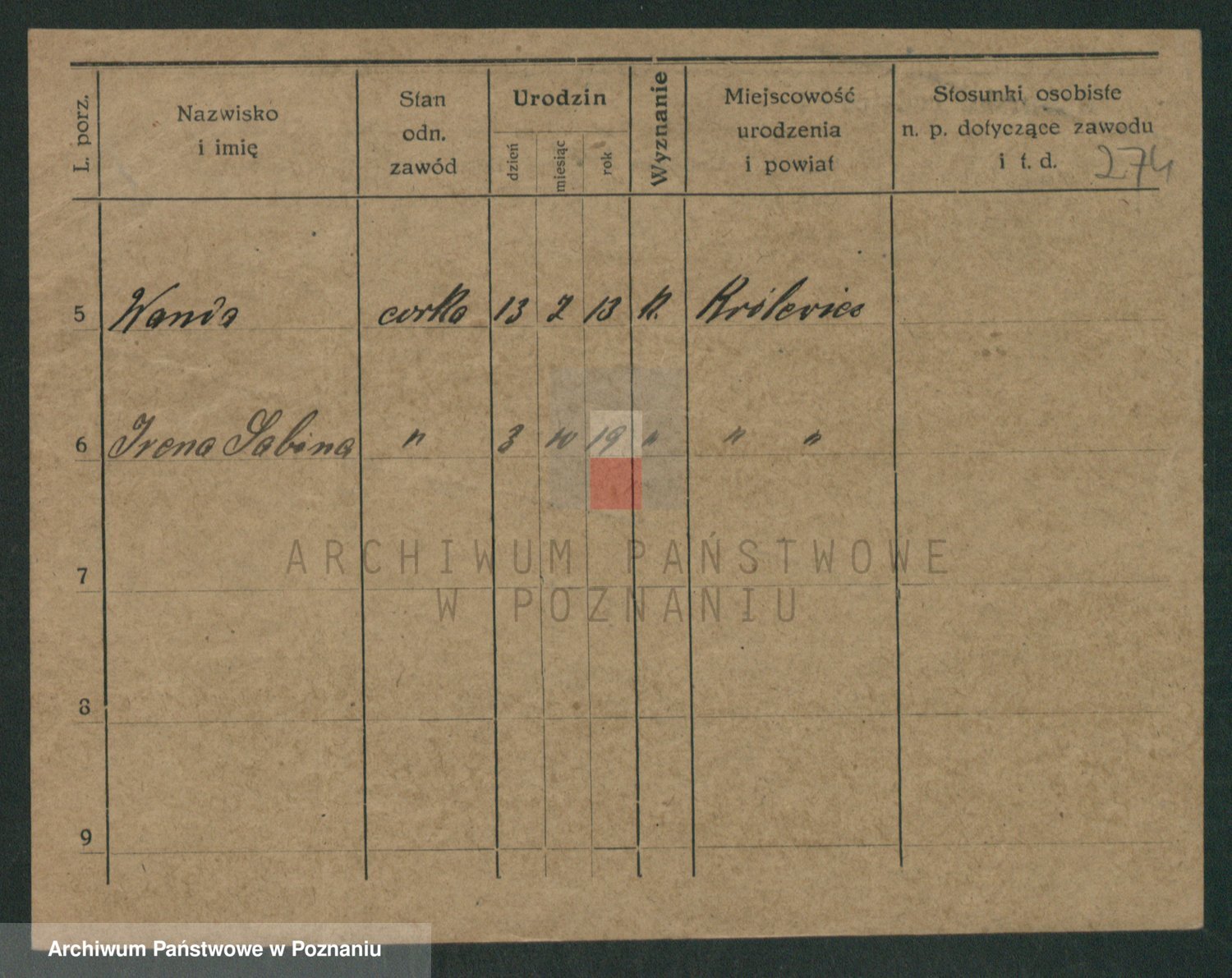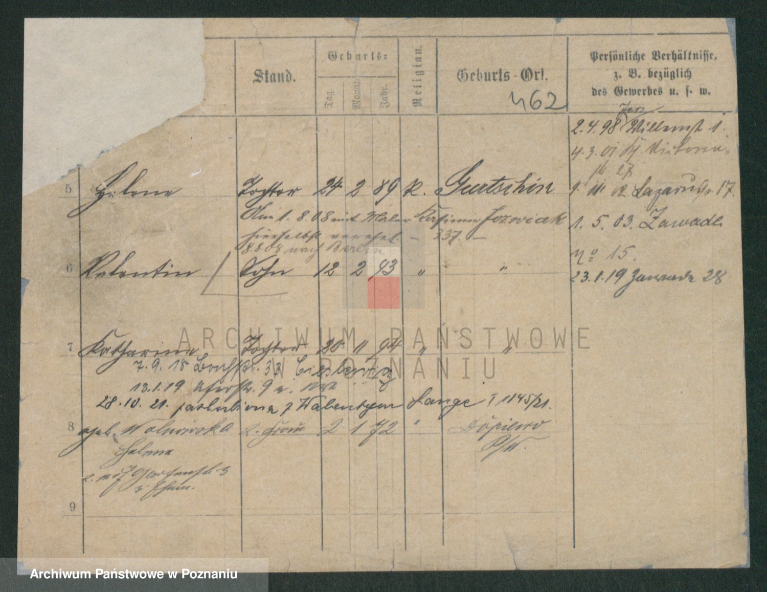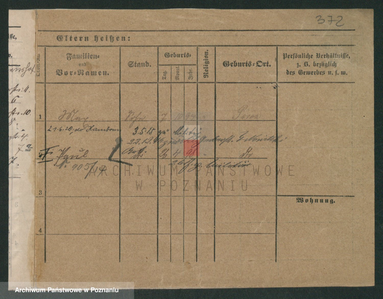 Podgląd karty osobowej dostępny jest po kliknięciu na nazwisko lub ikonkę karty. Można dokonywać powiększenia (ikony na górze) lub przechodzić między kolejnymi skanami (strzałki po bokach).