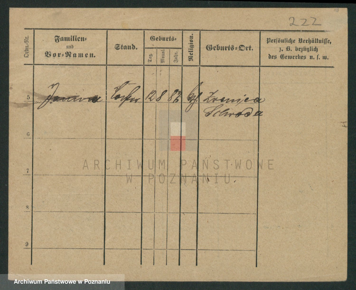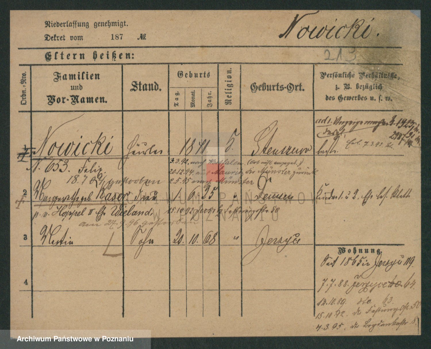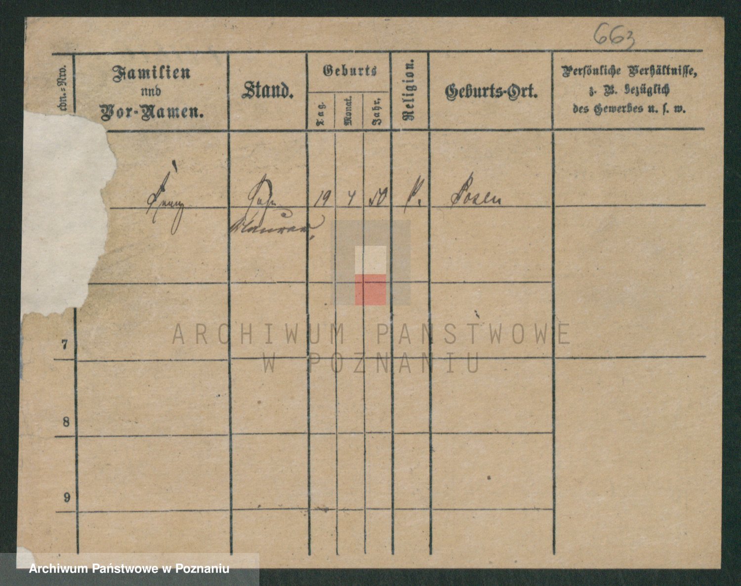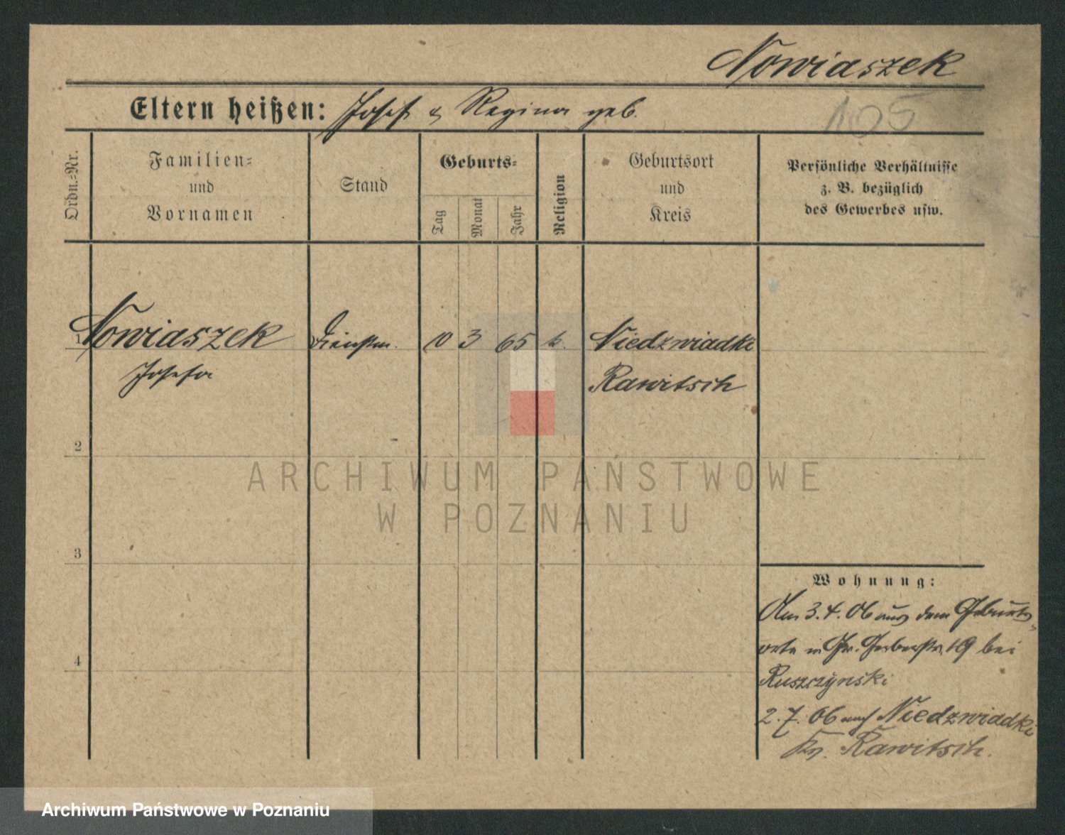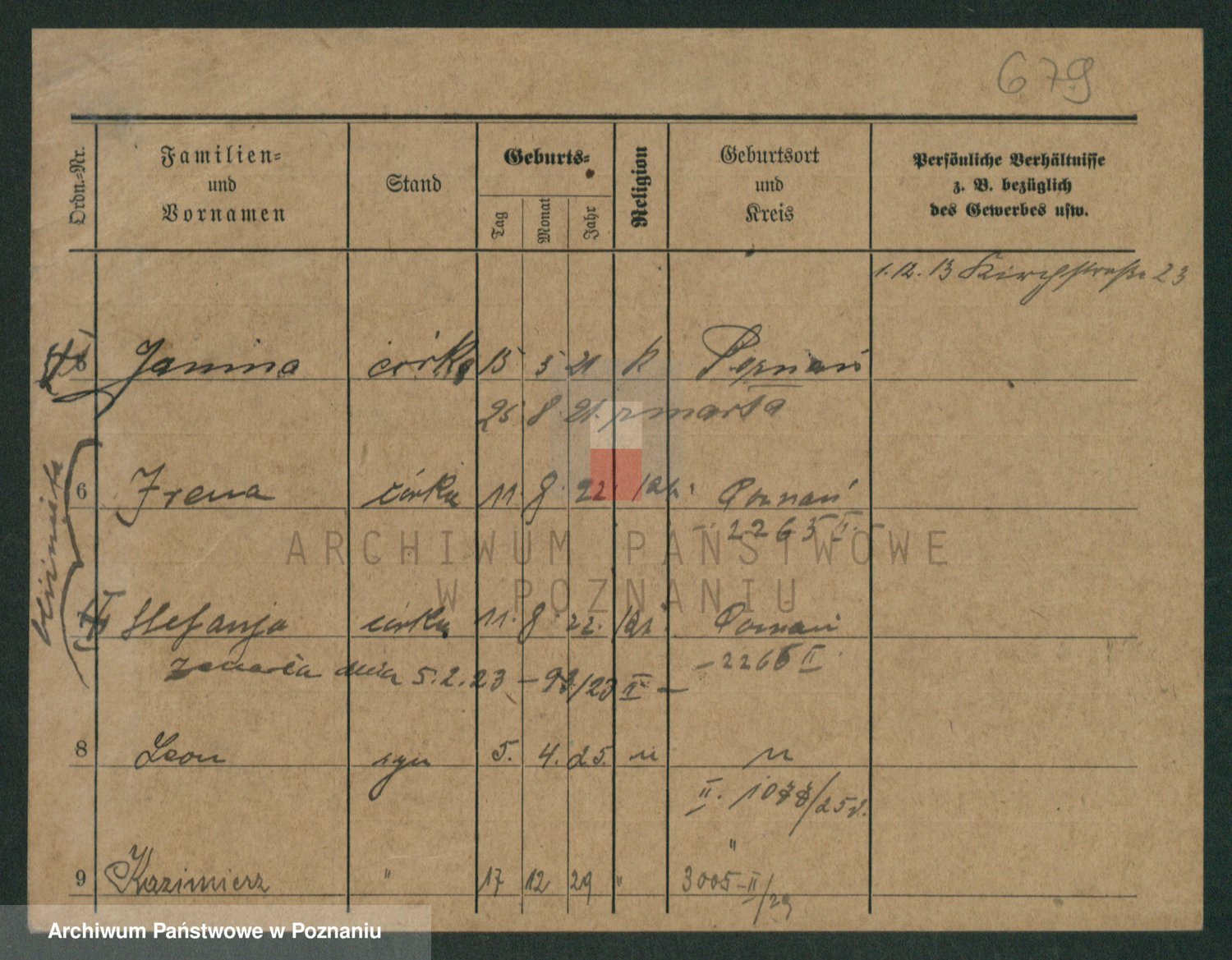 Podgląd karty osobowej dostępny jest po kliknięciu na nazwisko lub ikonkę karty. Można dokonywać powiększenia (ikony na górze) lub przechodzić między kolejnymi skanami (strzałki po bokach).