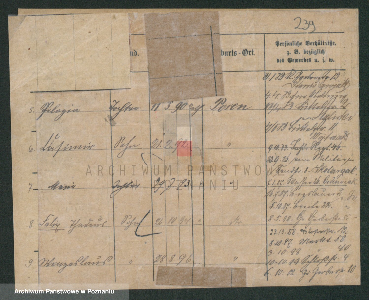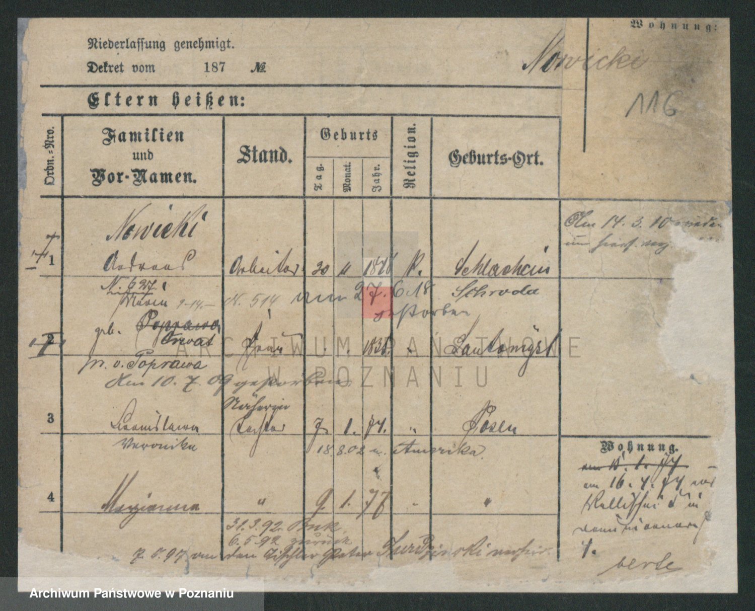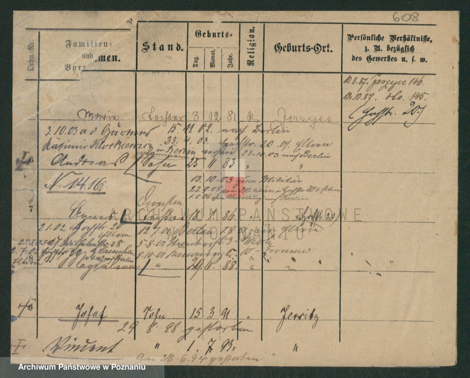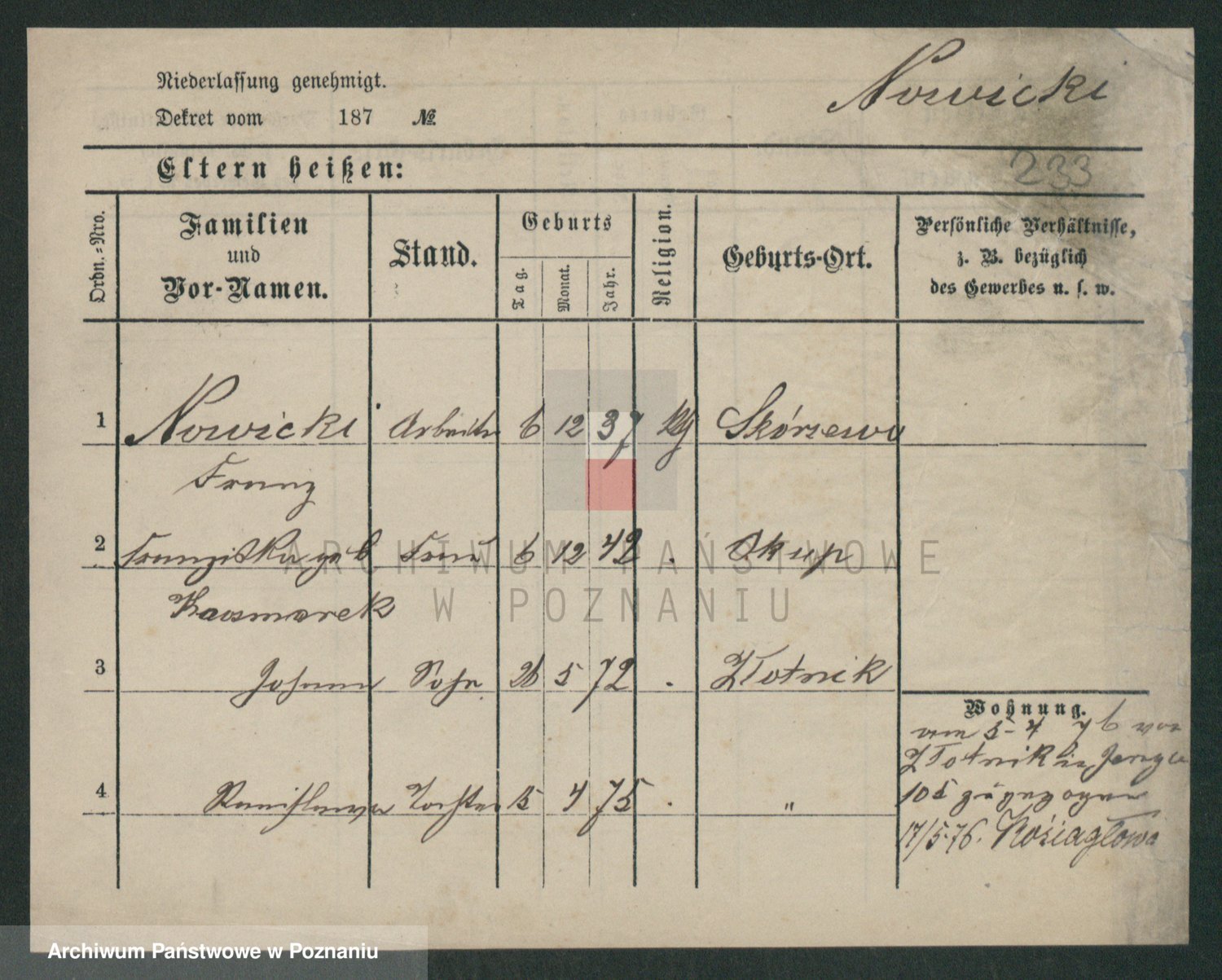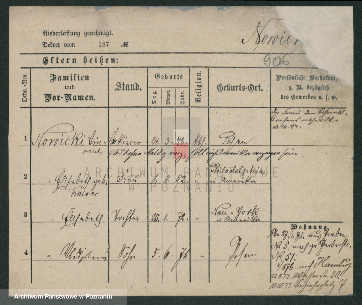 Podgląd karty osobowej dostępny jest po kliknięciu na nazwisko lub ikonkę karty. Można dokonywać powiększenia (ikony na górze) lub przechodzić między kolejnymi skanami (strzałki po bokach).