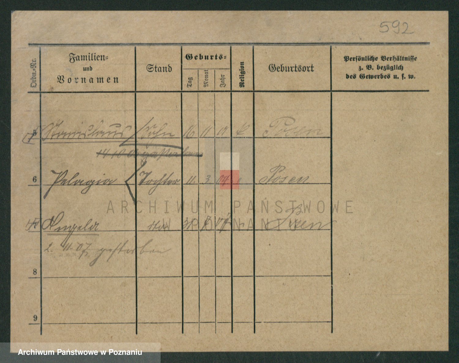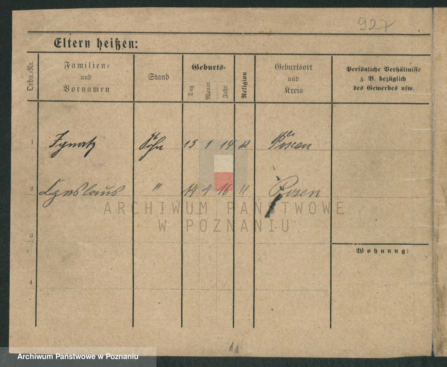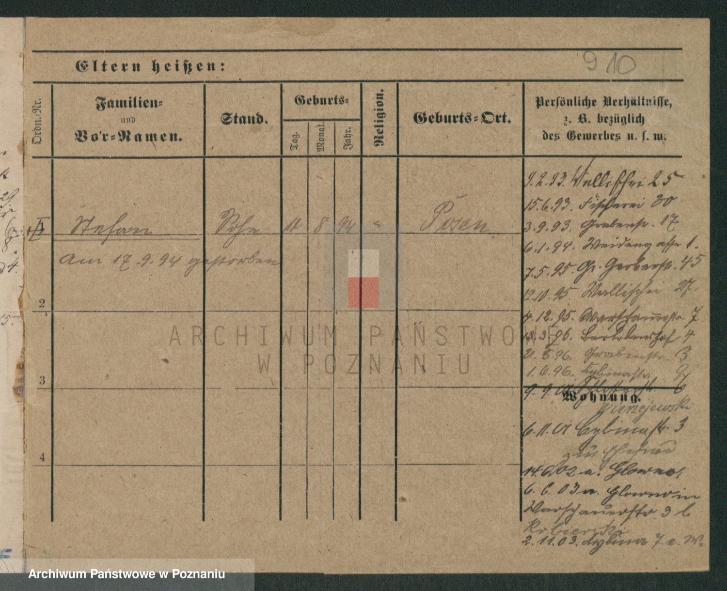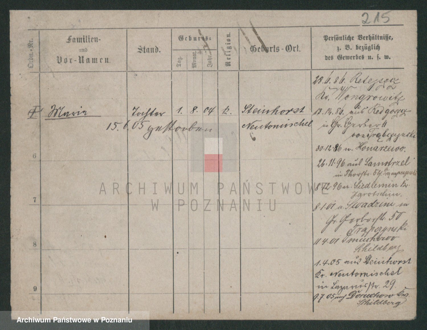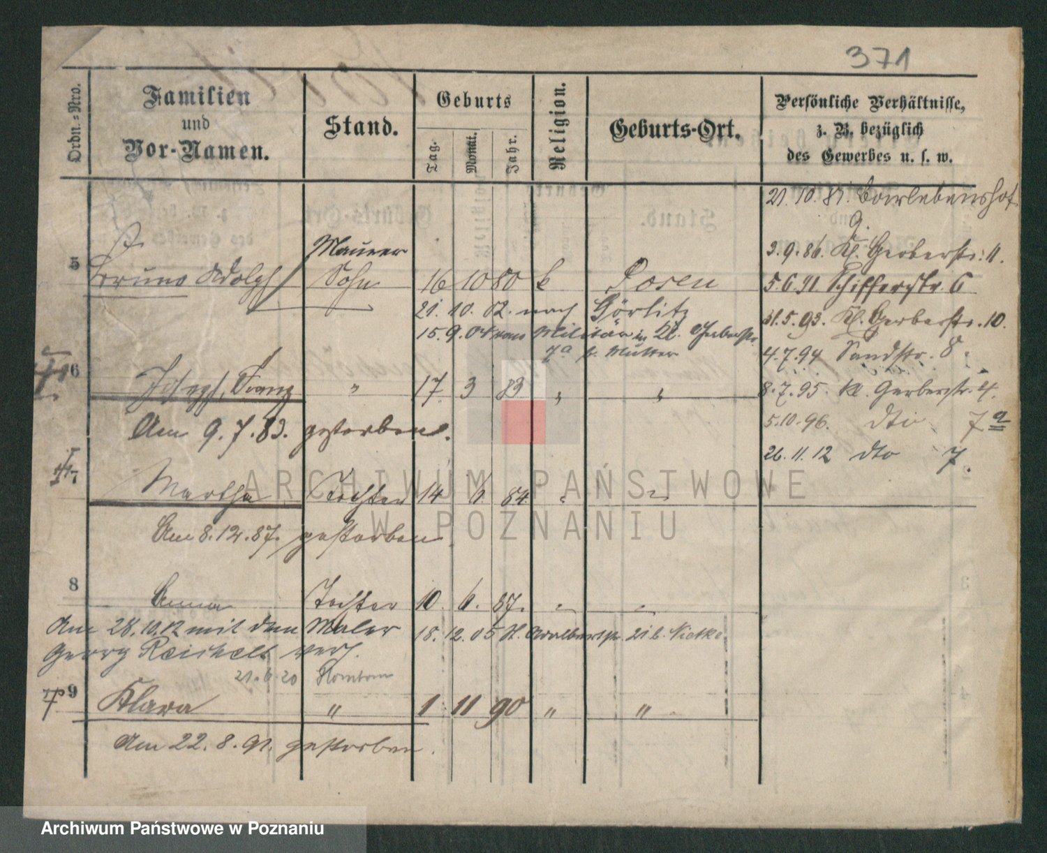 Podgląd karty osobowej dostępny jest po kliknięciu na nazwisko lub ikonkę karty. Można dokonywać powiększenia (ikony na górze) lub przechodzić między kolejnymi skanami (strzałki po bokach).
