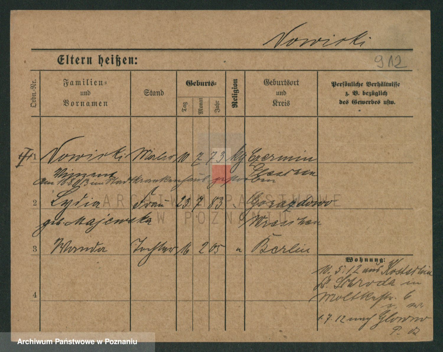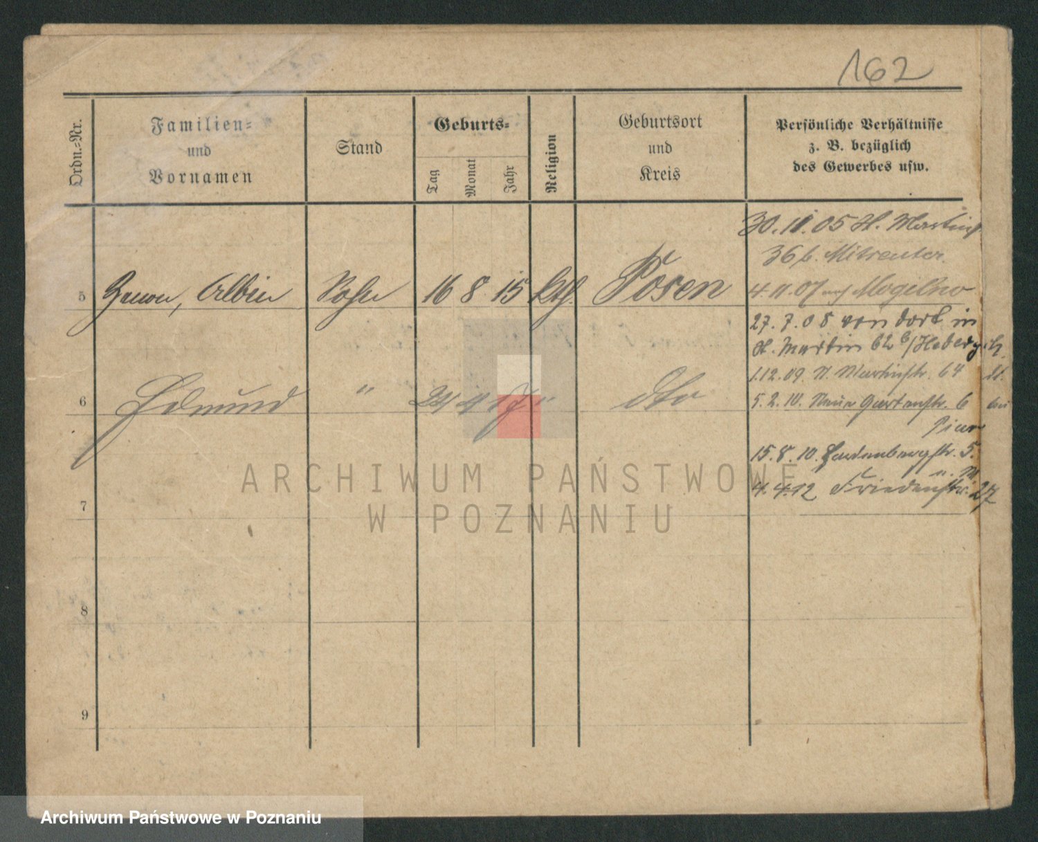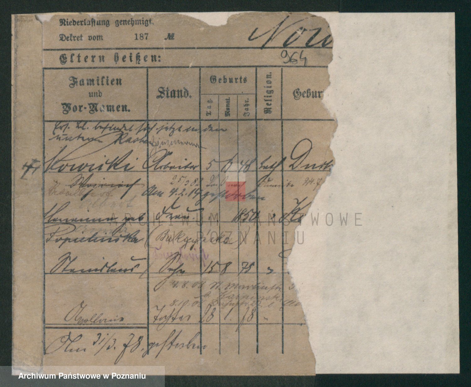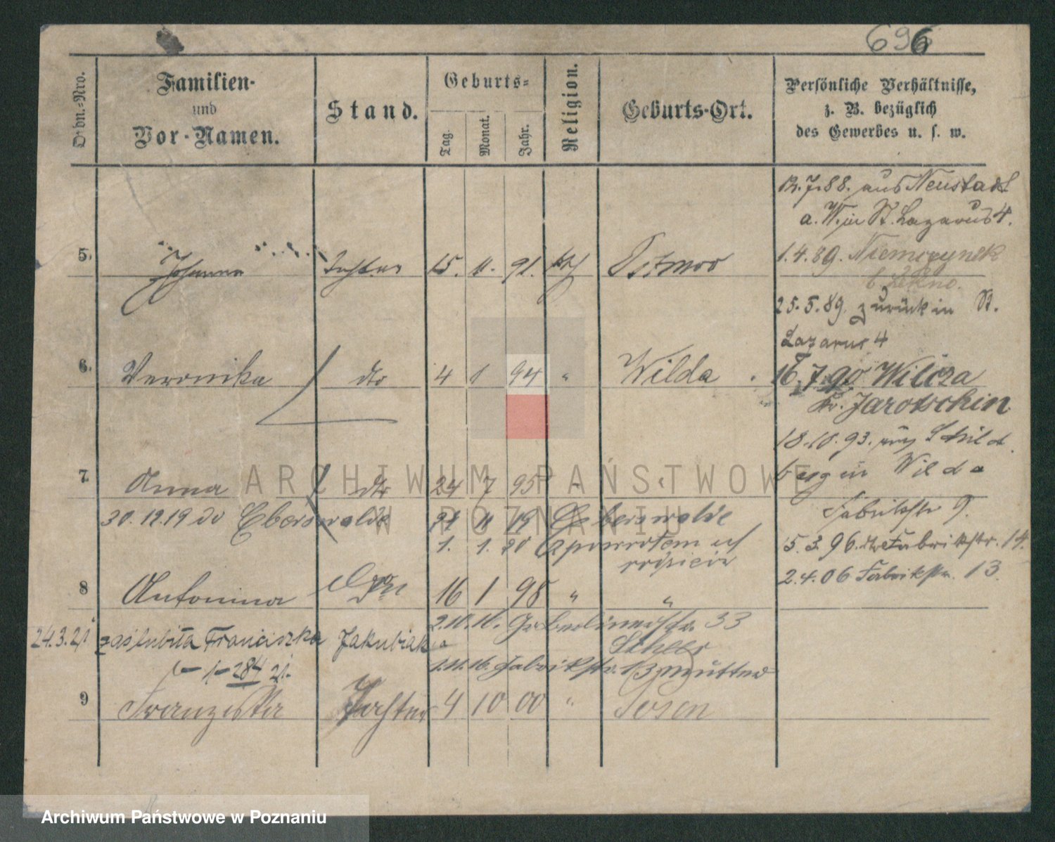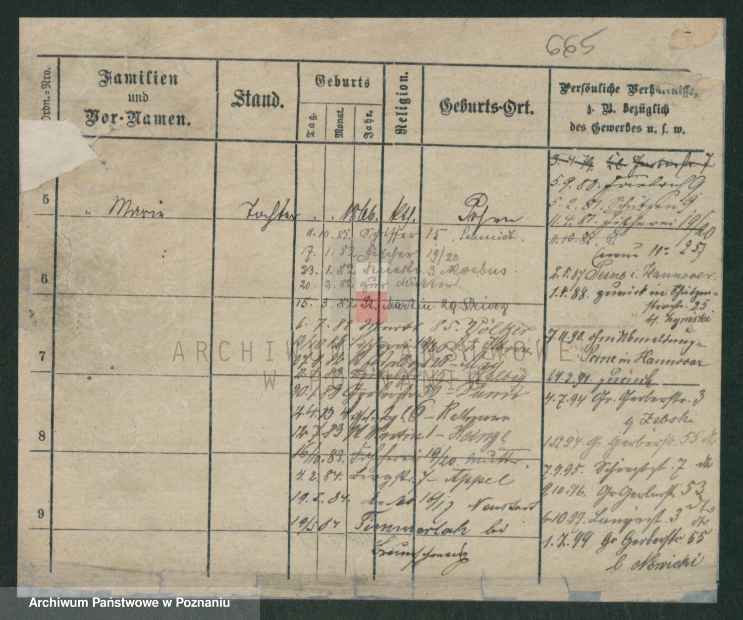 Podgląd karty osobowej dostępny jest po kliknięciu na nazwisko lub ikonkę karty. Można dokonywać powiększenia (ikony na górze) lub przechodzić między kolejnymi skanami (strzałki po bokach).