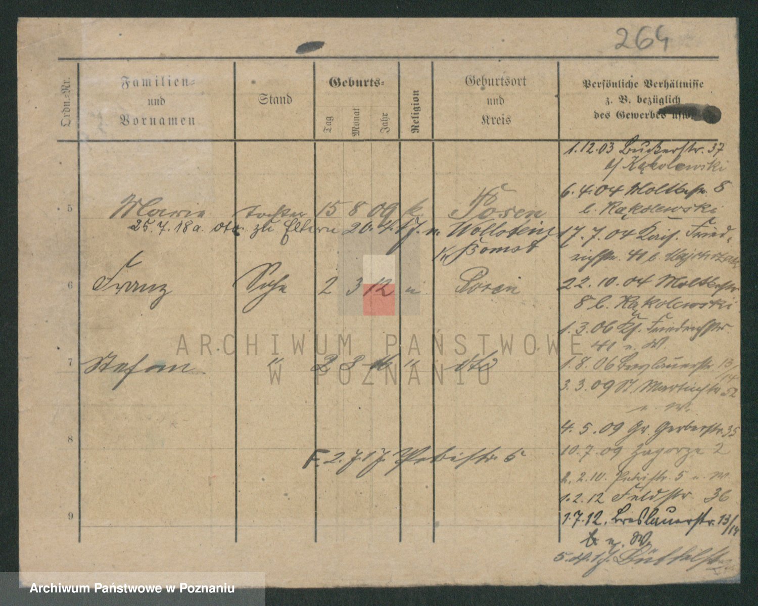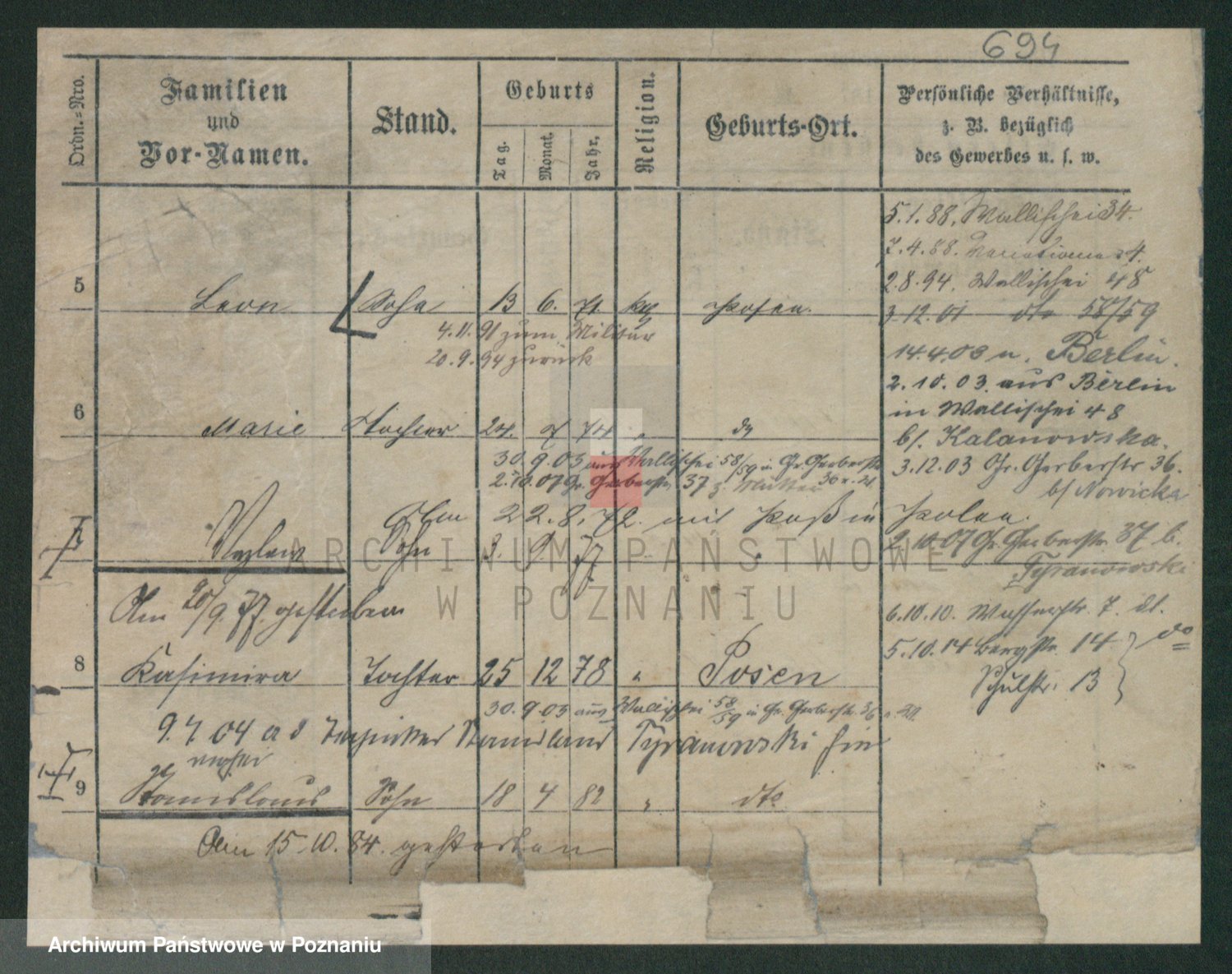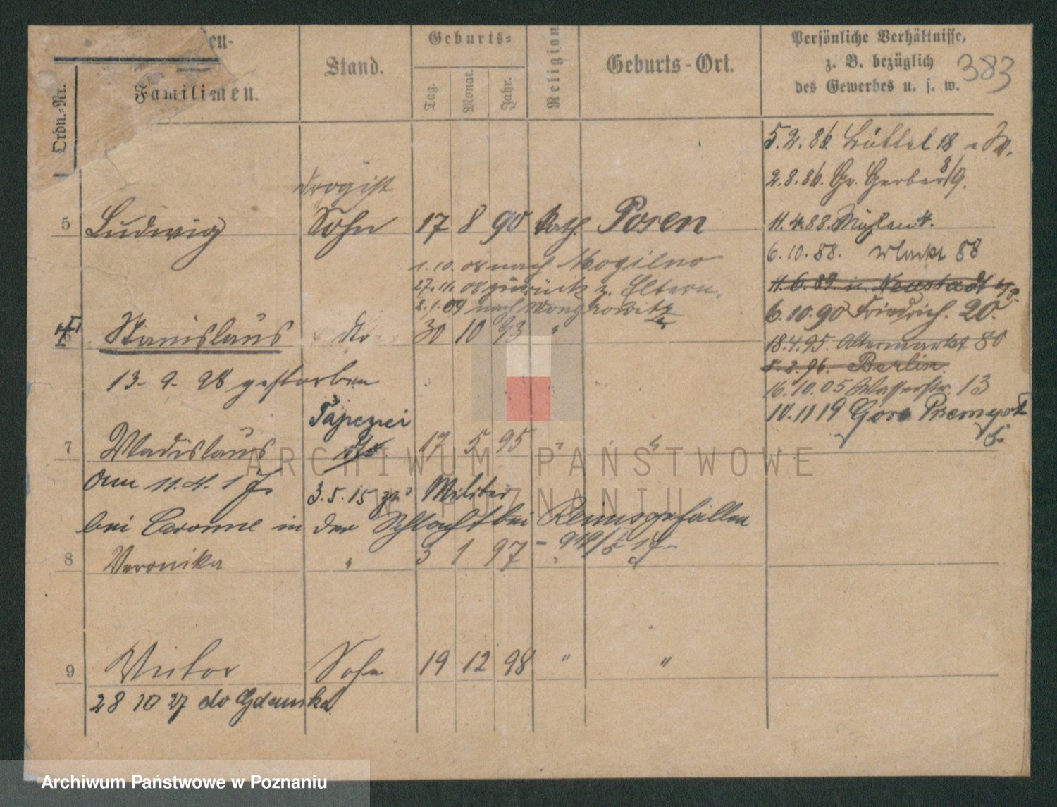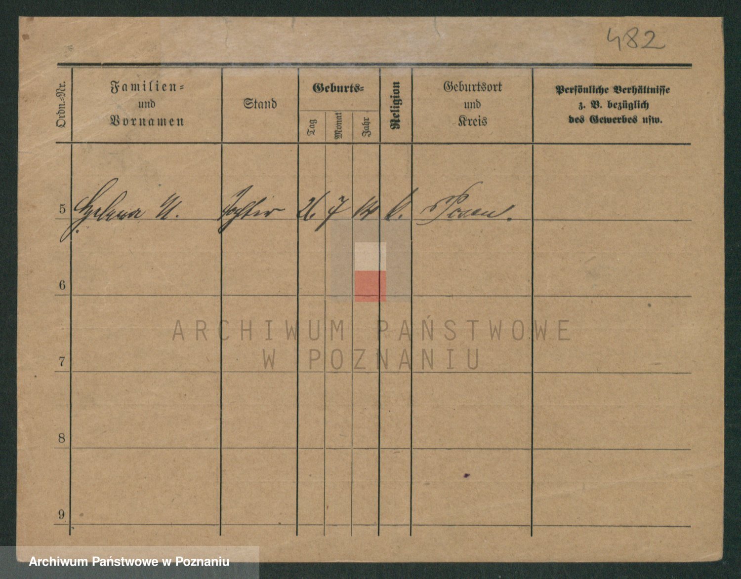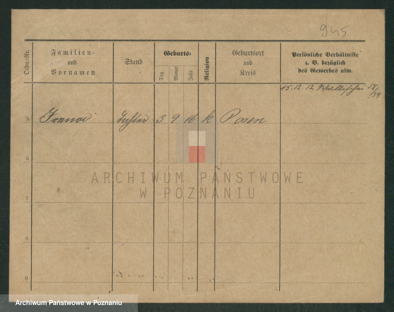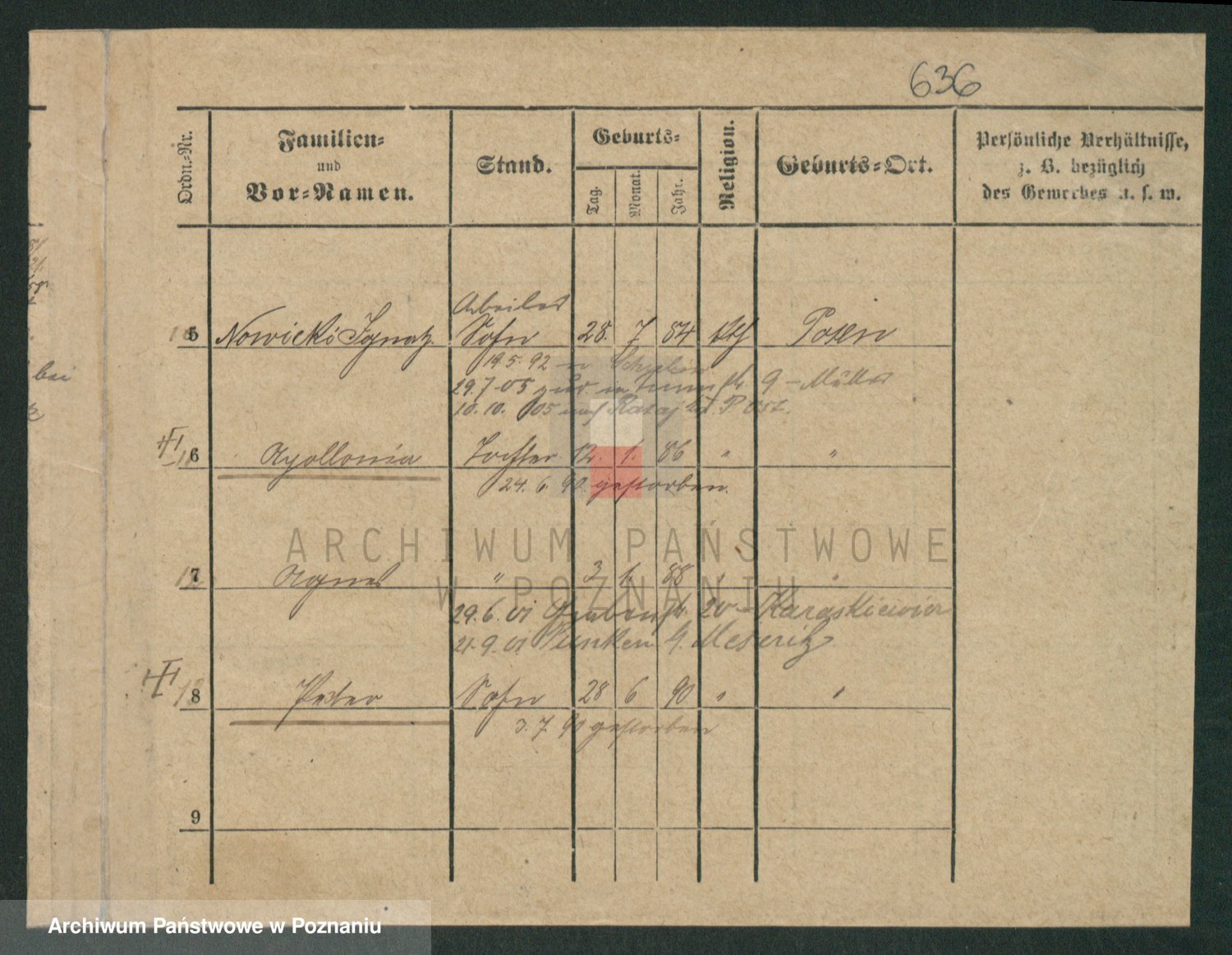 Podgląd karty osobowej dostępny jest po kliknięciu na nazwisko lub ikonkę karty. Można dokonywać powiększenia (ikony na górze) lub przechodzić między kolejnymi skanami (strzałki po bokach).