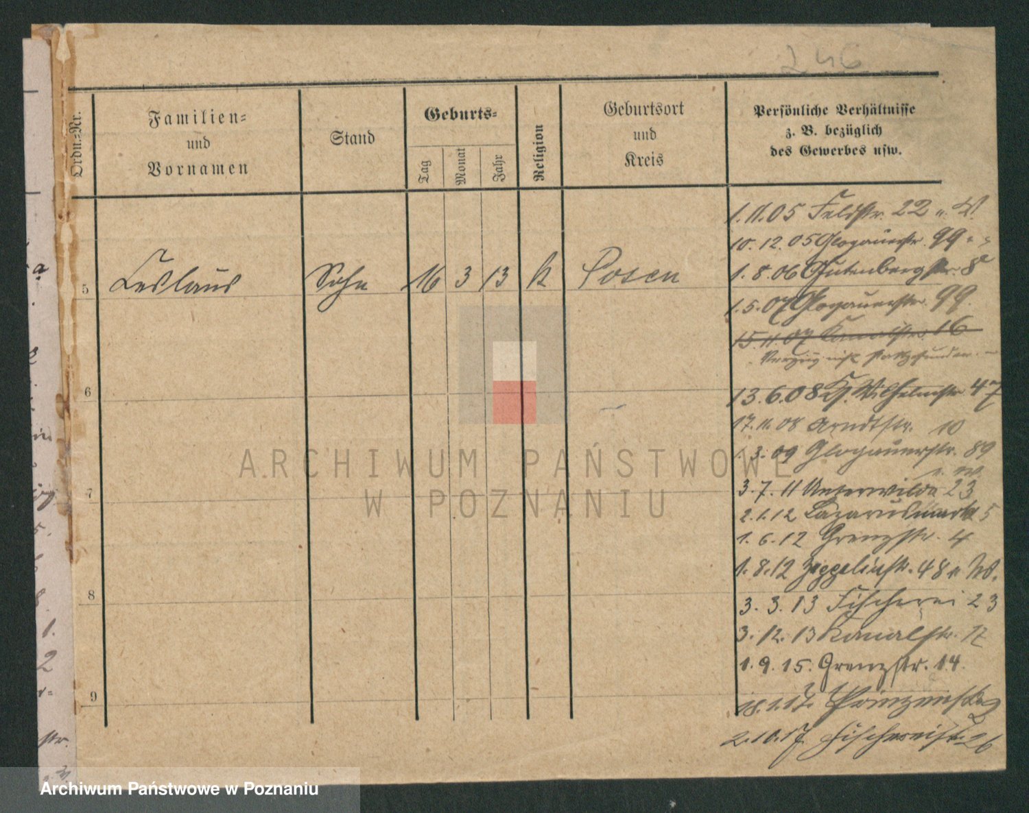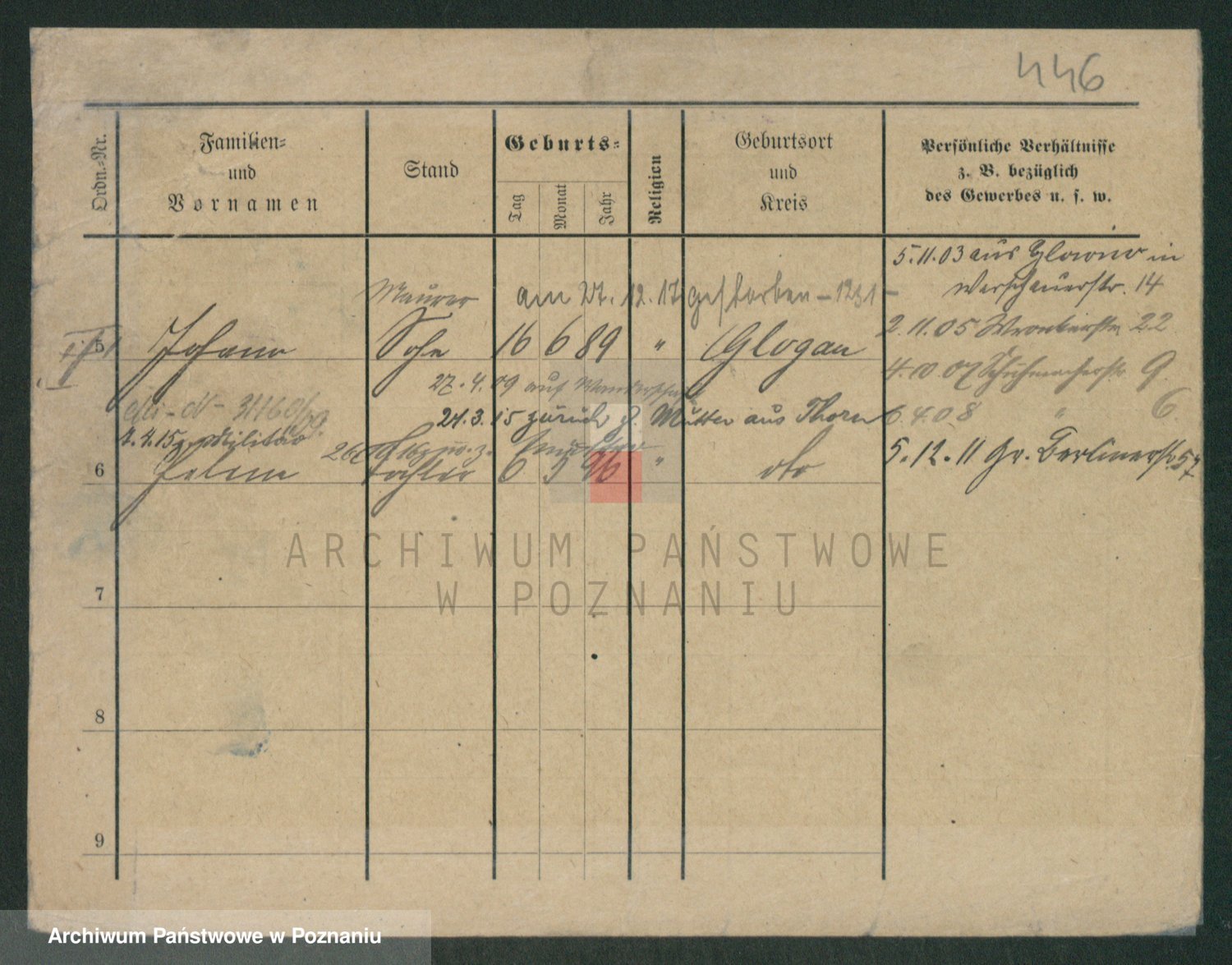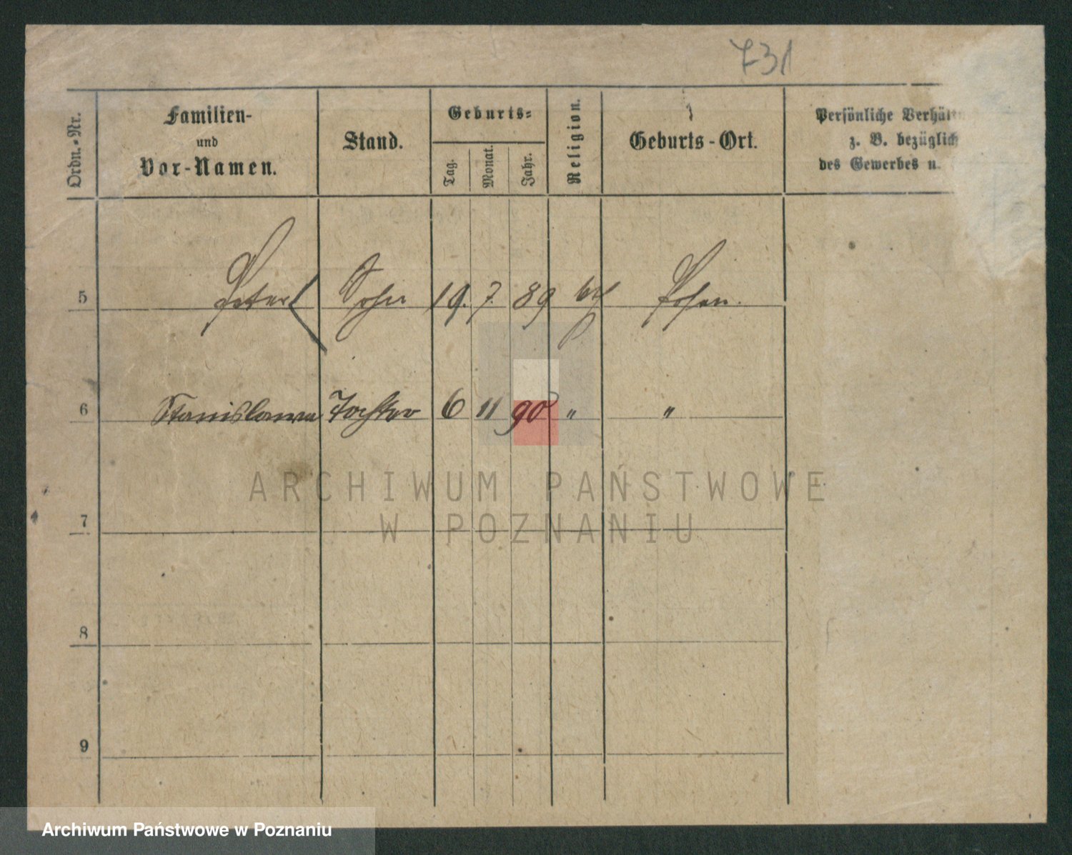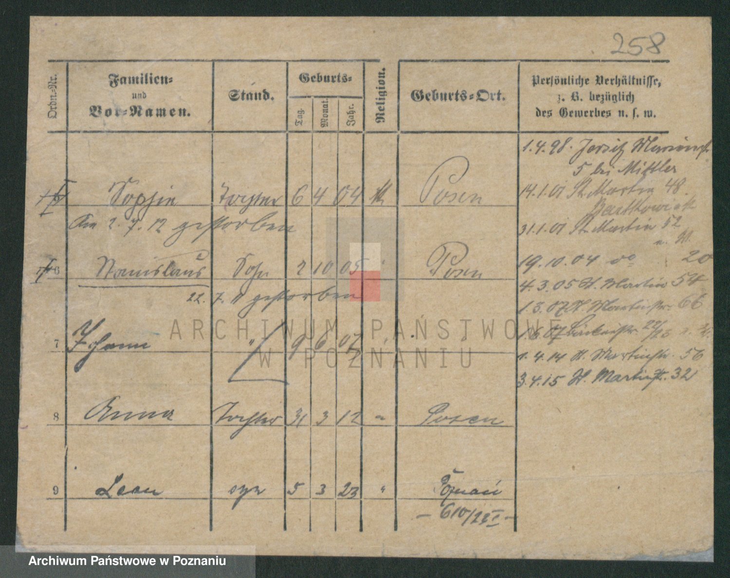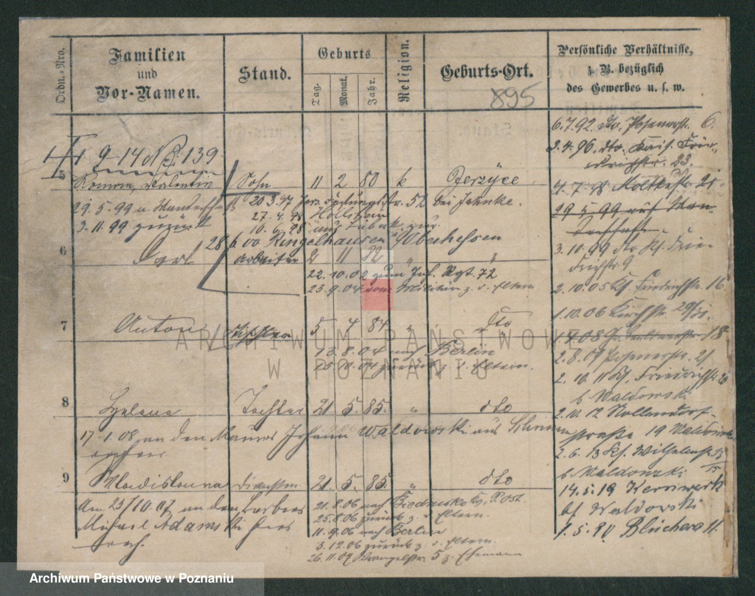 Podgląd karty osobowej dostępny jest po kliknięciu na nazwisko lub ikonkę karty. Można dokonywać powiększenia (ikony na górze) lub przechodzić między kolejnymi skanami (strzałki po bokach).