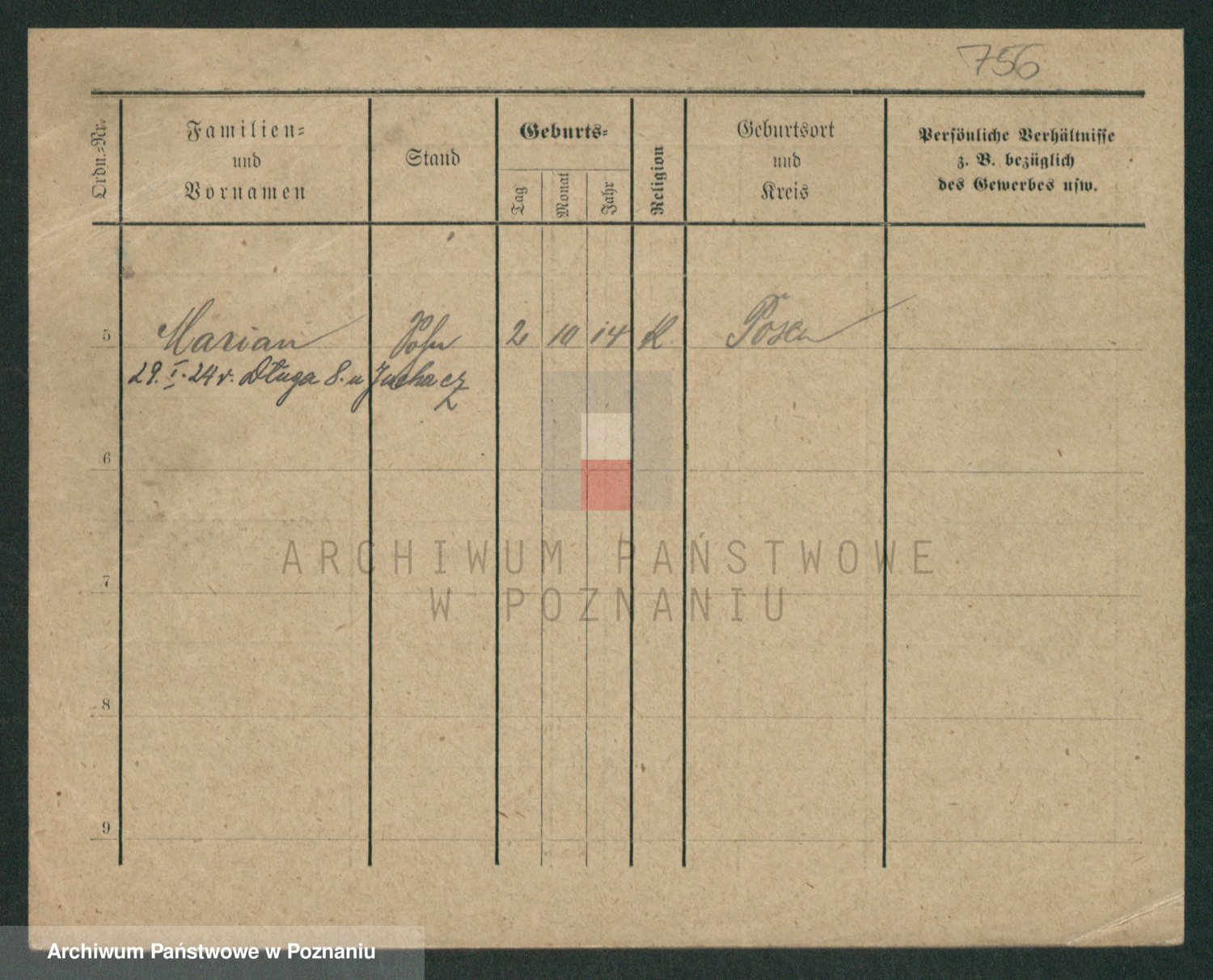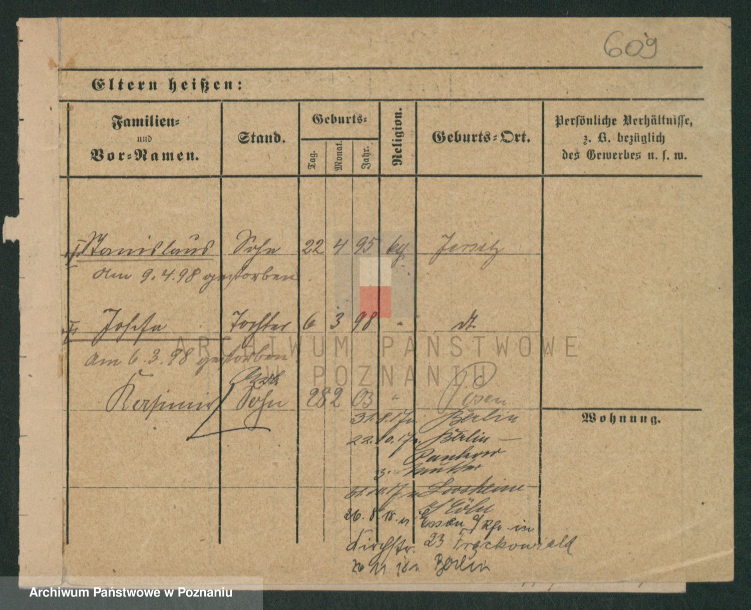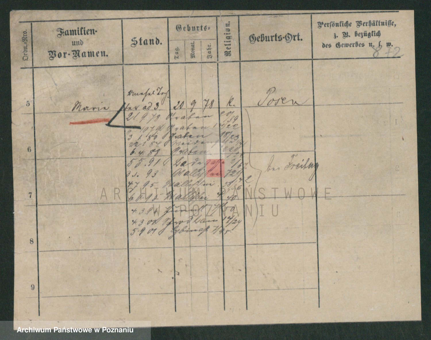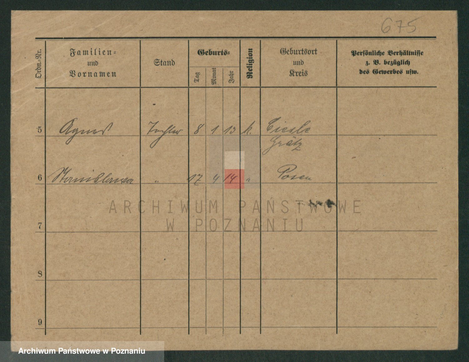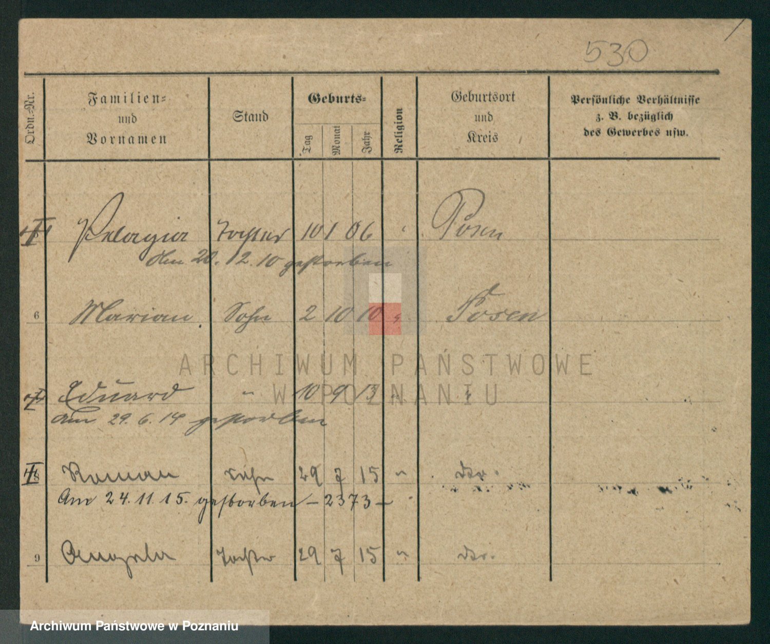 Podgląd karty osobowej dostępny jest po kliknięciu na nazwisko lub ikonkę karty. Można dokonywać powiększenia (ikony na górze) lub przechodzić między kolejnymi skanami (strzałki po bokach).