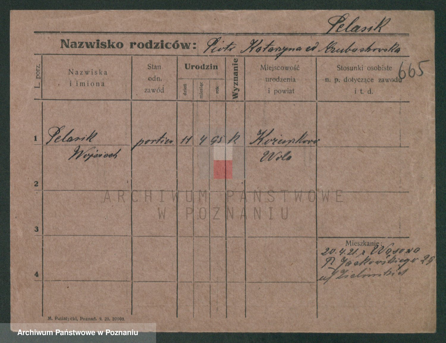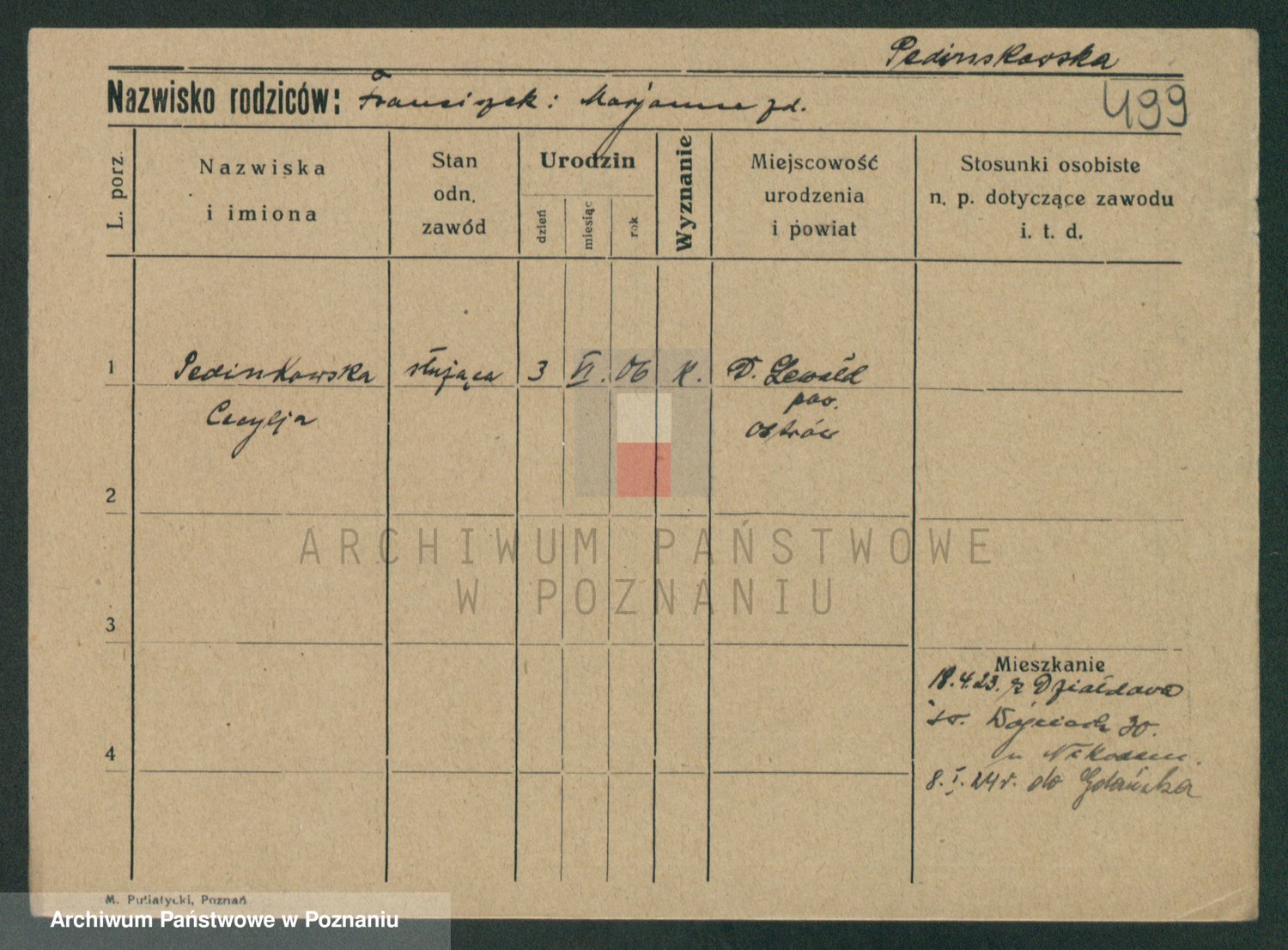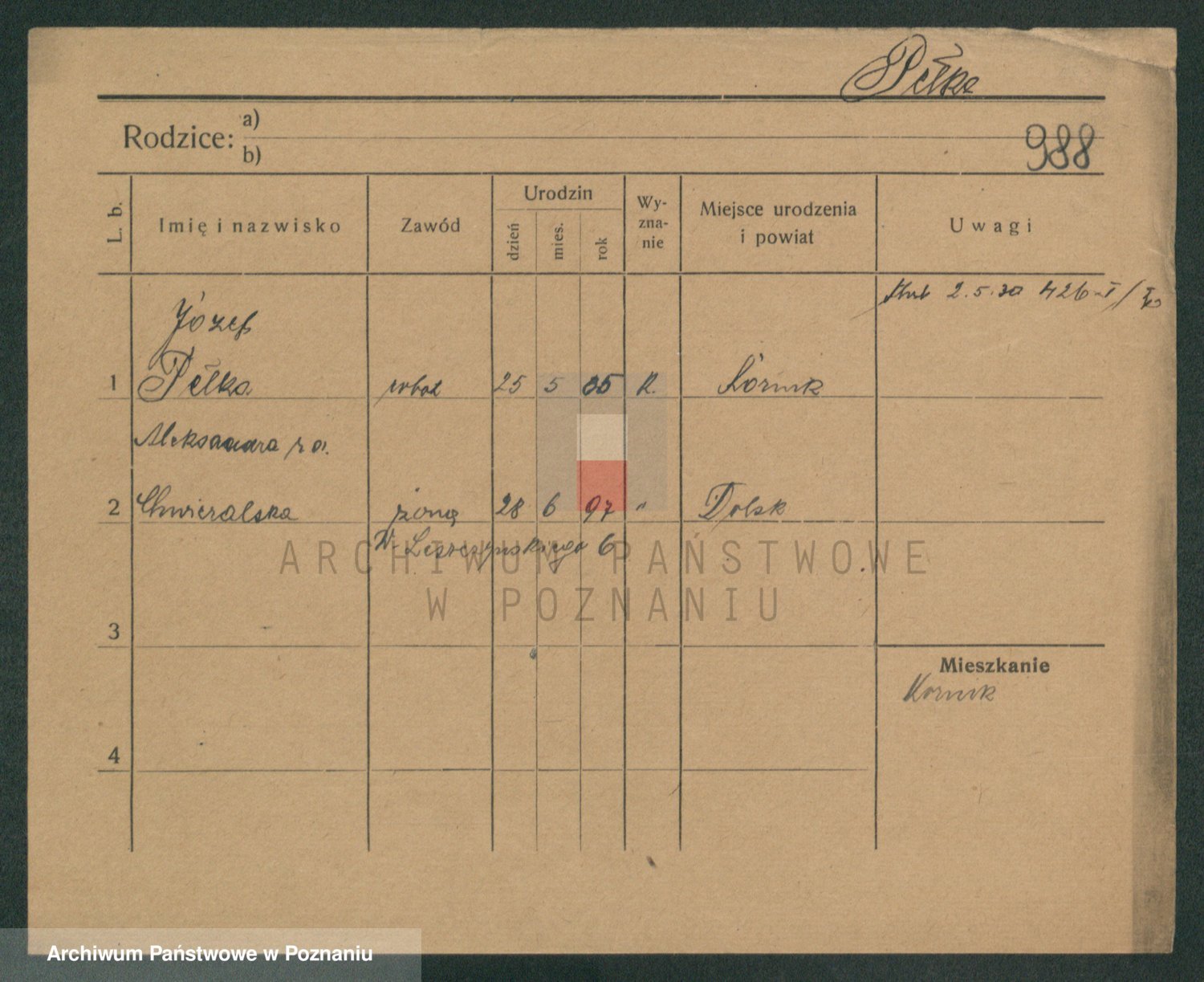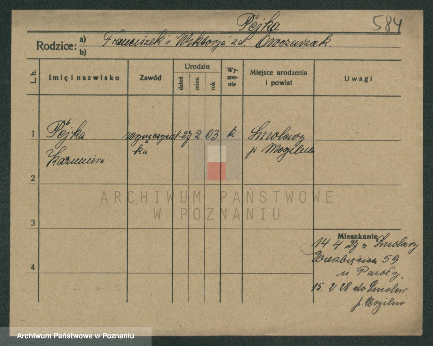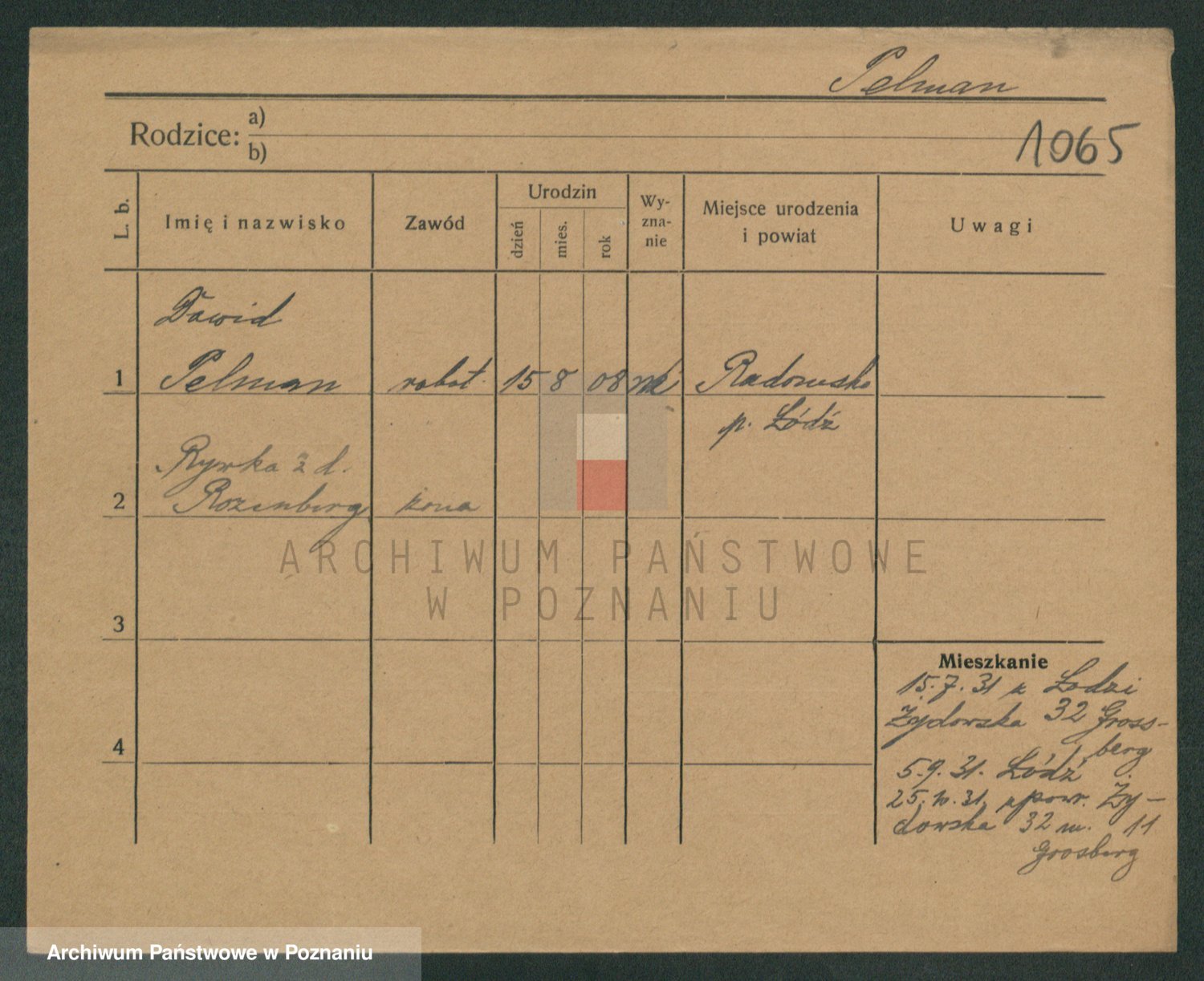 Podgląd karty osobowej dostępny jest po kliknięciu na nazwisko lub ikonkę karty. Można dokonywać powiększenia (ikony na górze) lub przechodzić między kolejnymi skanami (strzałki po bokach).
