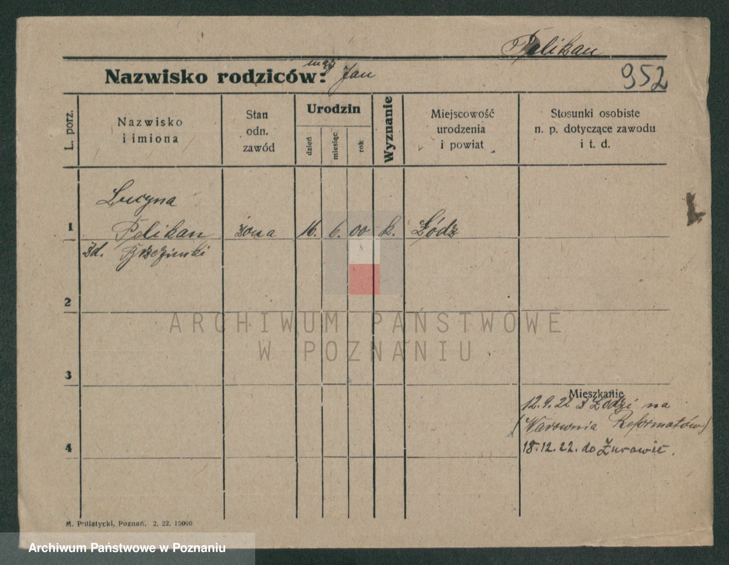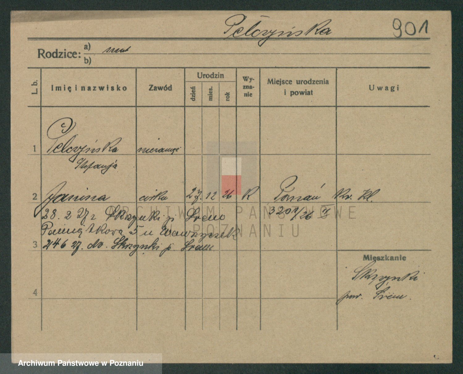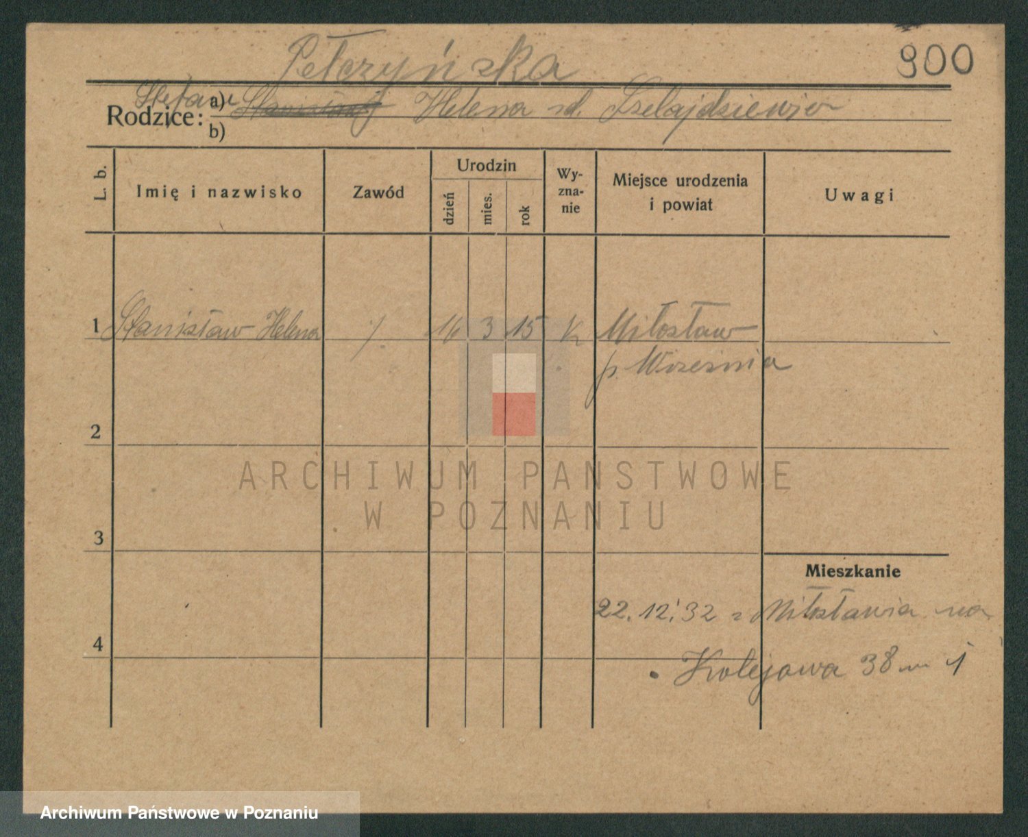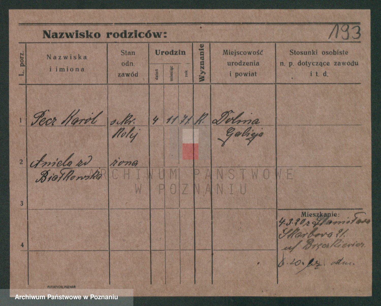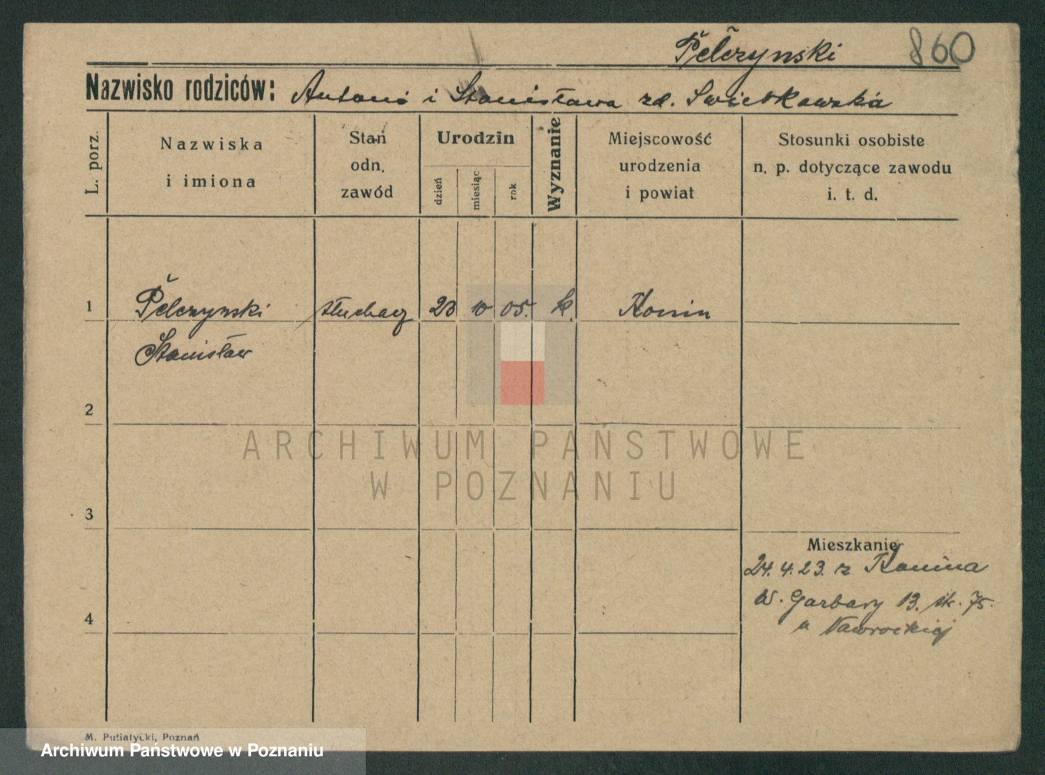Podgląd karty osobowej dostępny jest po kliknięciu na nazwisko lub ikonkę karty. Można dokonywać powiększenia (ikony na górze) lub przechodzić między kolejnymi skanami (strzałki po bokach).