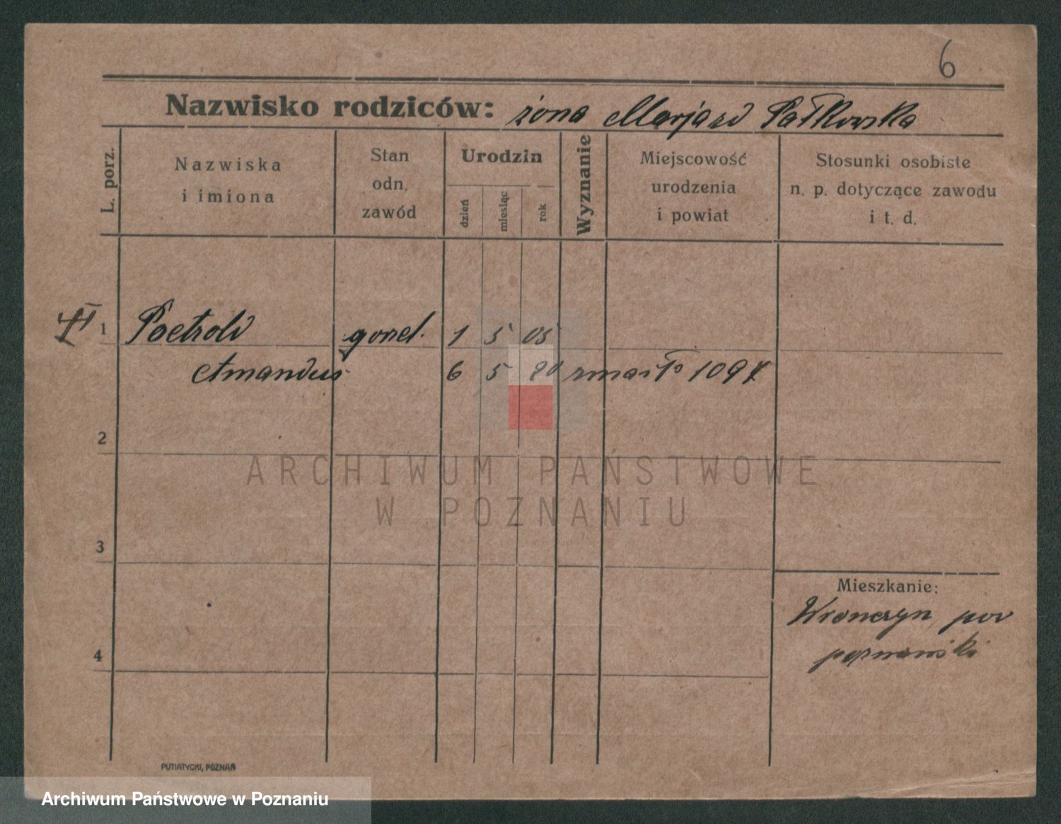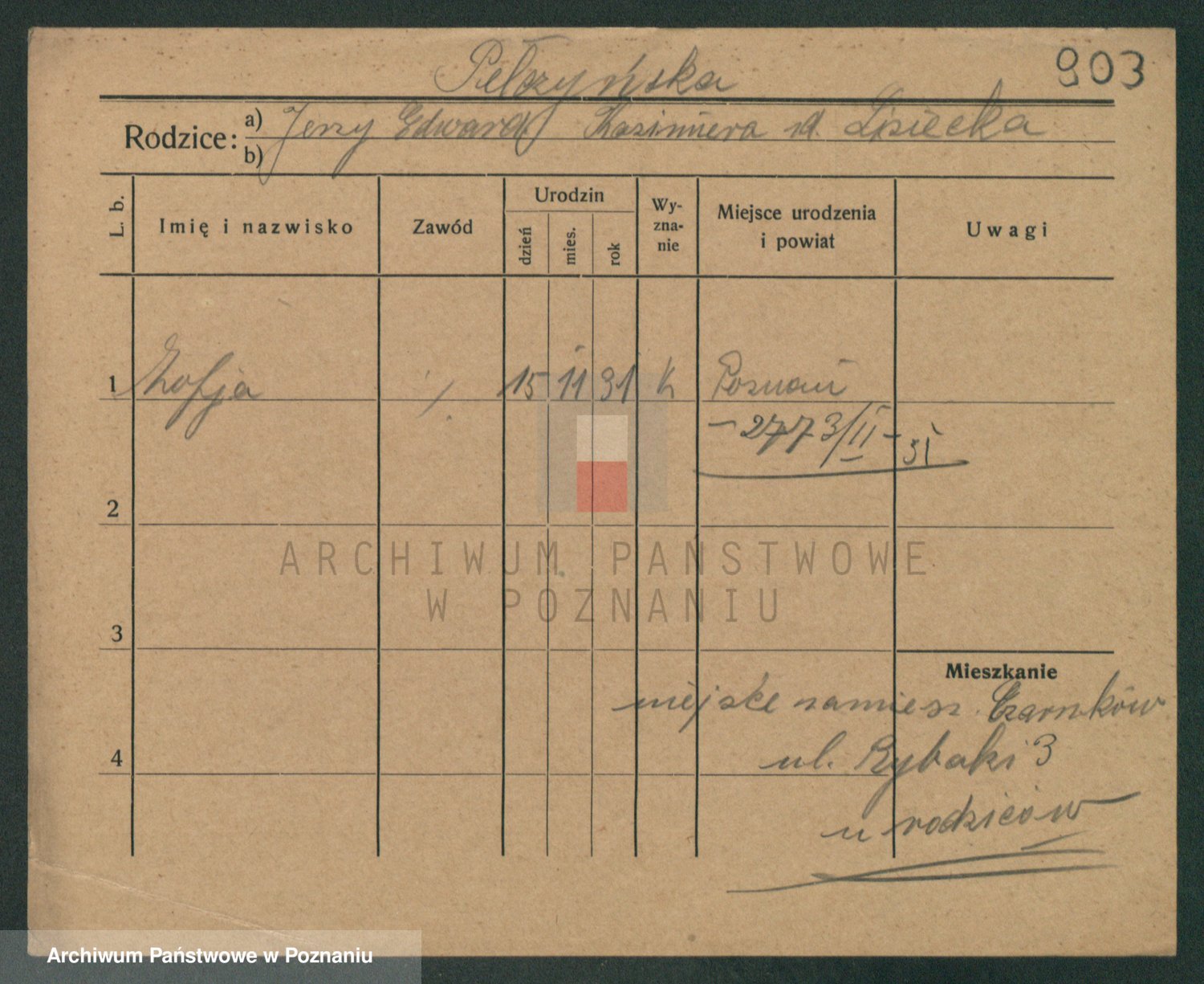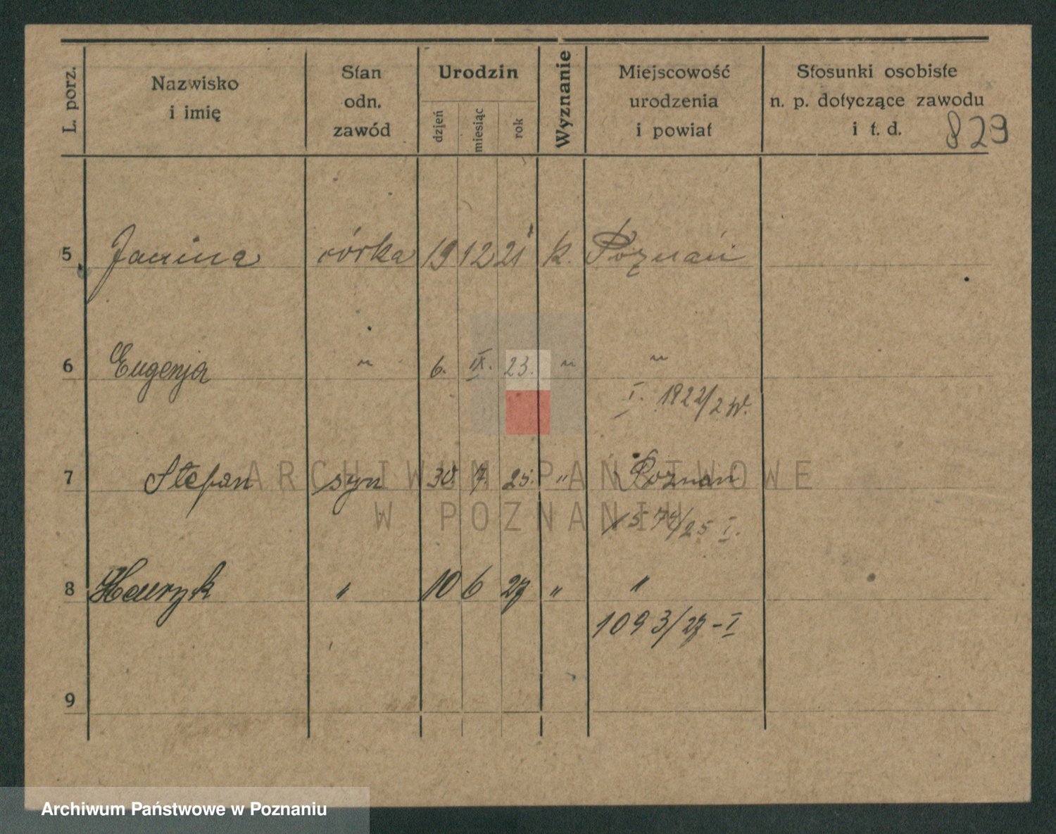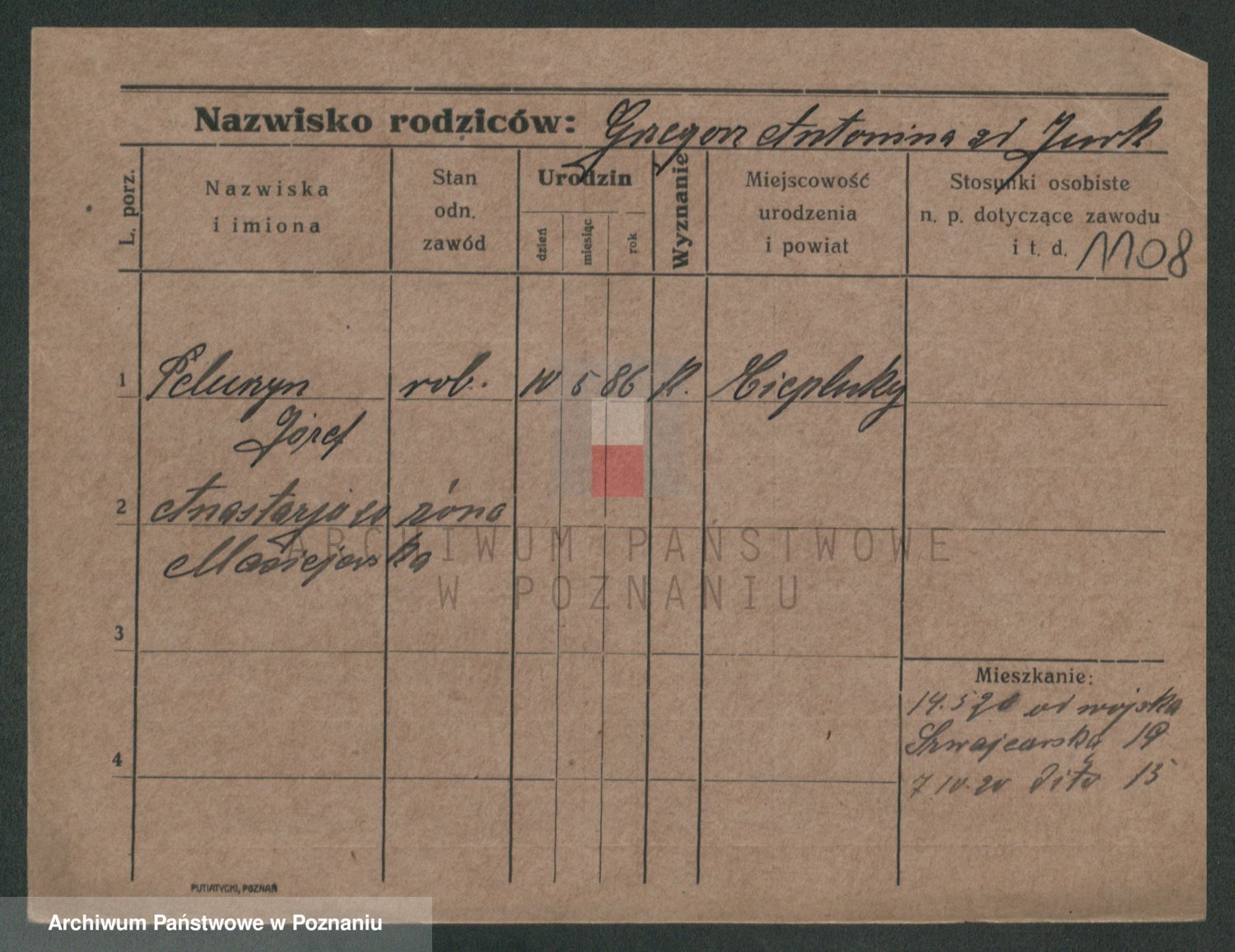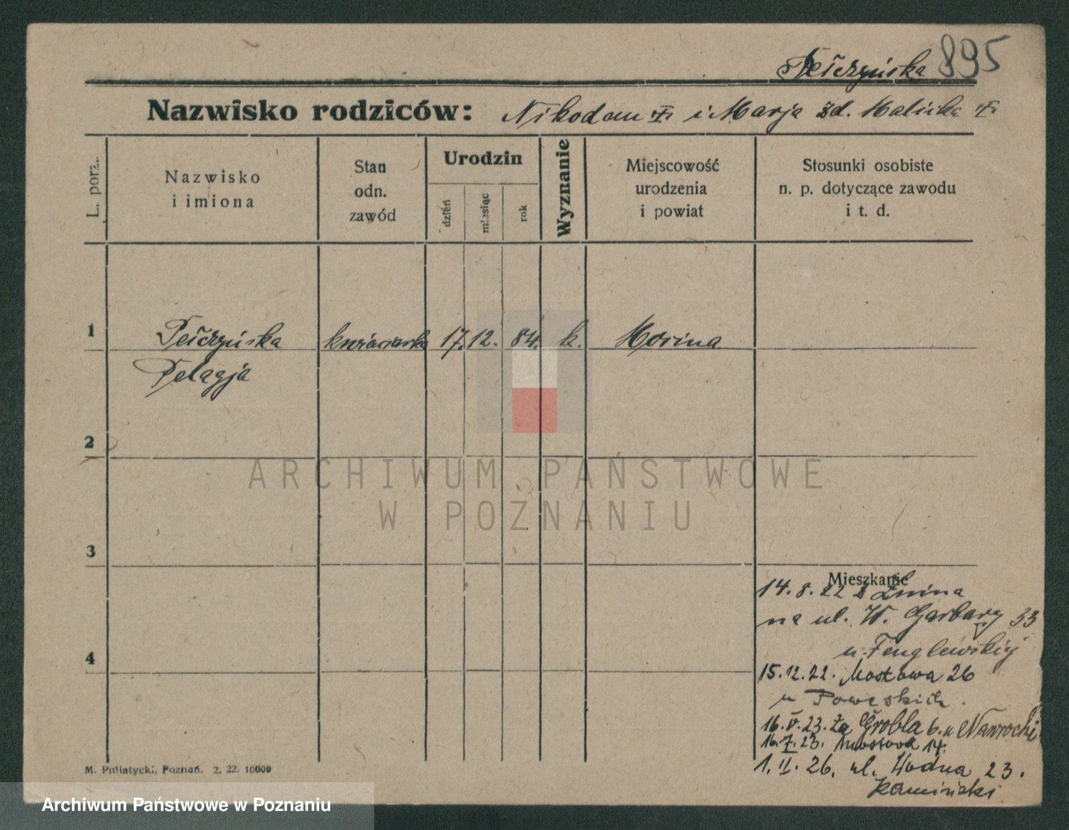 Podgląd karty osobowej dostępny jest po kliknięciu na nazwisko lub ikonkę karty. Można dokonywać powiększenia (ikony na górze) lub przechodzić między kolejnymi skanami (strzałki po bokach).