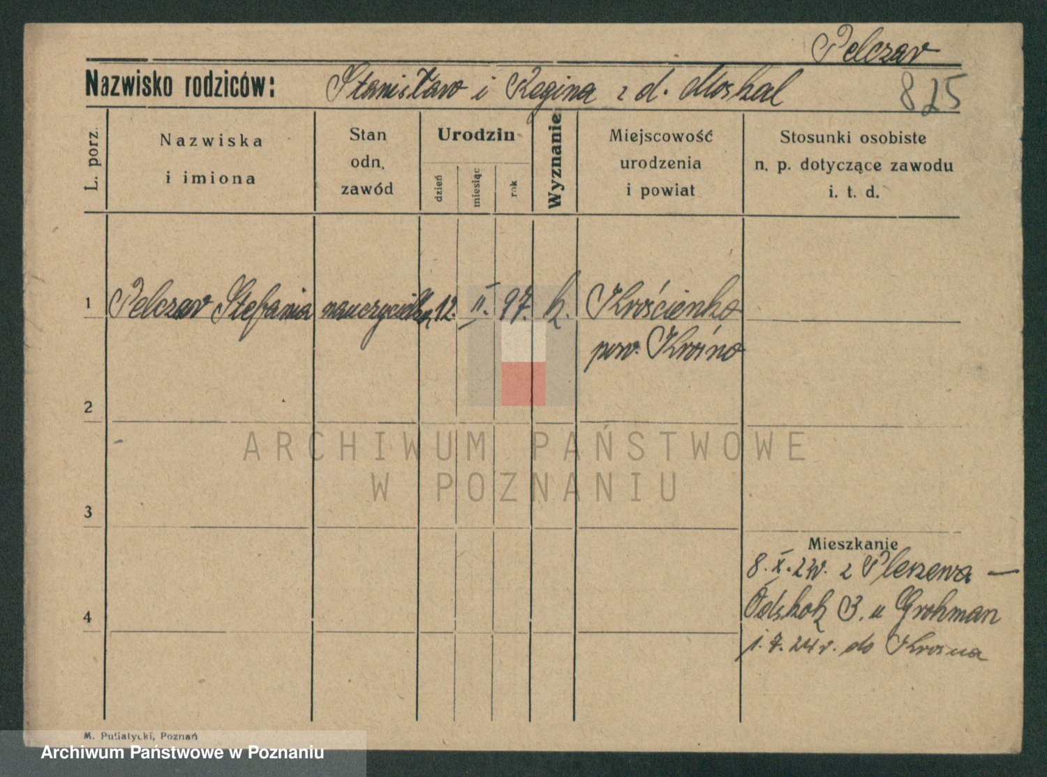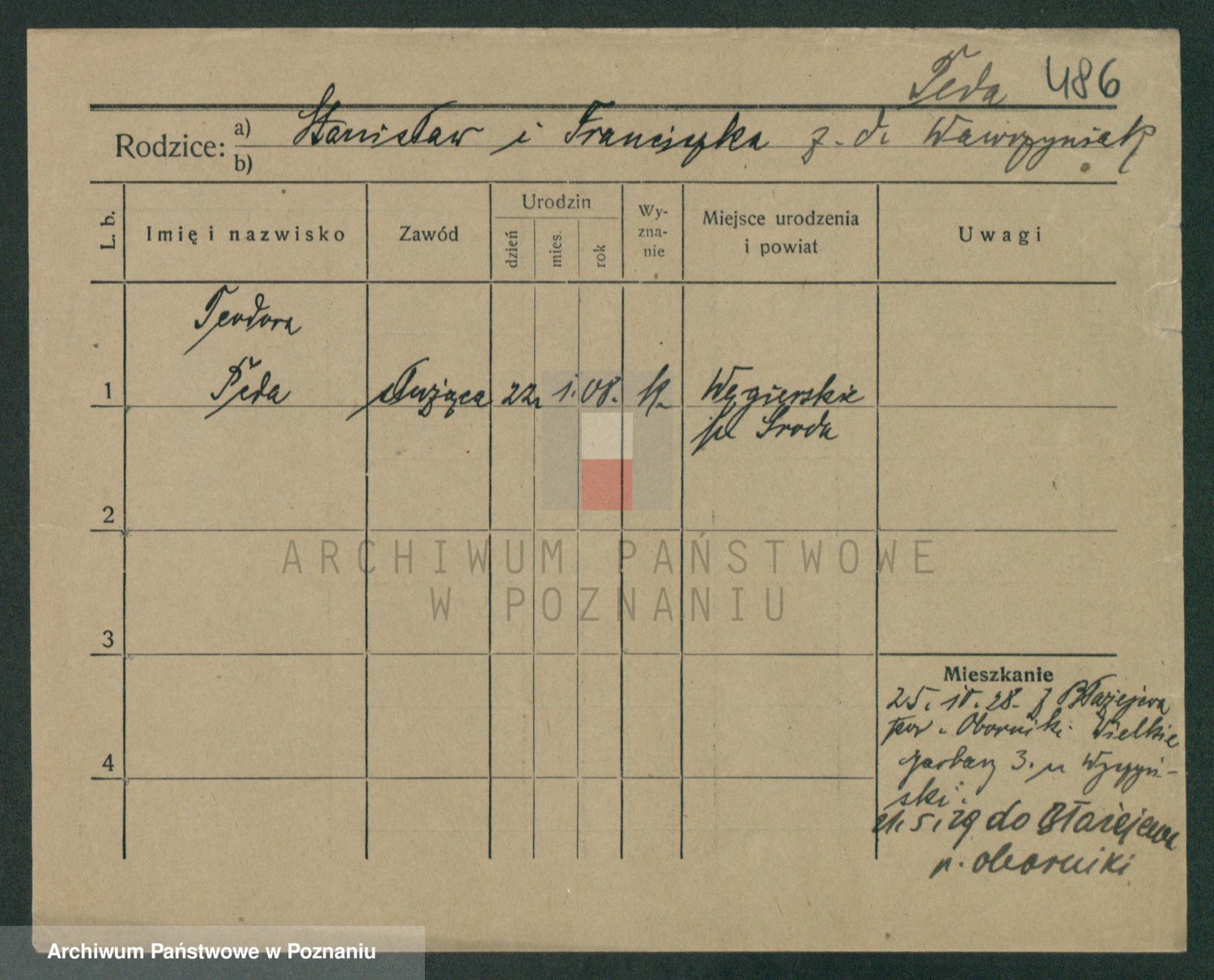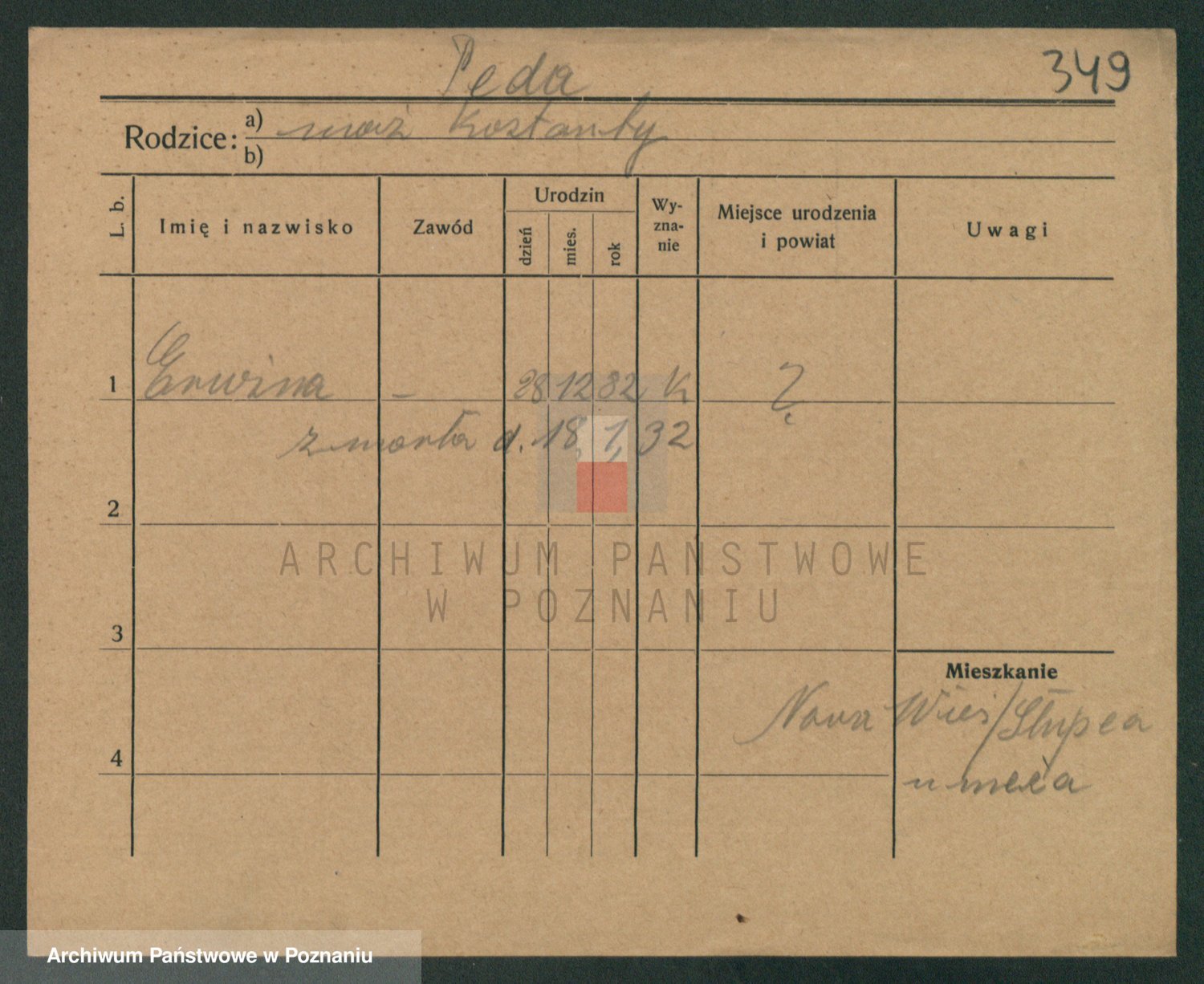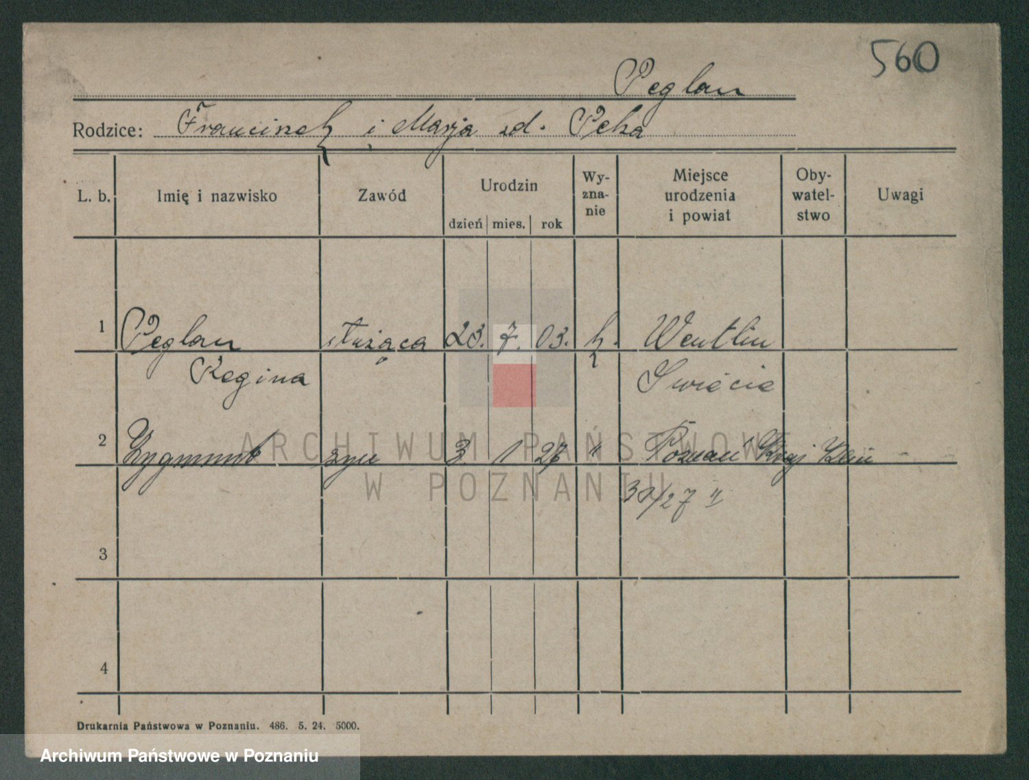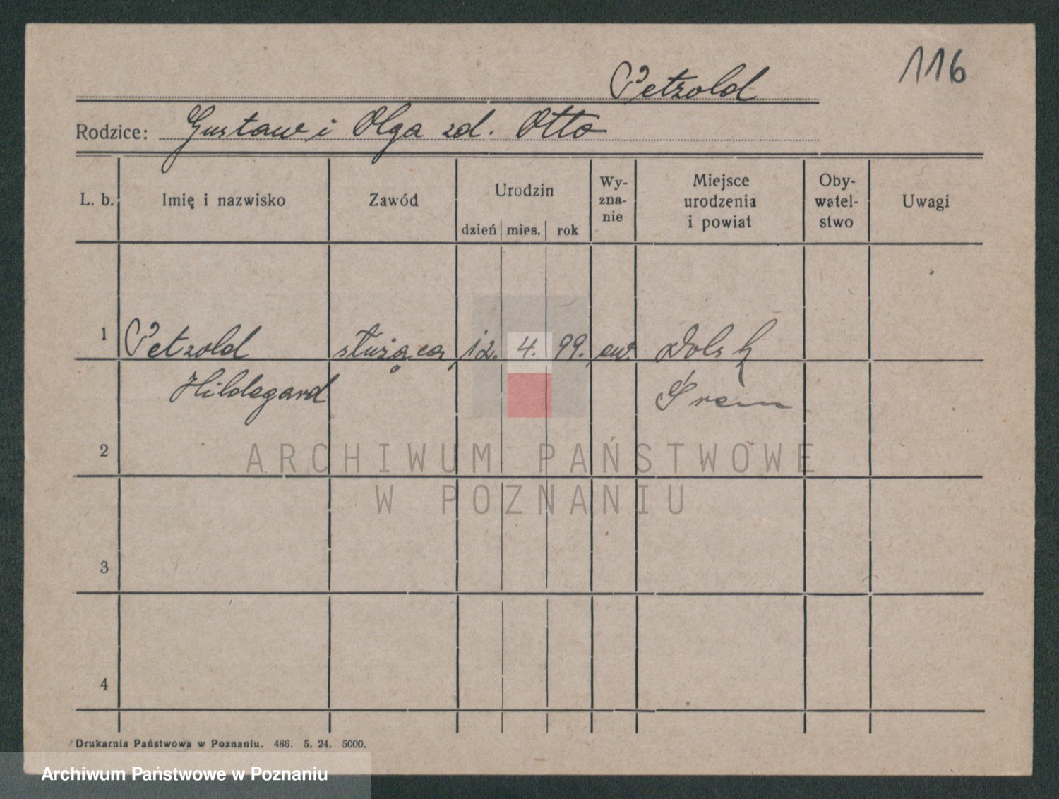 Podgląd karty osobowej dostępny jest po kliknięciu na nazwisko lub ikonkę karty. Można dokonywać powiększenia (ikony na górze) lub przechodzić między kolejnymi skanami (strzałki po bokach).