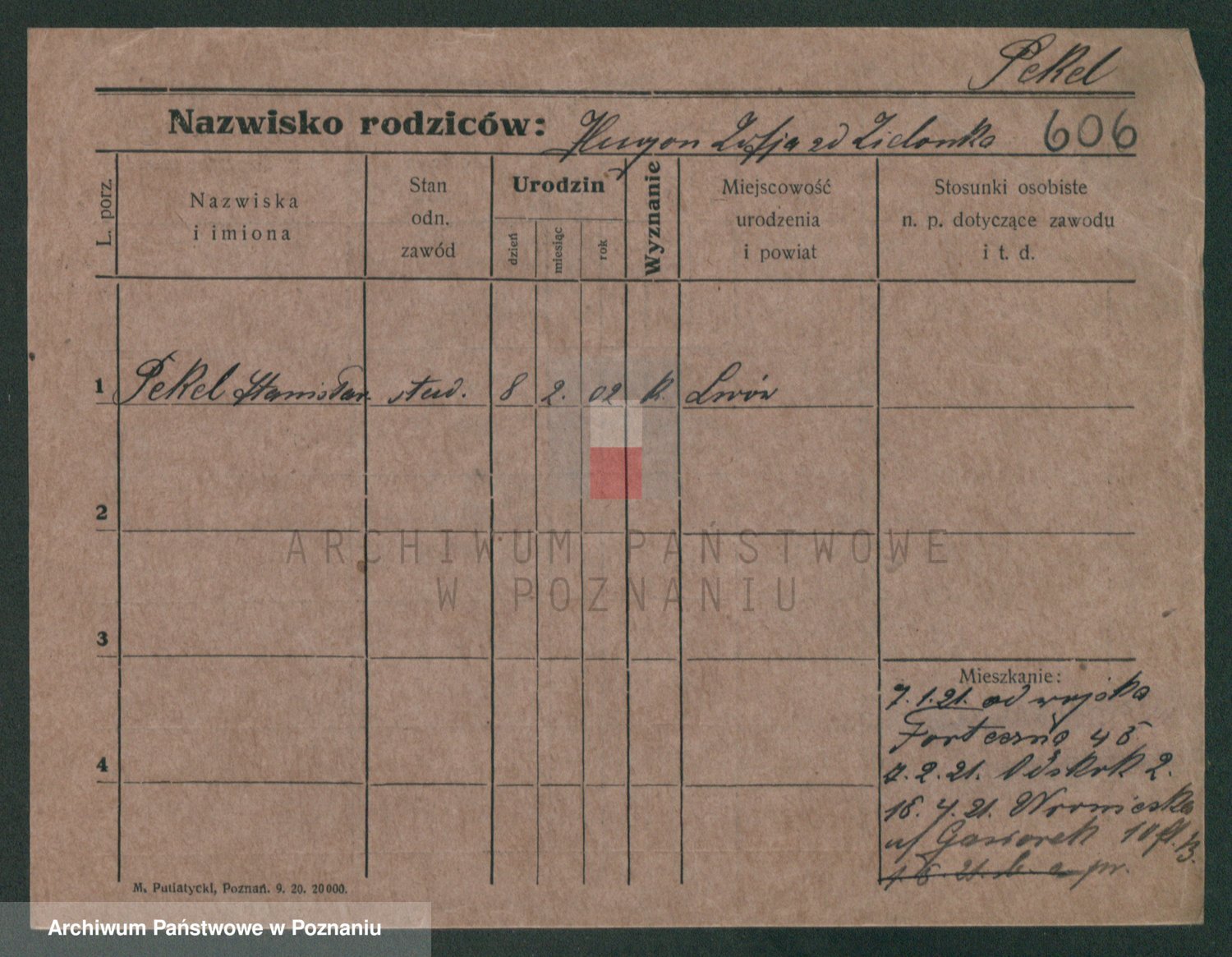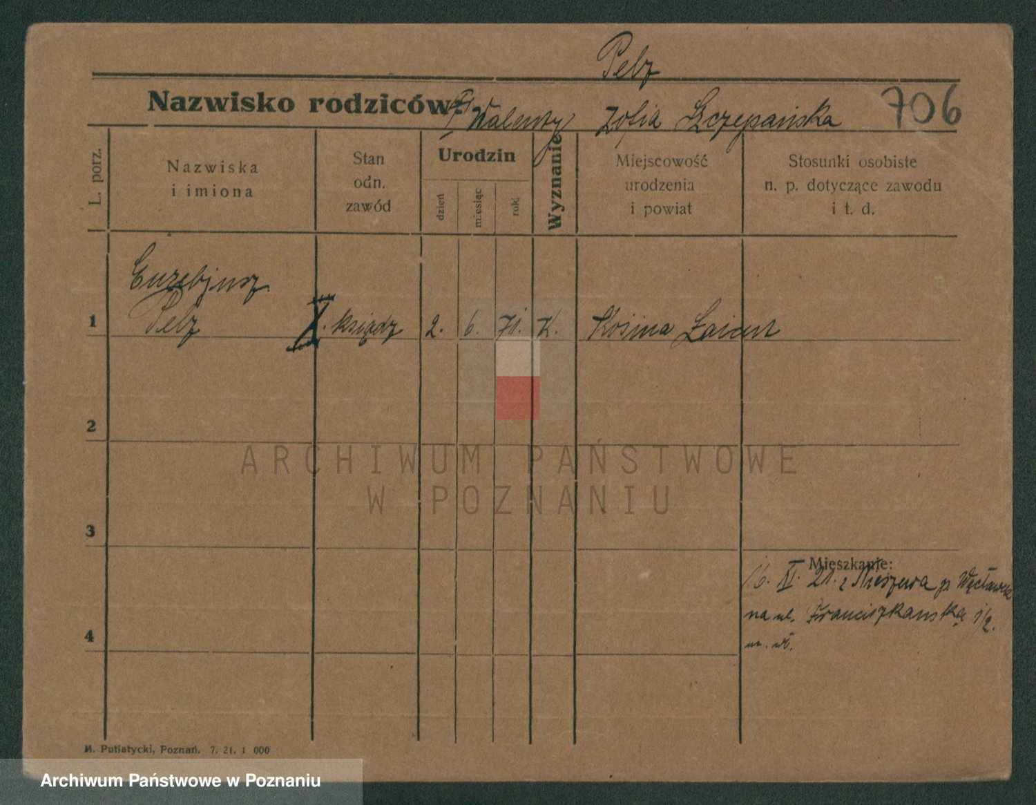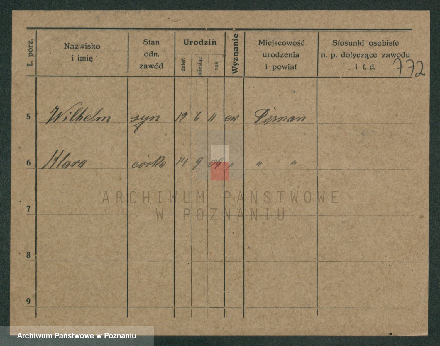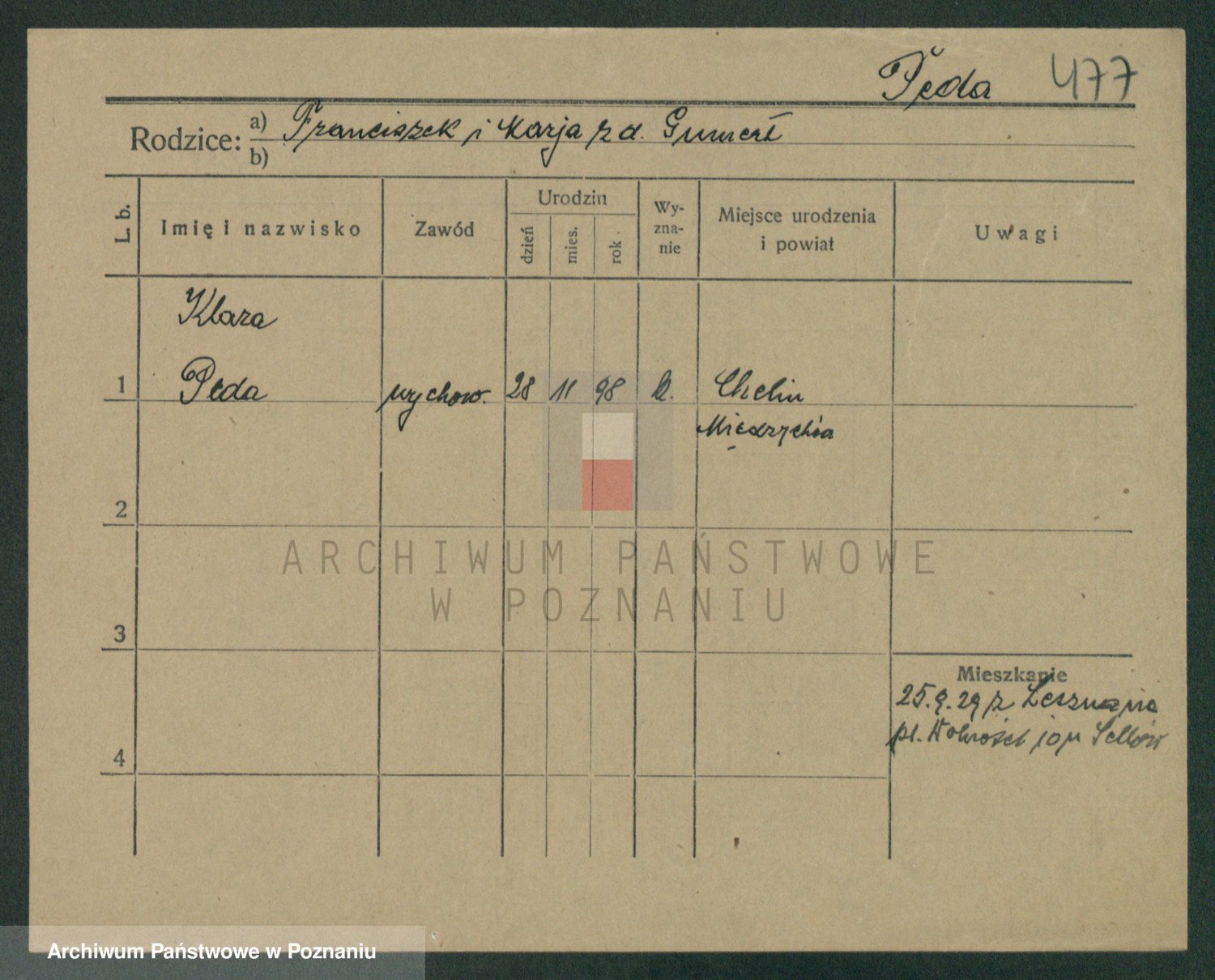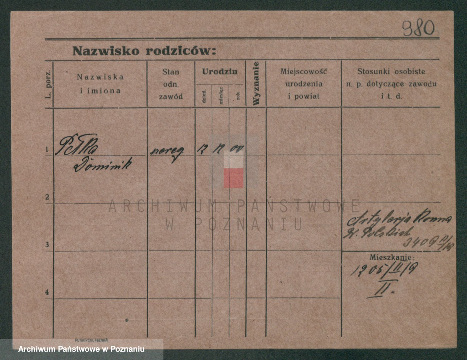 Podgląd karty osobowej dostępny jest po kliknięciu na nazwisko lub ikonkę karty. Można dokonywać powiększenia (ikony na górze) lub przechodzić między kolejnymi skanami (strzałki po bokach).