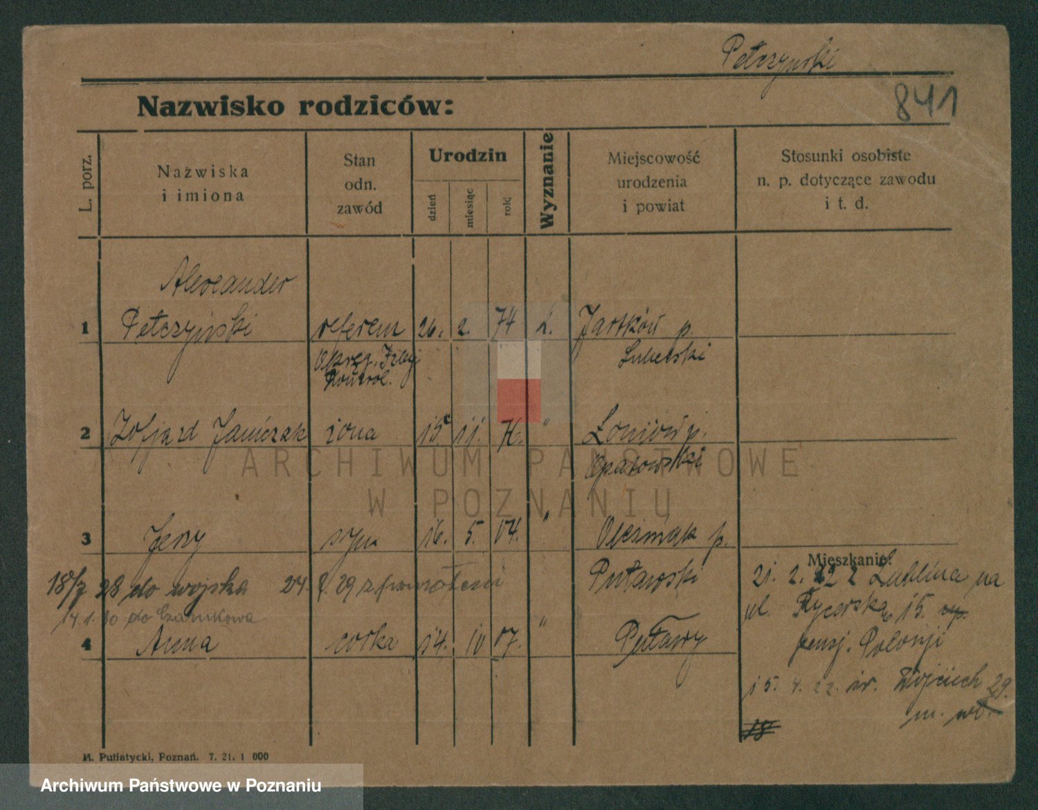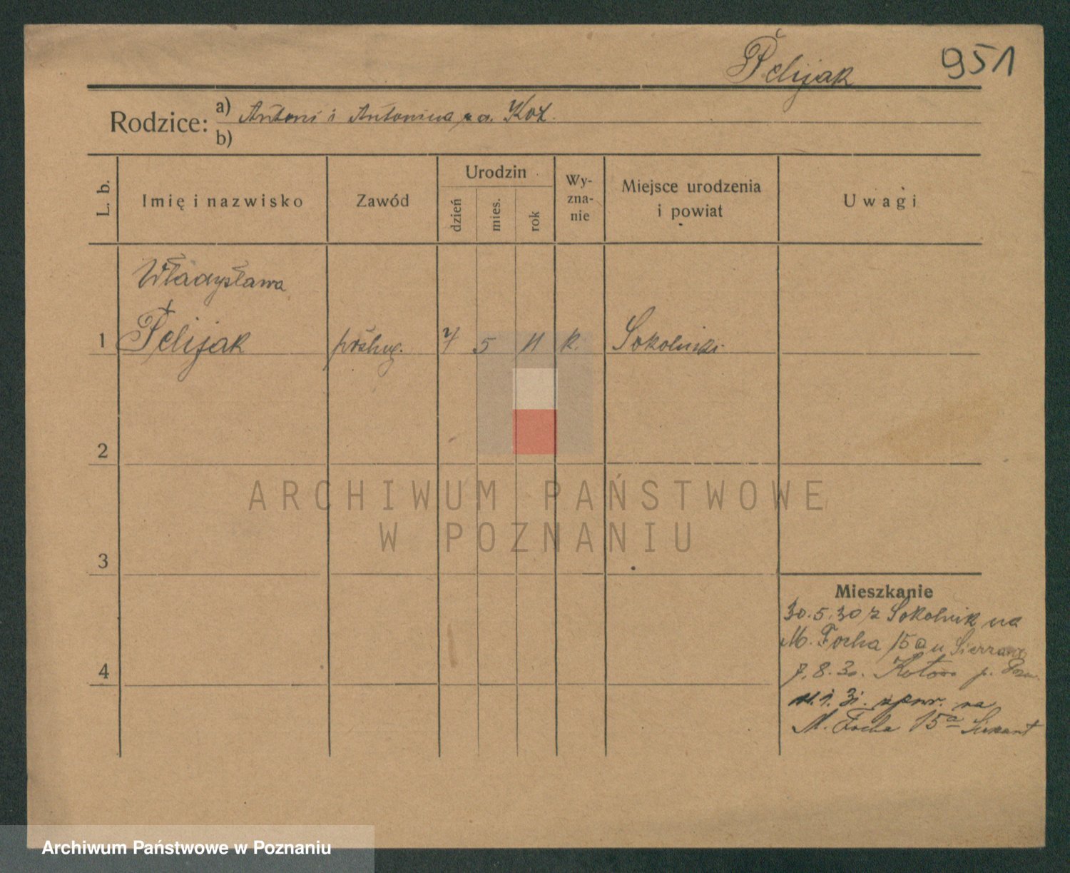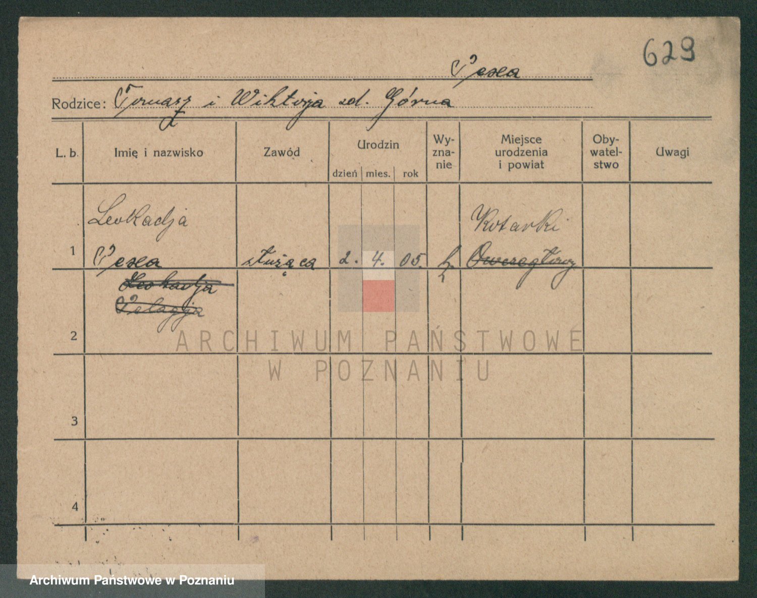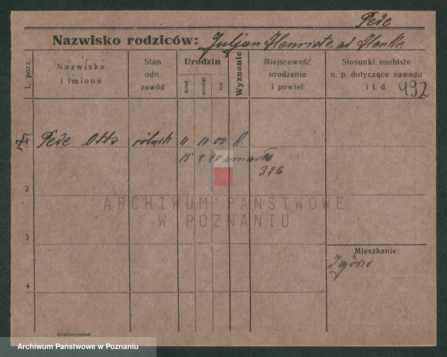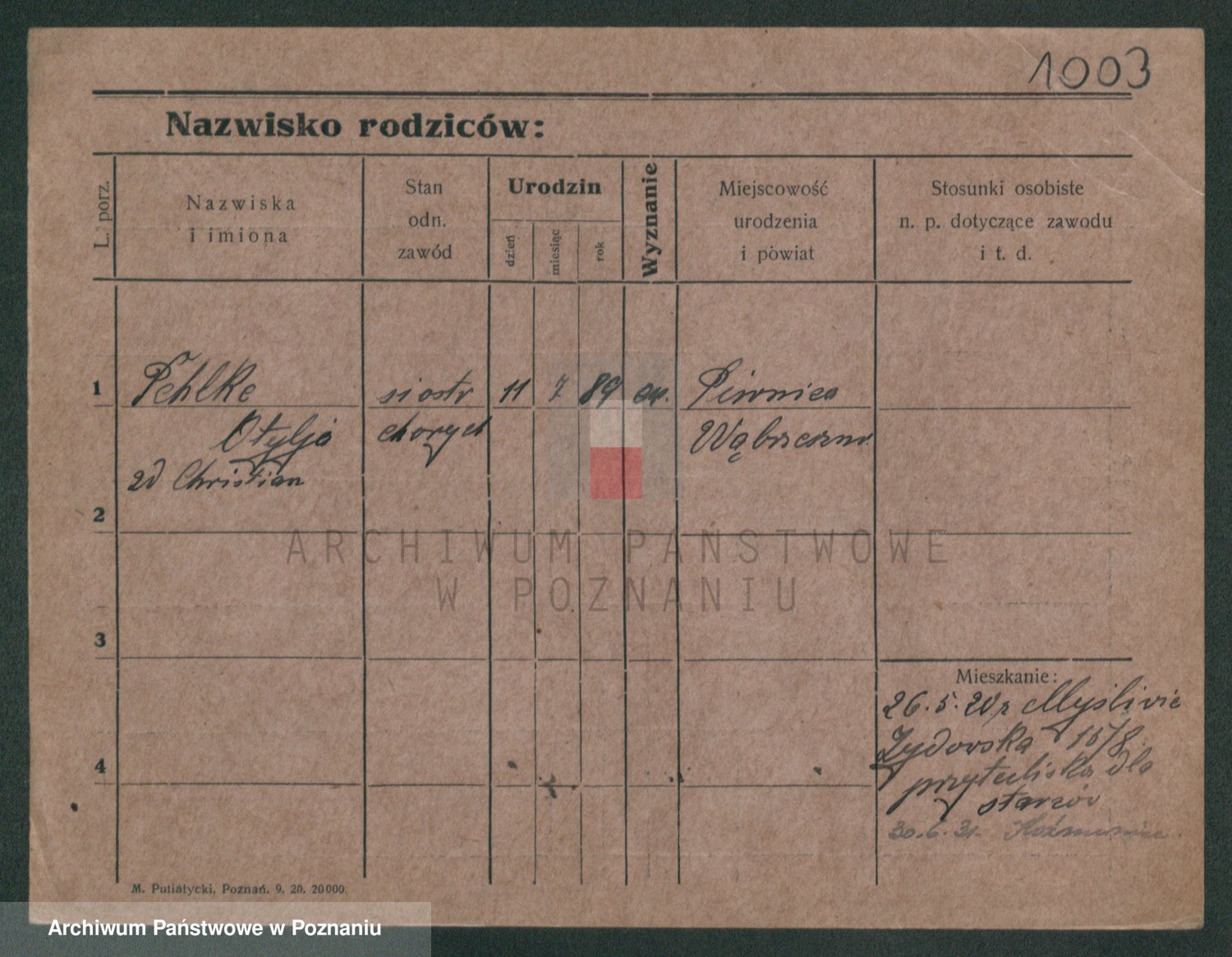 Podgląd karty osobowej dostępny jest po kliknięciu na nazwisko lub ikonkę karty. Można dokonywać powiększenia (ikony na górze) lub przechodzić między kolejnymi skanami (strzałki po bokach).