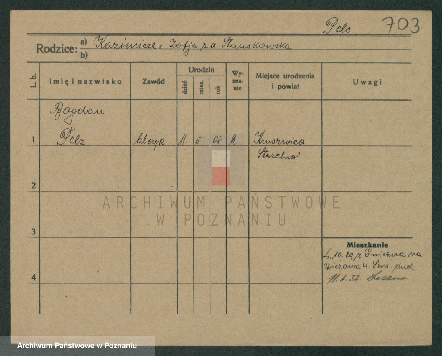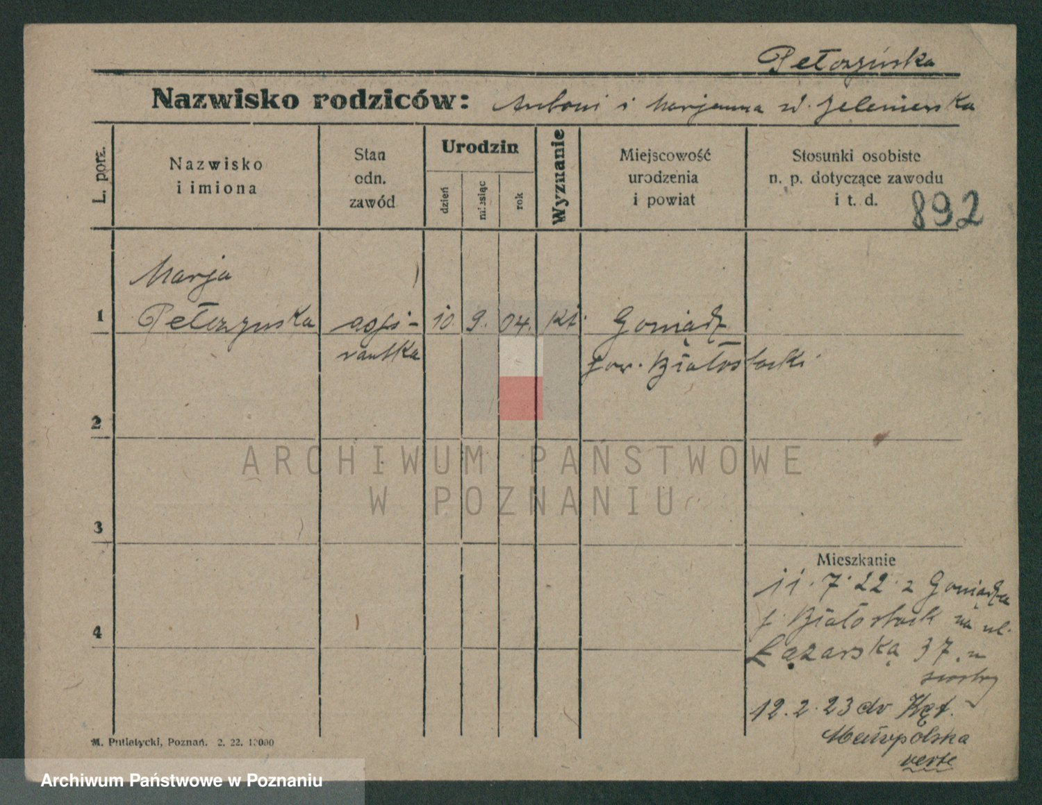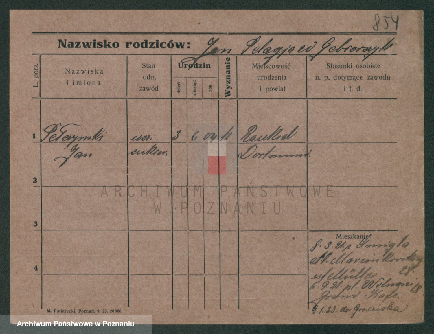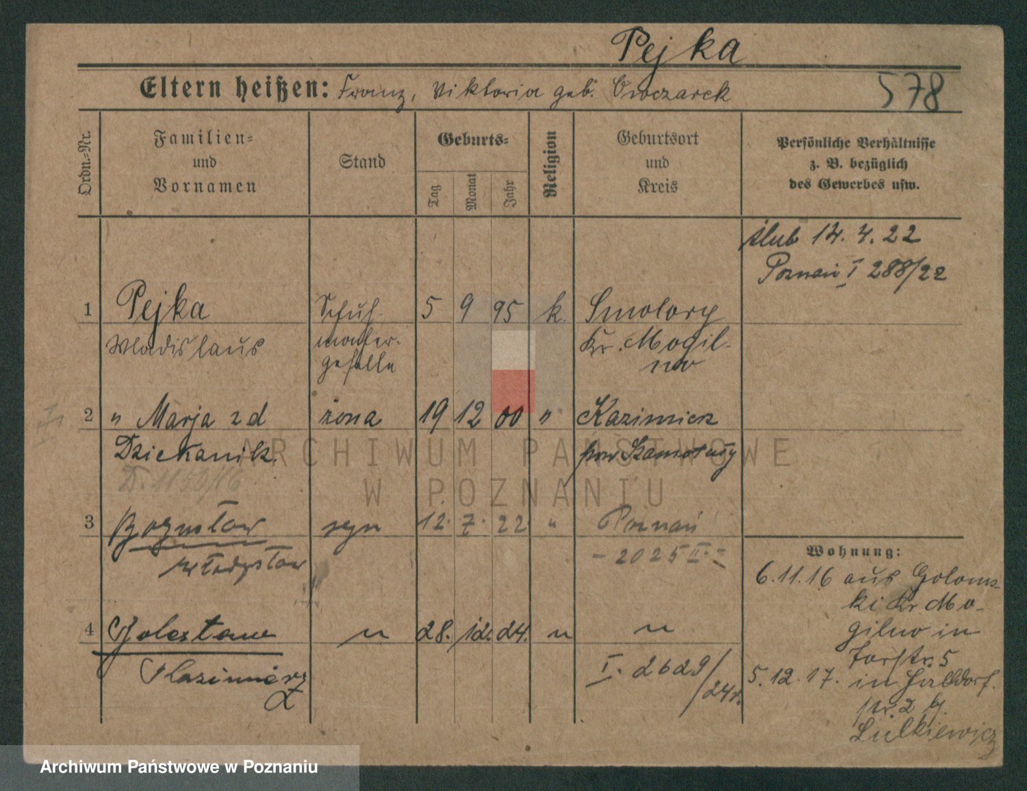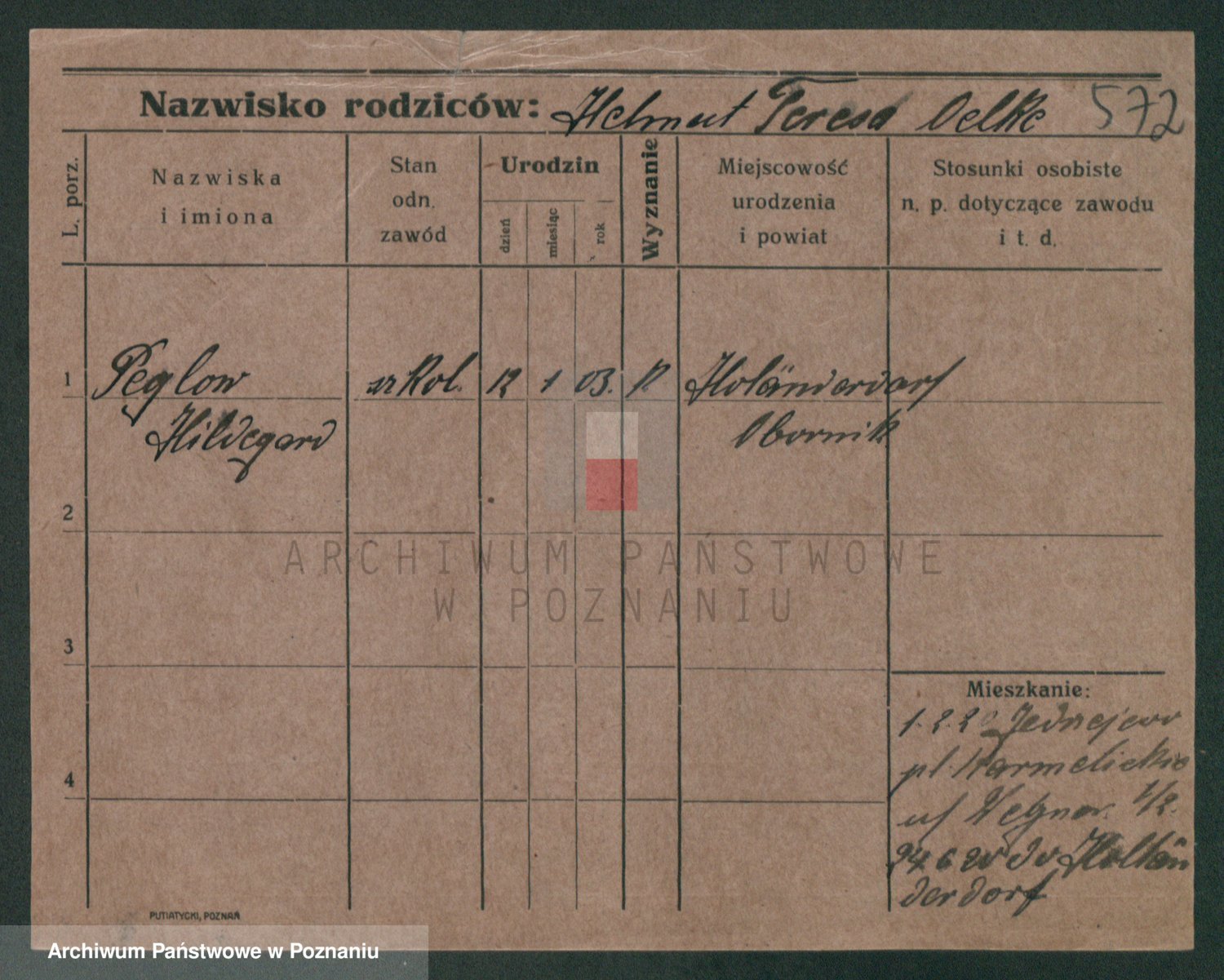 Podgląd karty osobowej dostępny jest po kliknięciu na nazwisko lub ikonkę karty. Można dokonywać powiększenia (ikony na górze) lub przechodzić między kolejnymi skanami (strzałki po bokach).