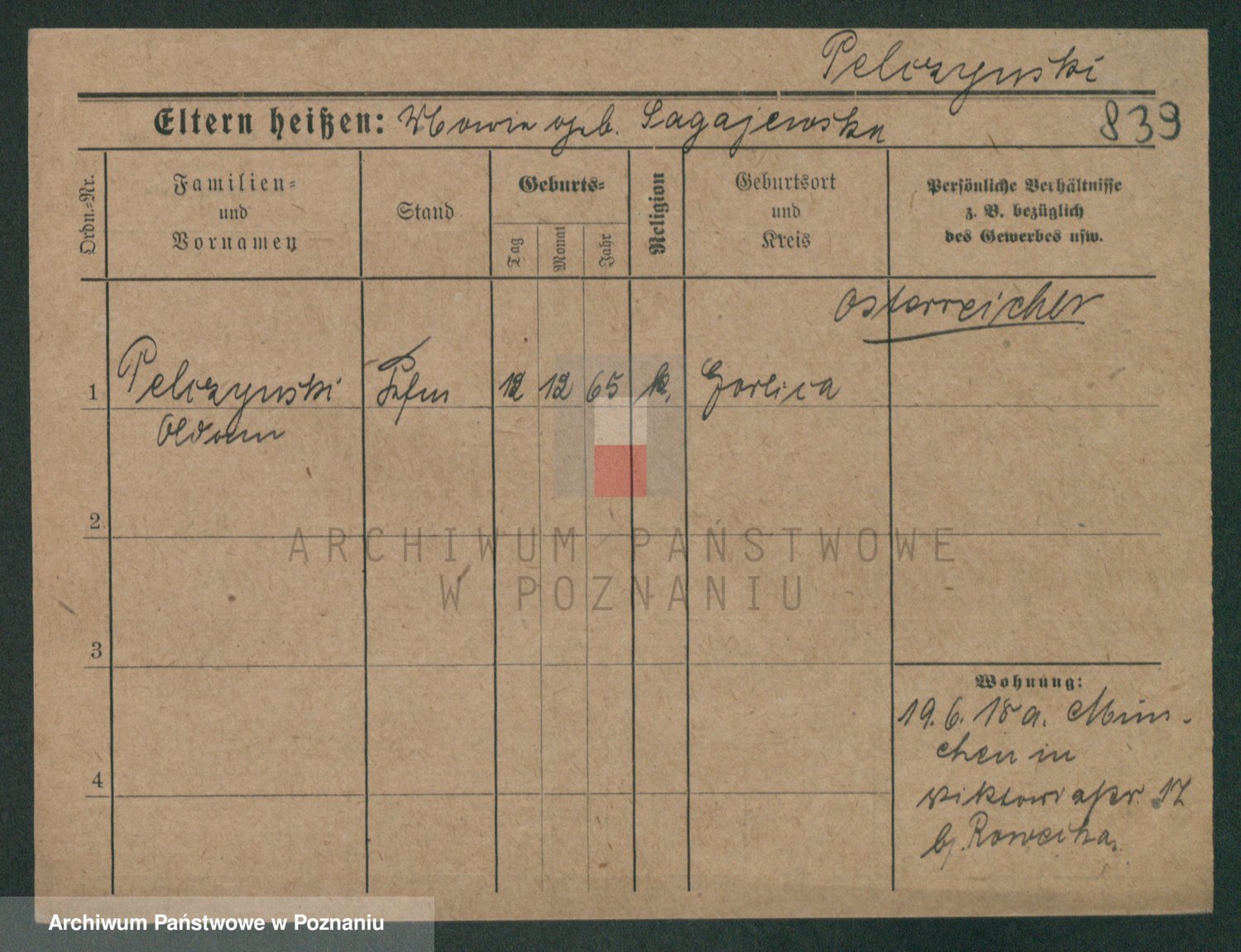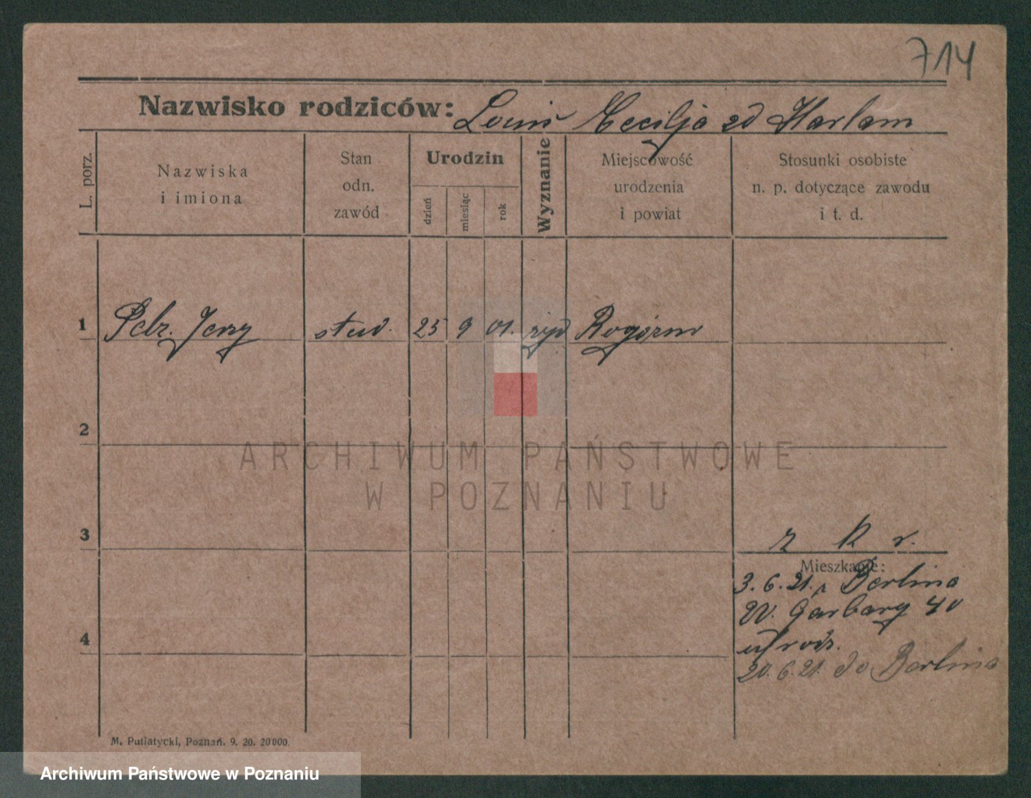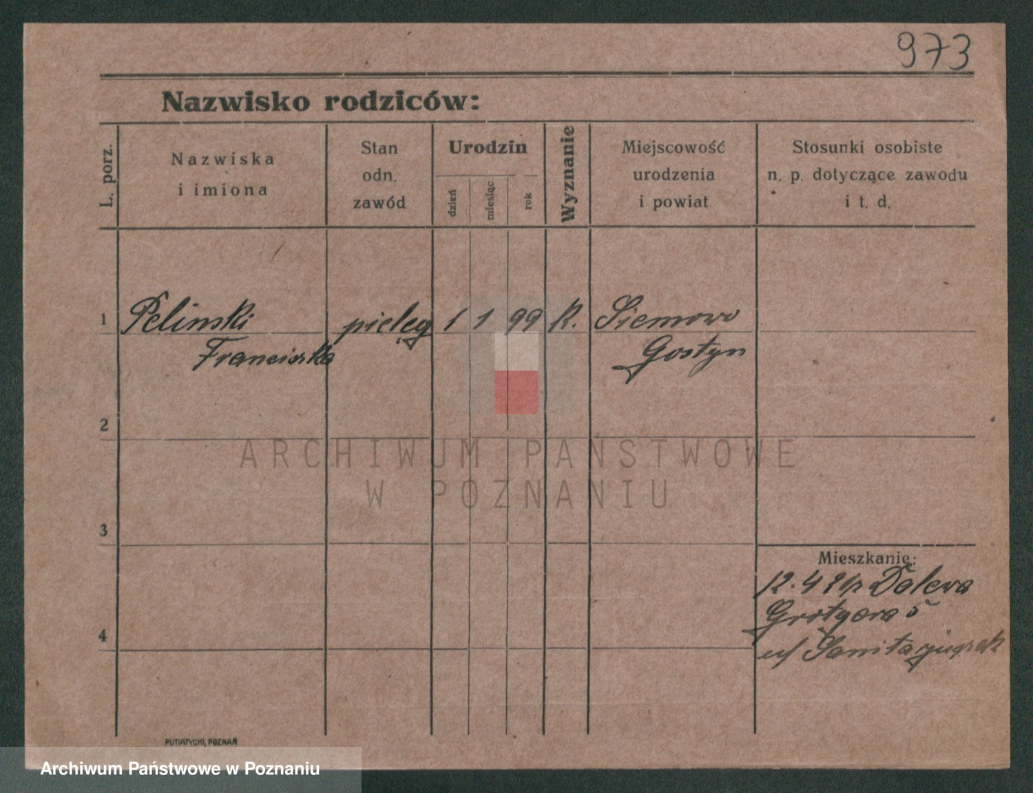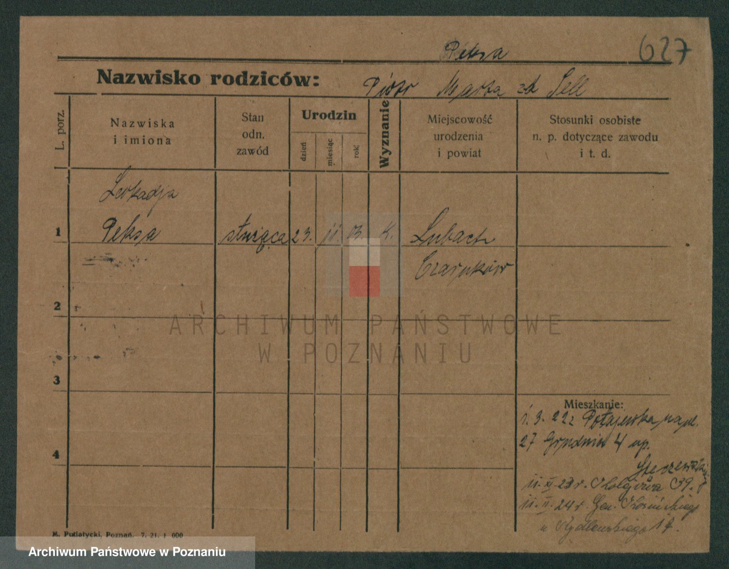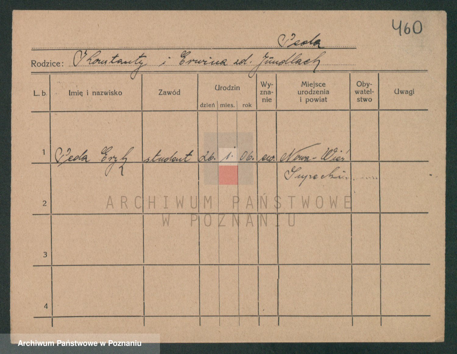 Podgląd karty osobowej dostępny jest po kliknięciu na nazwisko lub ikonkę karty. Można dokonywać powiększenia (ikony na górze) lub przechodzić między kolejnymi skanami (strzałki po bokach).