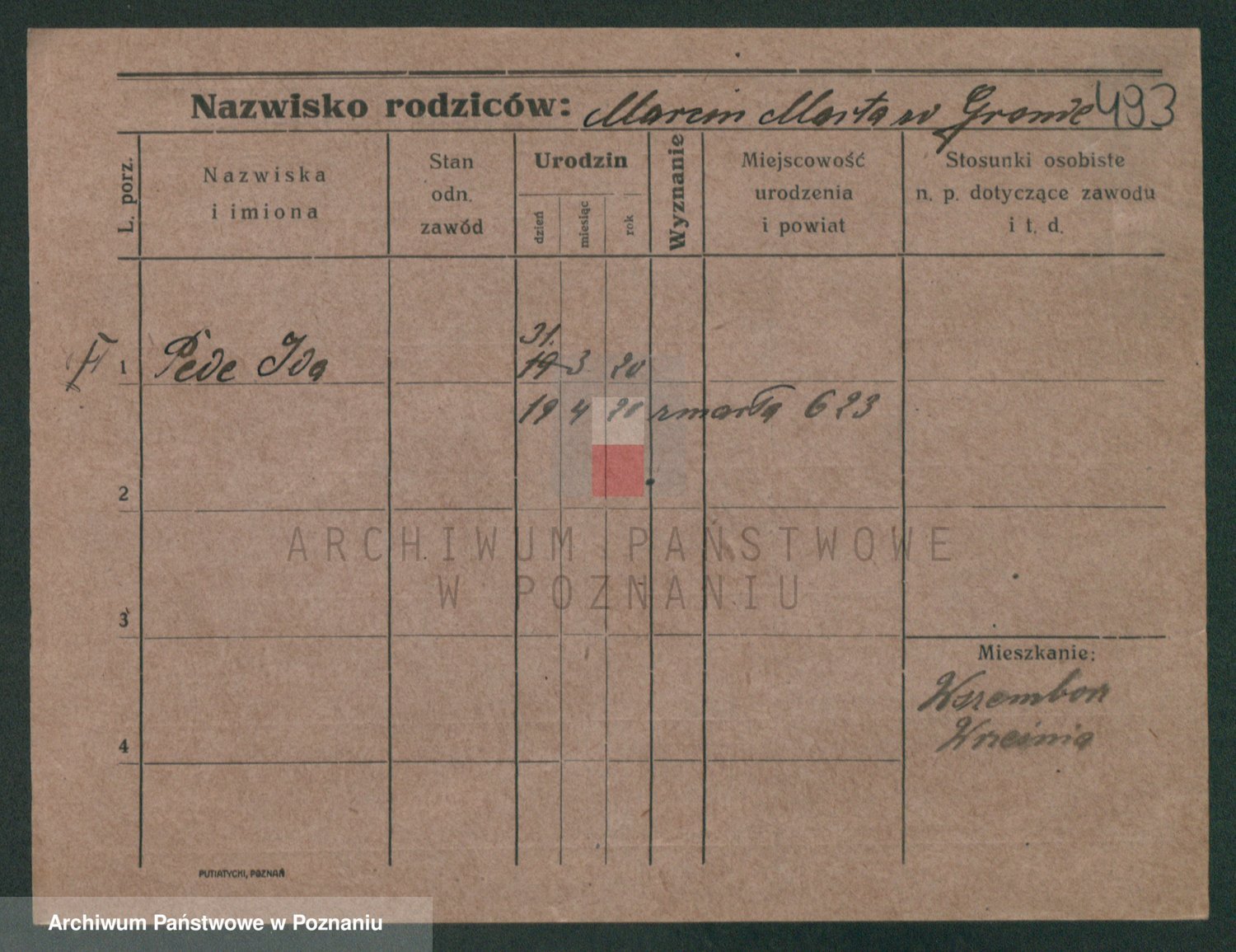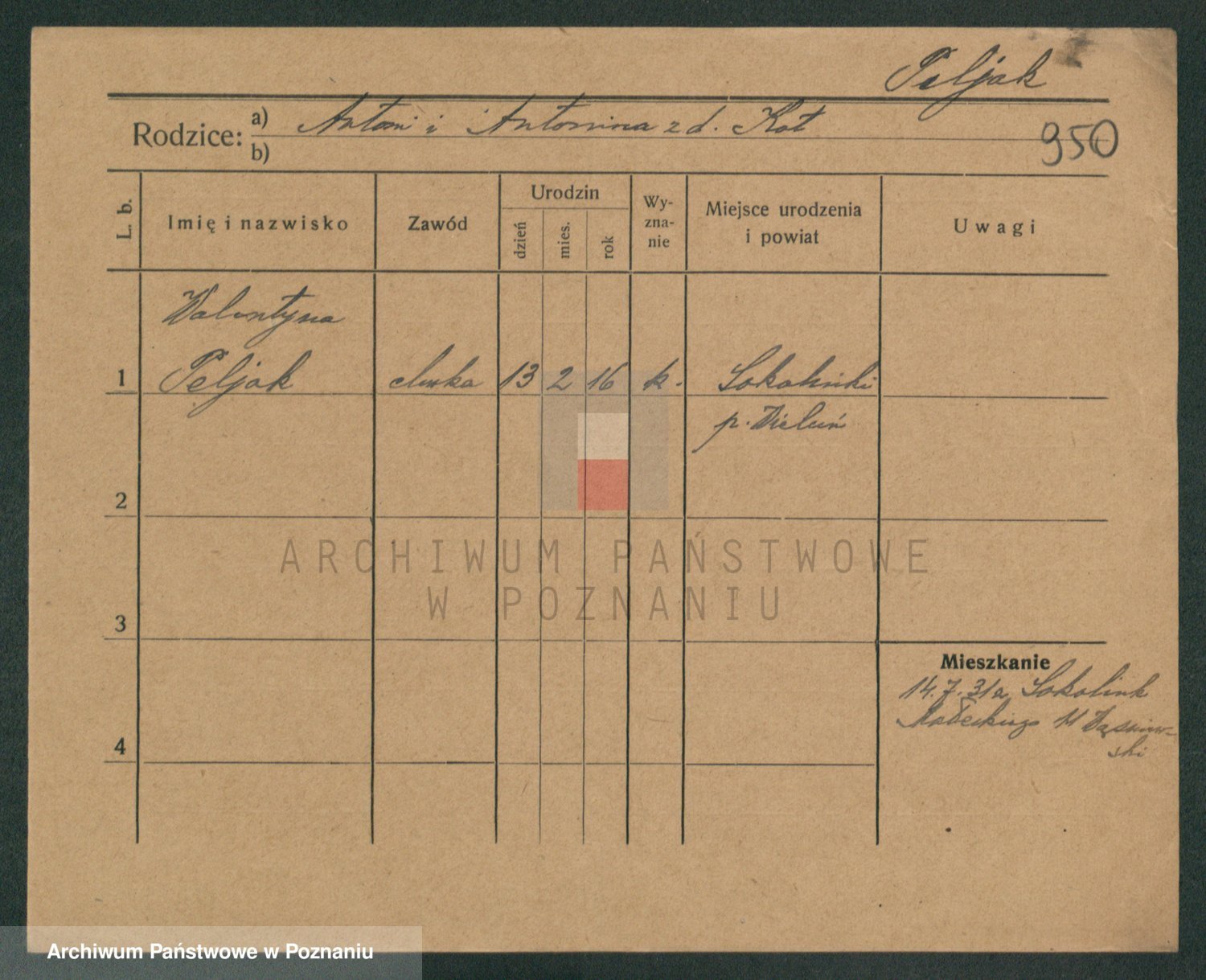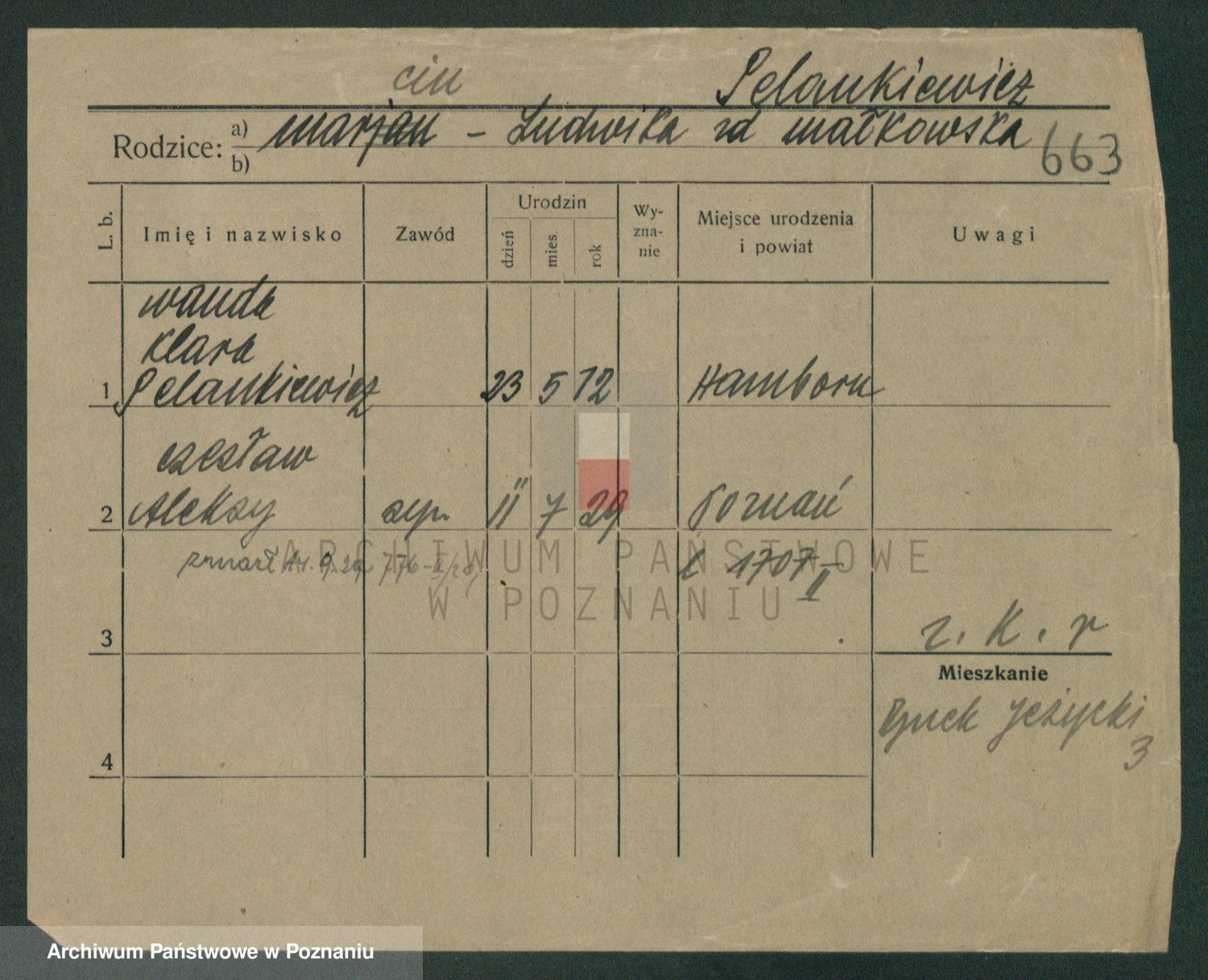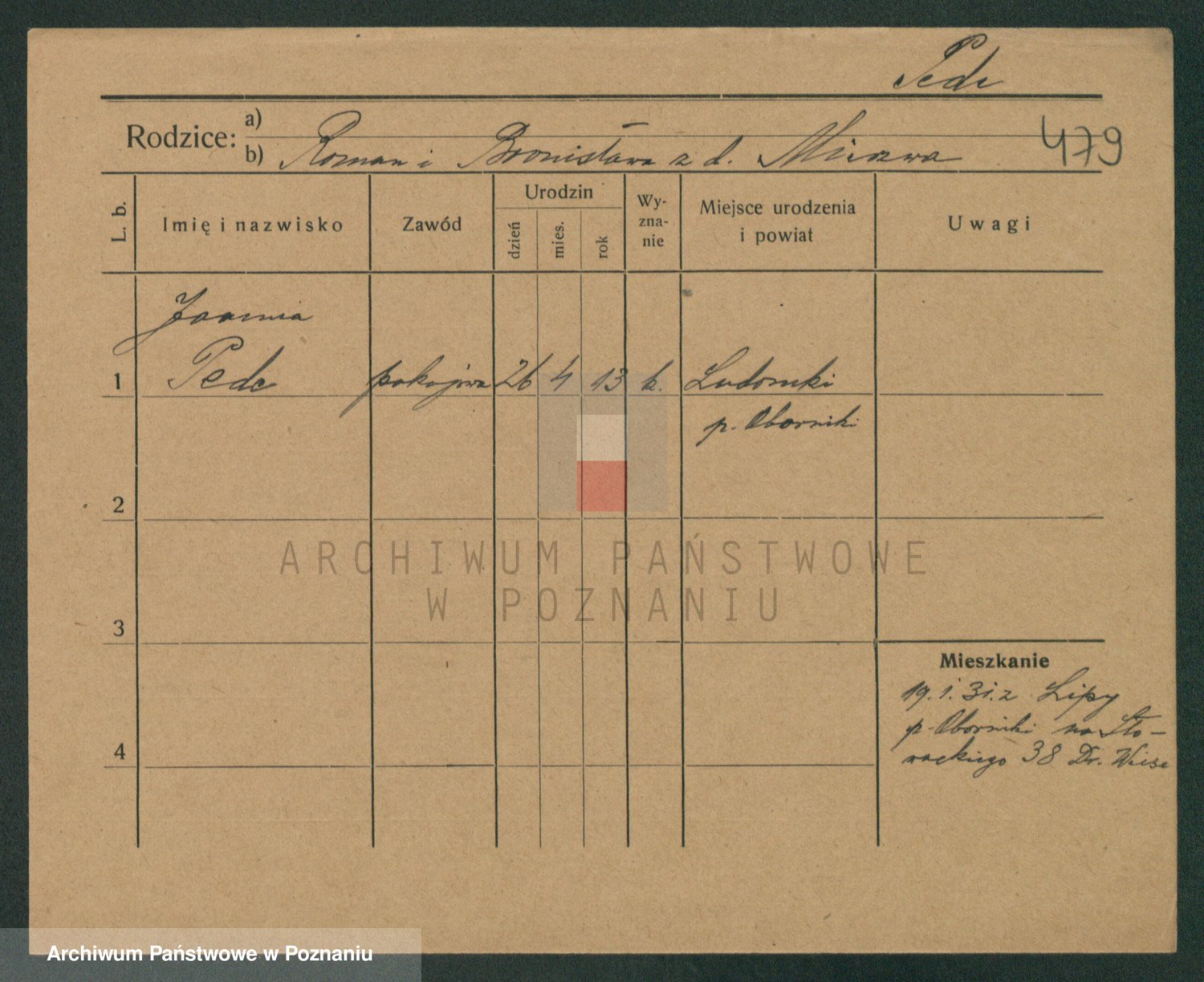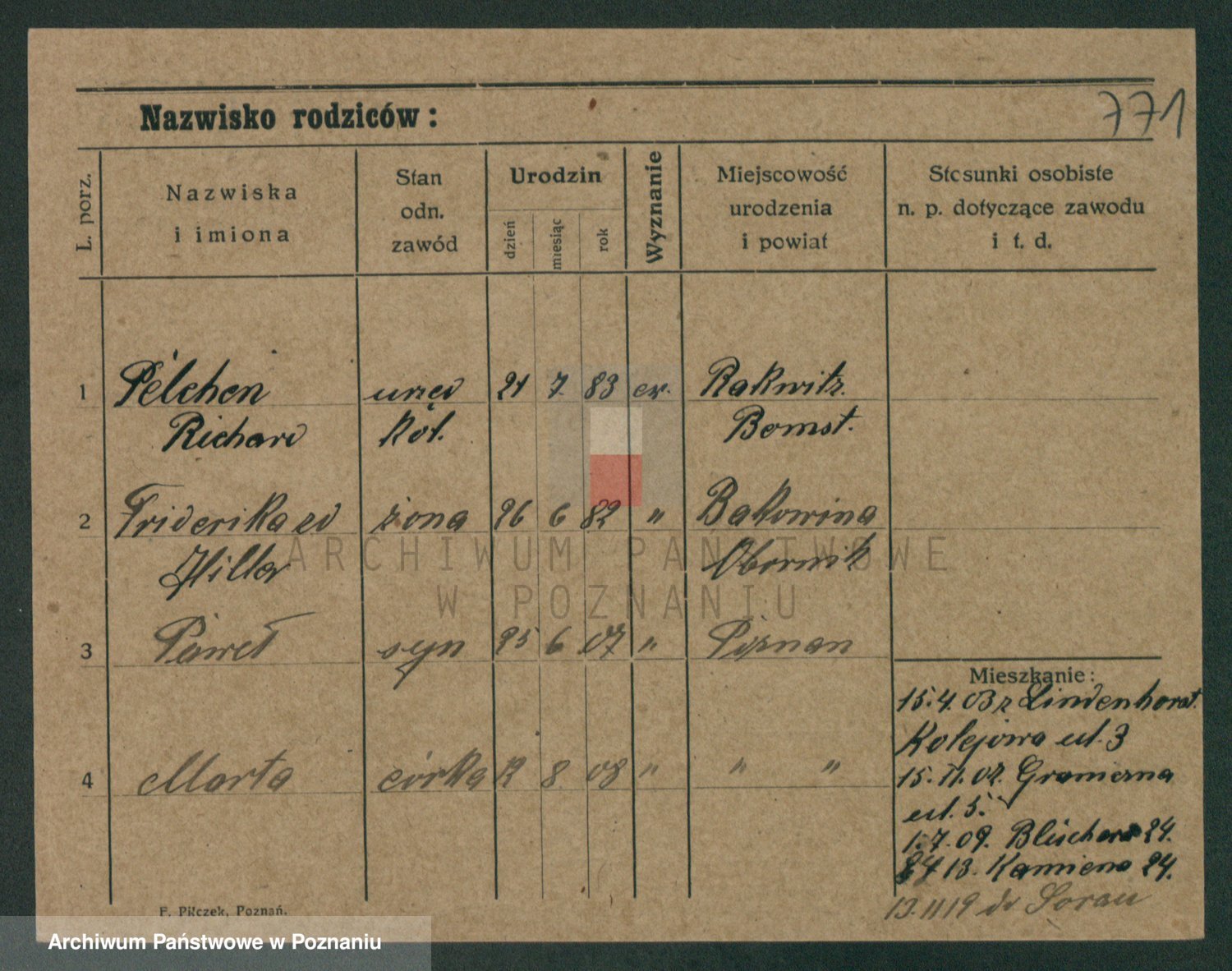 Podgląd karty osobowej dostępny jest po kliknięciu na nazwisko lub ikonkę karty. Można dokonywać powiększenia (ikony na górze) lub przechodzić między kolejnymi skanami (strzałki po bokach).