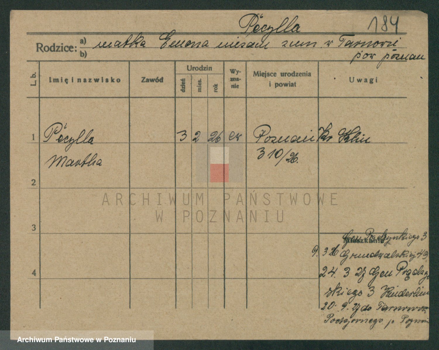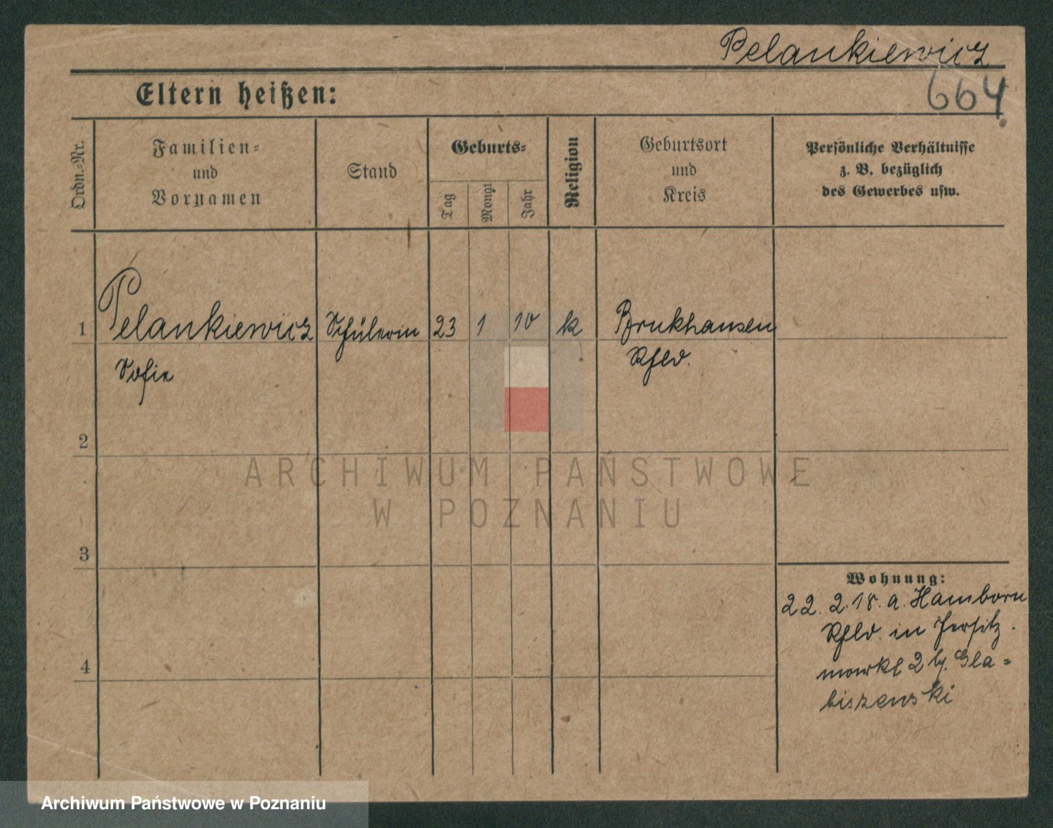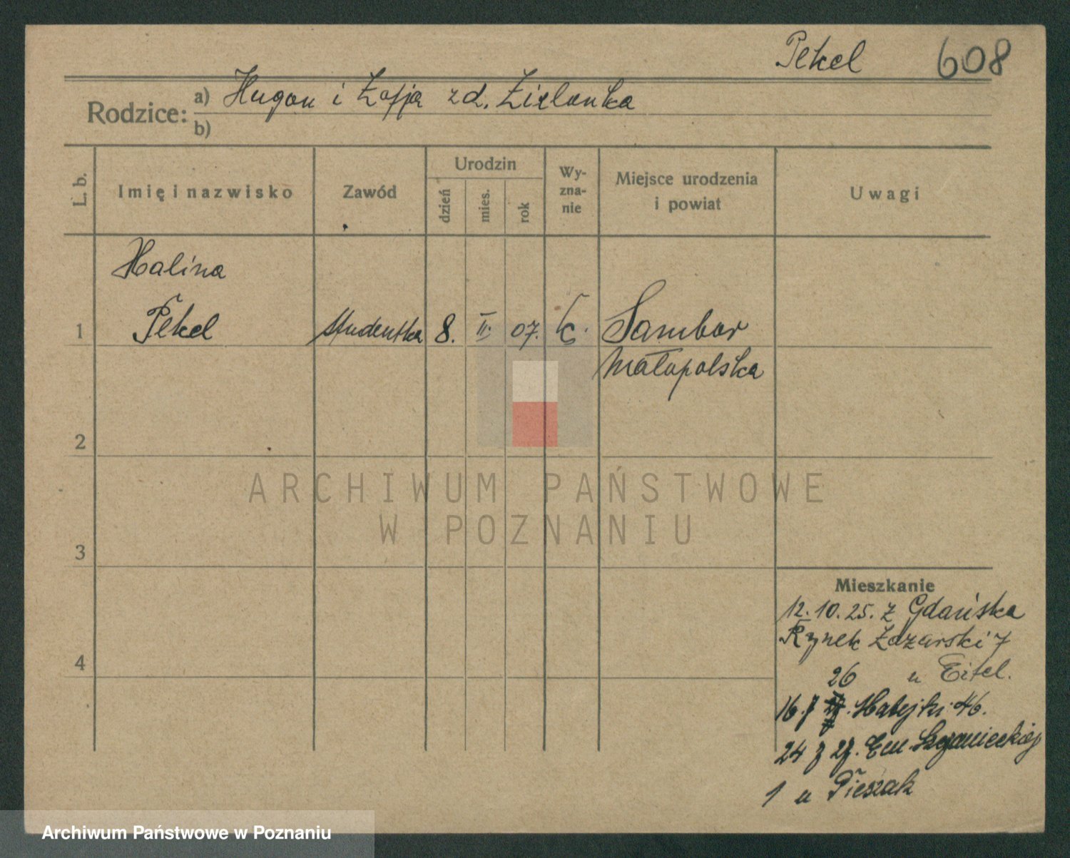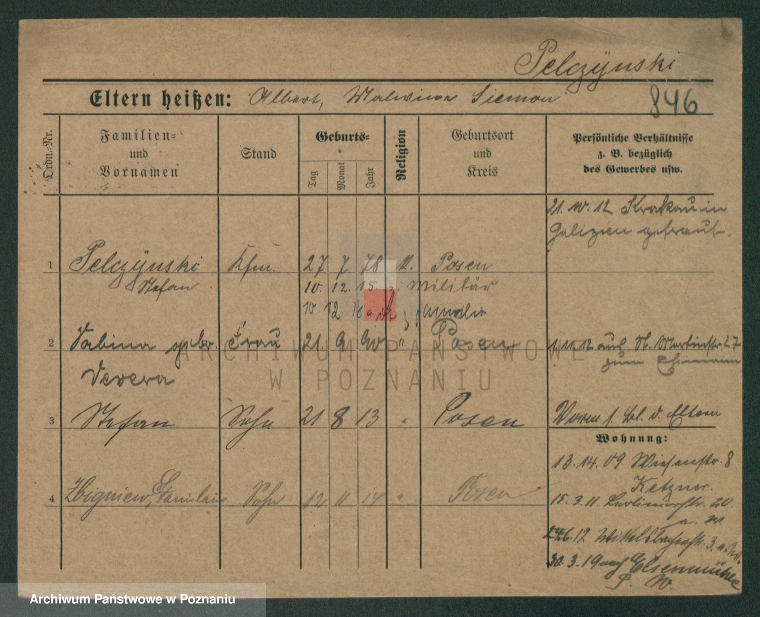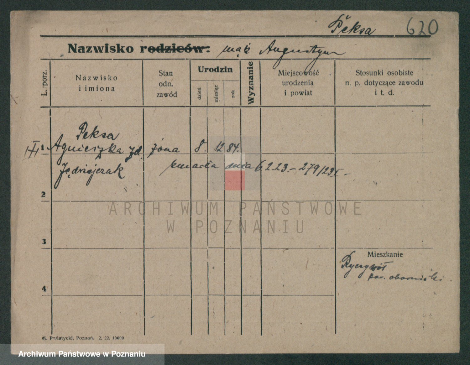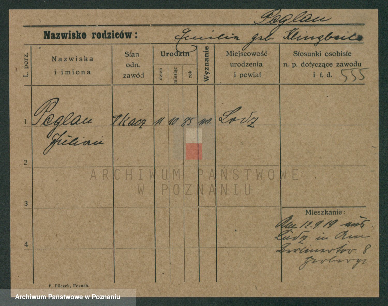 Podgląd karty osobowej dostępny jest po kliknięciu na nazwisko lub ikonkę karty. Można dokonywać powiększenia (ikony na górze) lub przechodzić między kolejnymi skanami (strzałki po bokach).