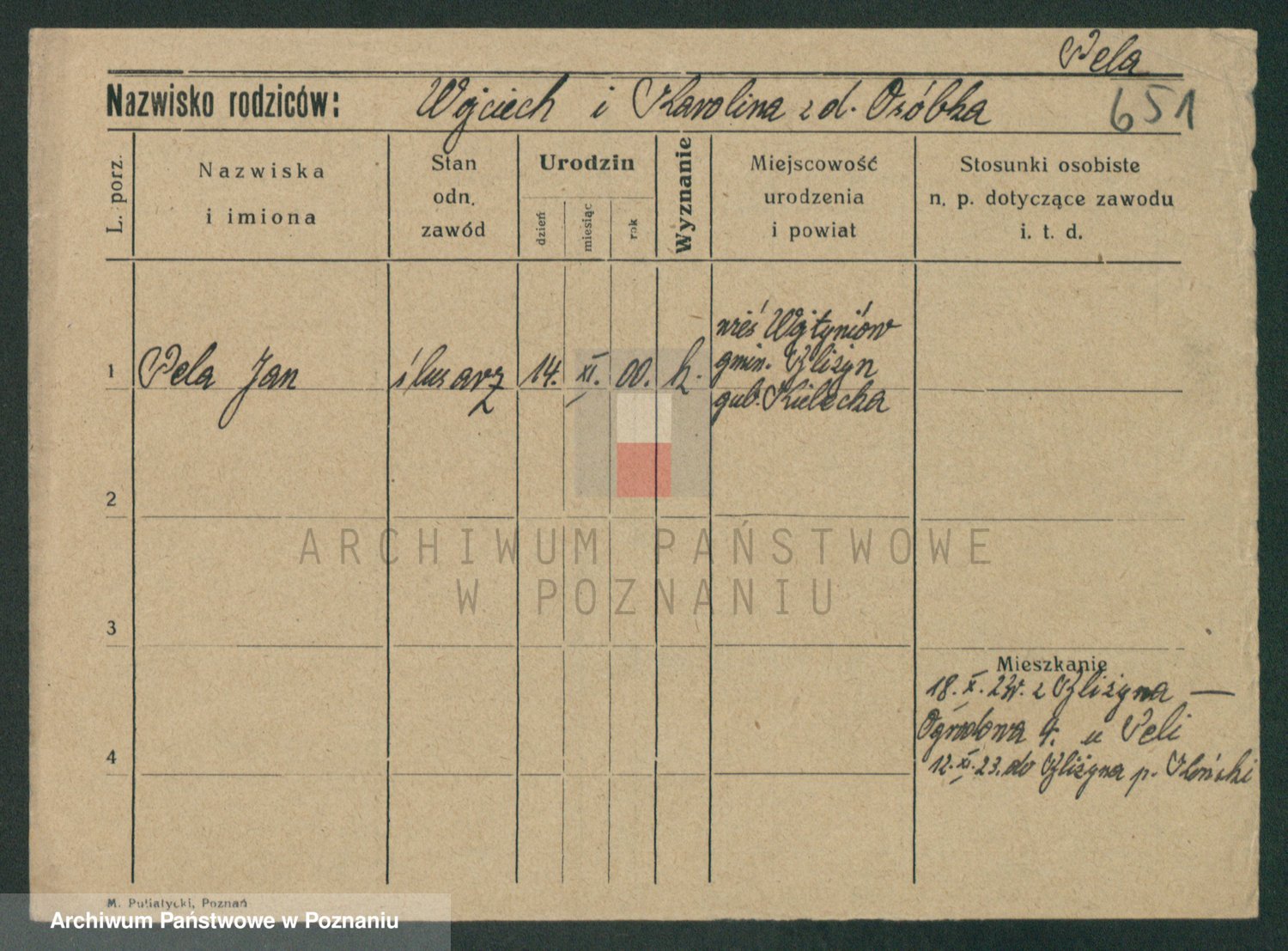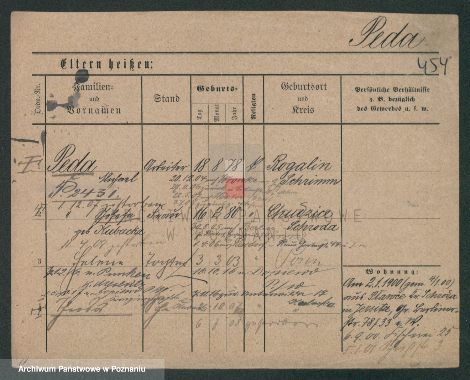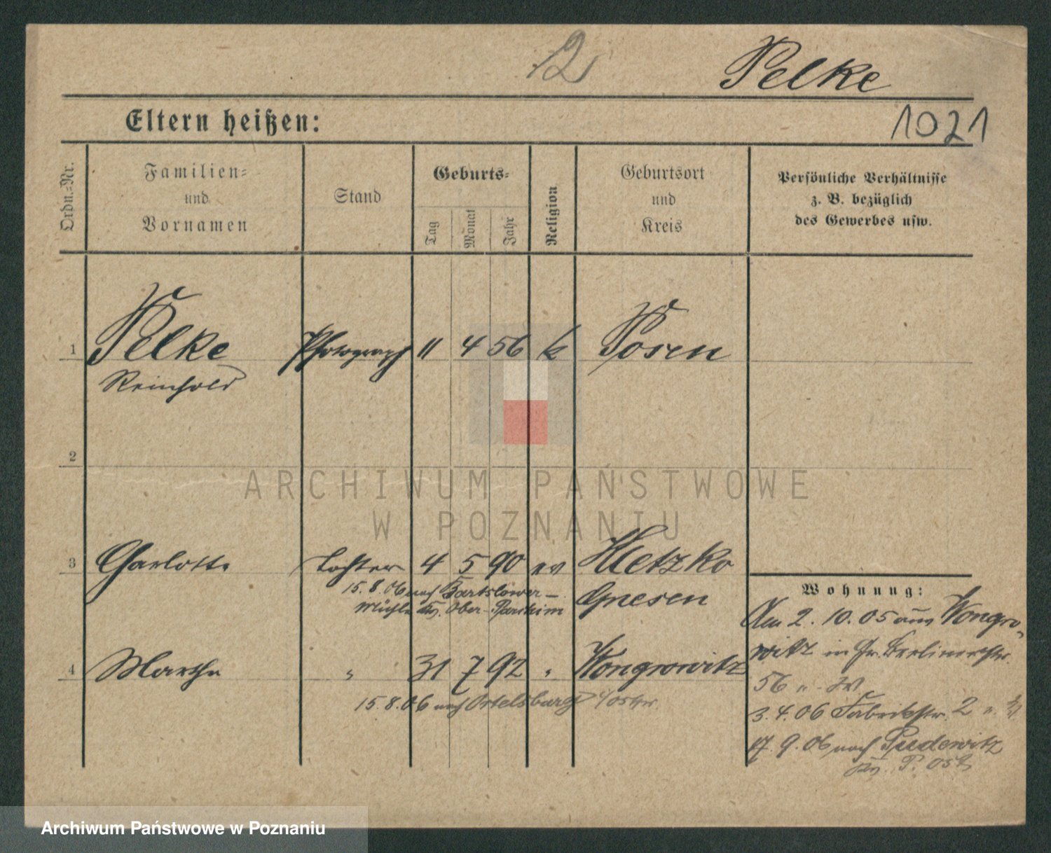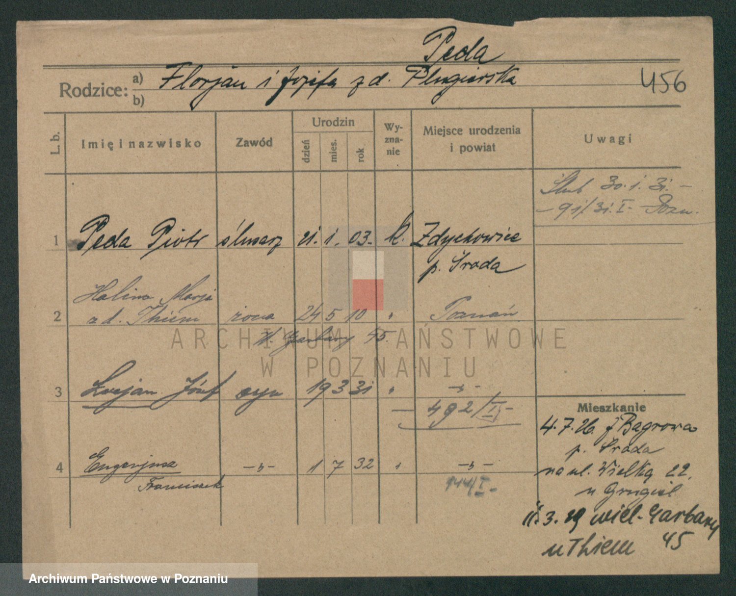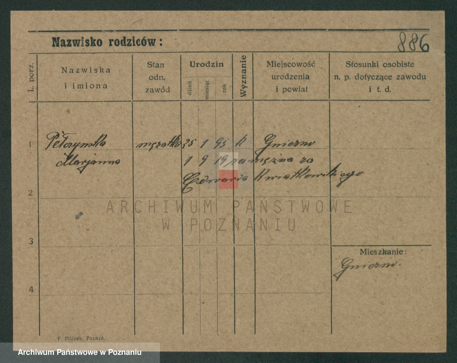 Podgląd karty osobowej dostępny jest po kliknięciu na nazwisko lub ikonkę karty. Można dokonywać powiększenia (ikony na górze) lub przechodzić między kolejnymi skanami (strzałki po bokach).