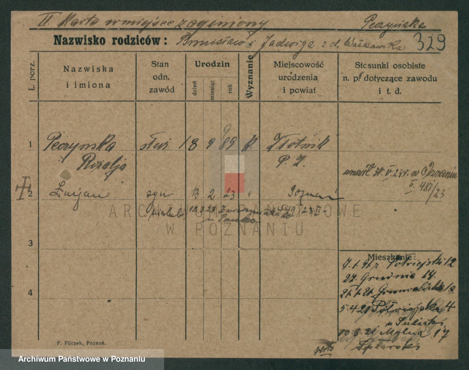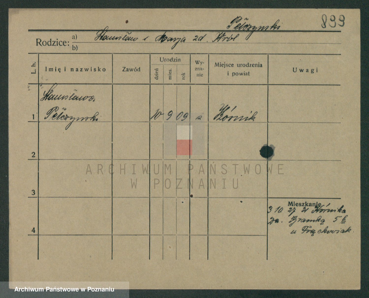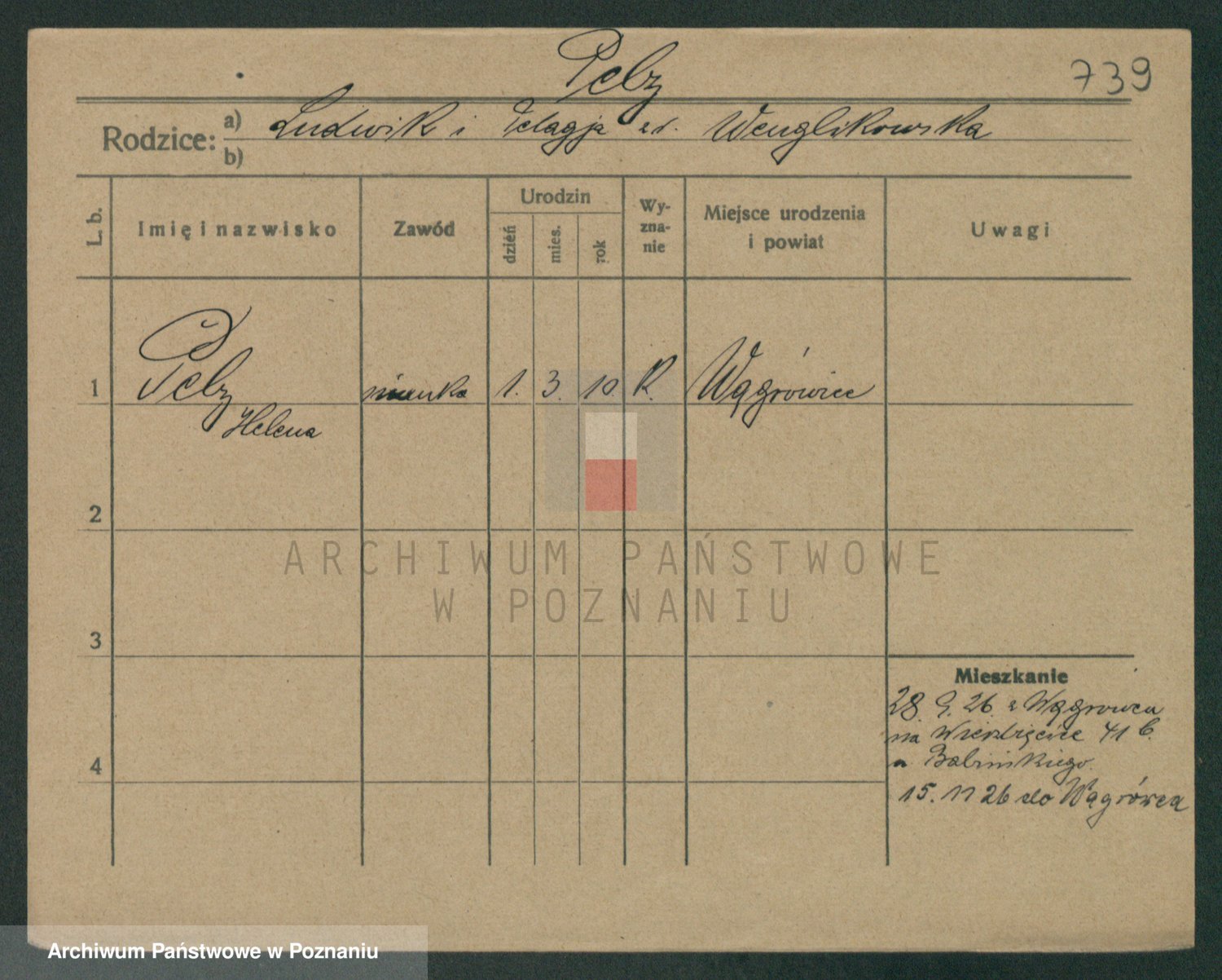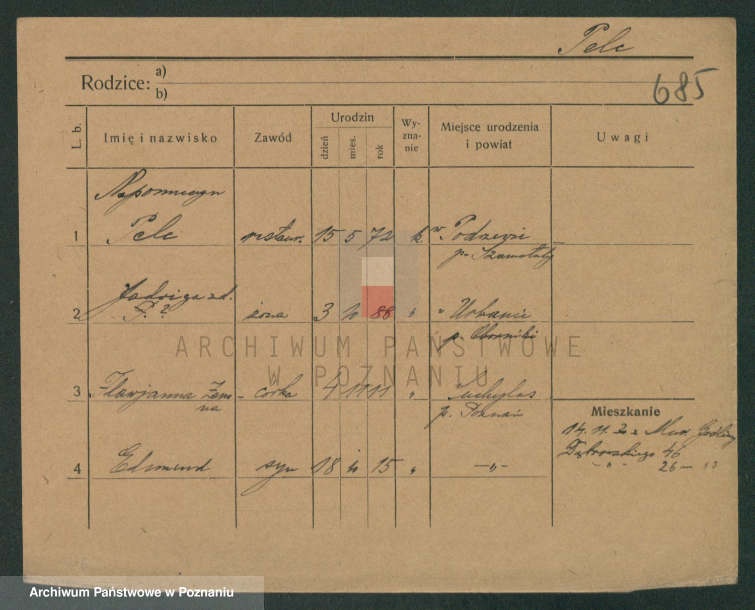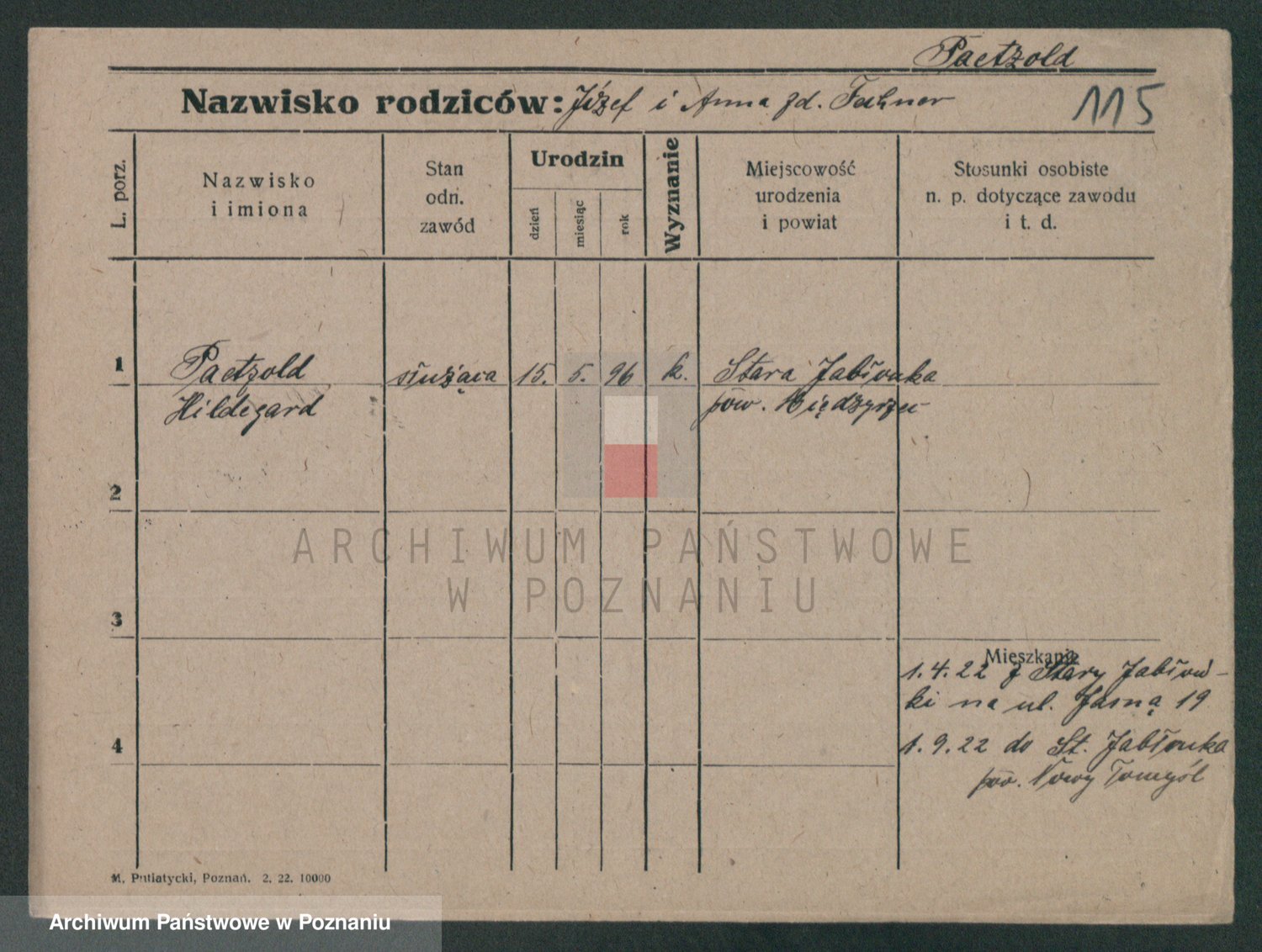 Podgląd karty osobowej dostępny jest po kliknięciu na nazwisko lub ikonkę karty. Można dokonywać powiększenia (ikony na górze) lub przechodzić między kolejnymi skanami (strzałki po bokach).