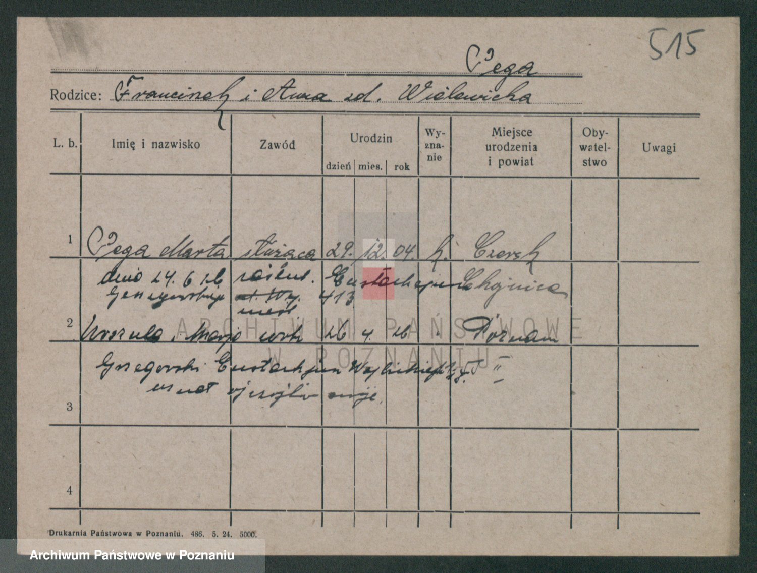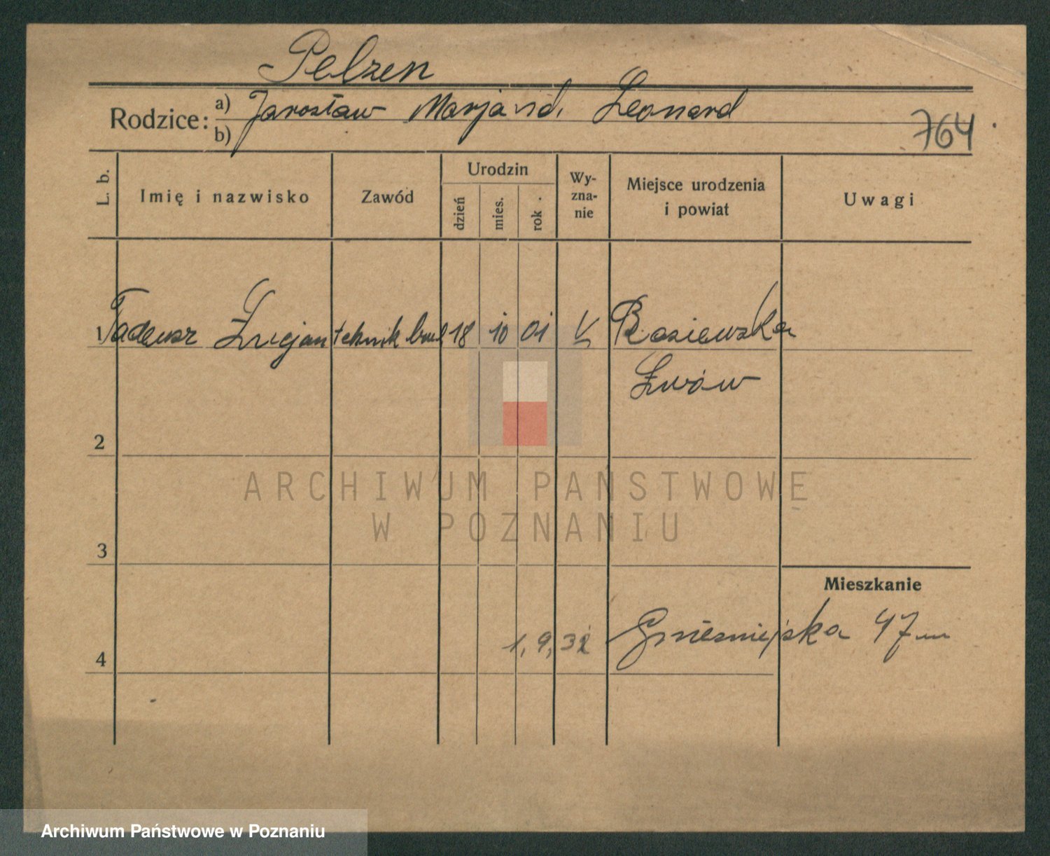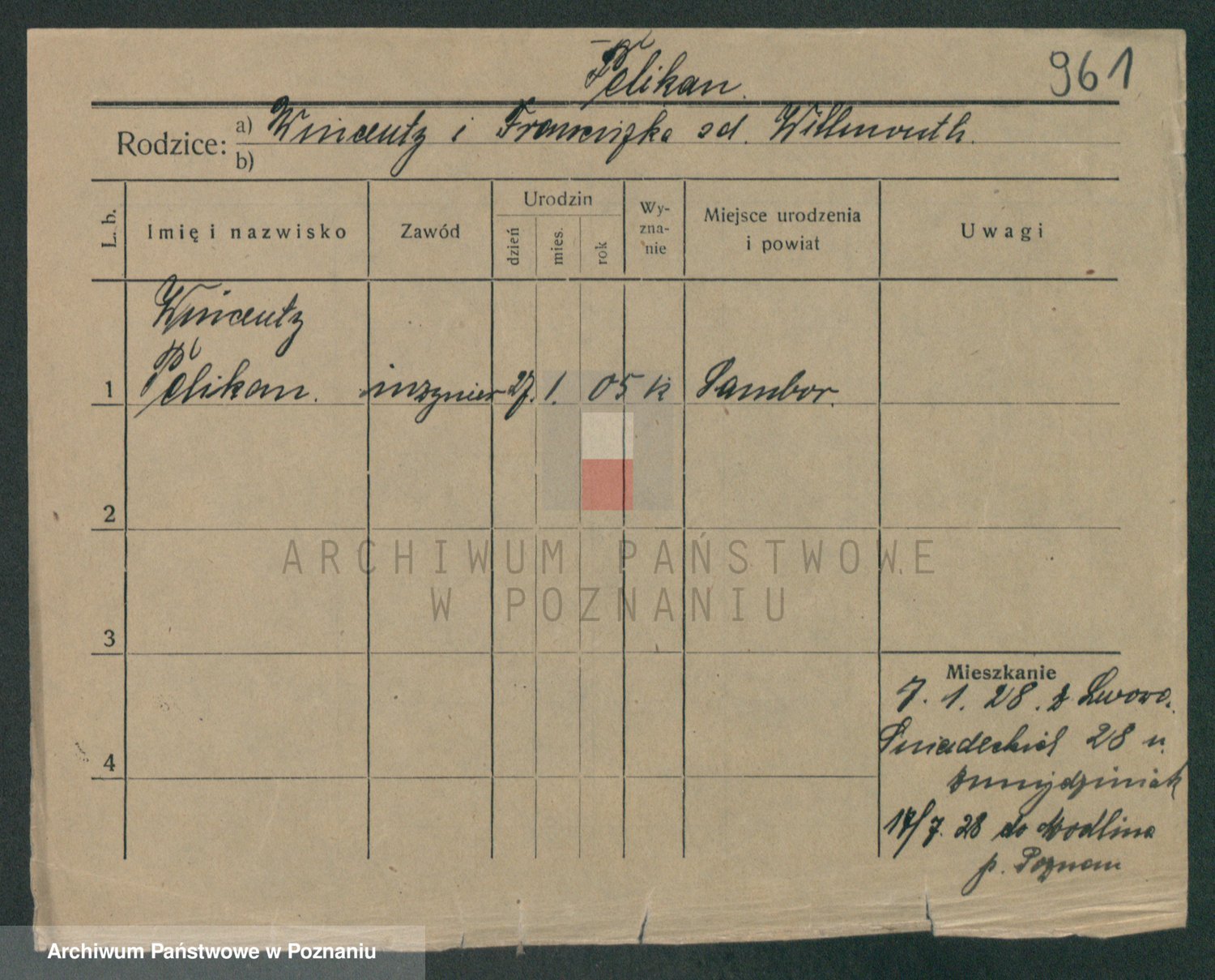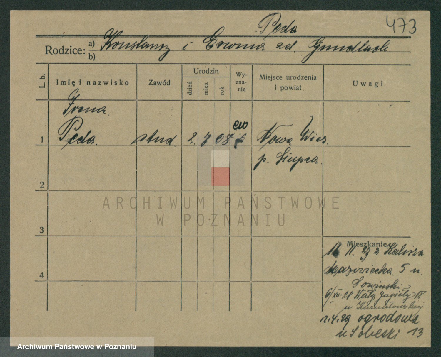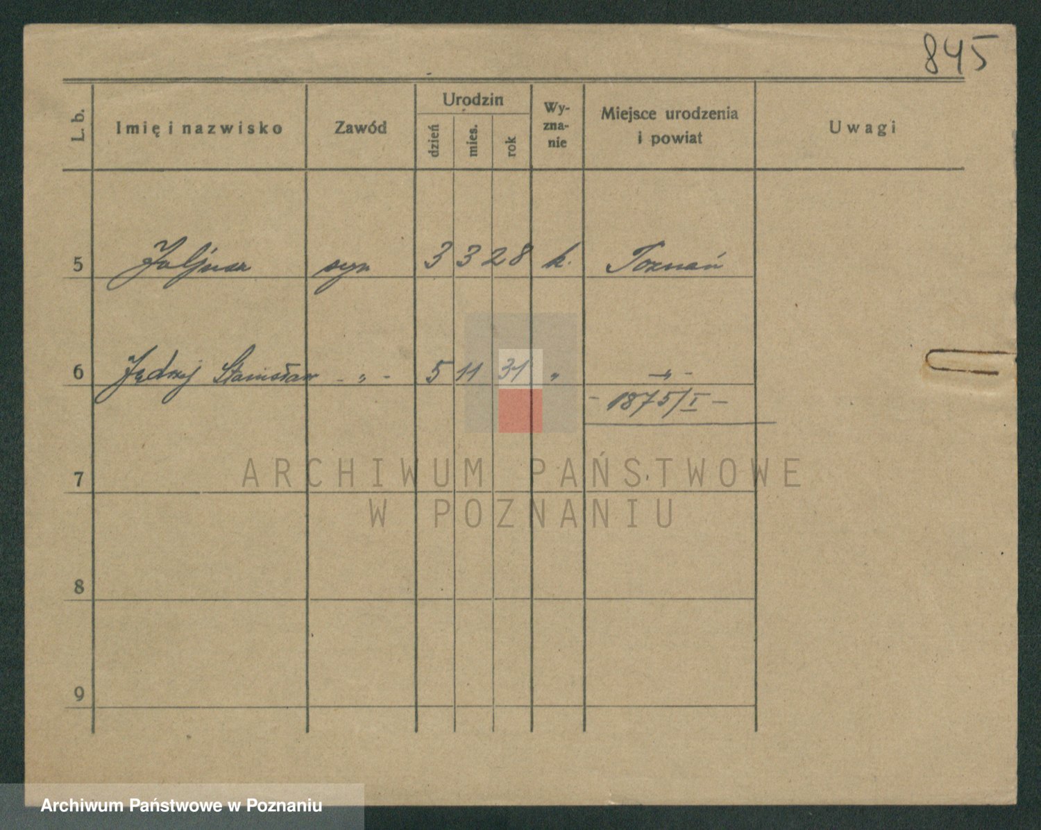 Podgląd karty osobowej dostępny jest po kliknięciu na nazwisko lub ikonkę karty. Można dokonywać powiększenia (ikony na górze) lub przechodzić między kolejnymi skanami (strzałki po bokach).