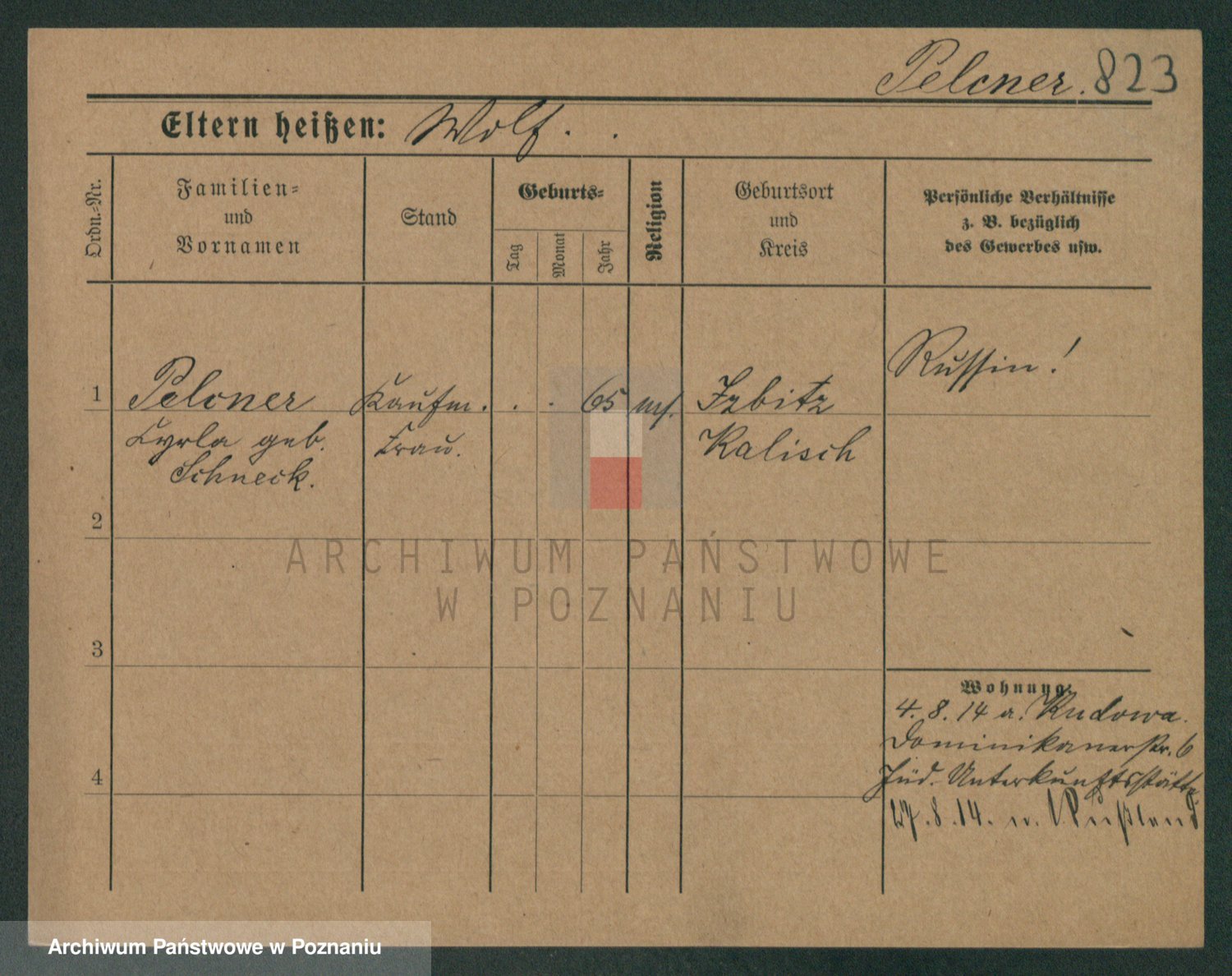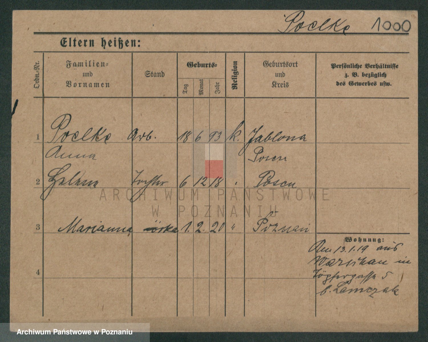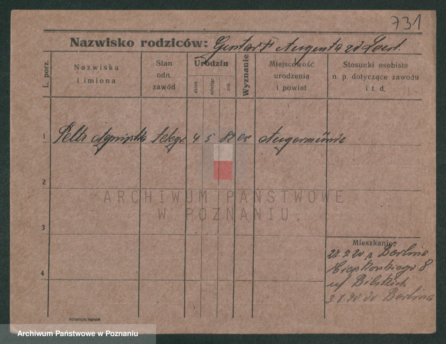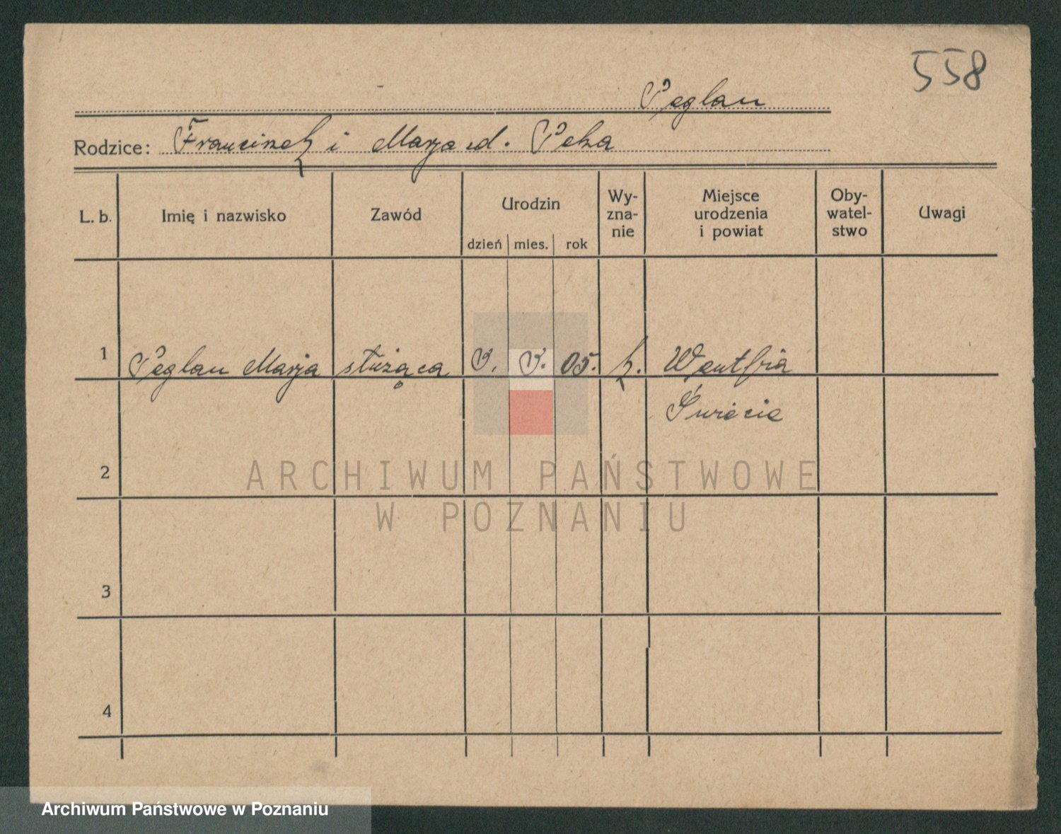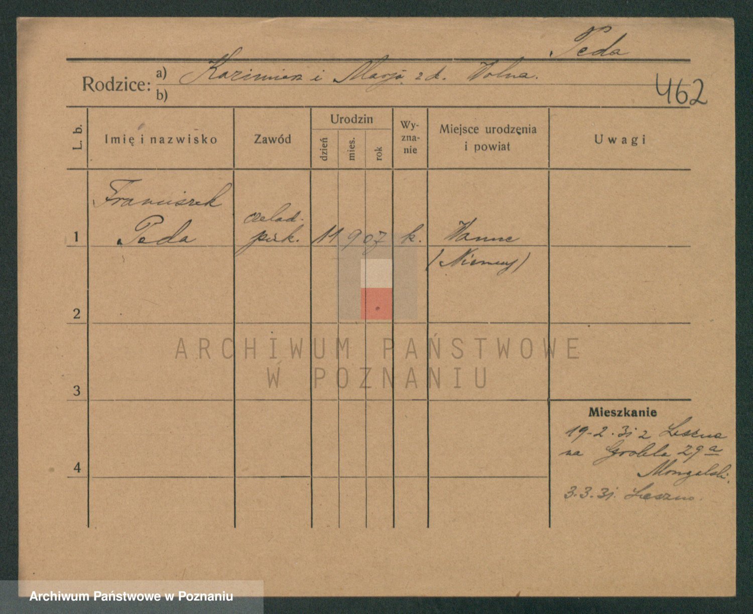 Podgląd karty osobowej dostępny jest po kliknięciu na nazwisko lub ikonkę karty. Można dokonywać powiększenia (ikony na górze) lub przechodzić między kolejnymi skanami (strzałki po bokach).