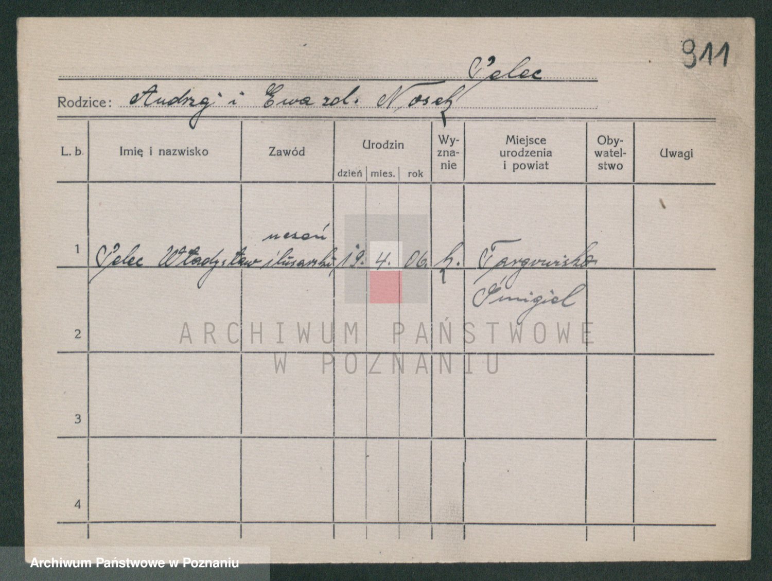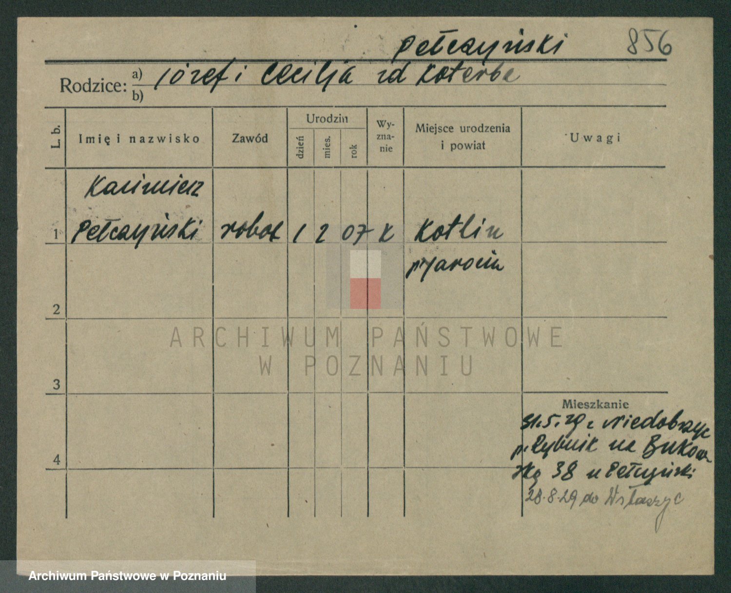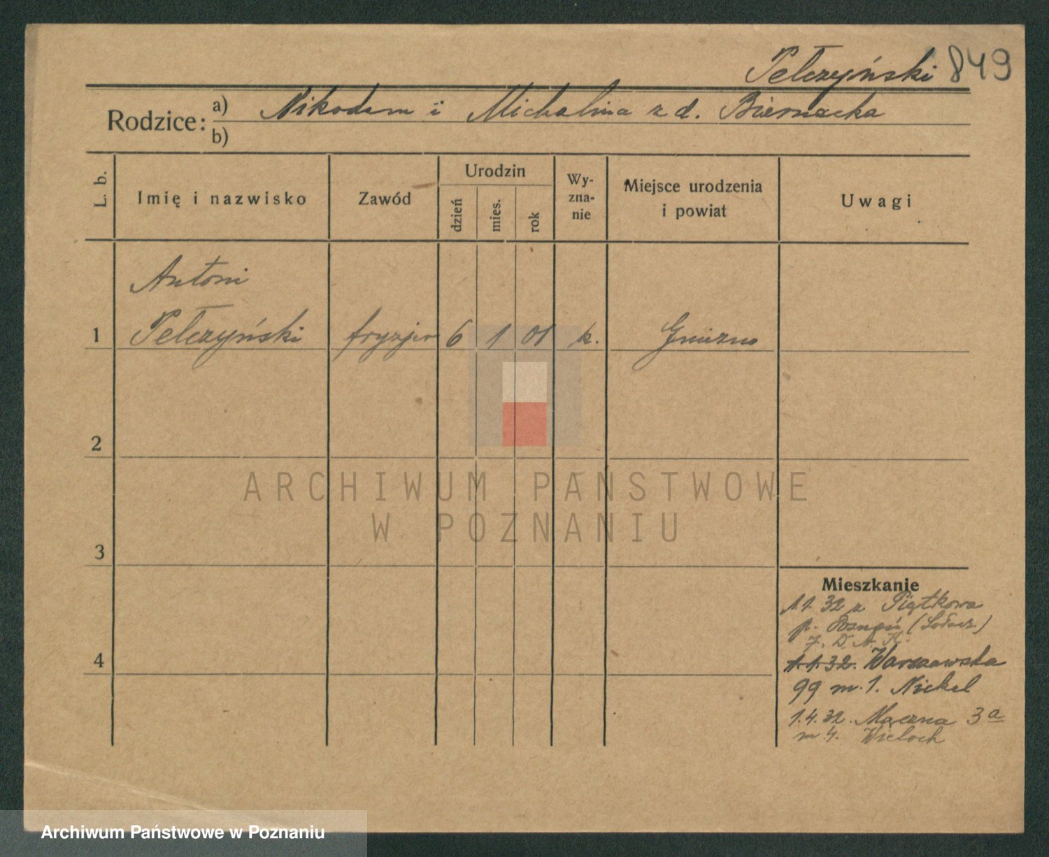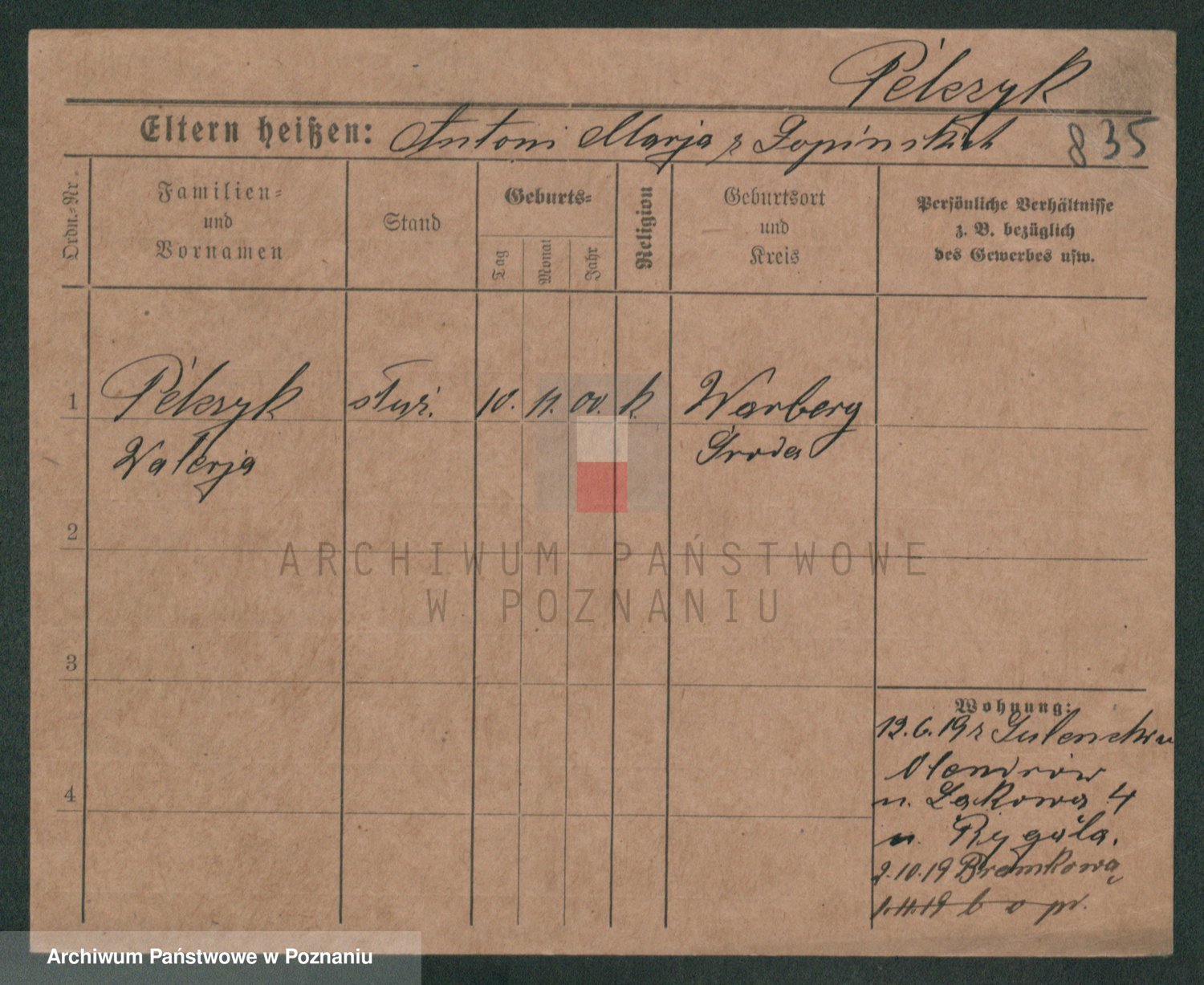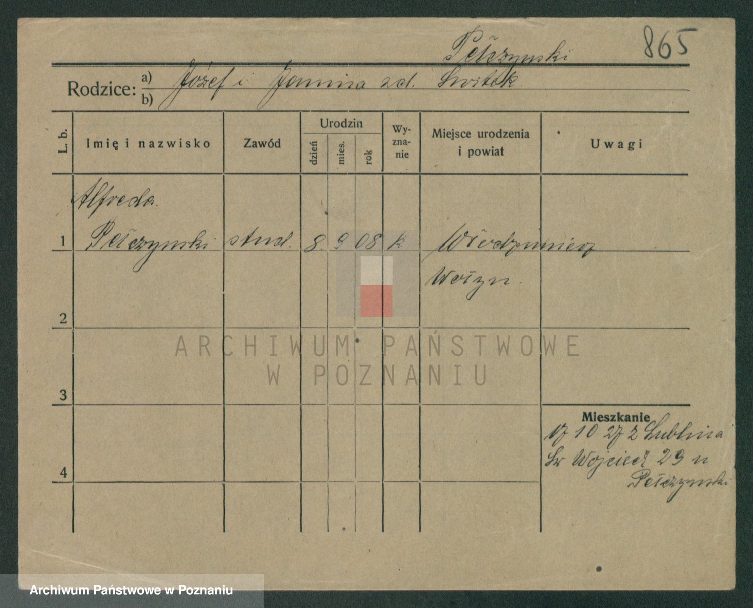 Podgląd karty osobowej dostępny jest po kliknięciu na nazwisko lub ikonkę karty. Można dokonywać powiększenia (ikony na górze) lub przechodzić między kolejnymi skanami (strzałki po bokach).
