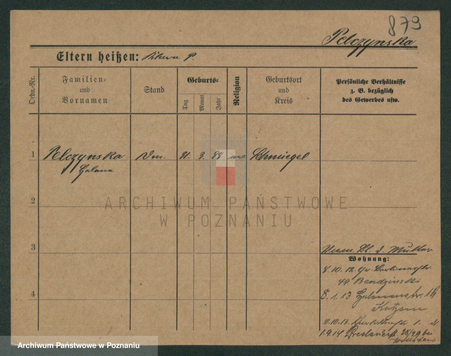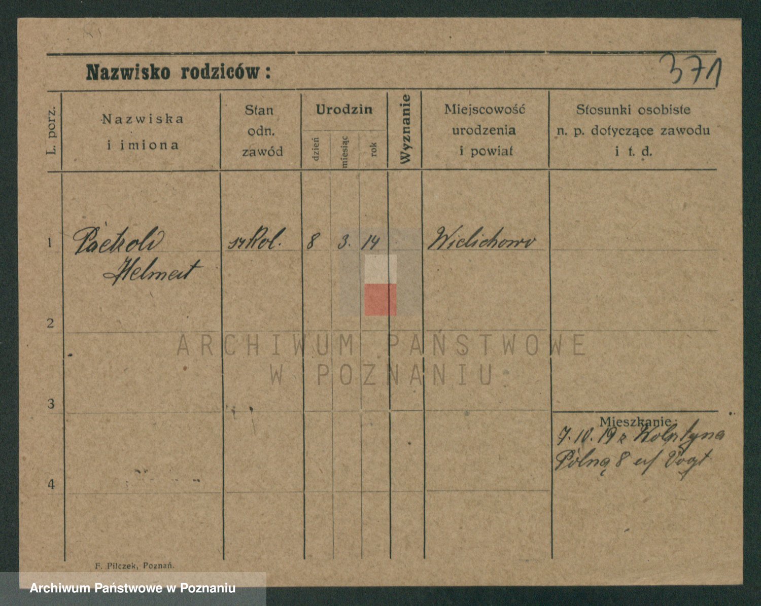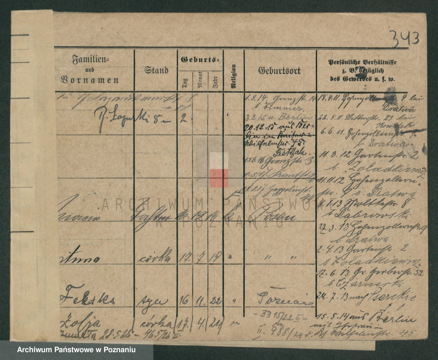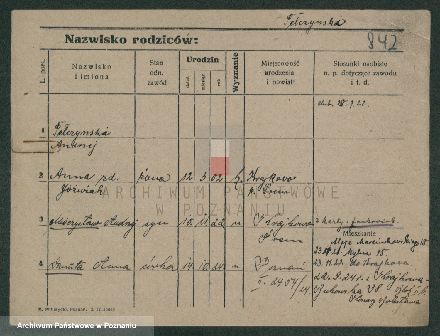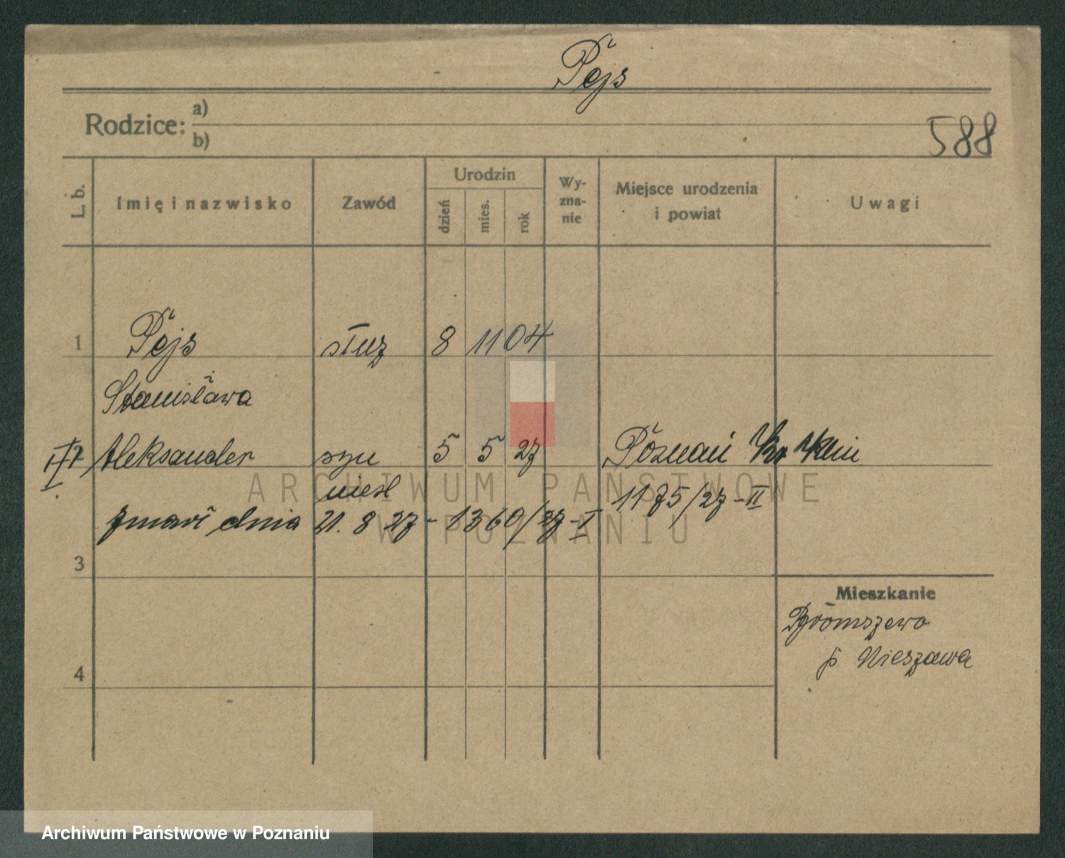 Podgląd karty osobowej dostępny jest po kliknięciu na nazwisko lub ikonkę karty. Można dokonywać powiększenia (ikony na górze) lub przechodzić między kolejnymi skanami (strzałki po bokach).