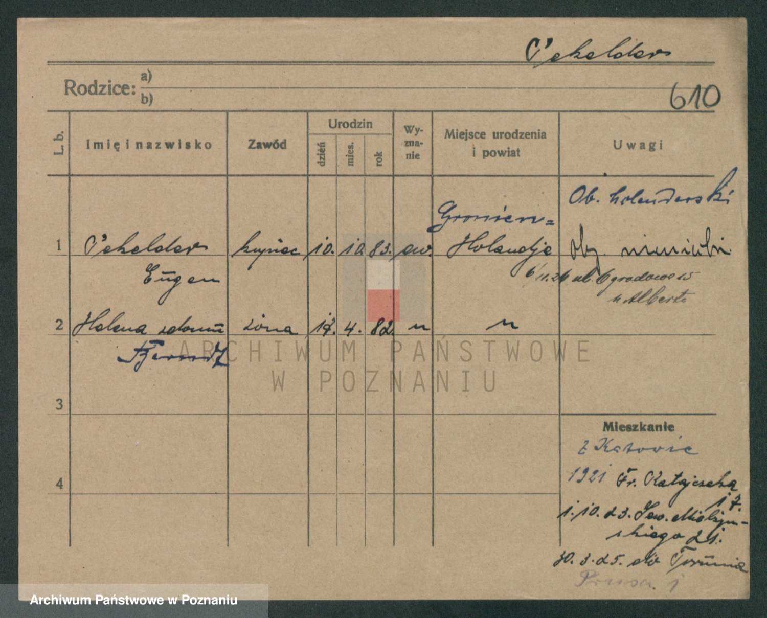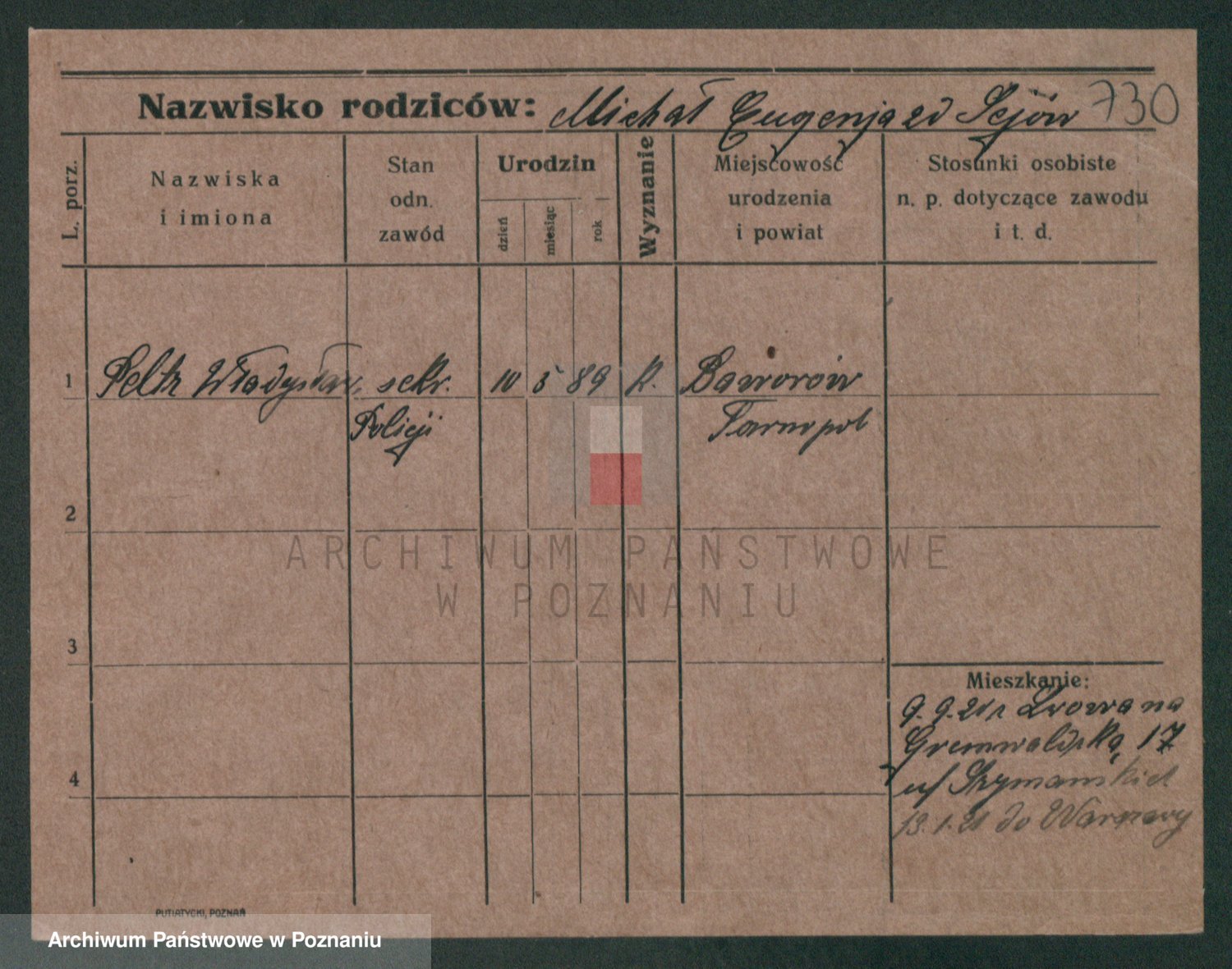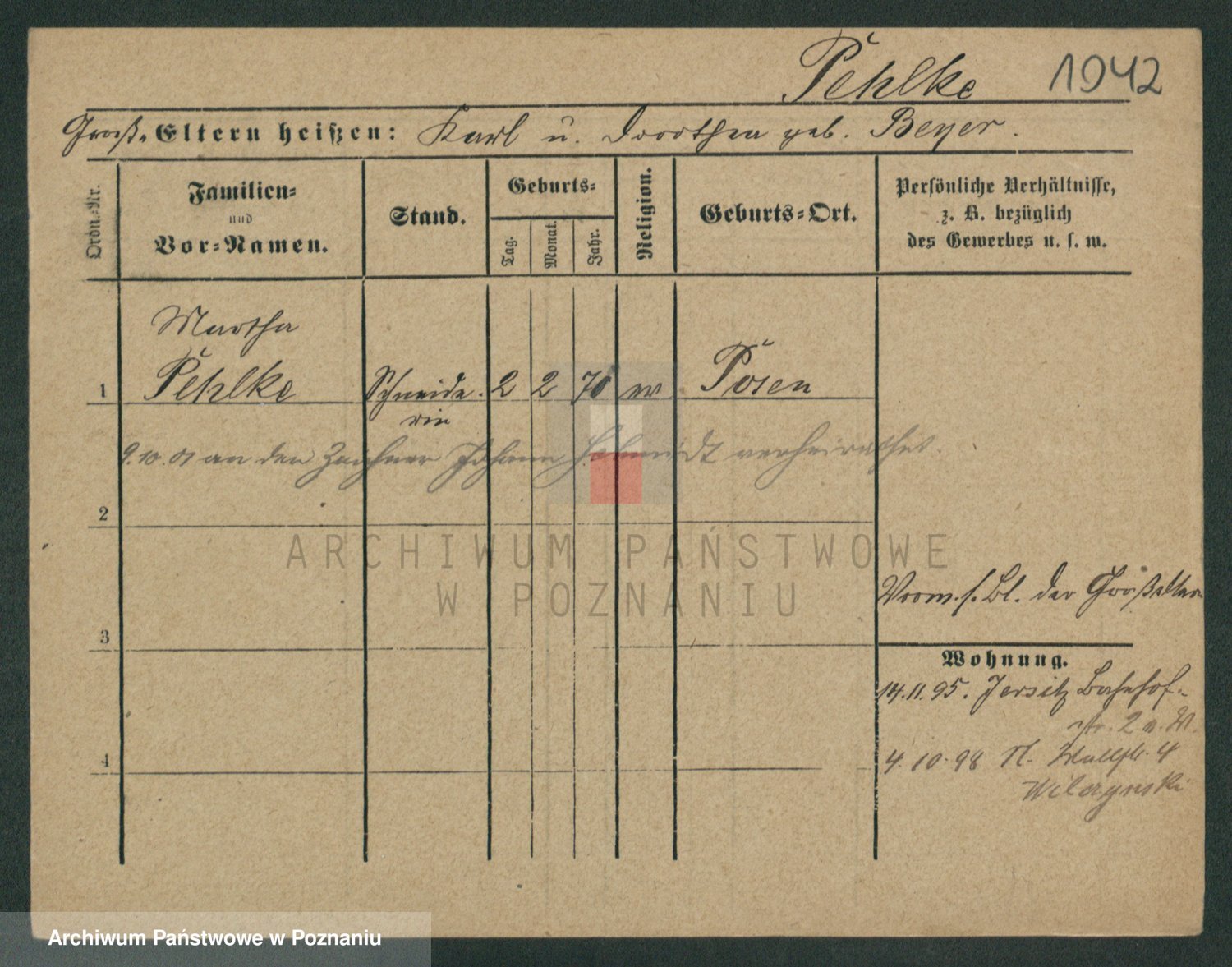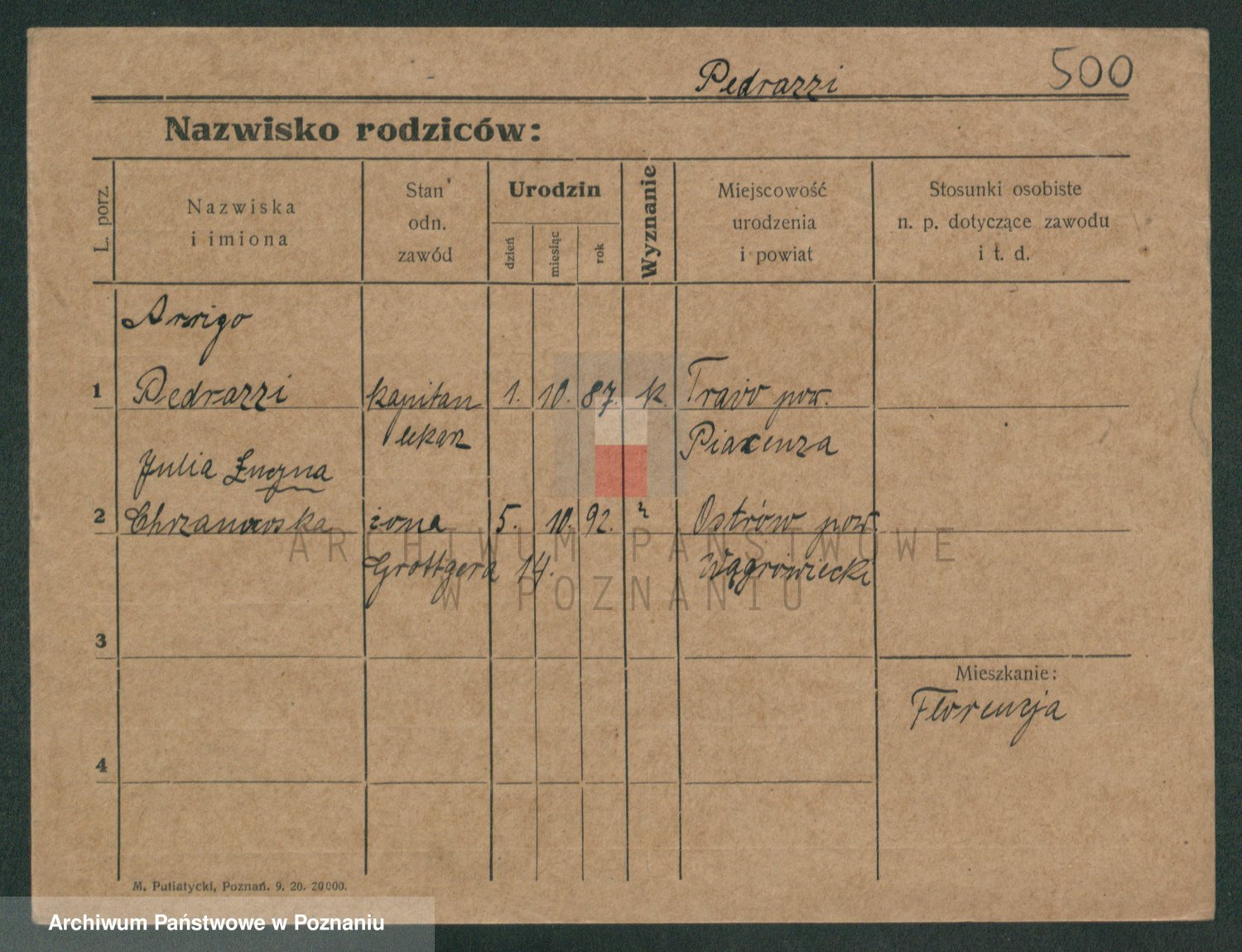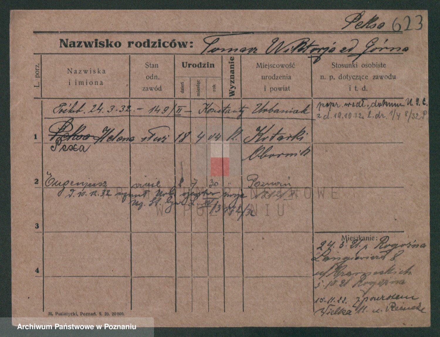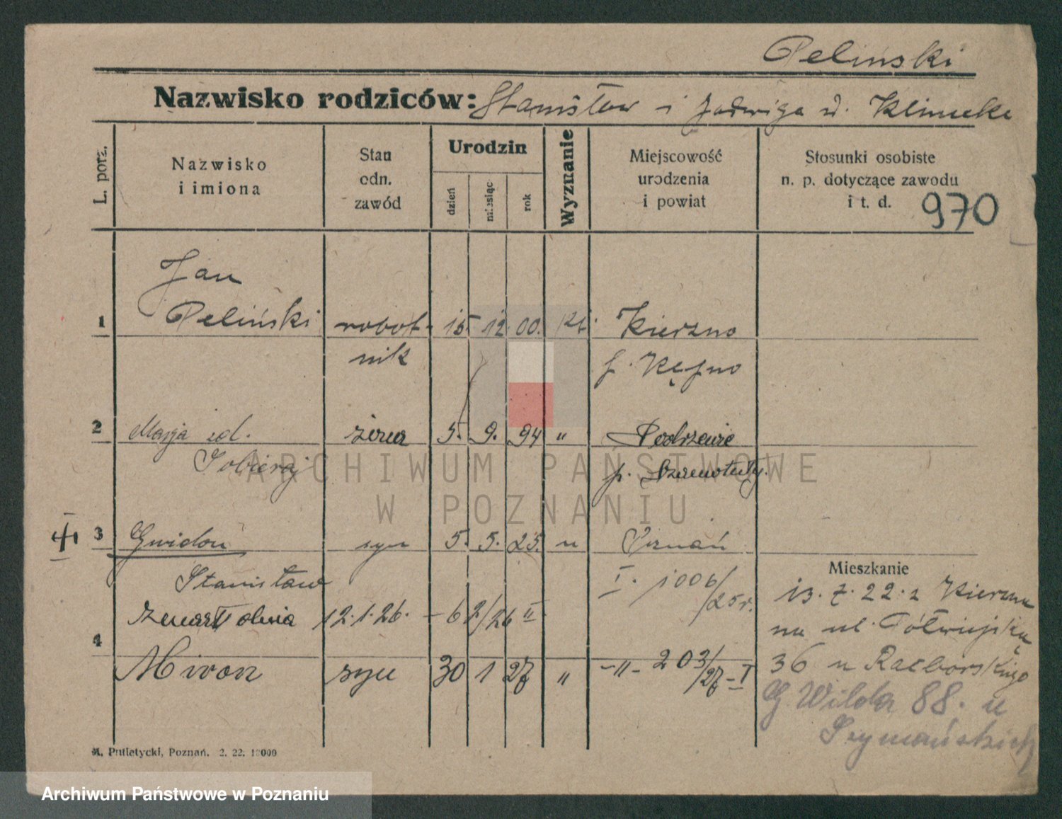 Podgląd karty osobowej dostępny jest po kliknięciu na nazwisko lub ikonkę karty. Można dokonywać powiększenia (ikony na górze) lub przechodzić między kolejnymi skanami (strzałki po bokach).