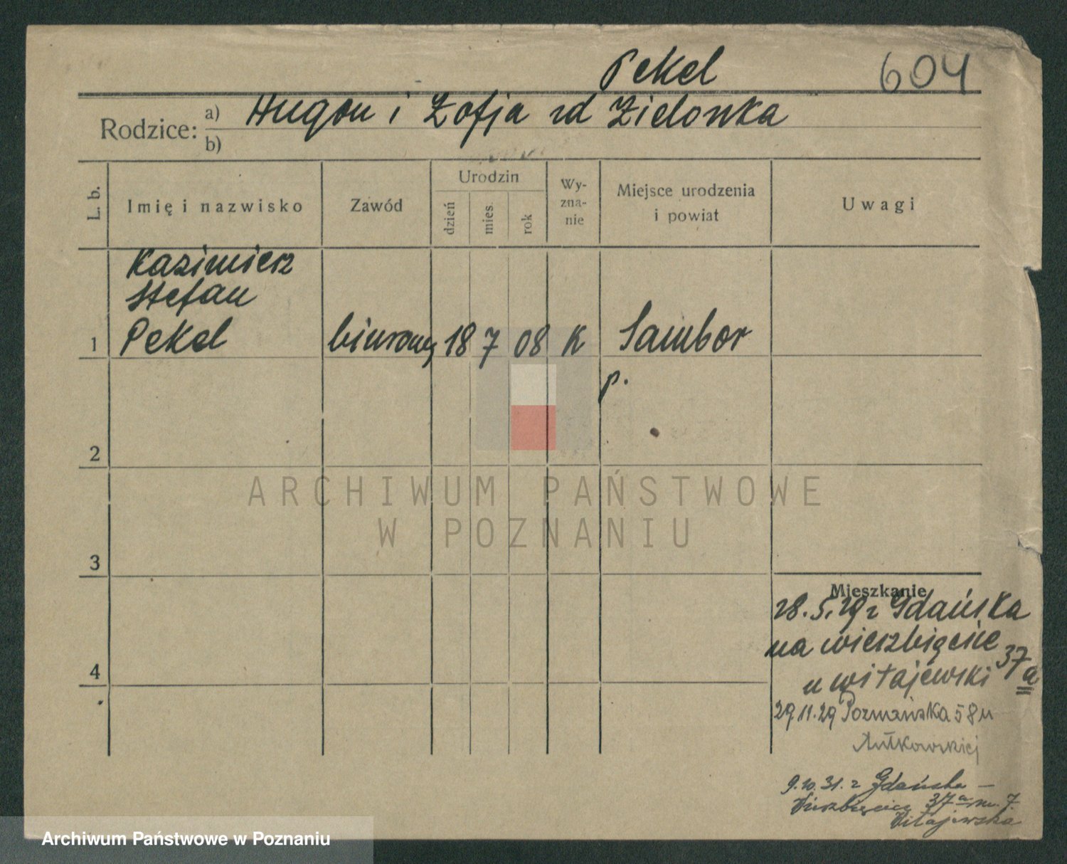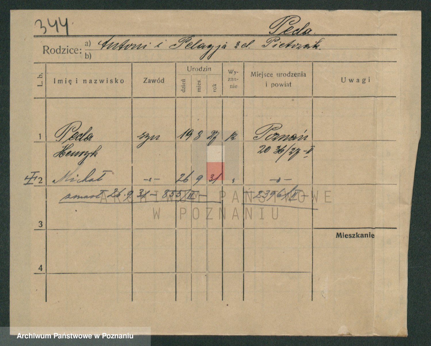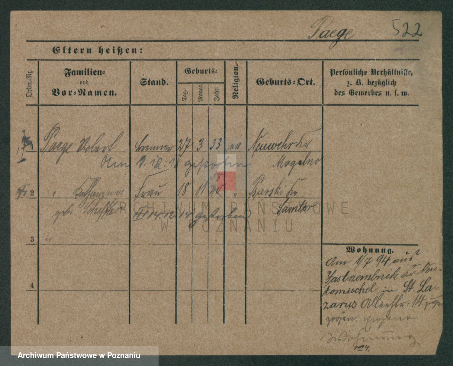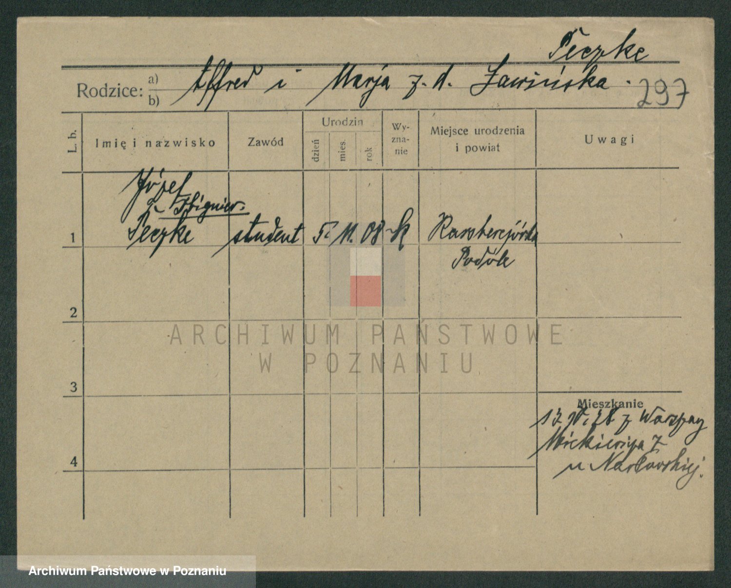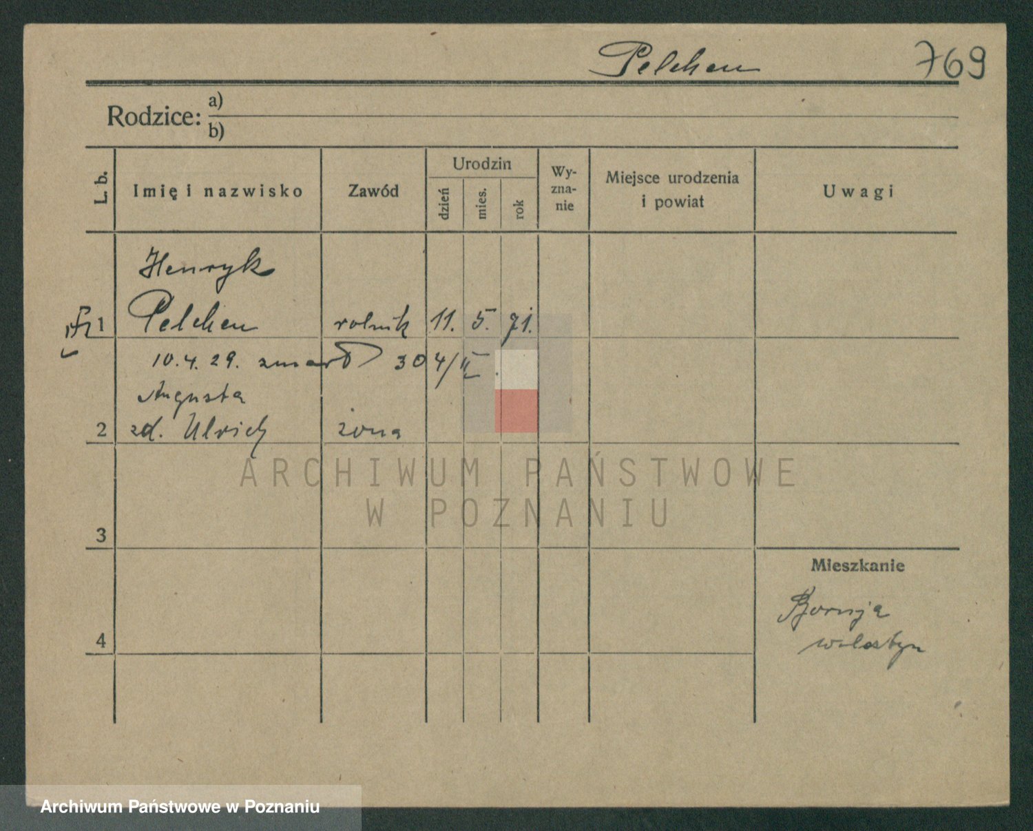 Podgląd karty osobowej dostępny jest po kliknięciu na nazwisko lub ikonkę karty. Można dokonywać powiększenia (ikony na górze) lub przechodzić między kolejnymi skanami (strzałki po bokach).