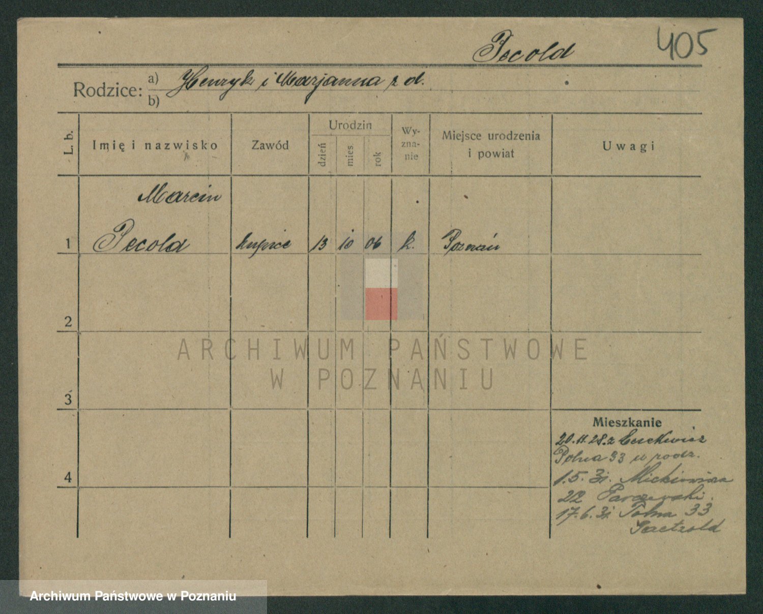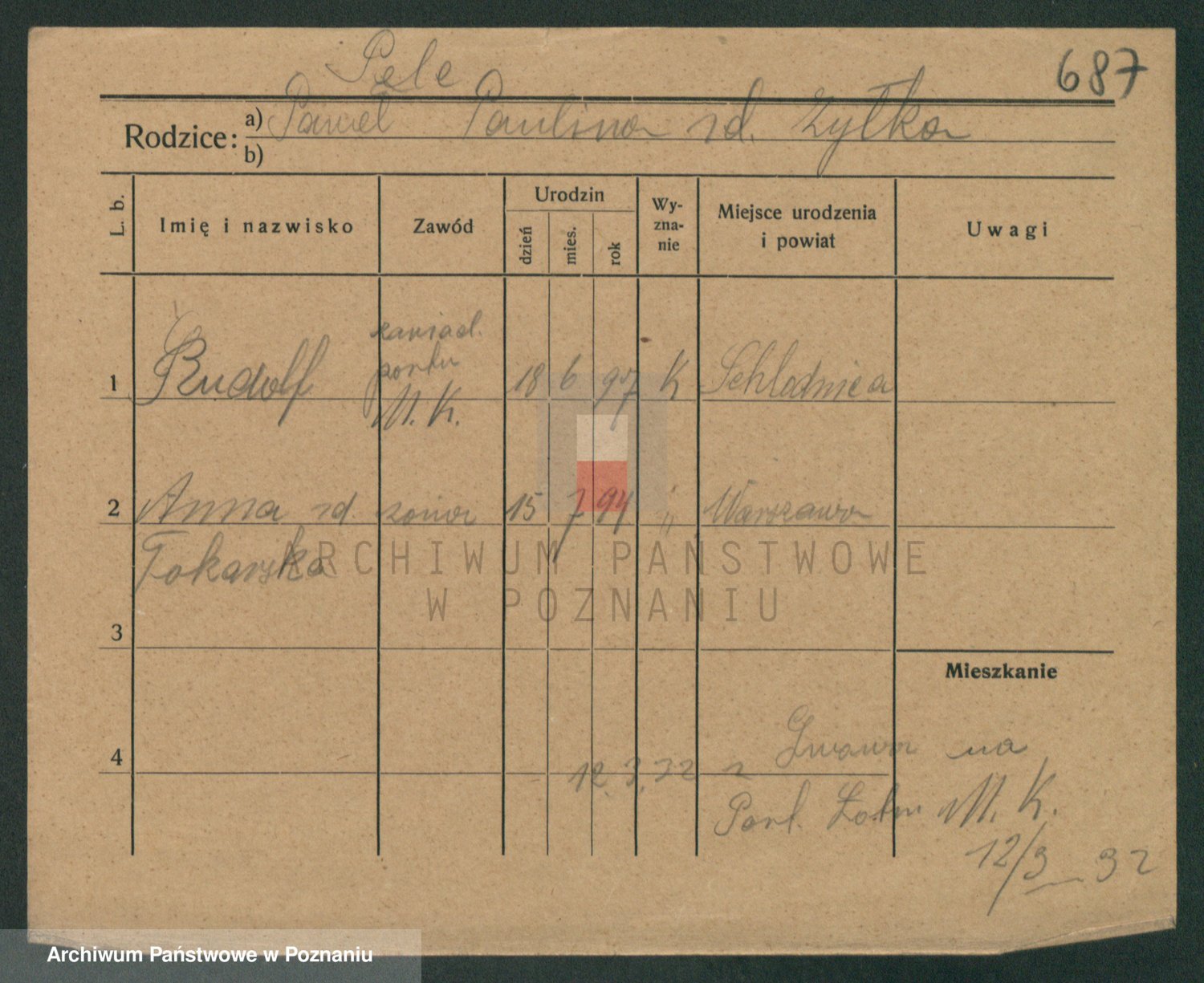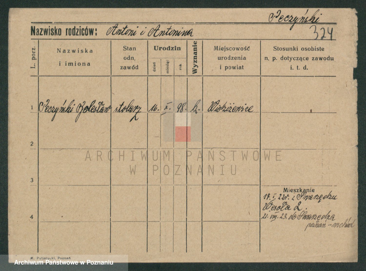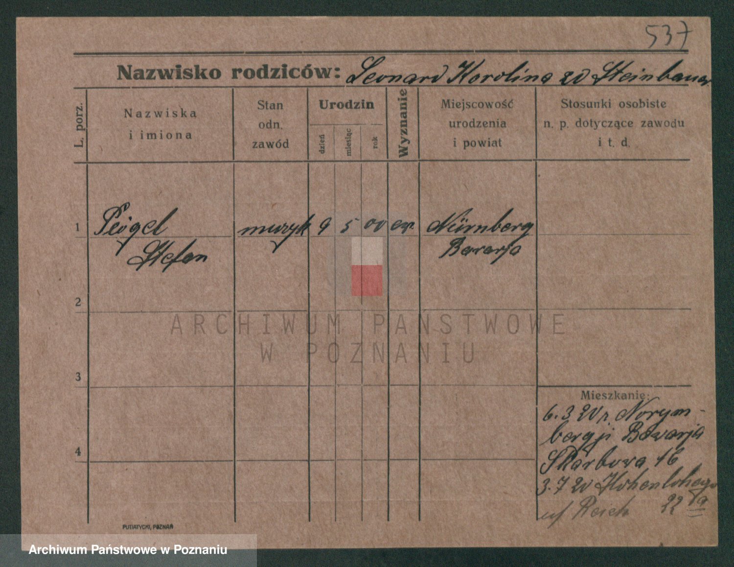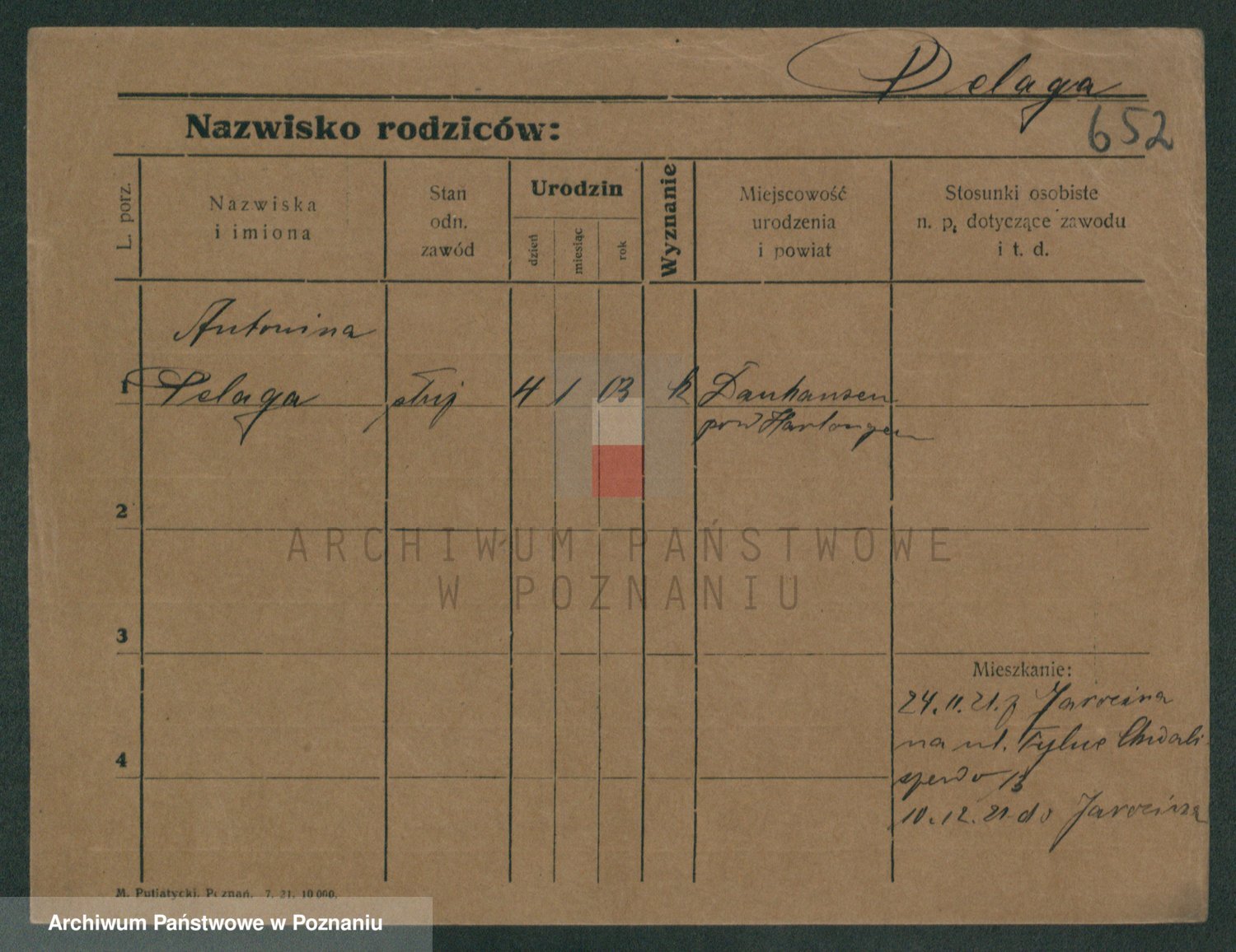 Podgląd karty osobowej dostępny jest po kliknięciu na nazwisko lub ikonkę karty. Można dokonywać powiększenia (ikony na górze) lub przechodzić między kolejnymi skanami (strzałki po bokach).