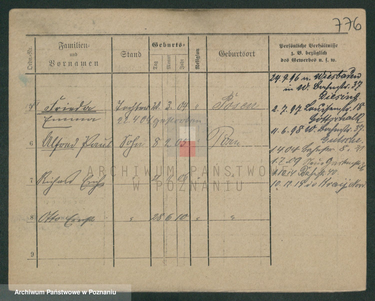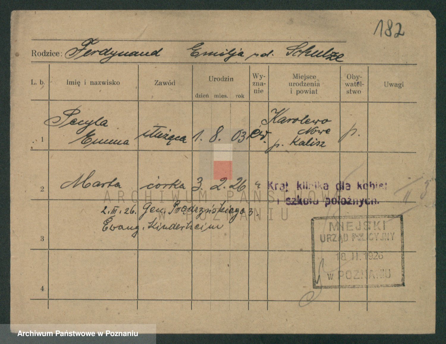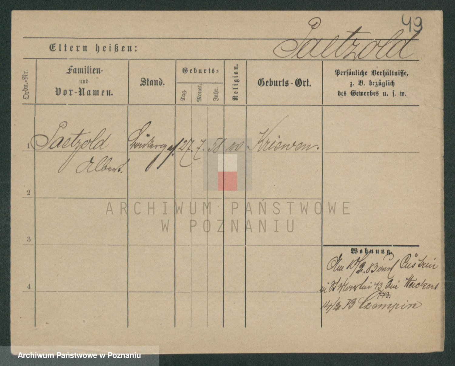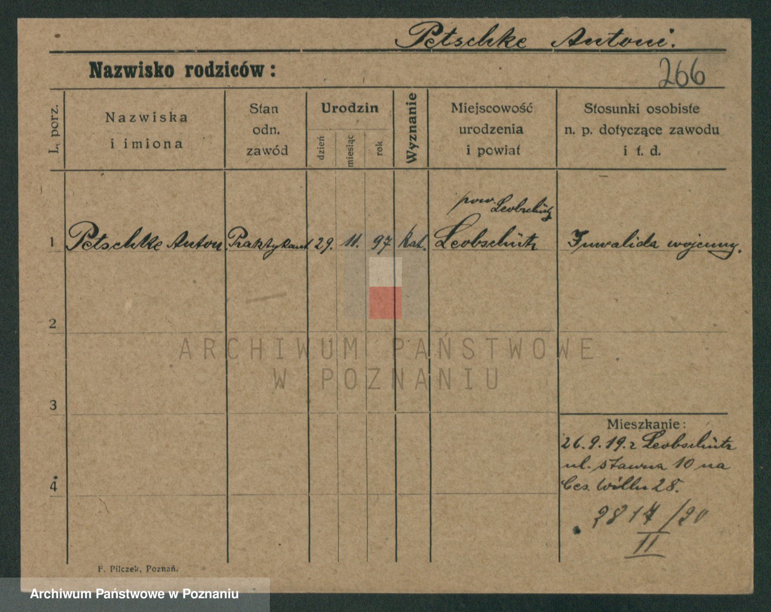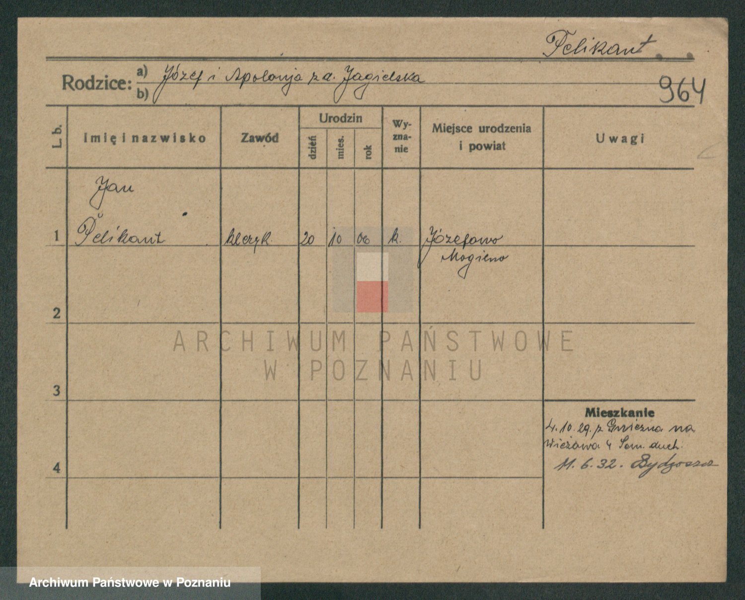 Podgląd karty osobowej dostępny jest po kliknięciu na nazwisko lub ikonkę karty. Można dokonywać powiększenia (ikony na górze) lub przechodzić między kolejnymi skanami (strzałki po bokach).