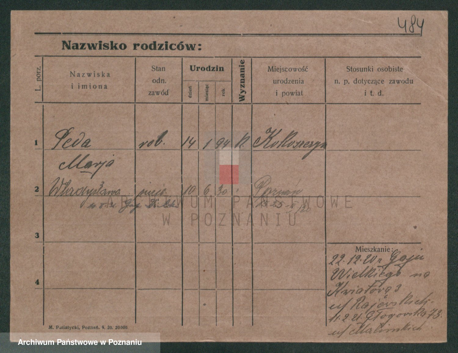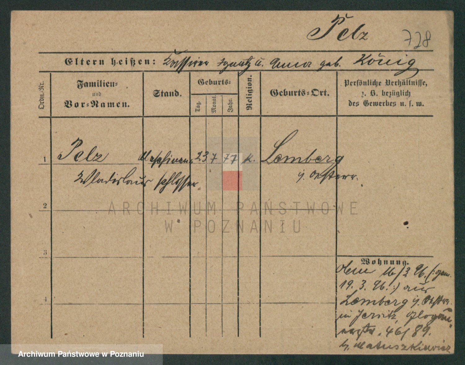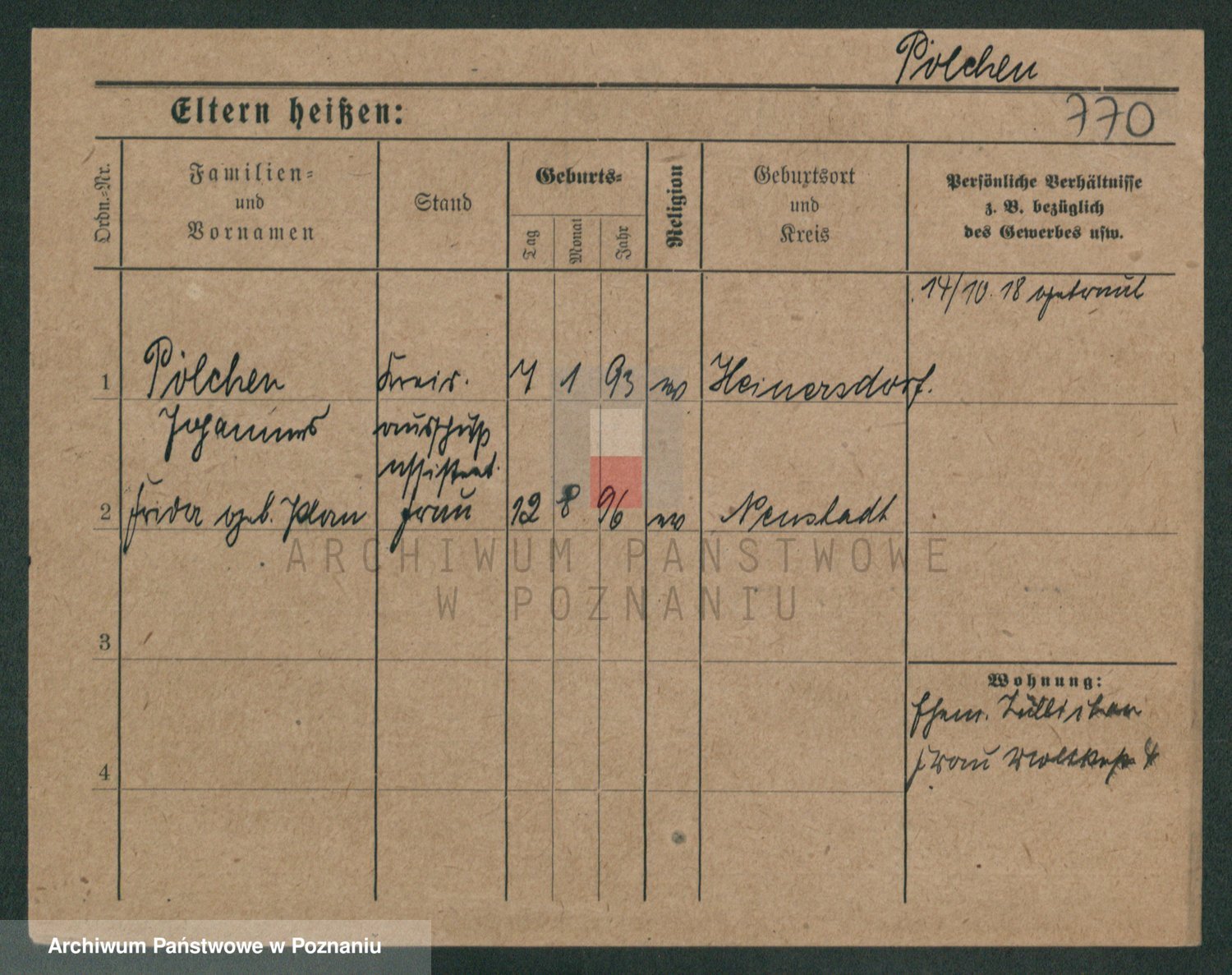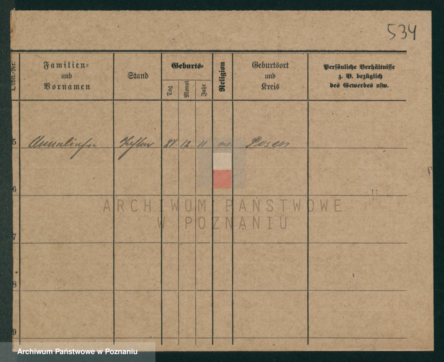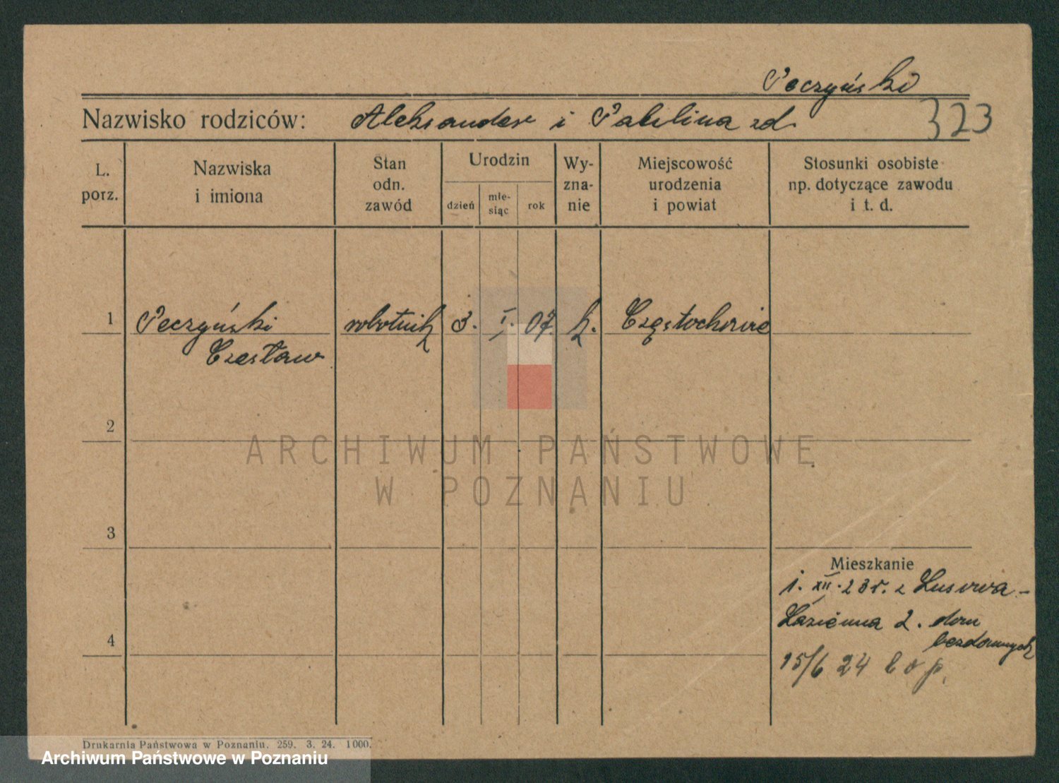 Podgląd karty osobowej dostępny jest po kliknięciu na nazwisko lub ikonkę karty. Można dokonywać powiększenia (ikony na górze) lub przechodzić między kolejnymi skanami (strzałki po bokach).