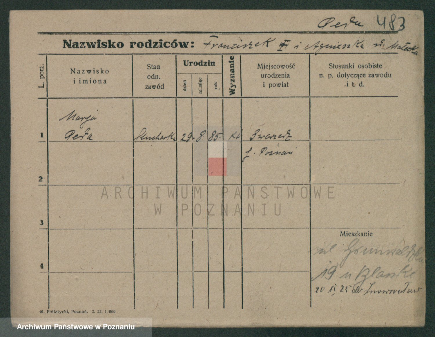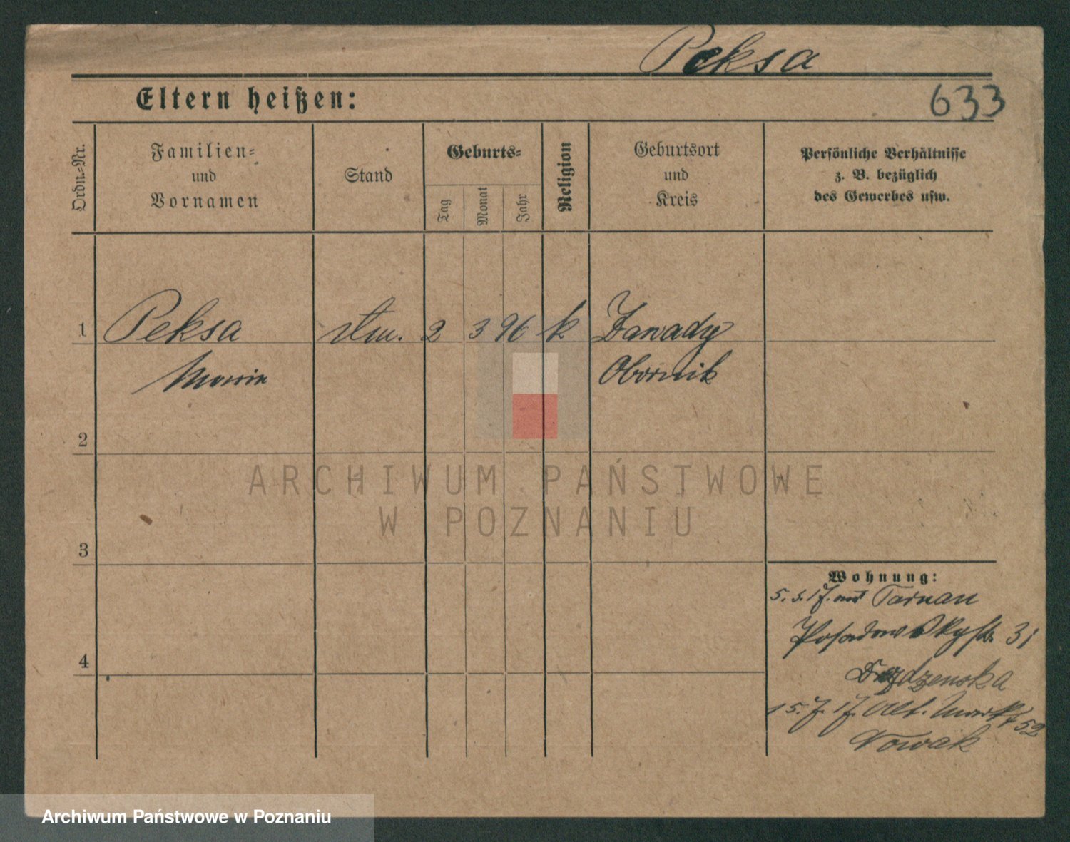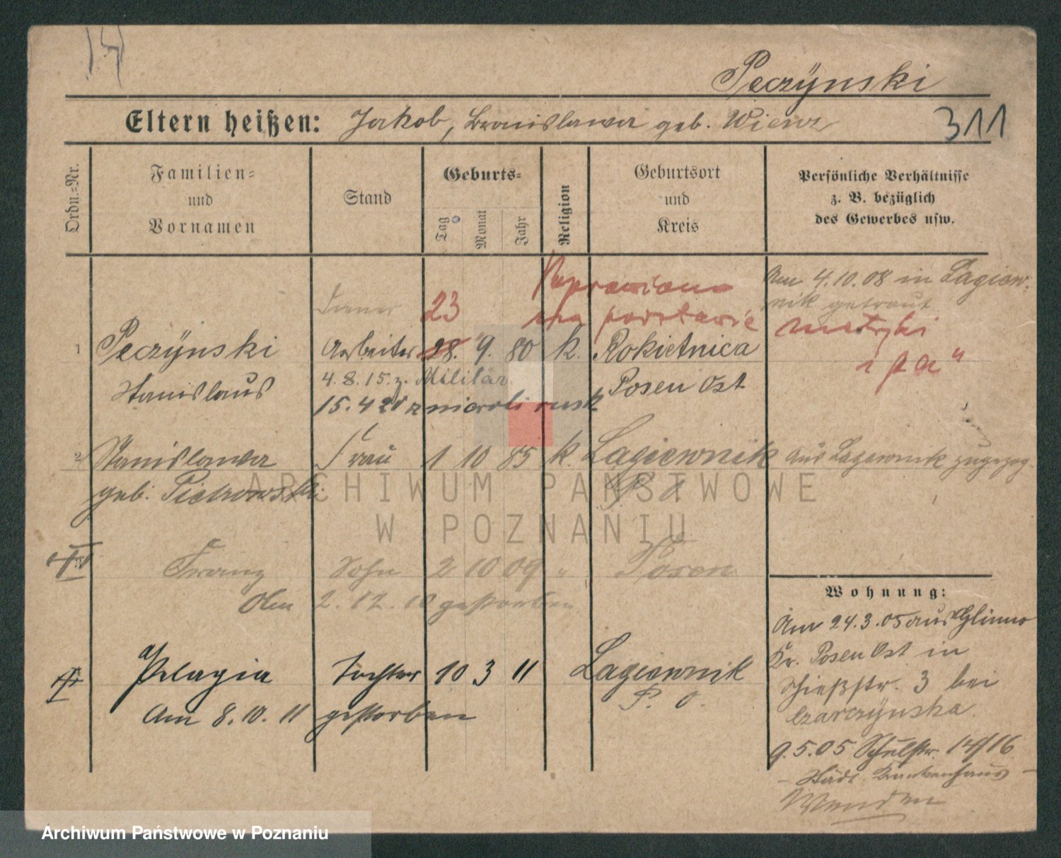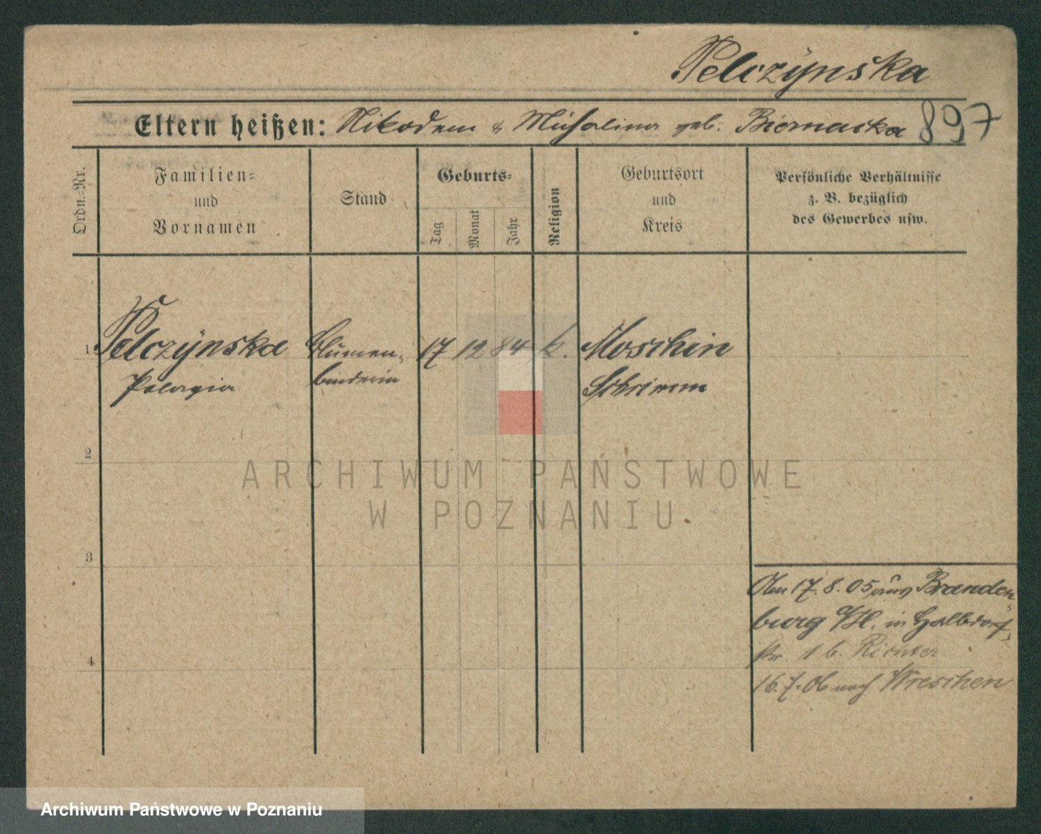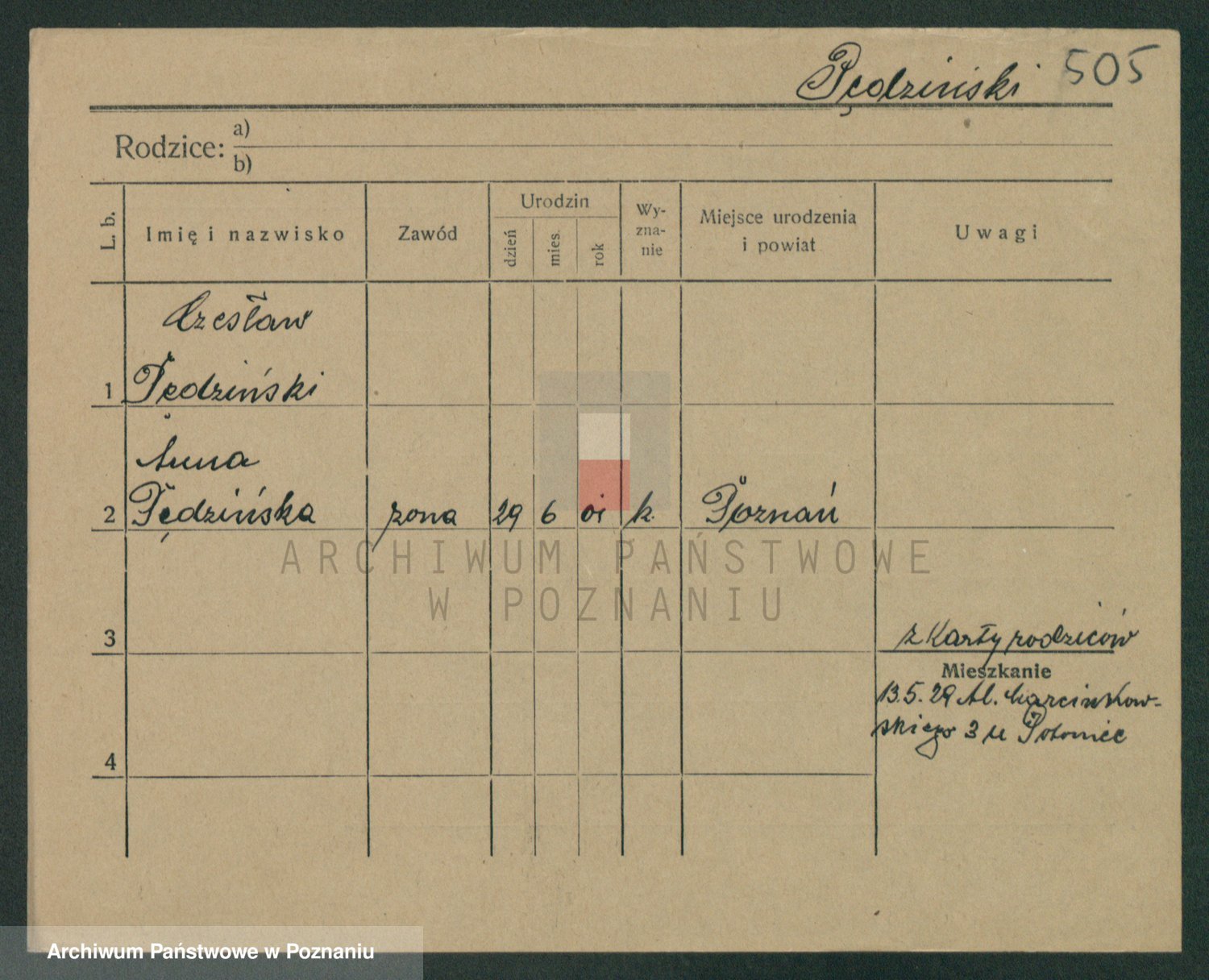 Podgląd karty osobowej dostępny jest po kliknięciu na nazwisko lub ikonkę karty. Można dokonywać powiększenia (ikony na górze) lub przechodzić między kolejnymi skanami (strzałki po bokach).