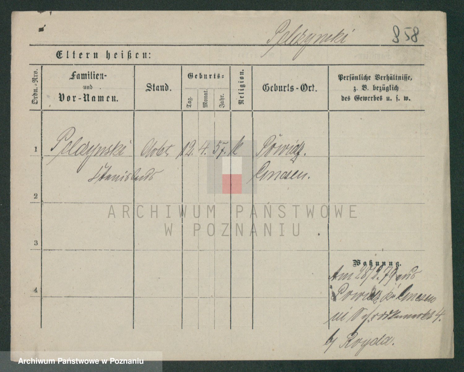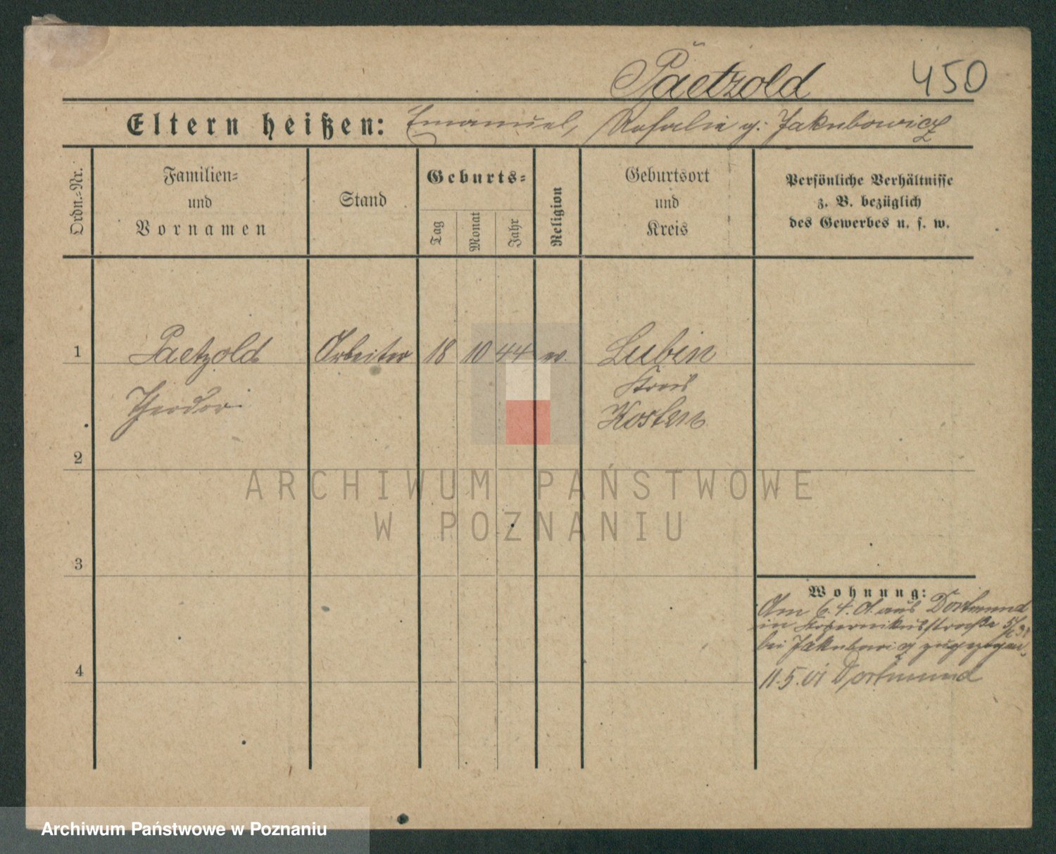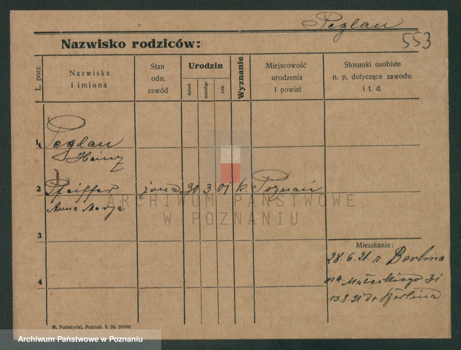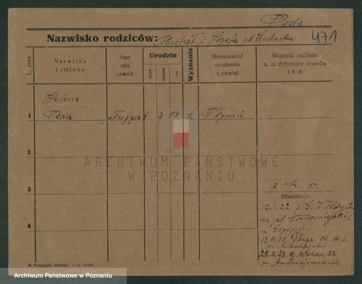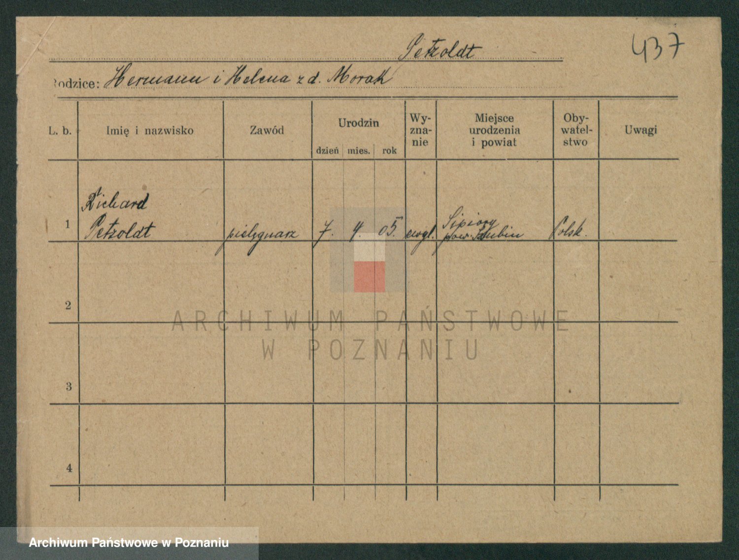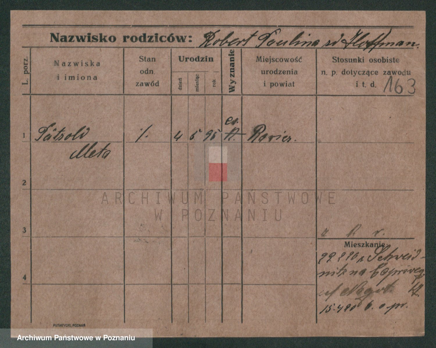 Podgląd karty osobowej dostępny jest po kliknięciu na nazwisko lub ikonkę karty. Można dokonywać powiększenia (ikony na górze) lub przechodzić między kolejnymi skanami (strzałki po bokach).