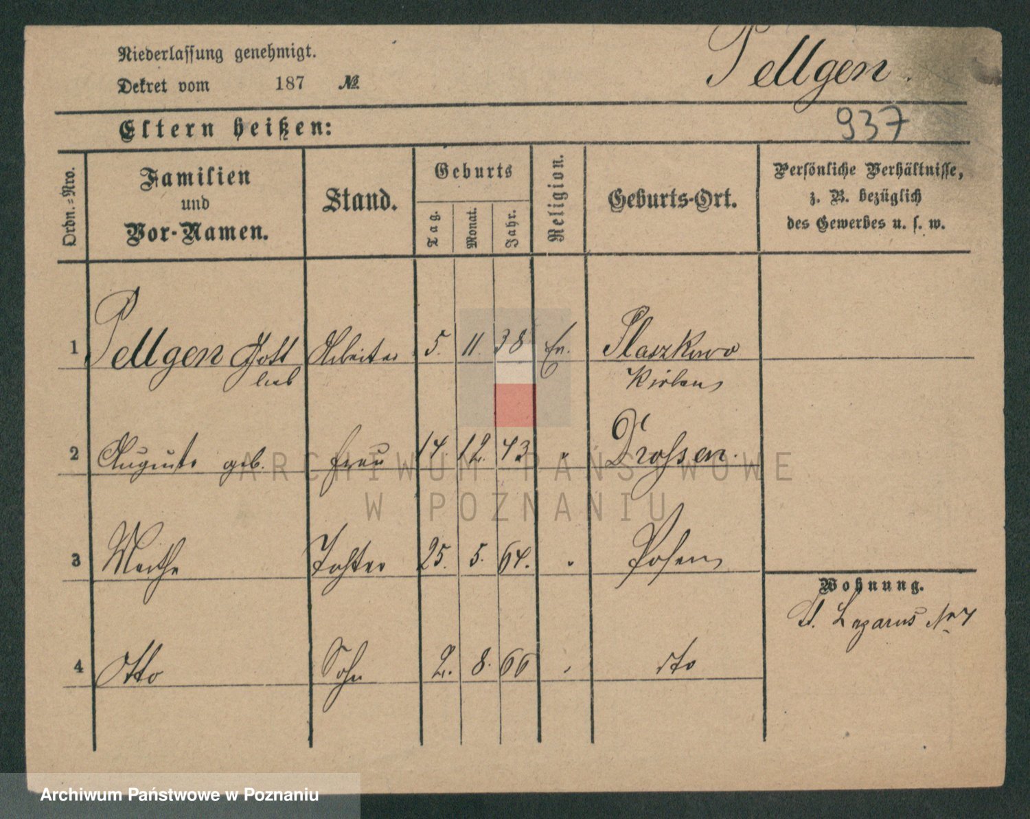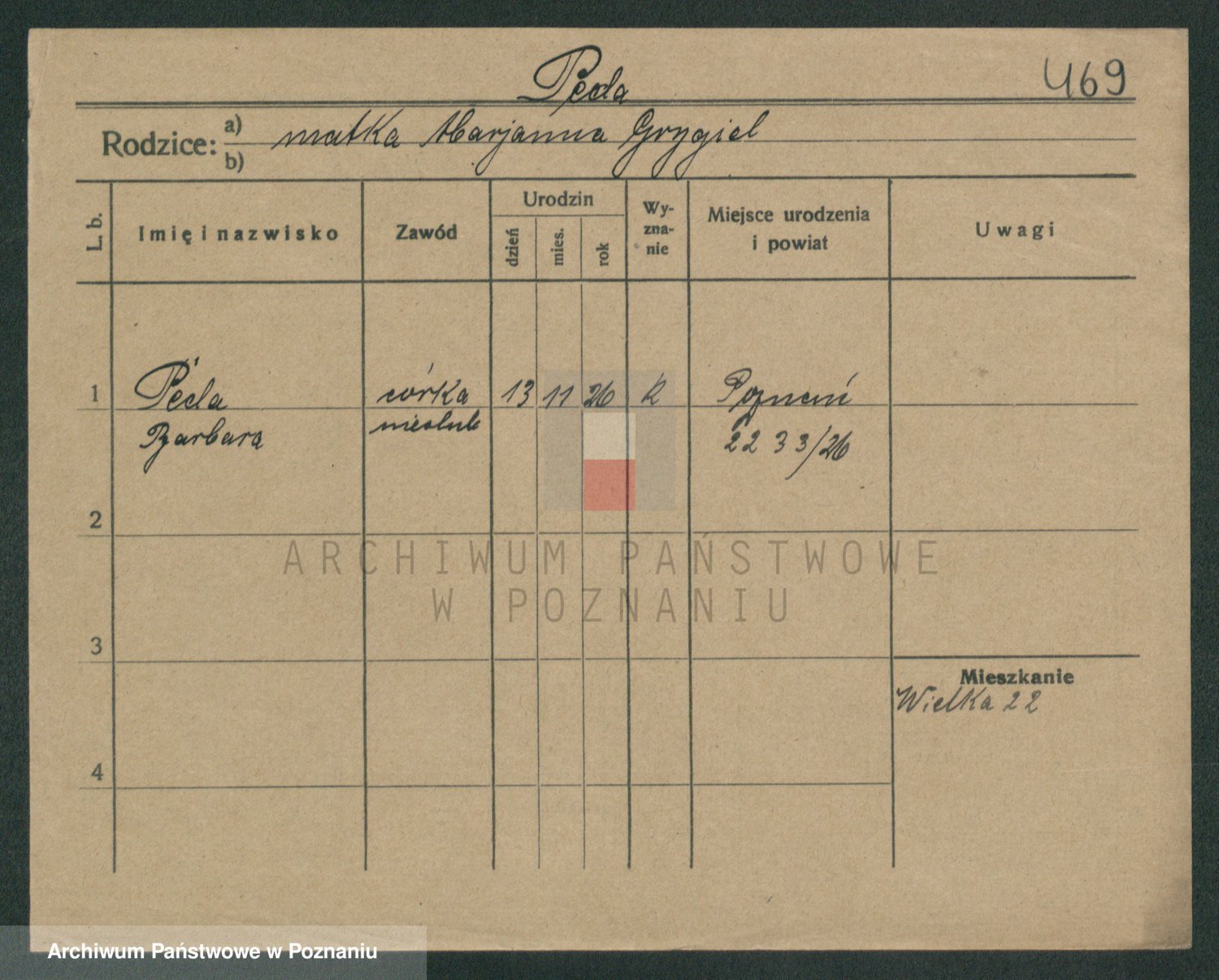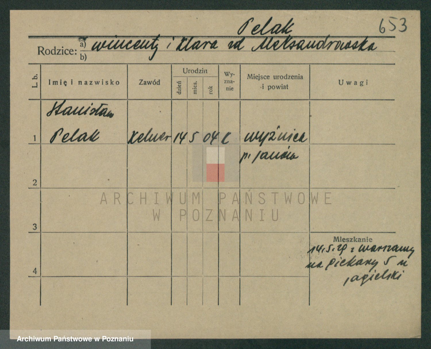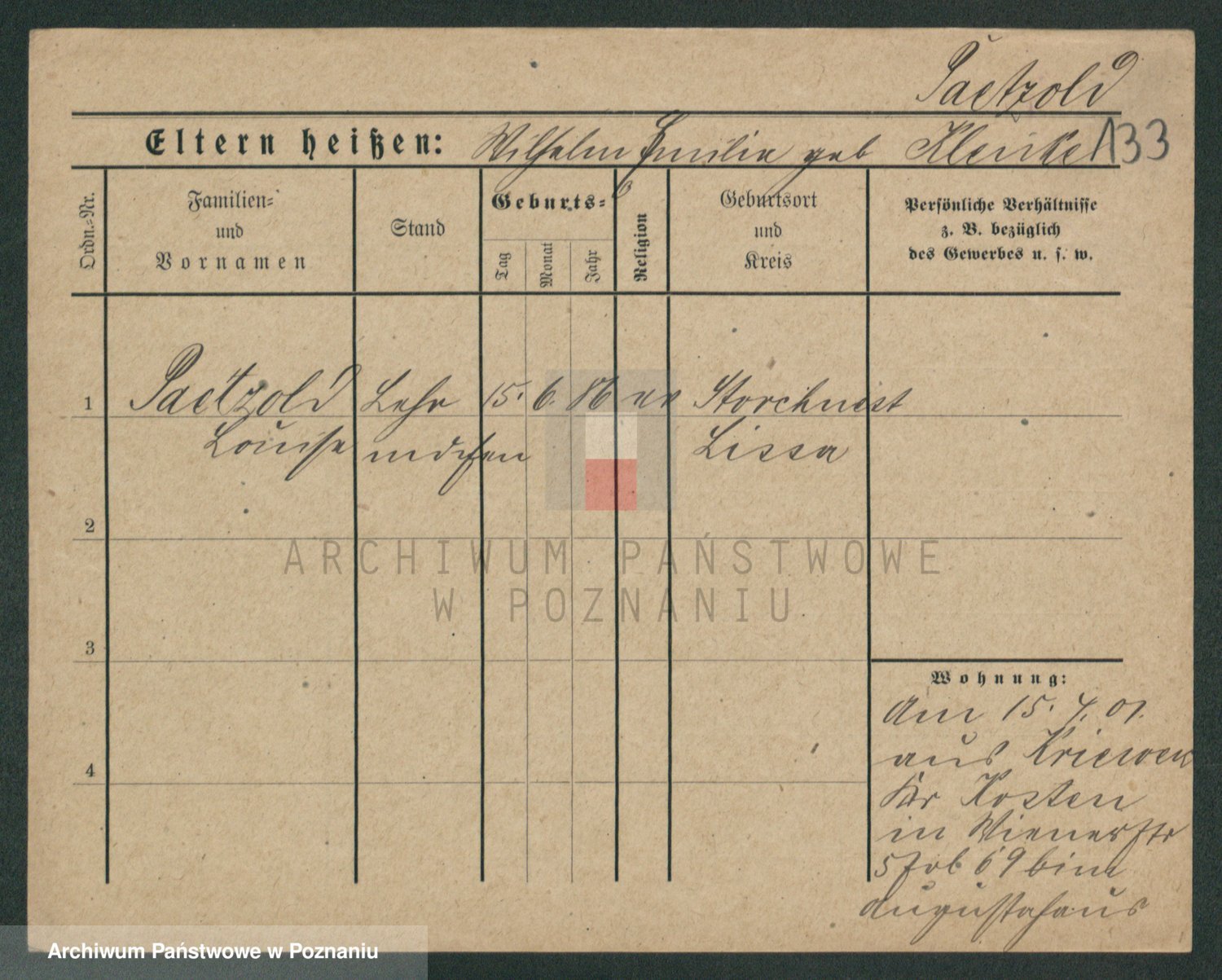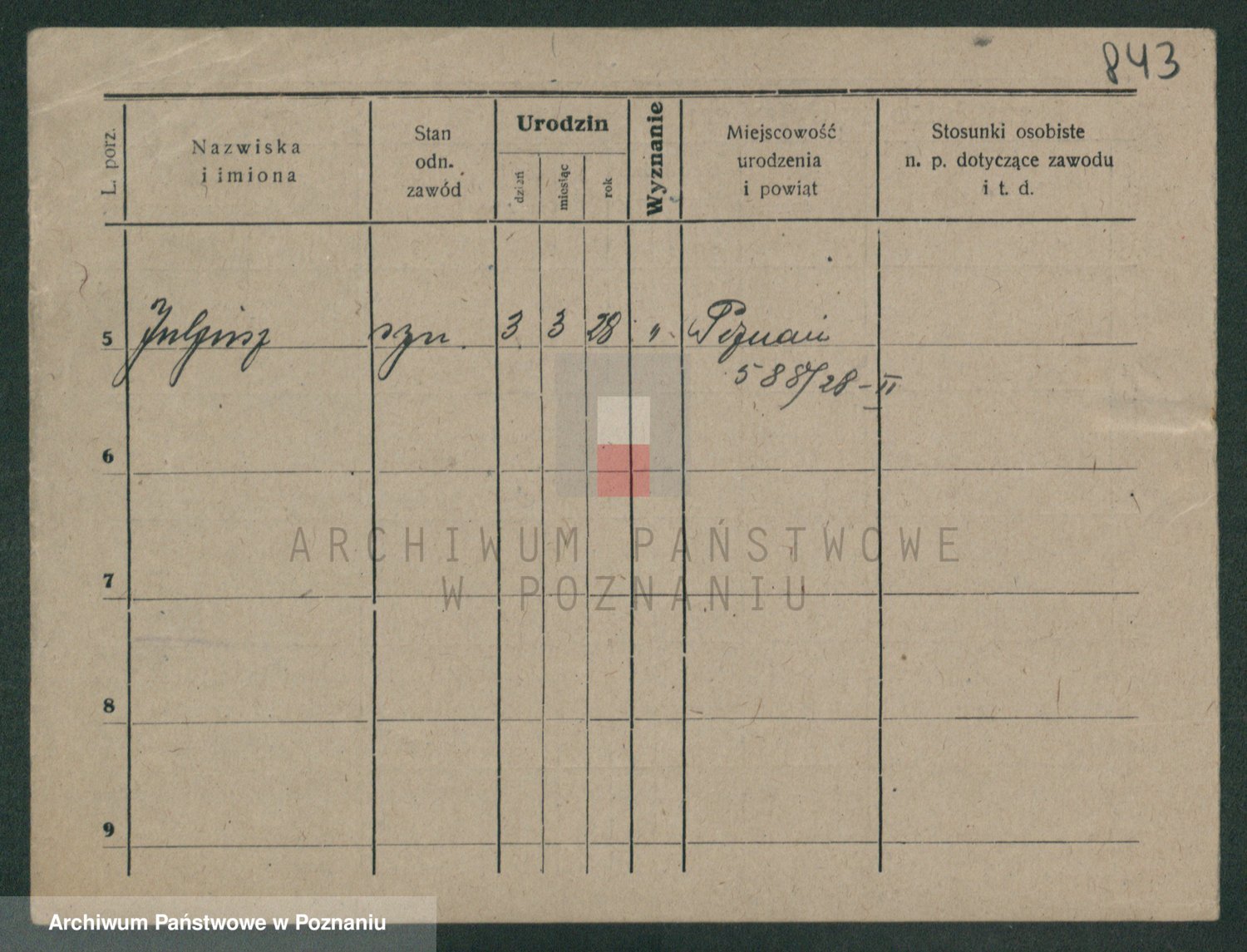 Podgląd karty osobowej dostępny jest po kliknięciu na nazwisko lub ikonkę karty. Można dokonywać powiększenia (ikony na górze) lub przechodzić między kolejnymi skanami (strzałki po bokach).