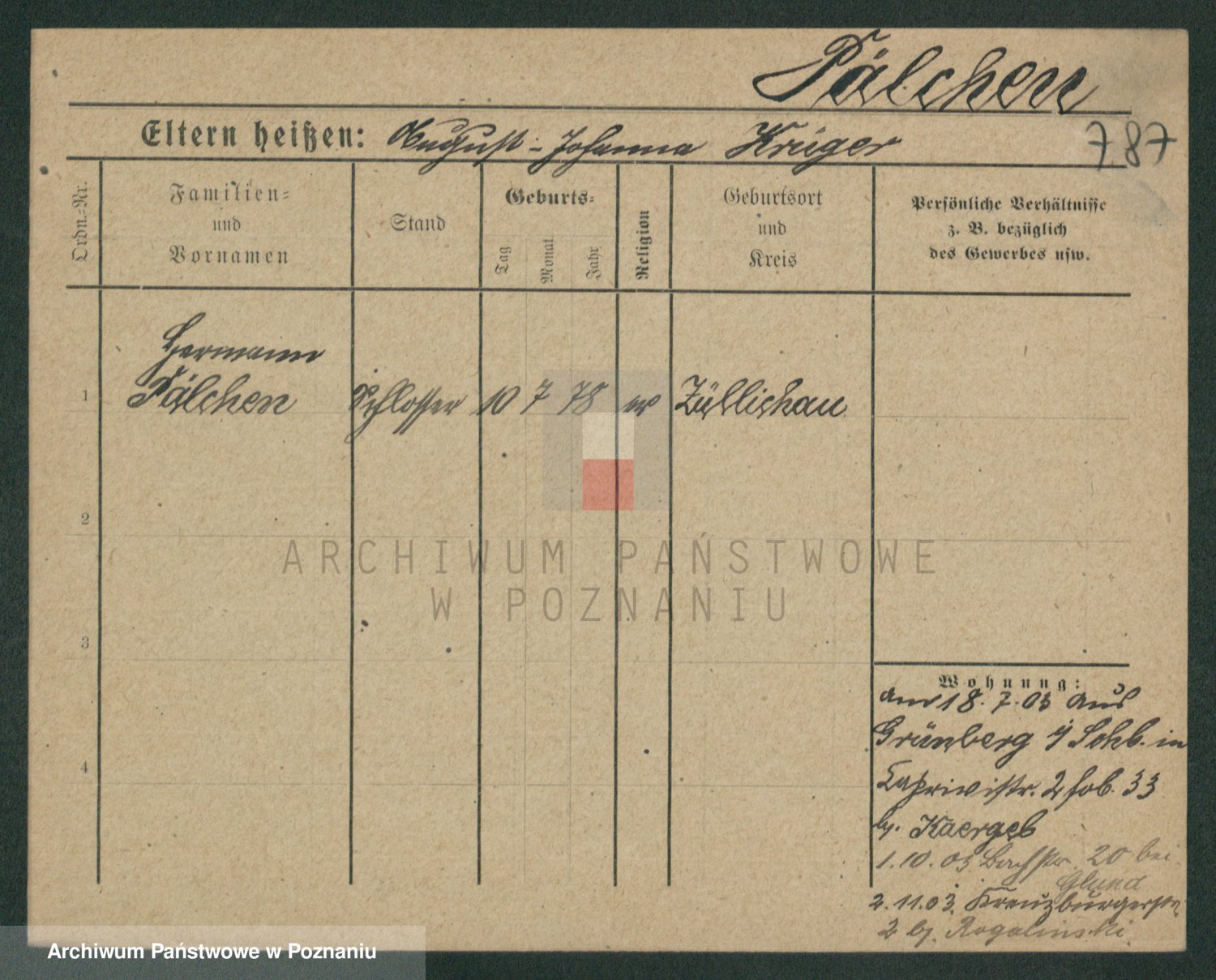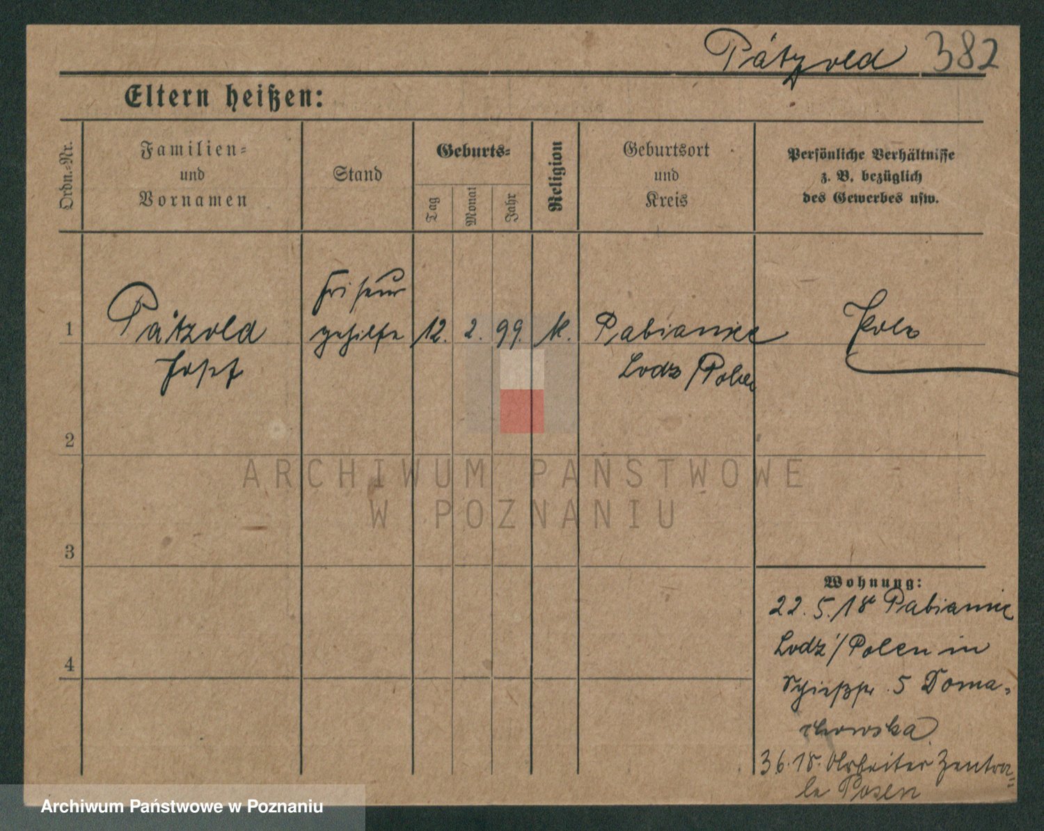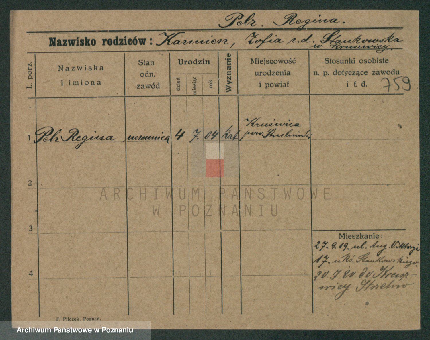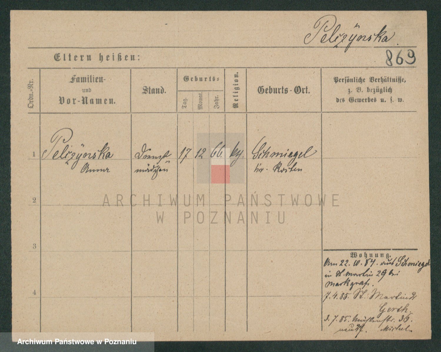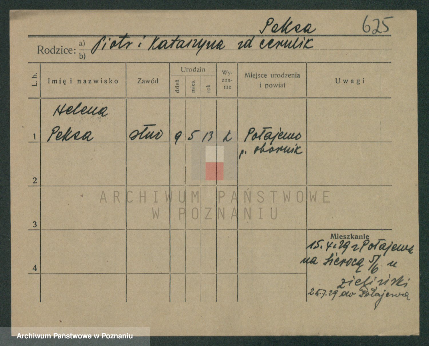 Podgląd karty osobowej dostępny jest po kliknięciu na nazwisko lub ikonkę karty. Można dokonywać powiększenia (ikony na górze) lub przechodzić między kolejnymi skanami (strzałki po bokach).