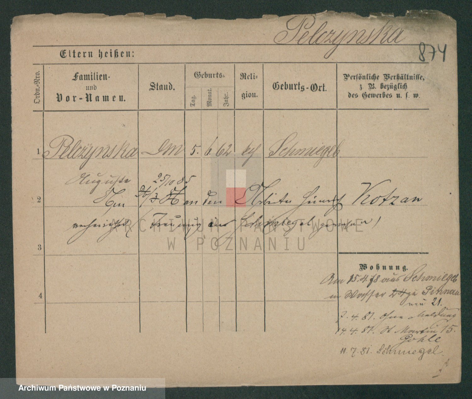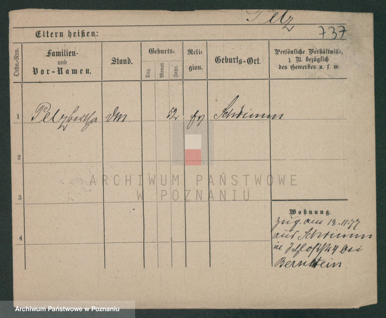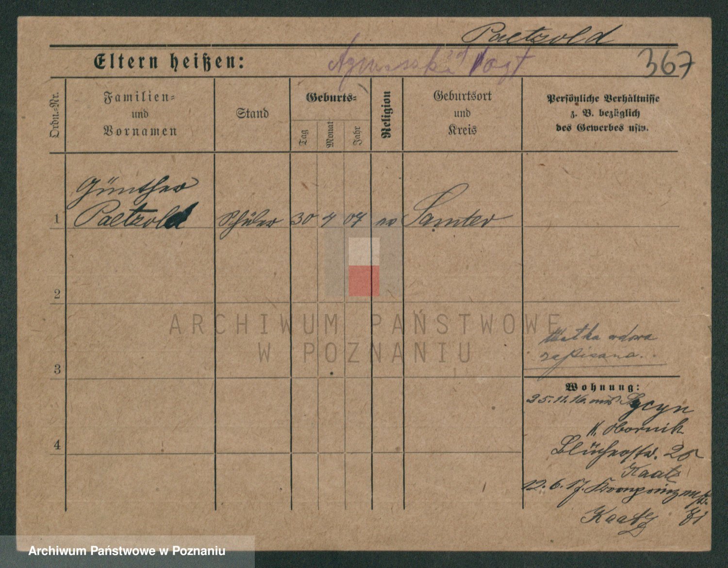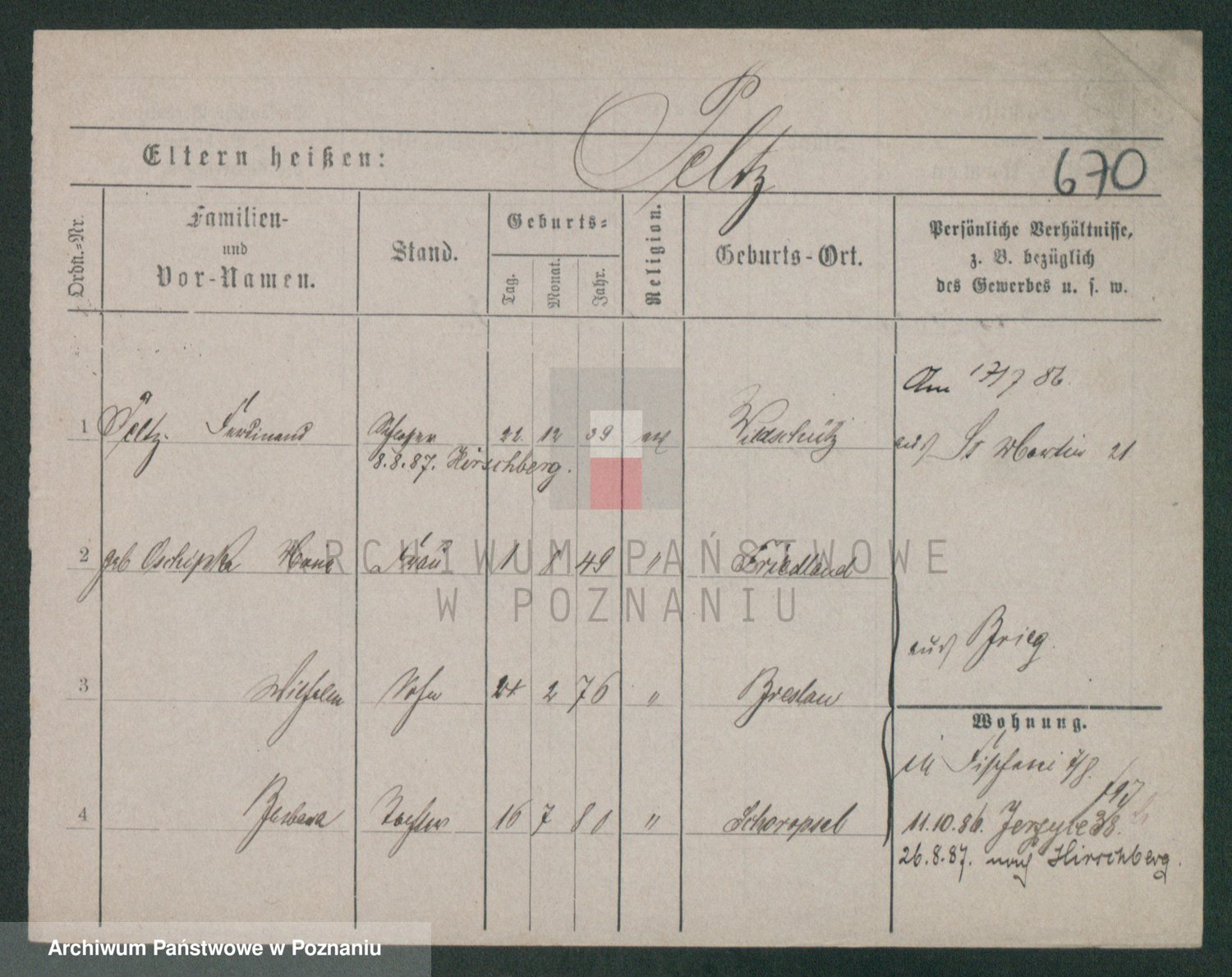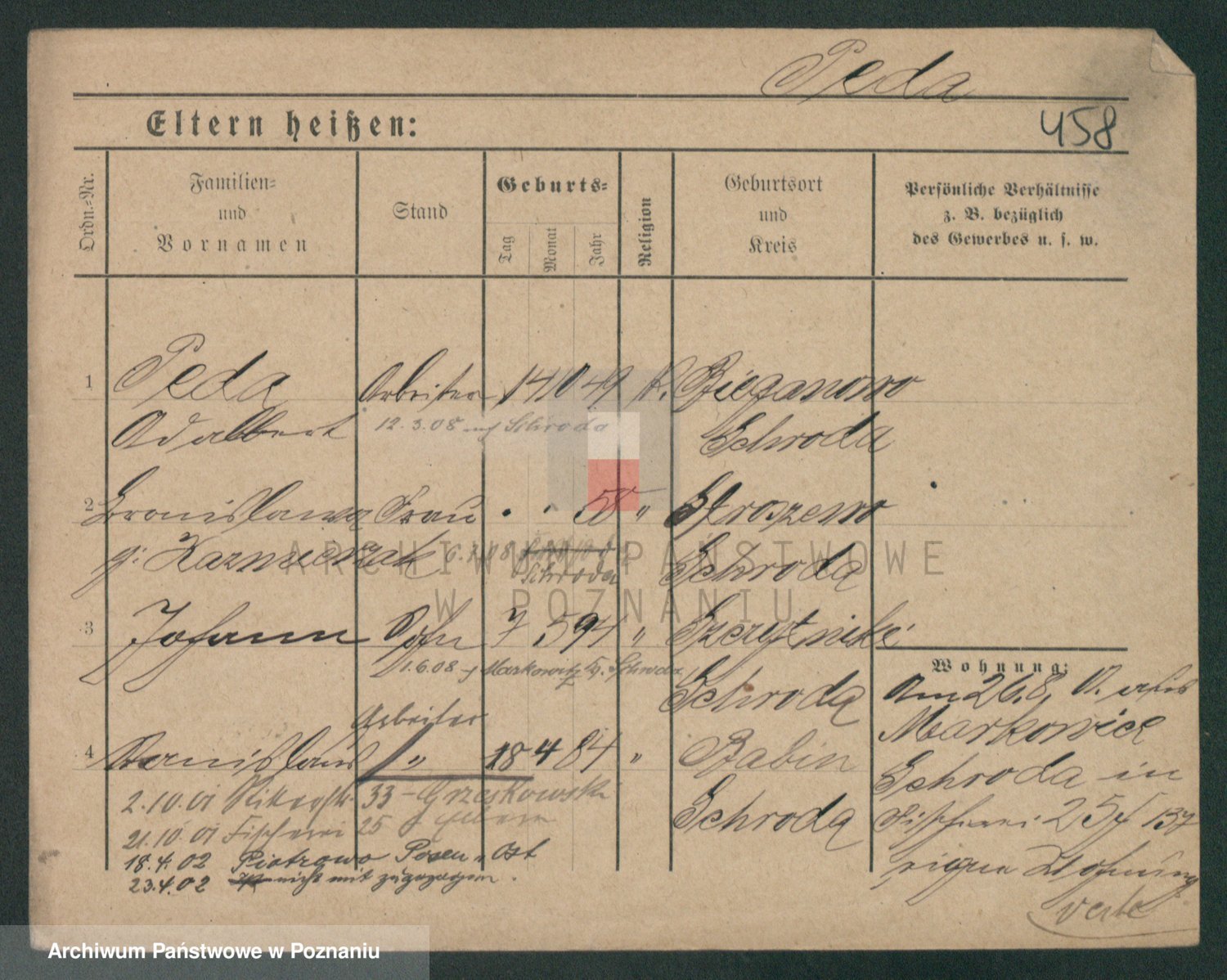 Podgląd karty osobowej dostępny jest po kliknięciu na nazwisko lub ikonkę karty. Można dokonywać powiększenia (ikony na górze) lub przechodzić między kolejnymi skanami (strzałki po bokach).