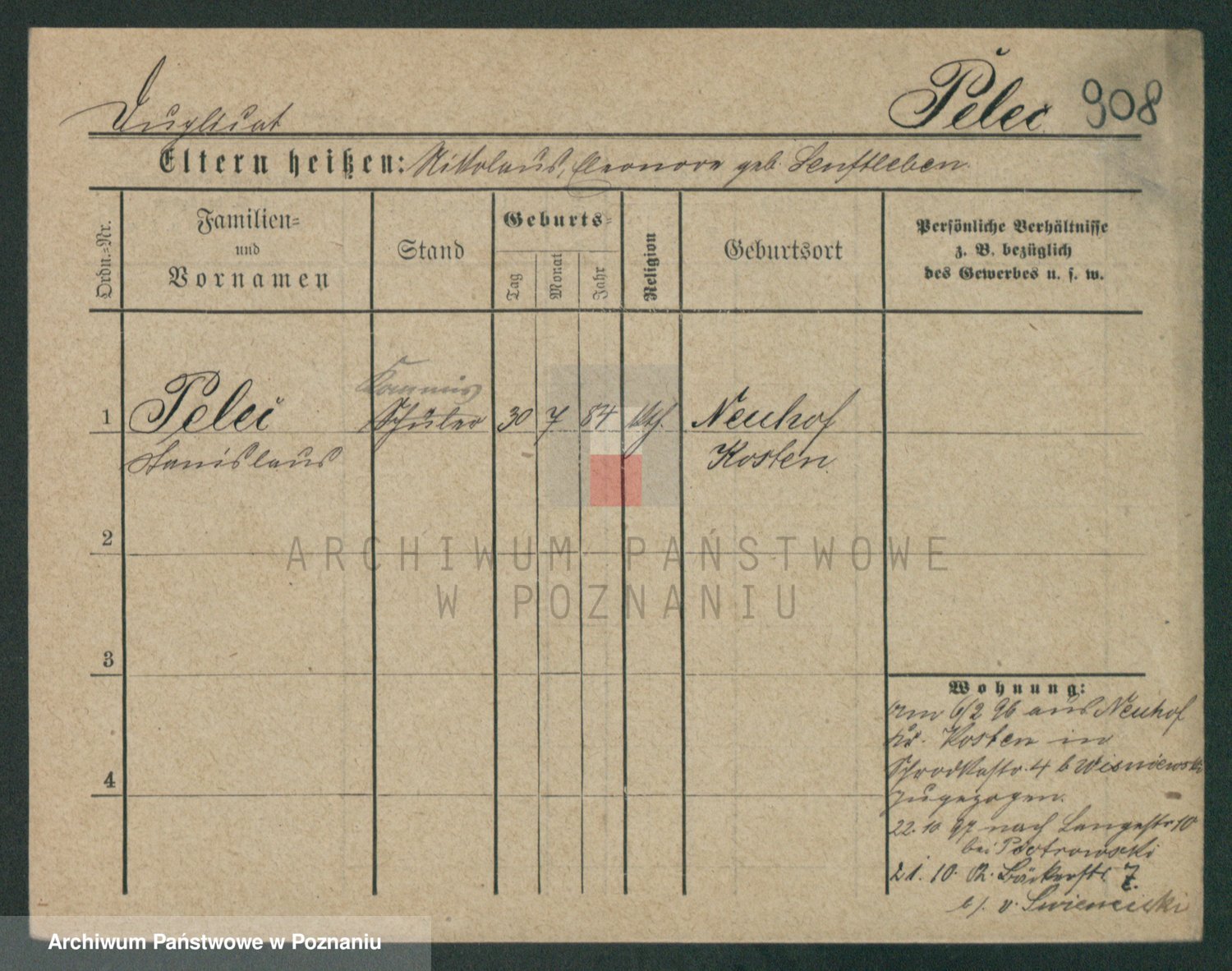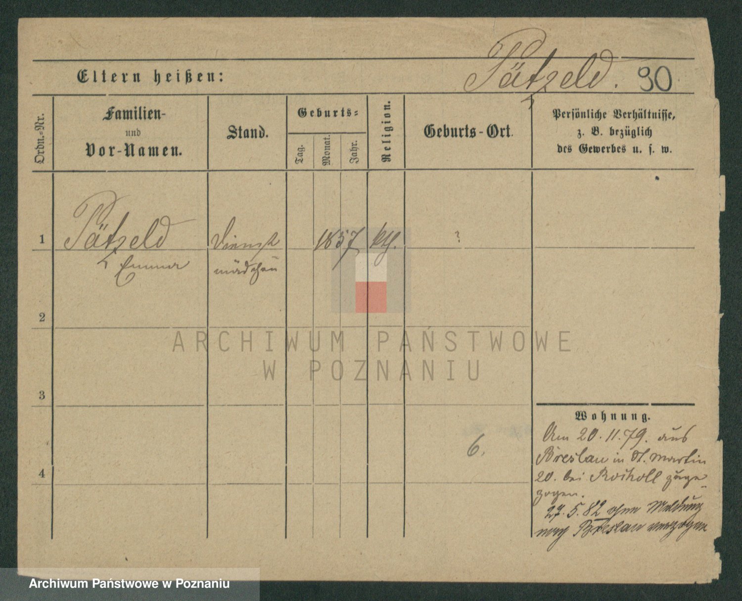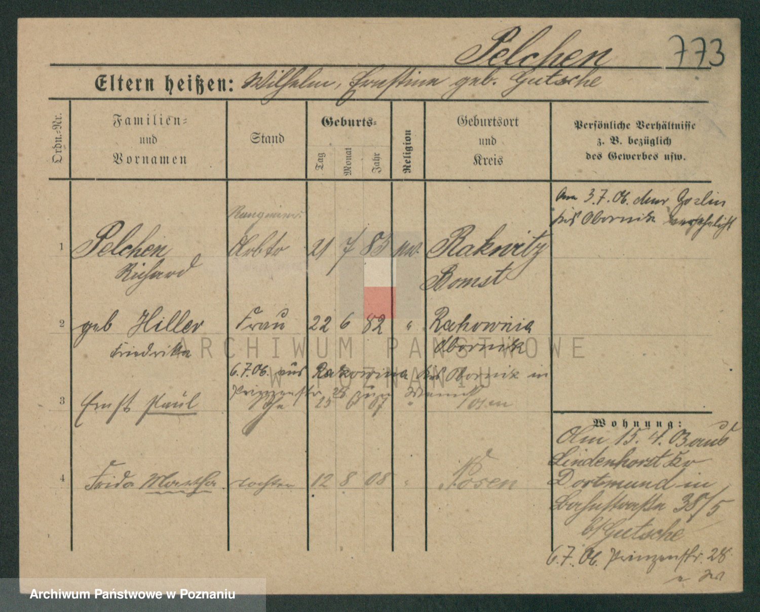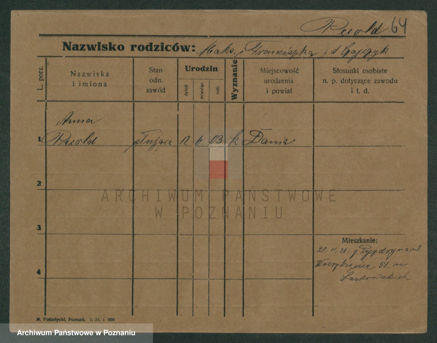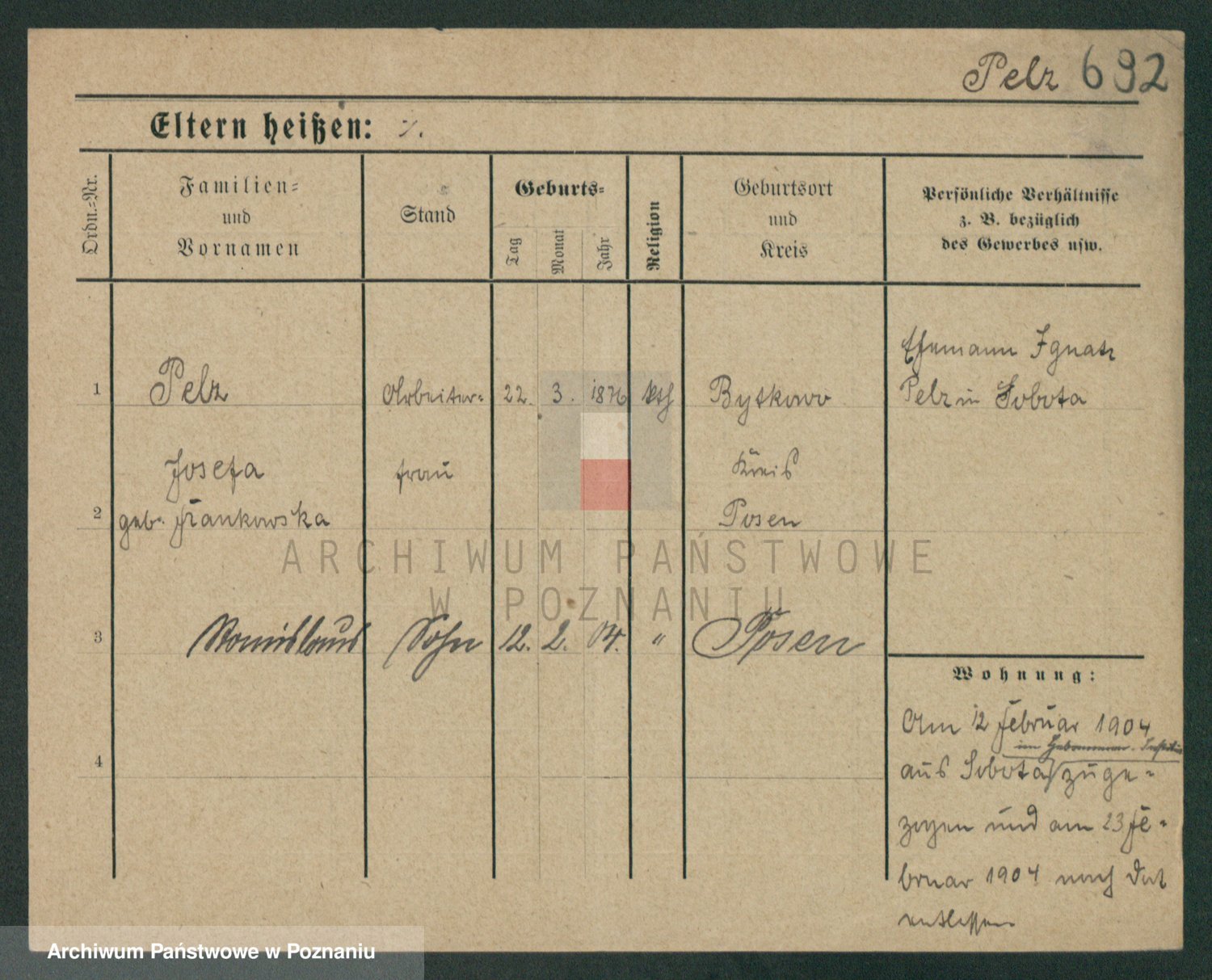 Podgląd karty osobowej dostępny jest po kliknięciu na nazwisko lub ikonkę karty. Można dokonywać powiększenia (ikony na górze) lub przechodzić między kolejnymi skanami (strzałki po bokach).