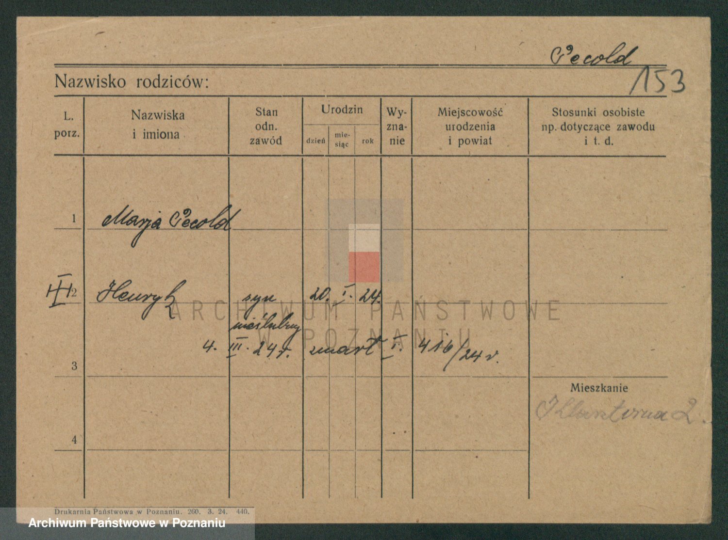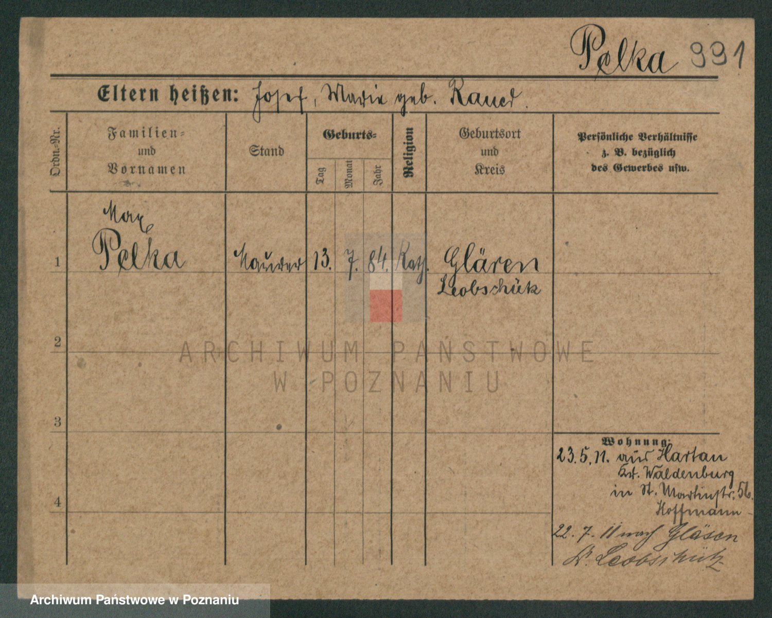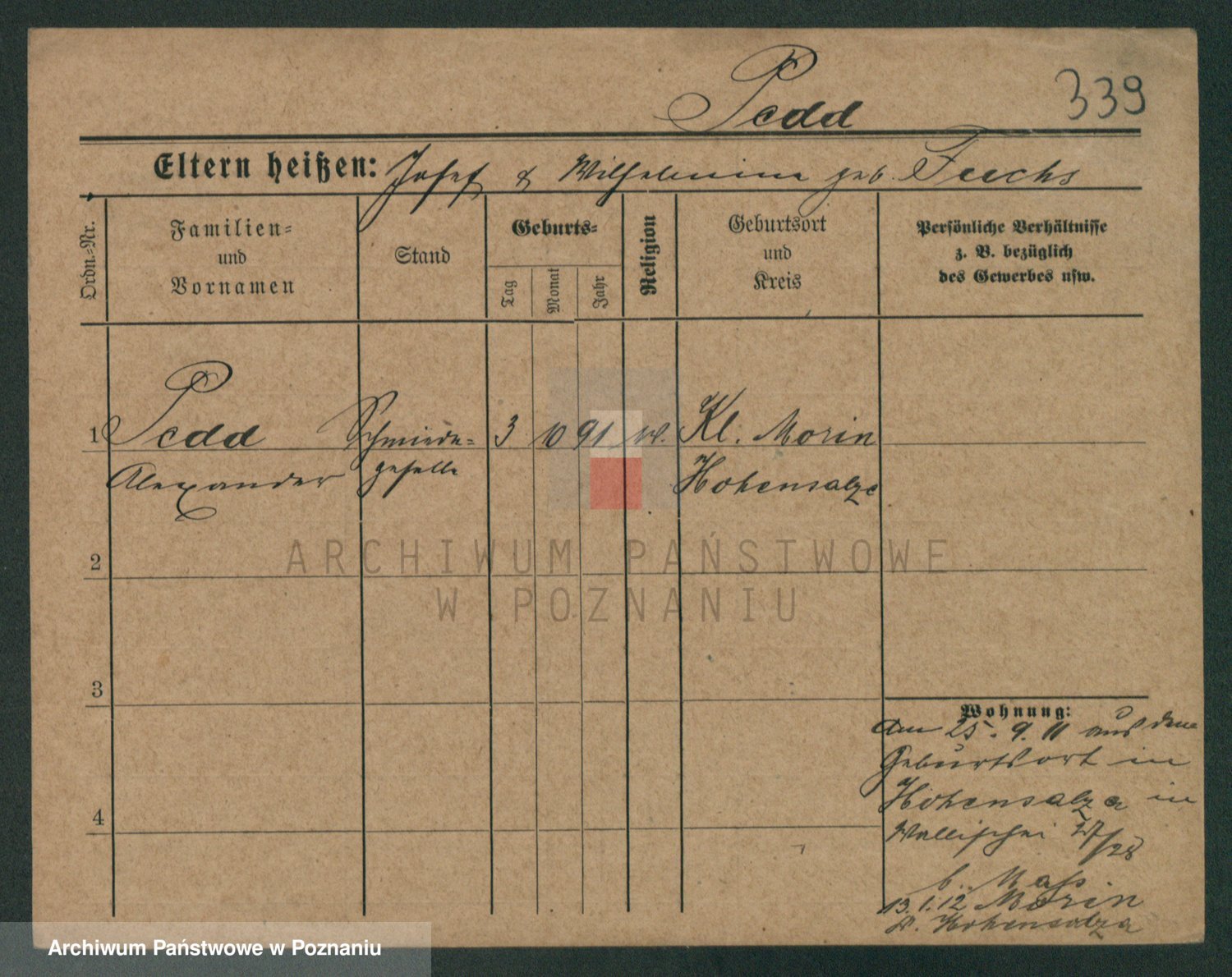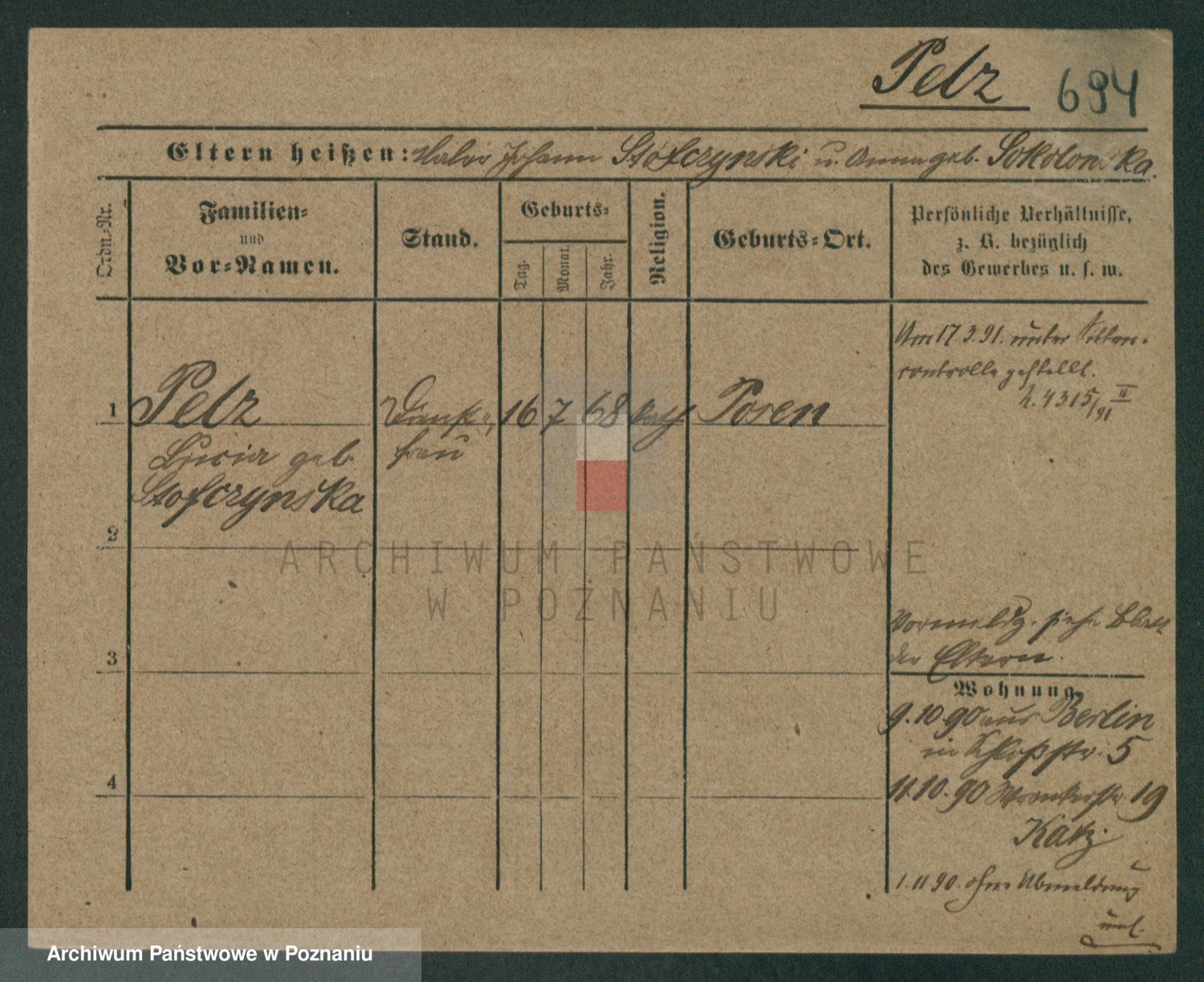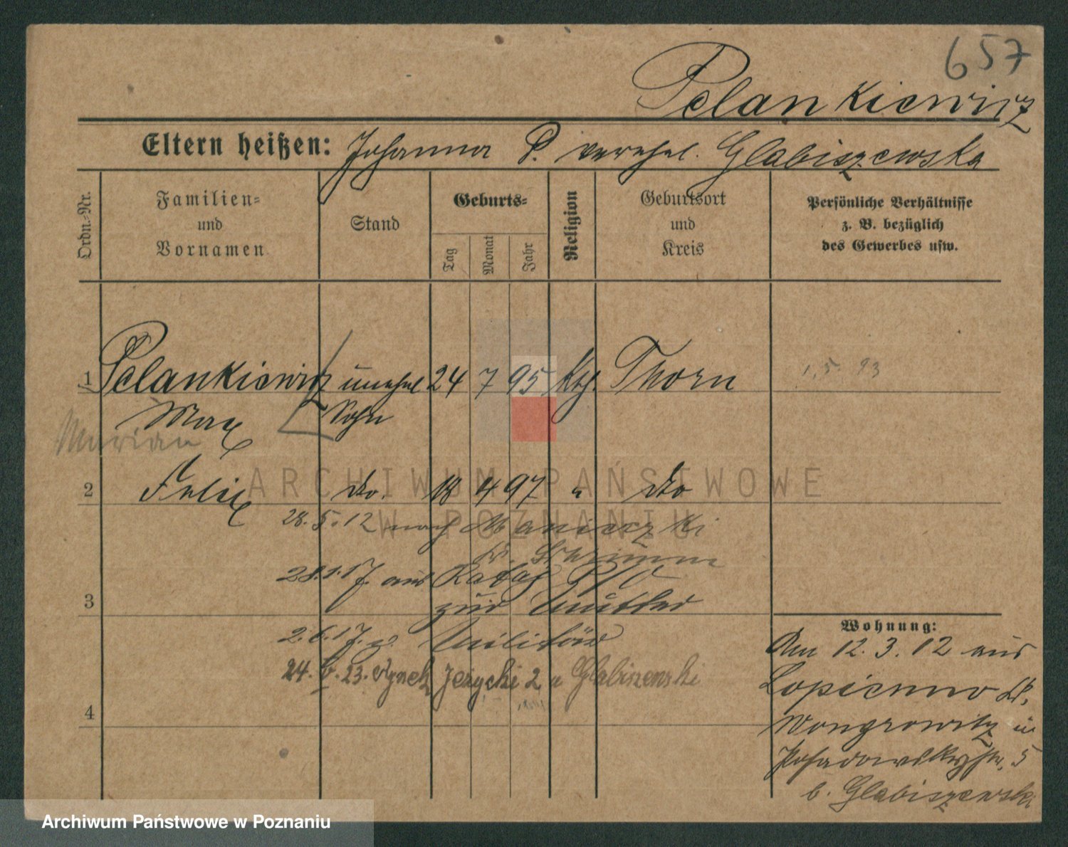 Podgląd karty osobowej dostępny jest po kliknięciu na nazwisko lub ikonkę karty. Można dokonywać powiększenia (ikony na górze) lub przechodzić między kolejnymi skanami (strzałki po bokach).
