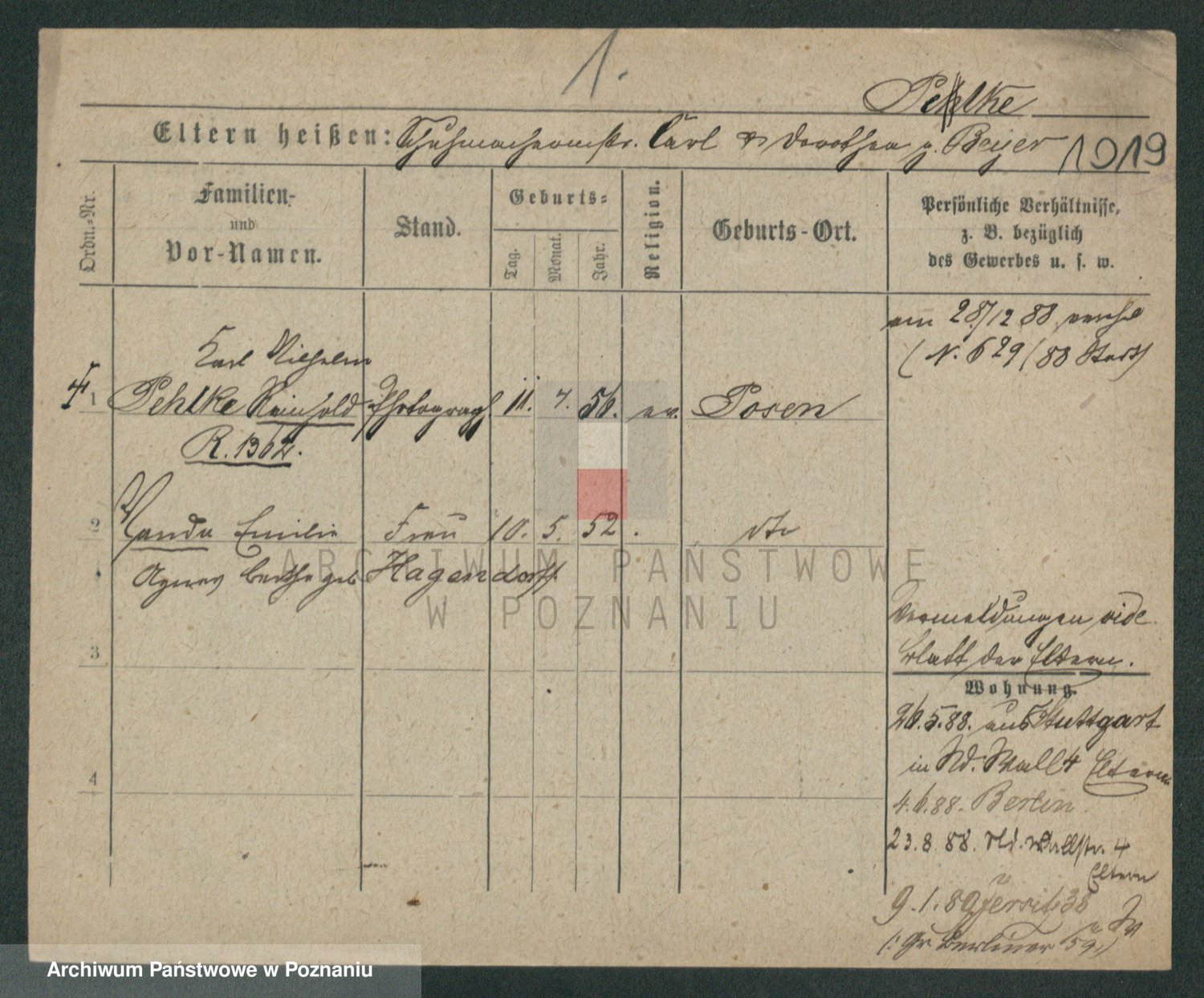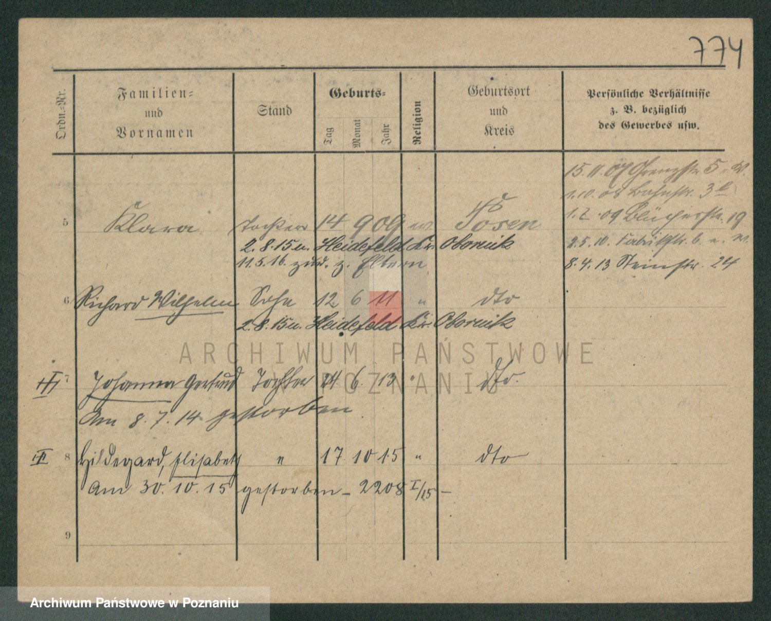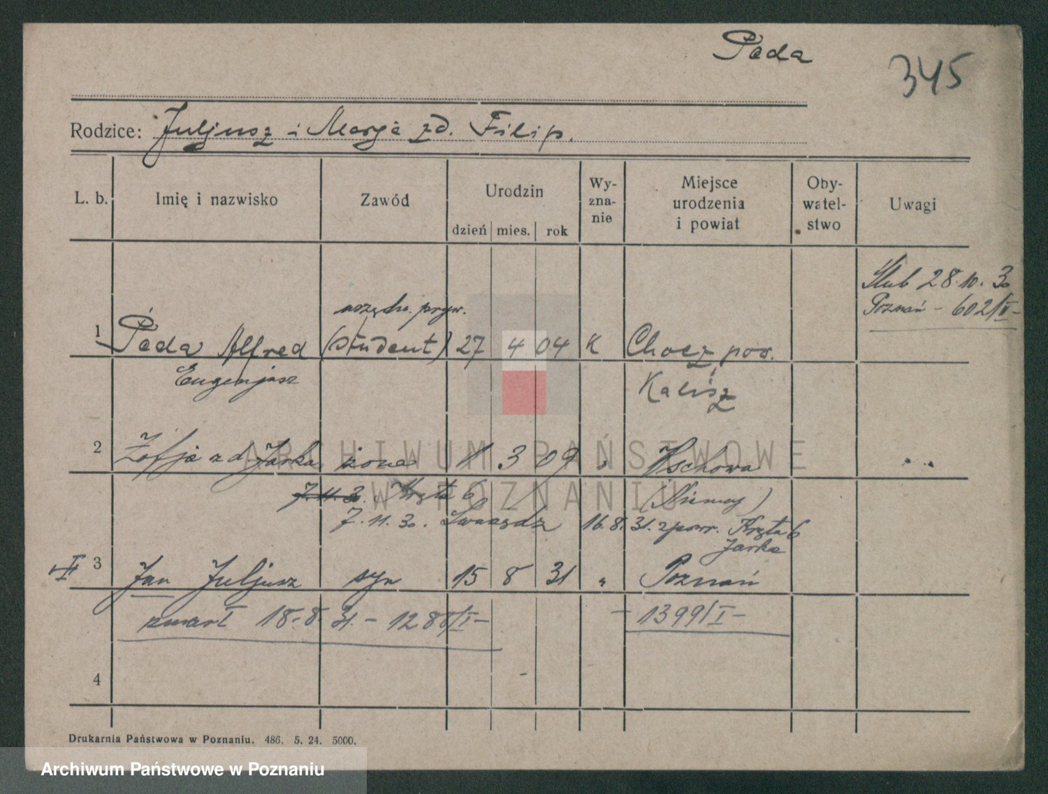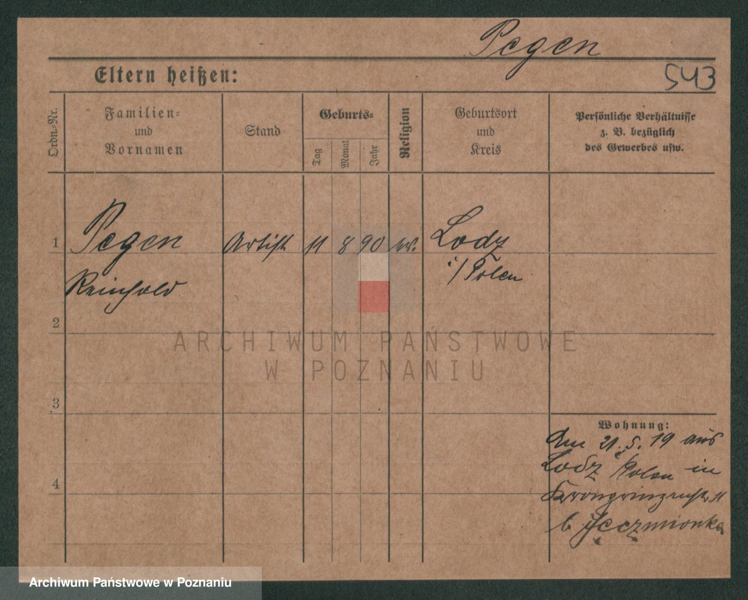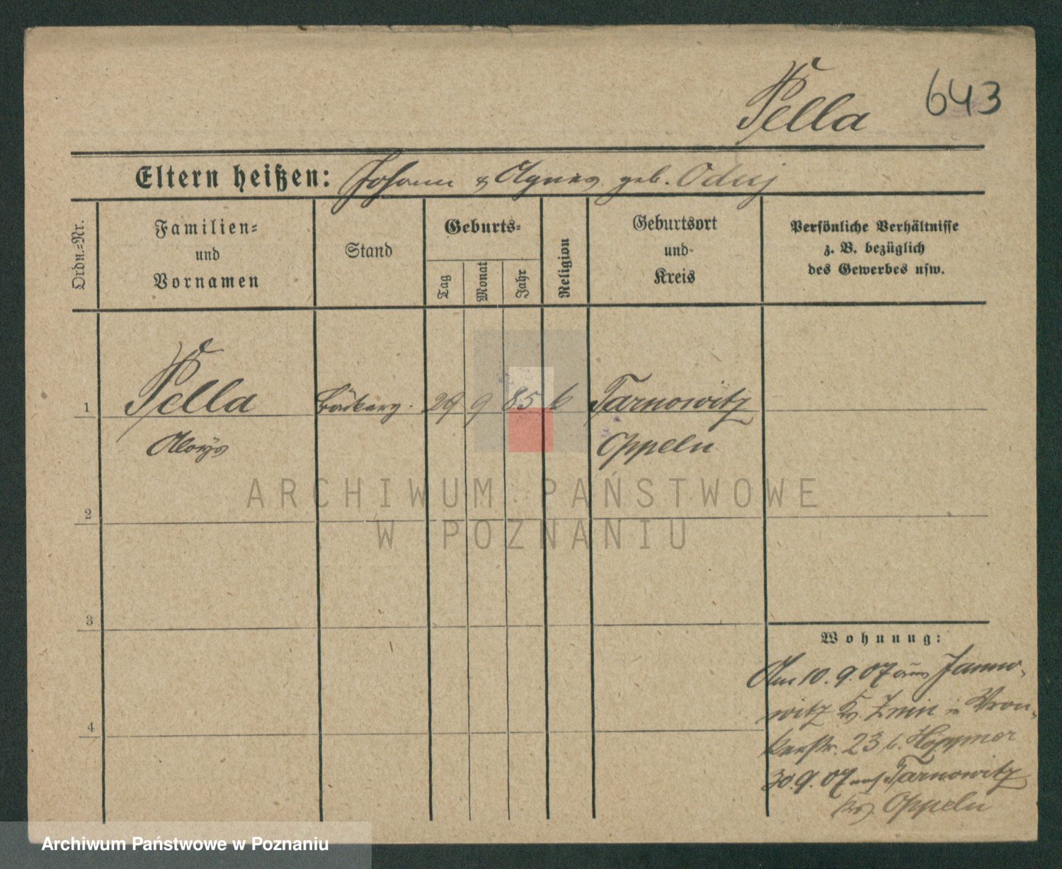 Podgląd karty osobowej dostępny jest po kliknięciu na nazwisko lub ikonkę karty. Można dokonywać powiększenia (ikony na górze) lub przechodzić między kolejnymi skanami (strzałki po bokach).