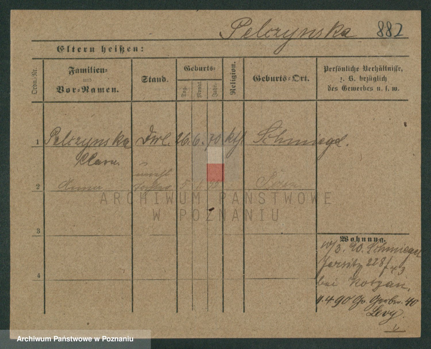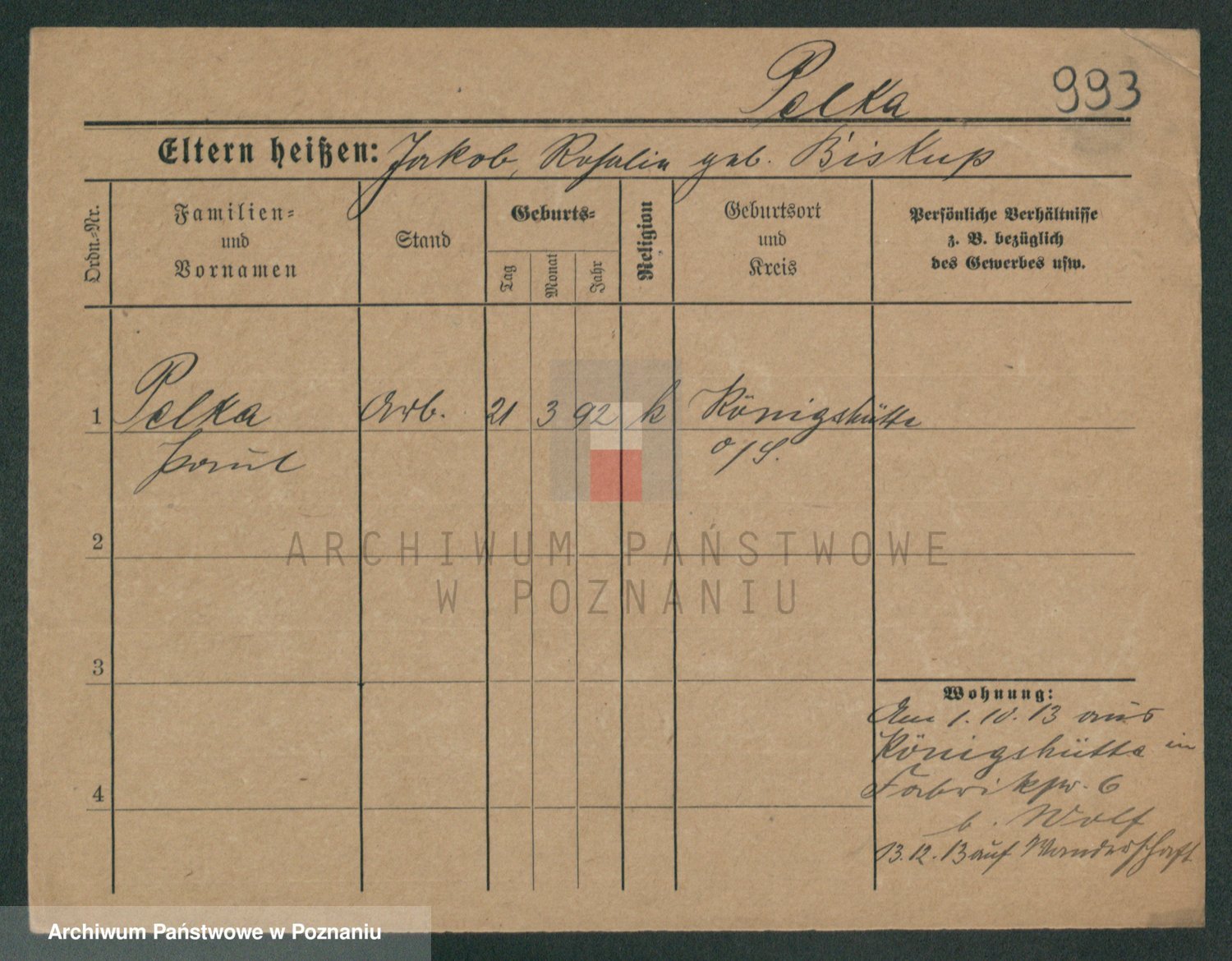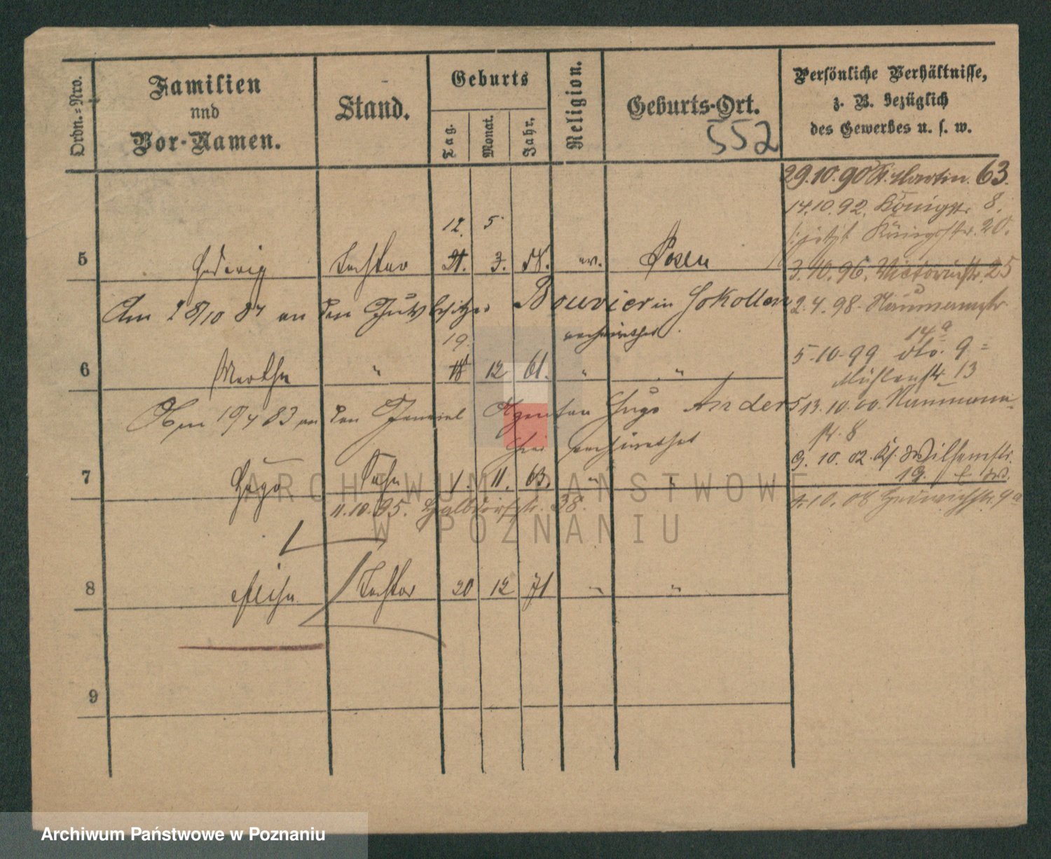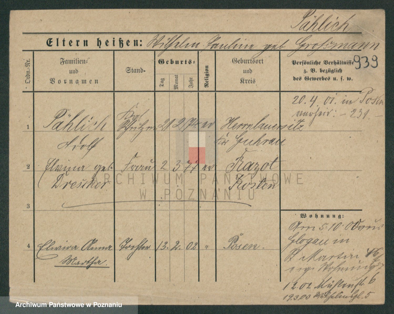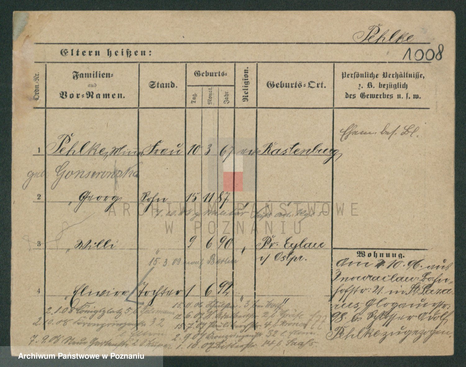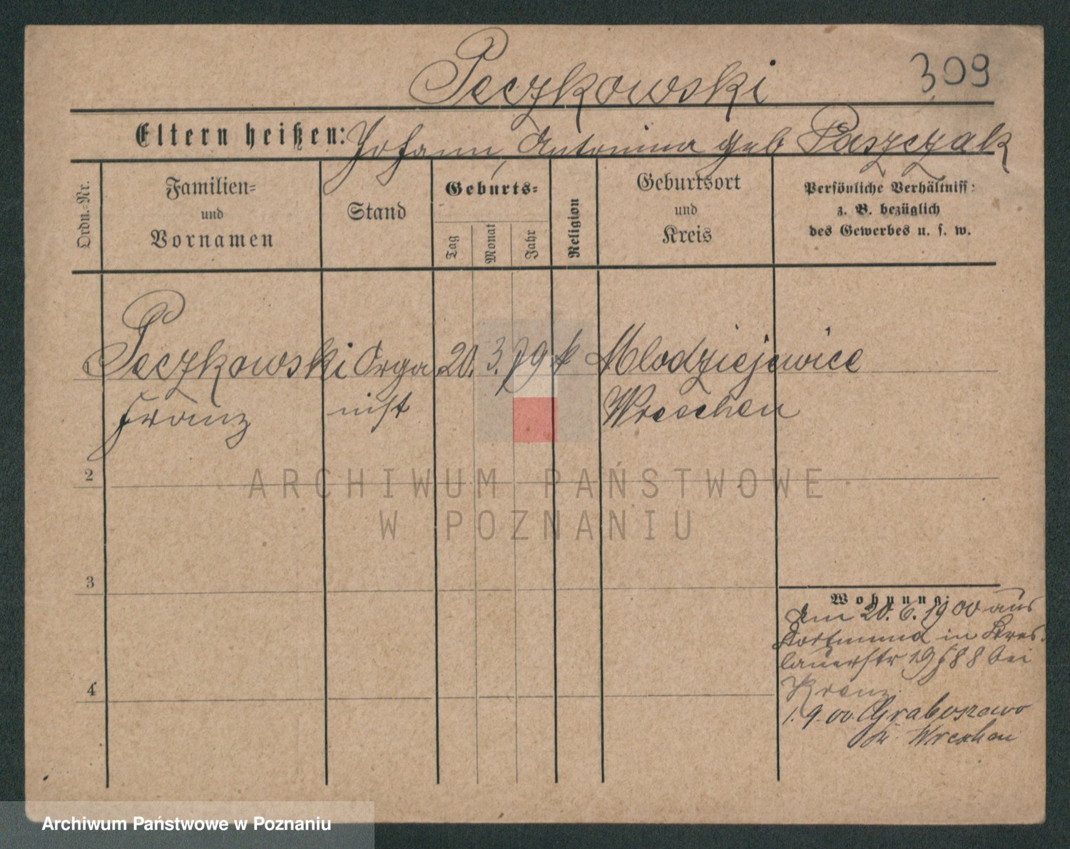Podgląd karty osobowej dostępny jest po kliknięciu na nazwisko lub ikonkę karty. Można dokonywać powiększenia (ikony na górze) lub przechodzić między kolejnymi skanami (strzałki po bokach).