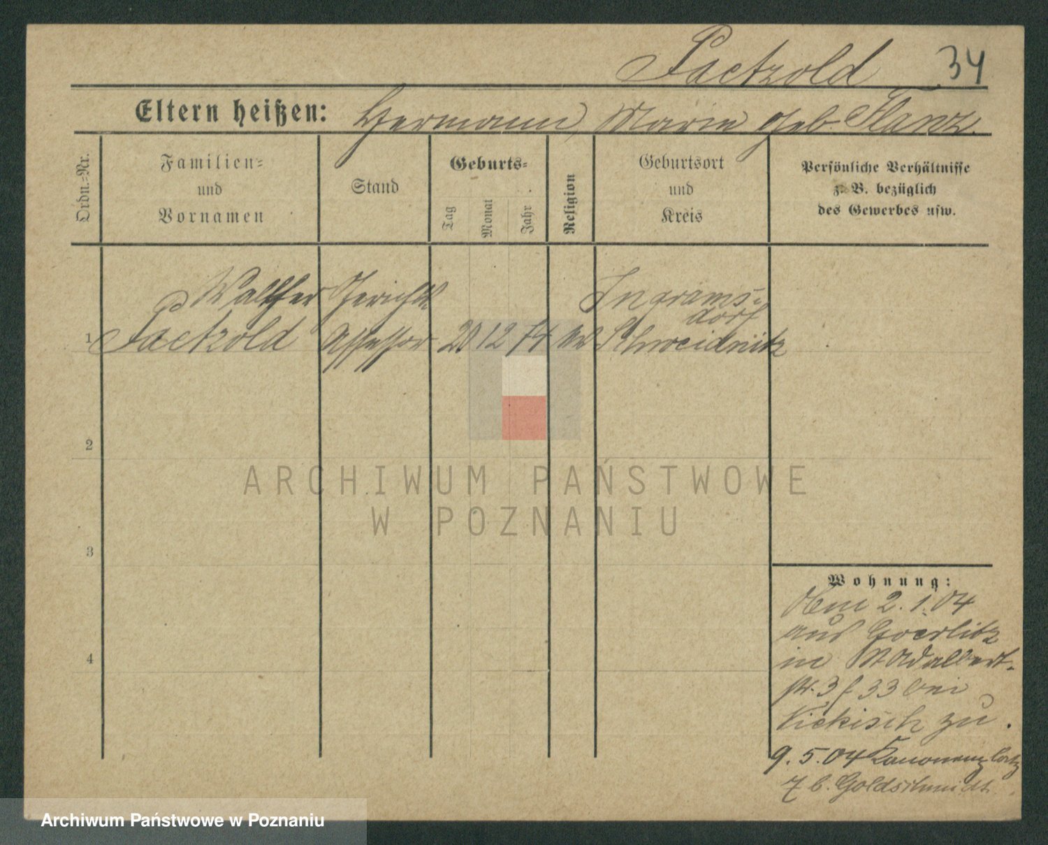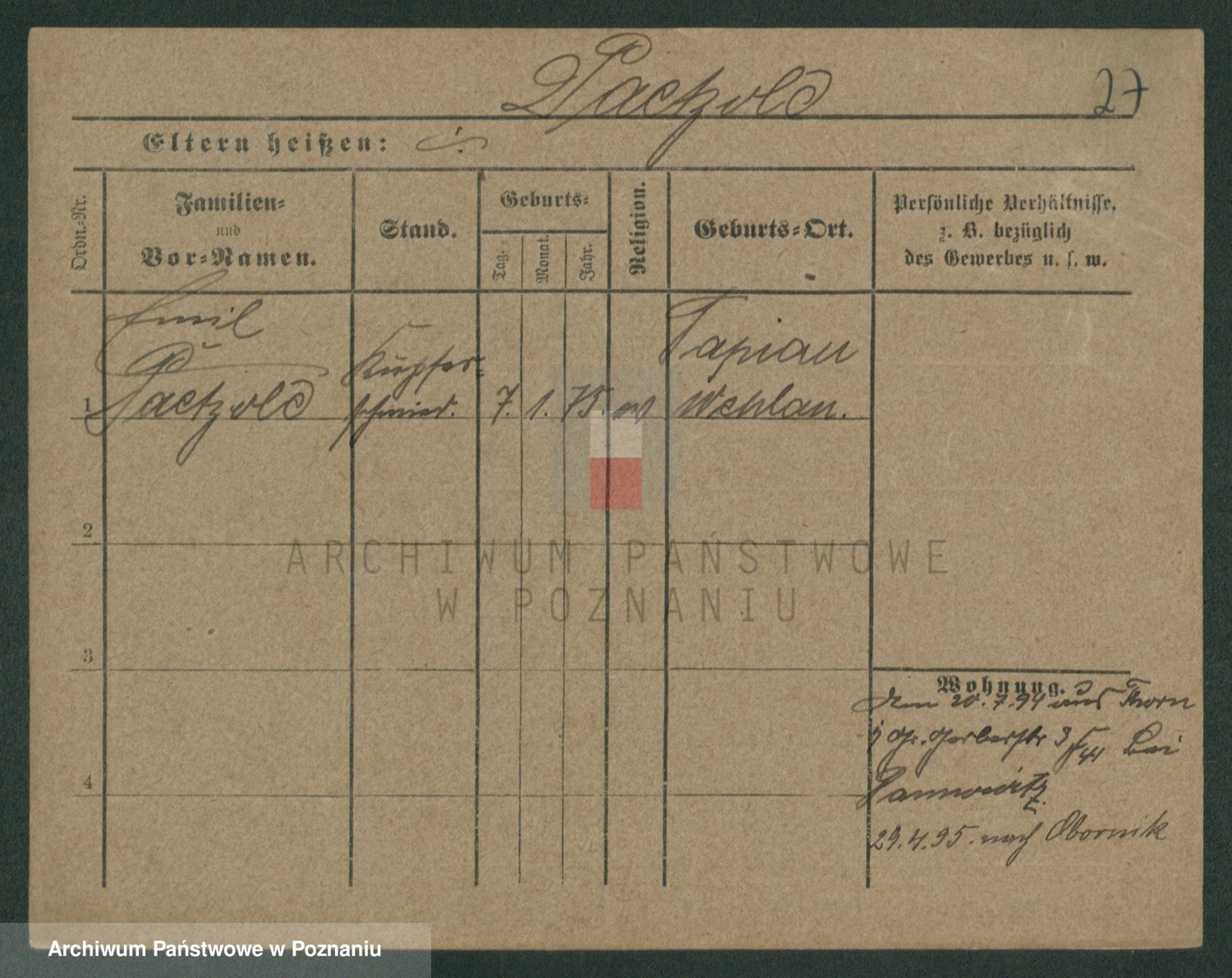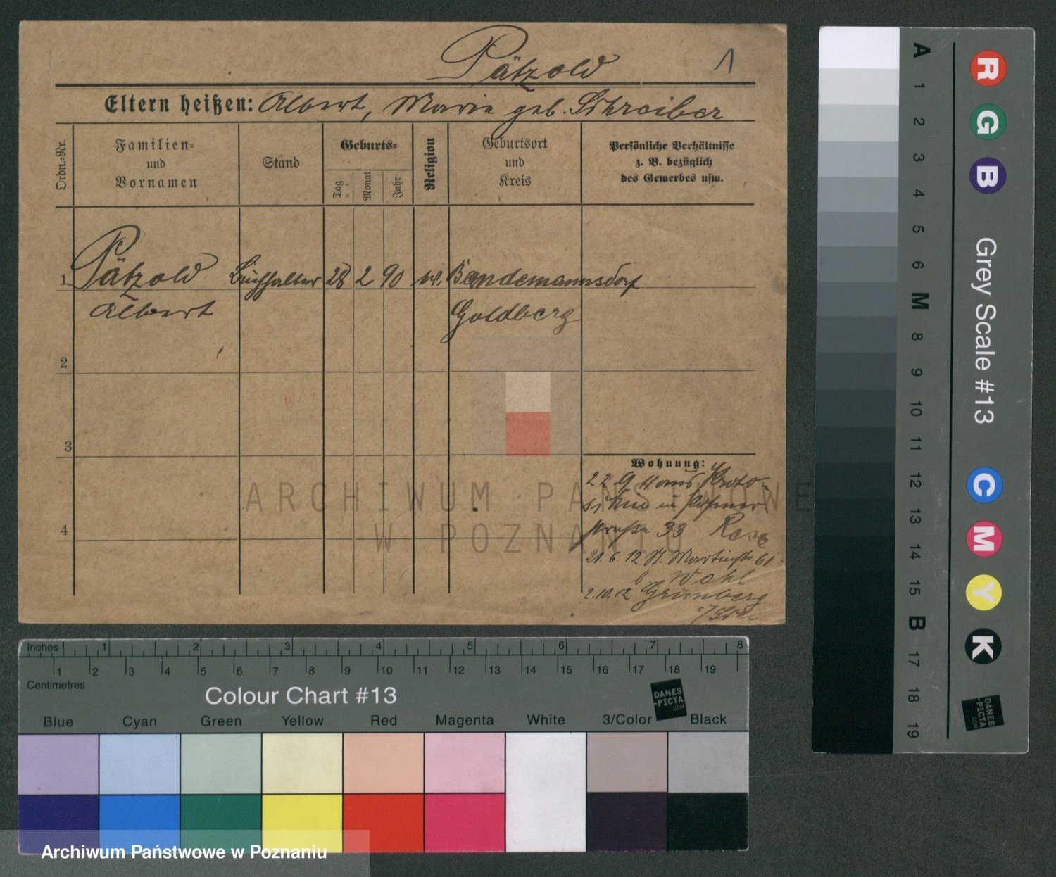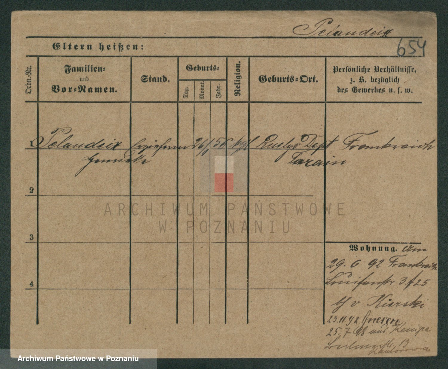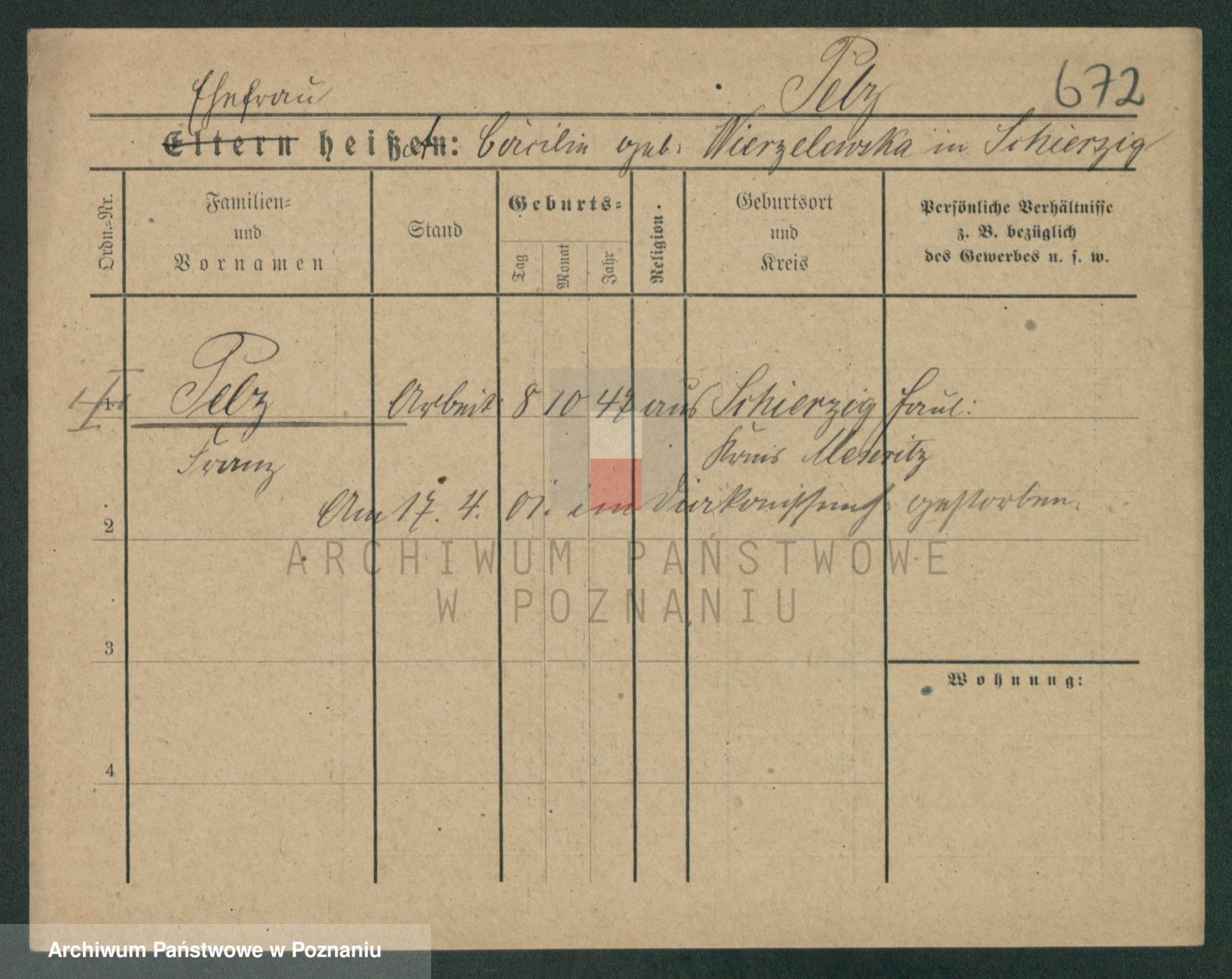 Podgląd karty osobowej dostępny jest po kliknięciu na nazwisko lub ikonkę karty. Można dokonywać powiększenia (ikony na górze) lub przechodzić między kolejnymi skanami (strzałki po bokach).
