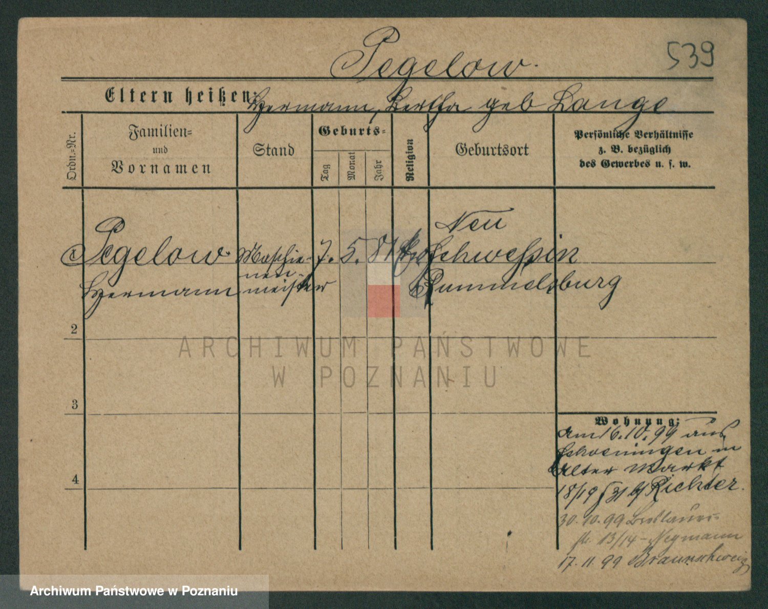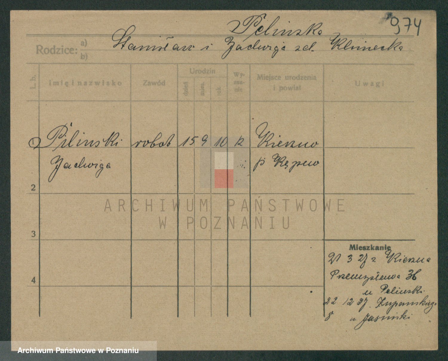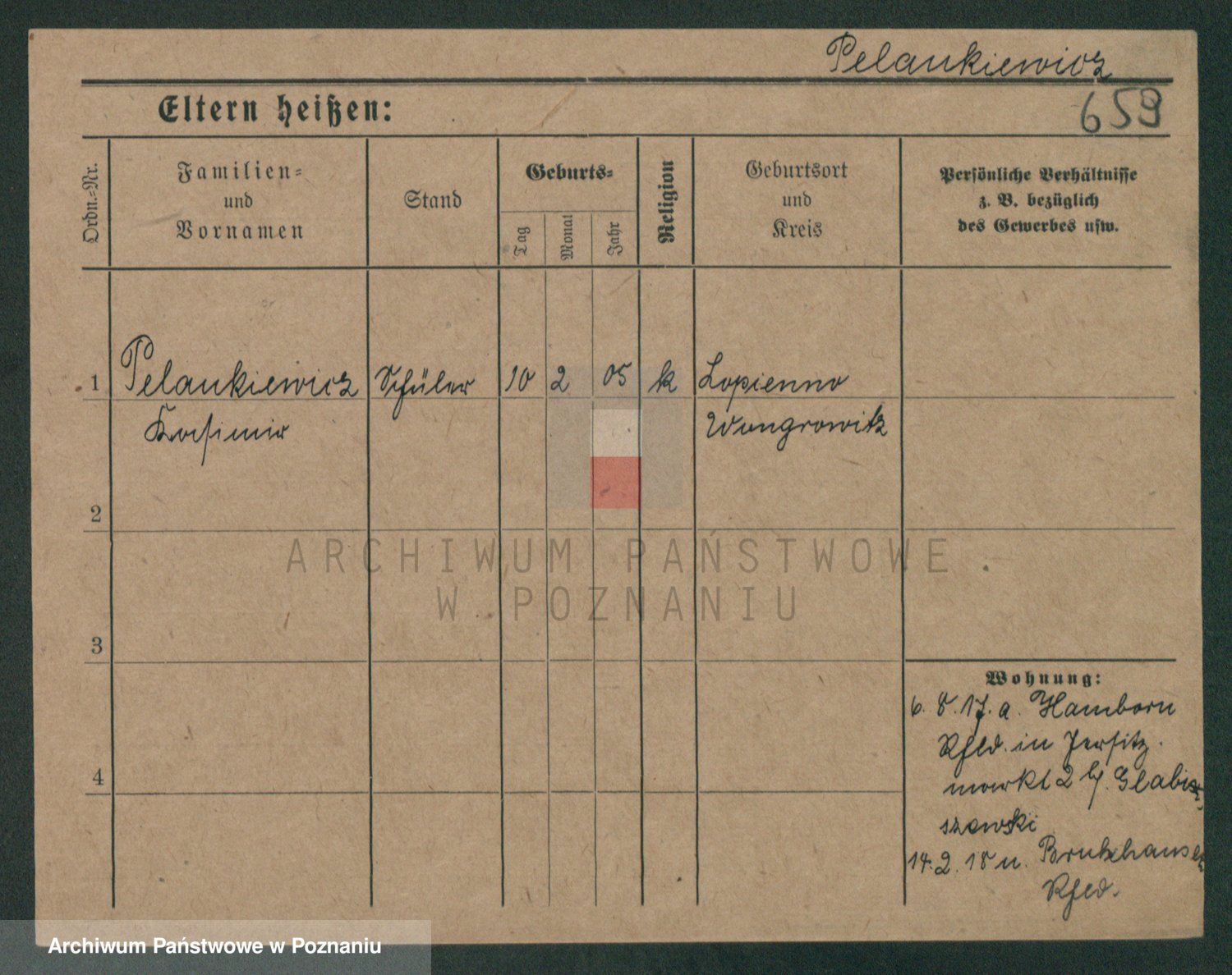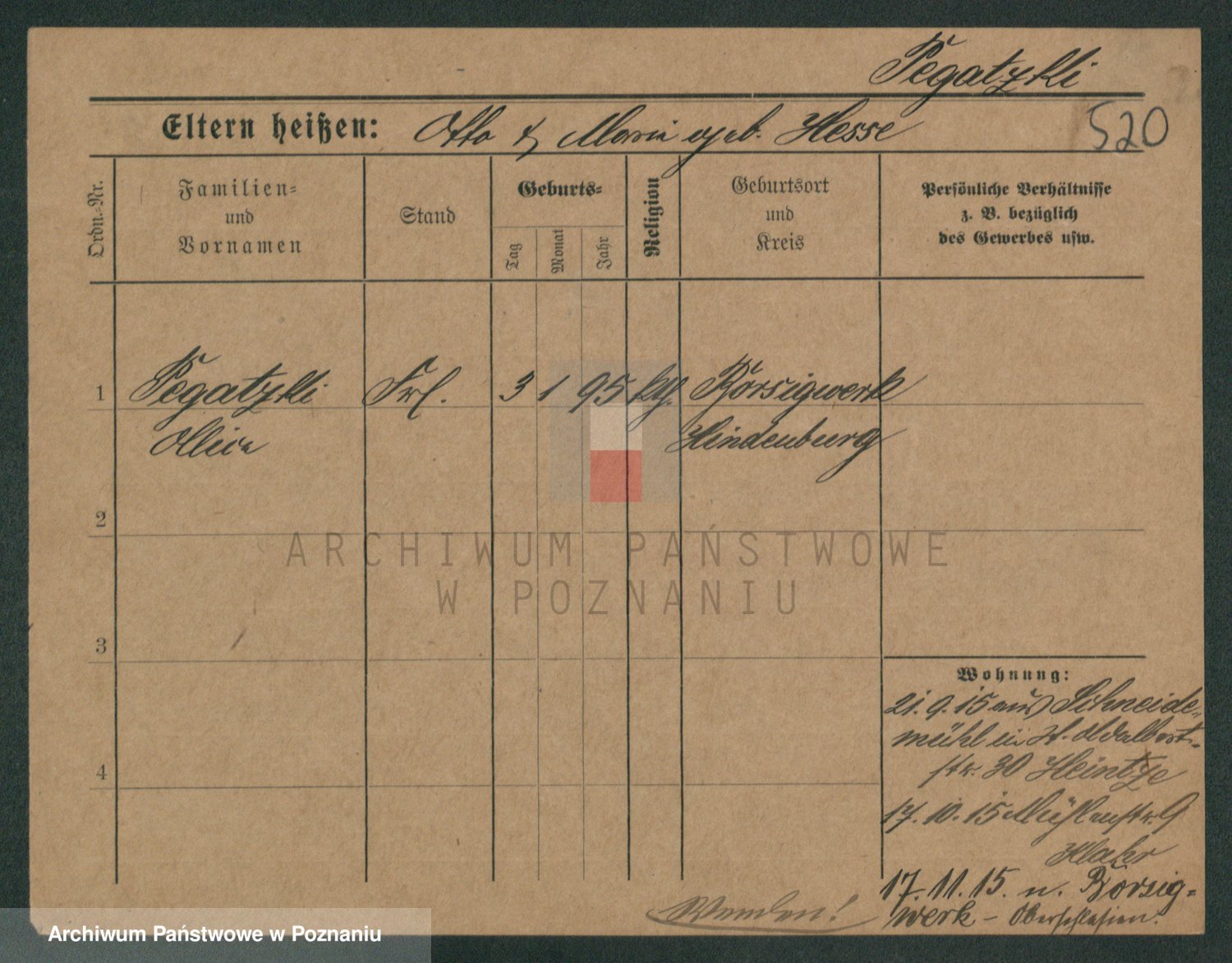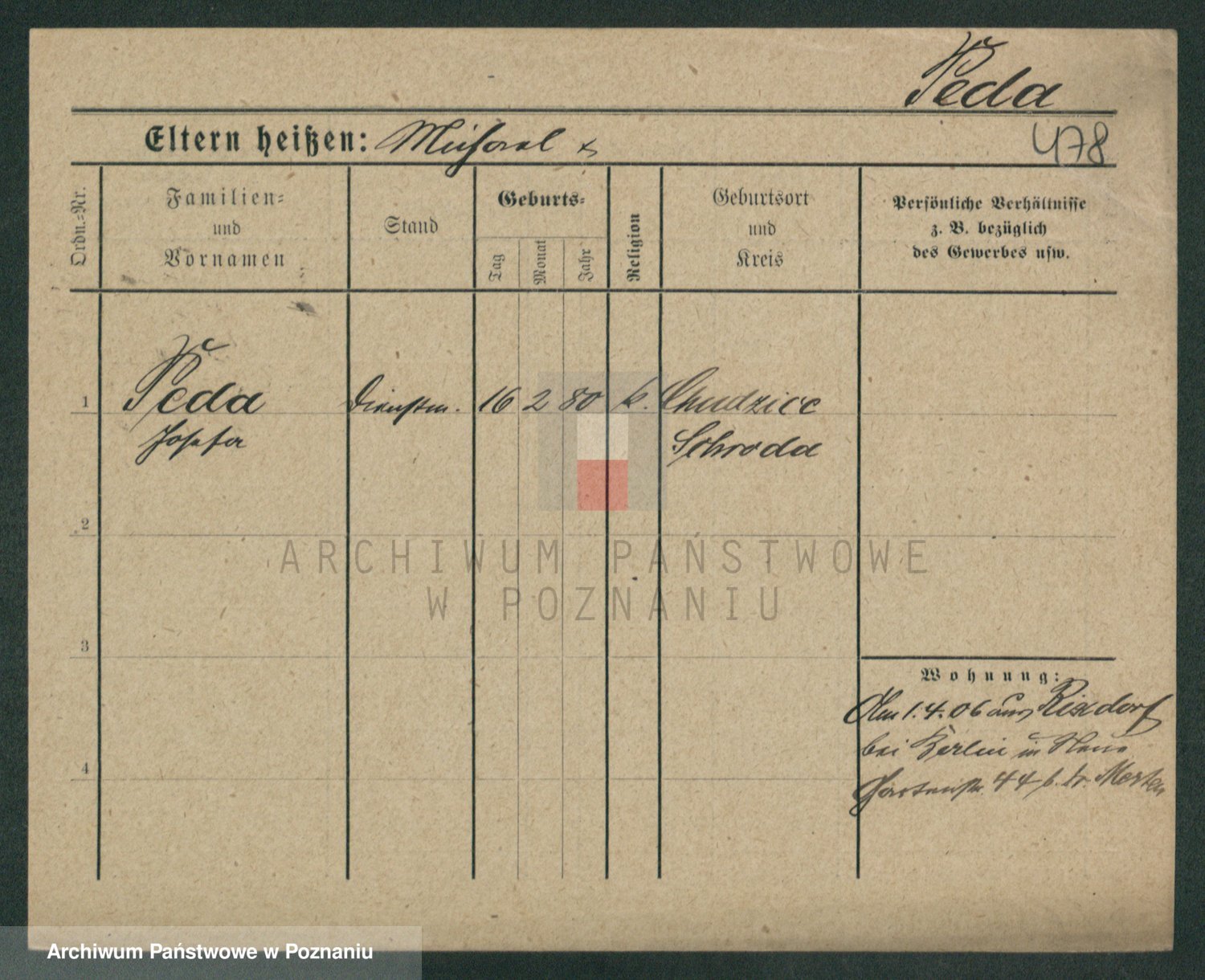 Podgląd karty osobowej dostępny jest po kliknięciu na nazwisko lub ikonkę karty. Można dokonywać powiększenia (ikony na górze) lub przechodzić między kolejnymi skanami (strzałki po bokach).