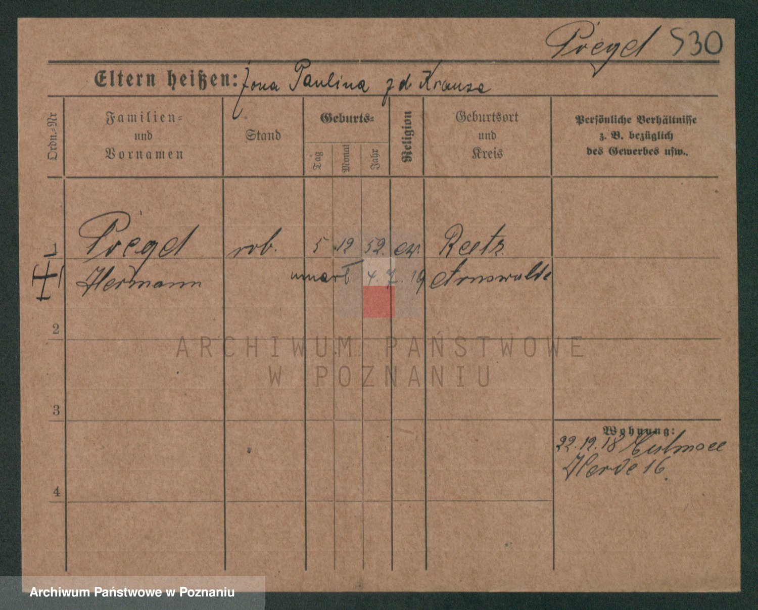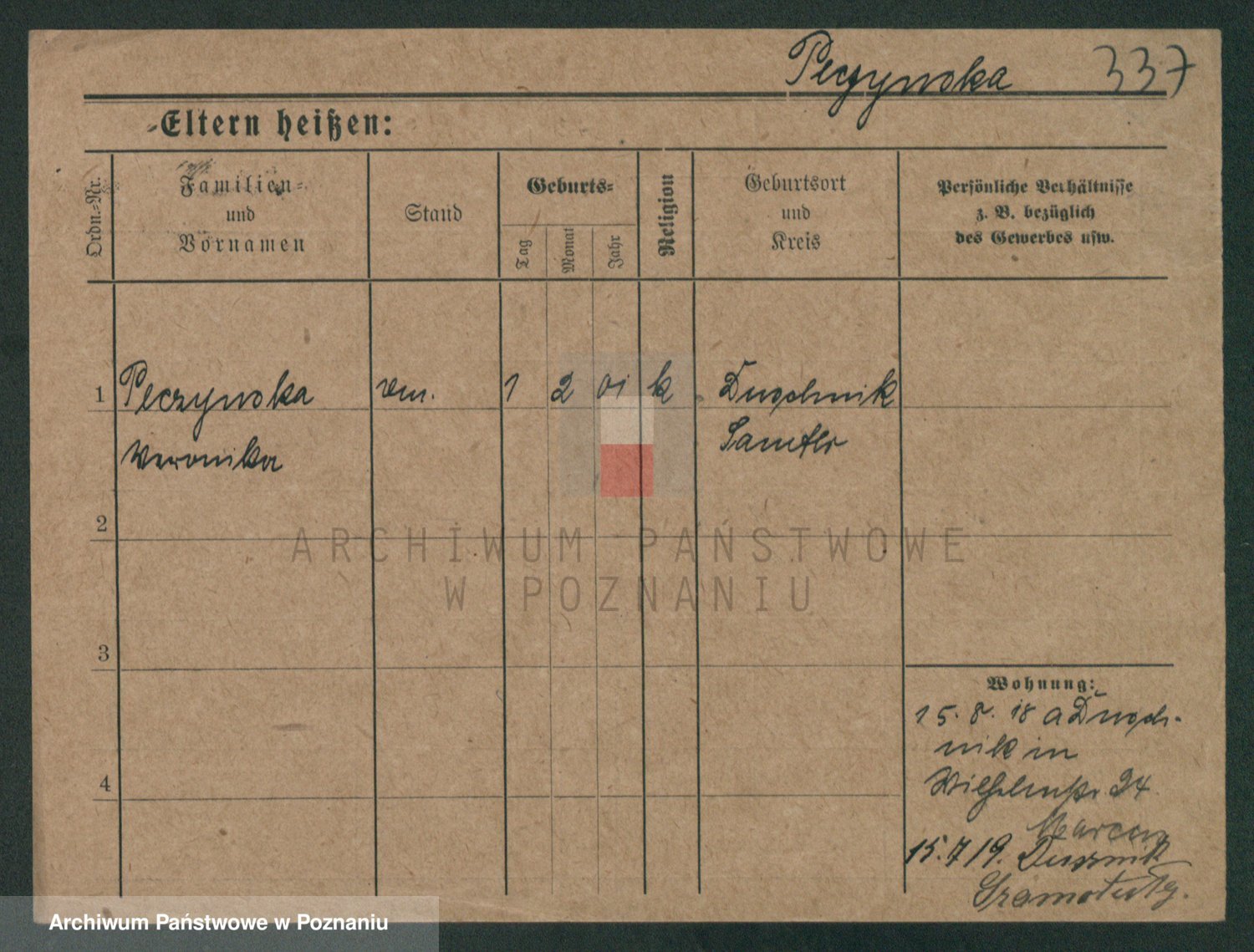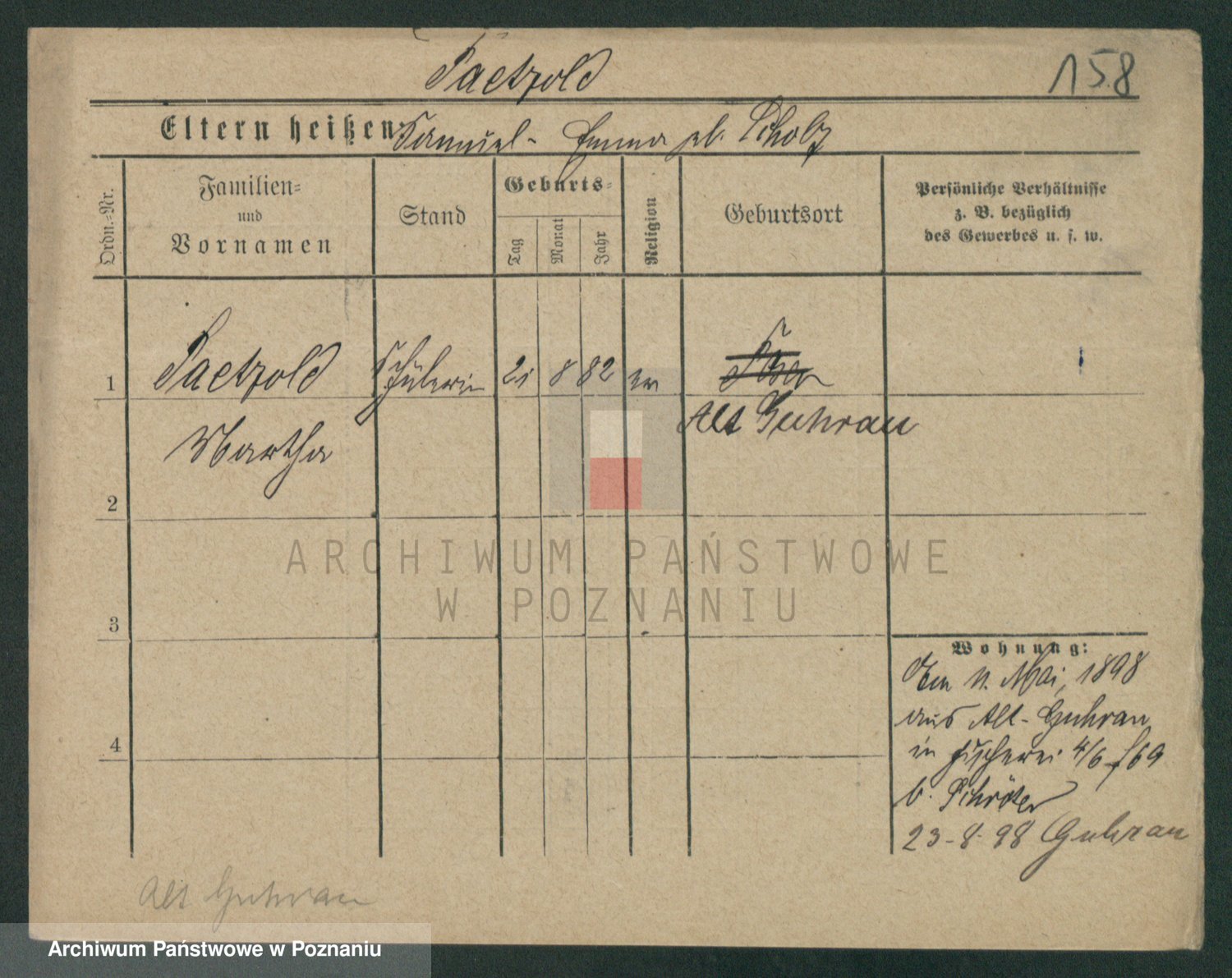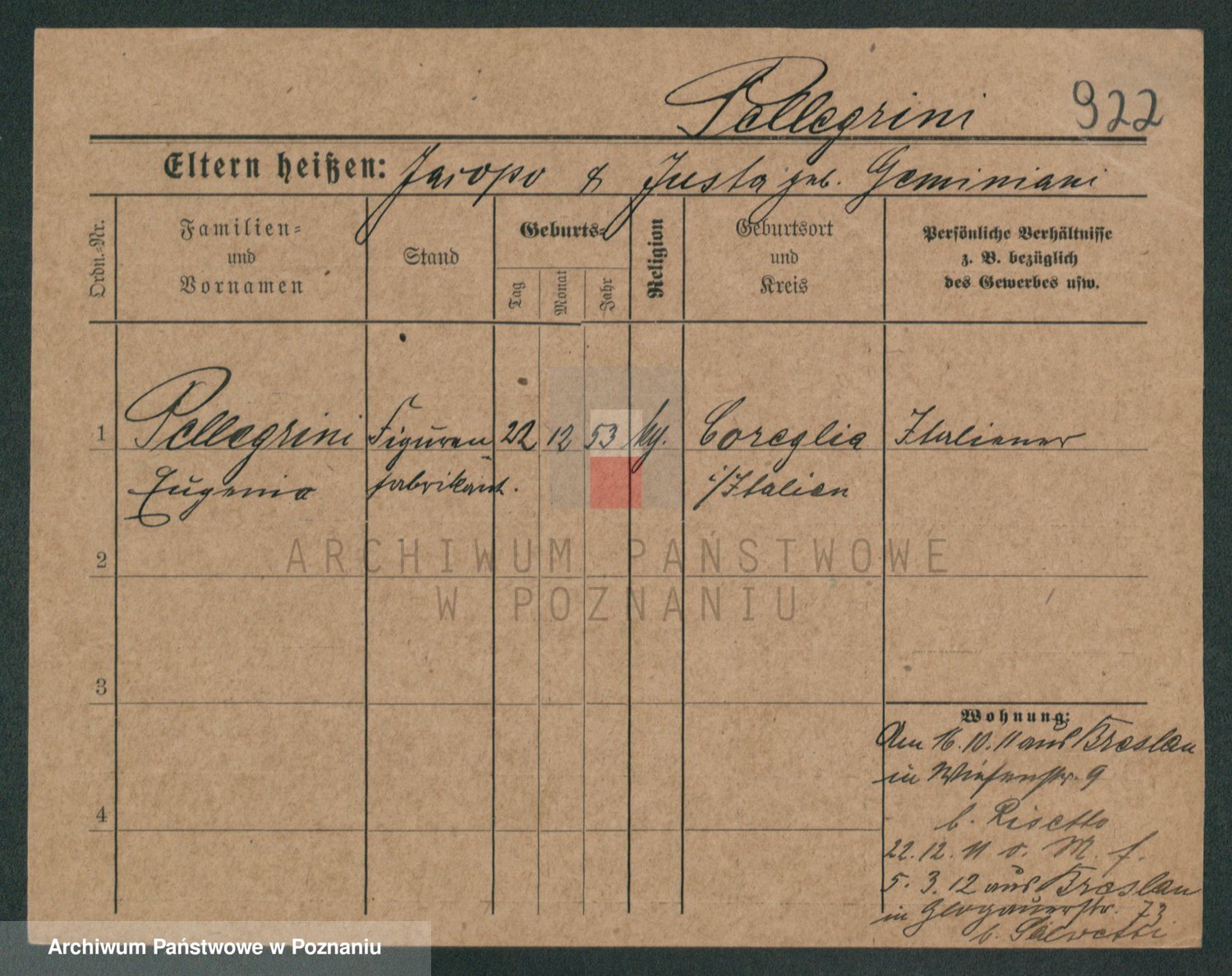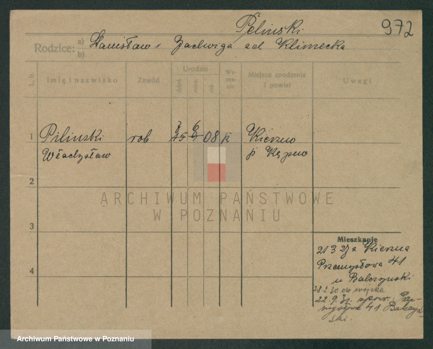 Podgląd karty osobowej dostępny jest po kliknięciu na nazwisko lub ikonkę karty. Można dokonywać powiększenia (ikony na górze) lub przechodzić między kolejnymi skanami (strzałki po bokach).