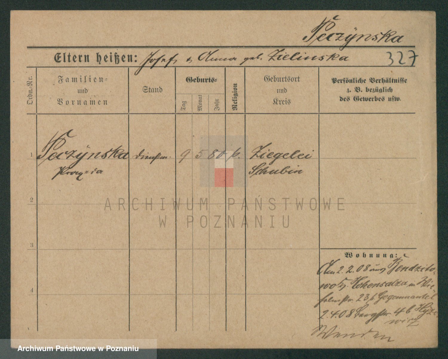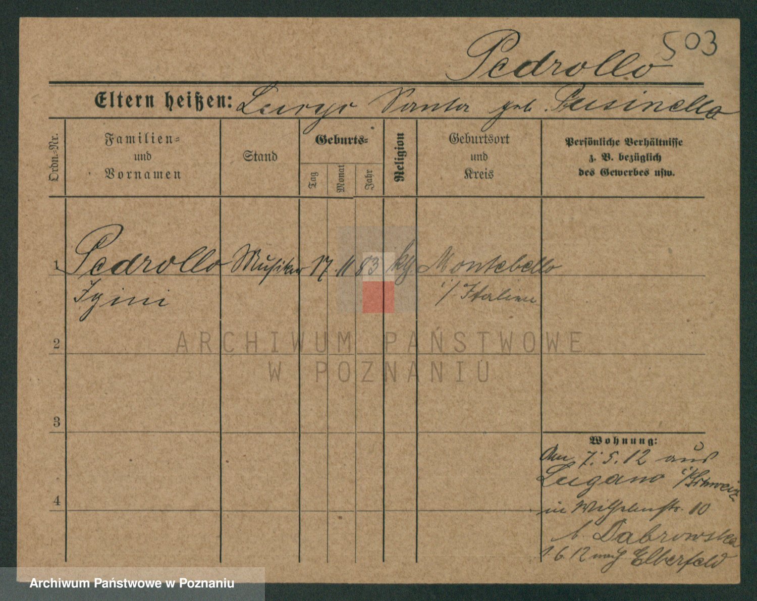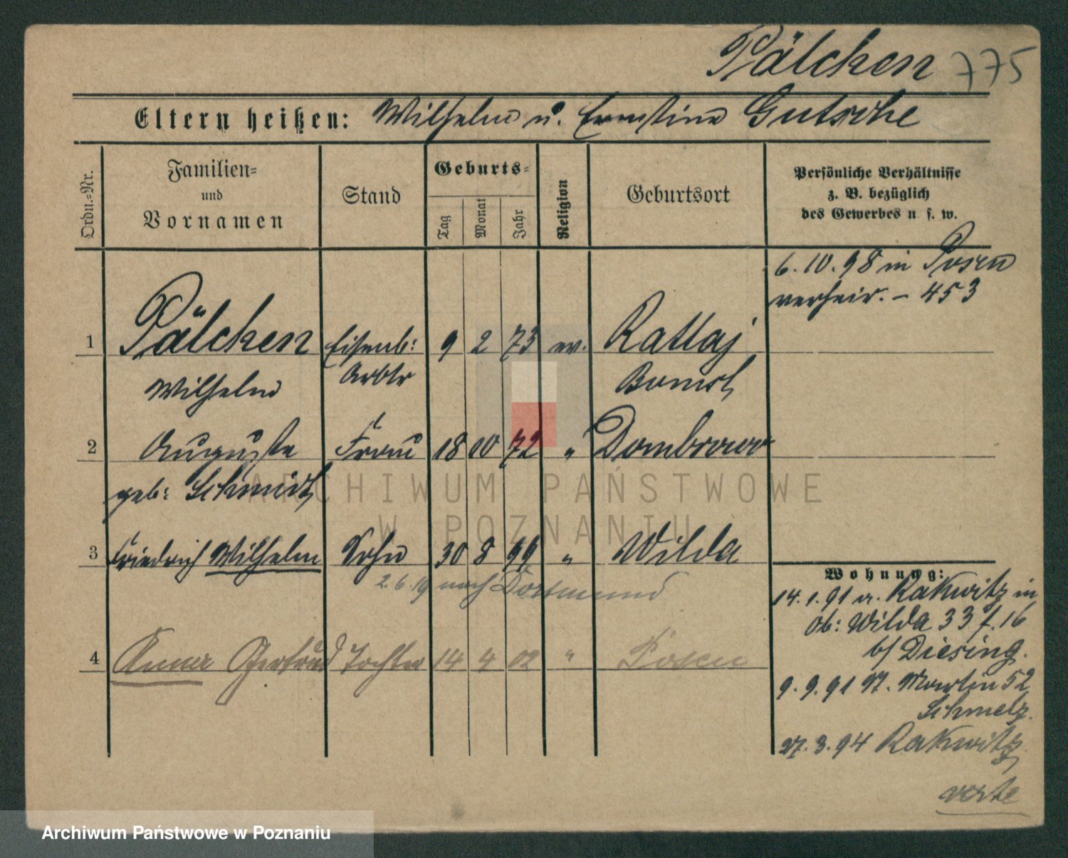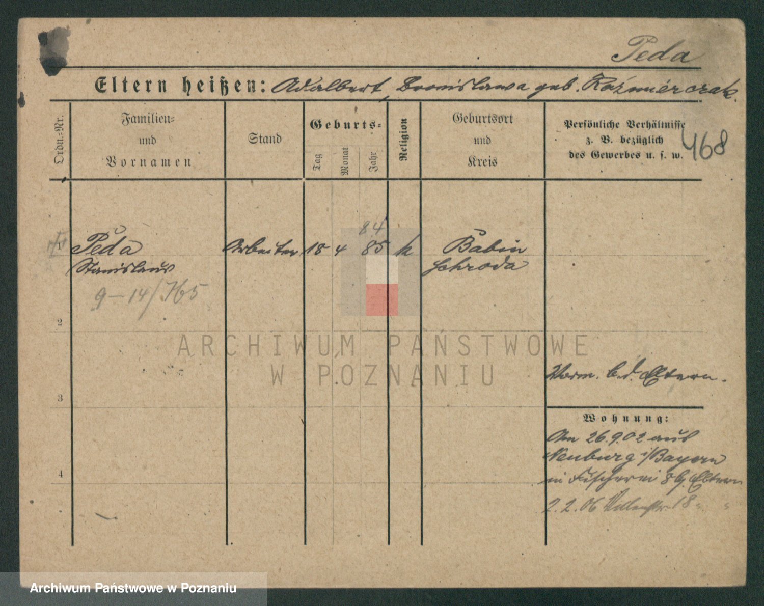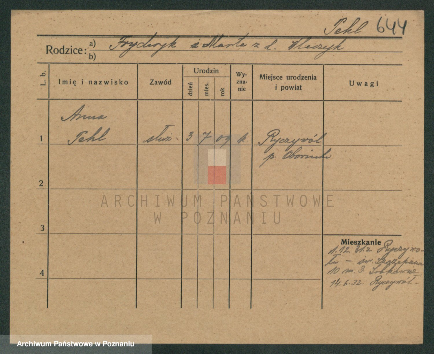 Podgląd karty osobowej dostępny jest po kliknięciu na nazwisko lub ikonkę karty. Można dokonywać powiększenia (ikony na górze) lub przechodzić między kolejnymi skanami (strzałki po bokach).